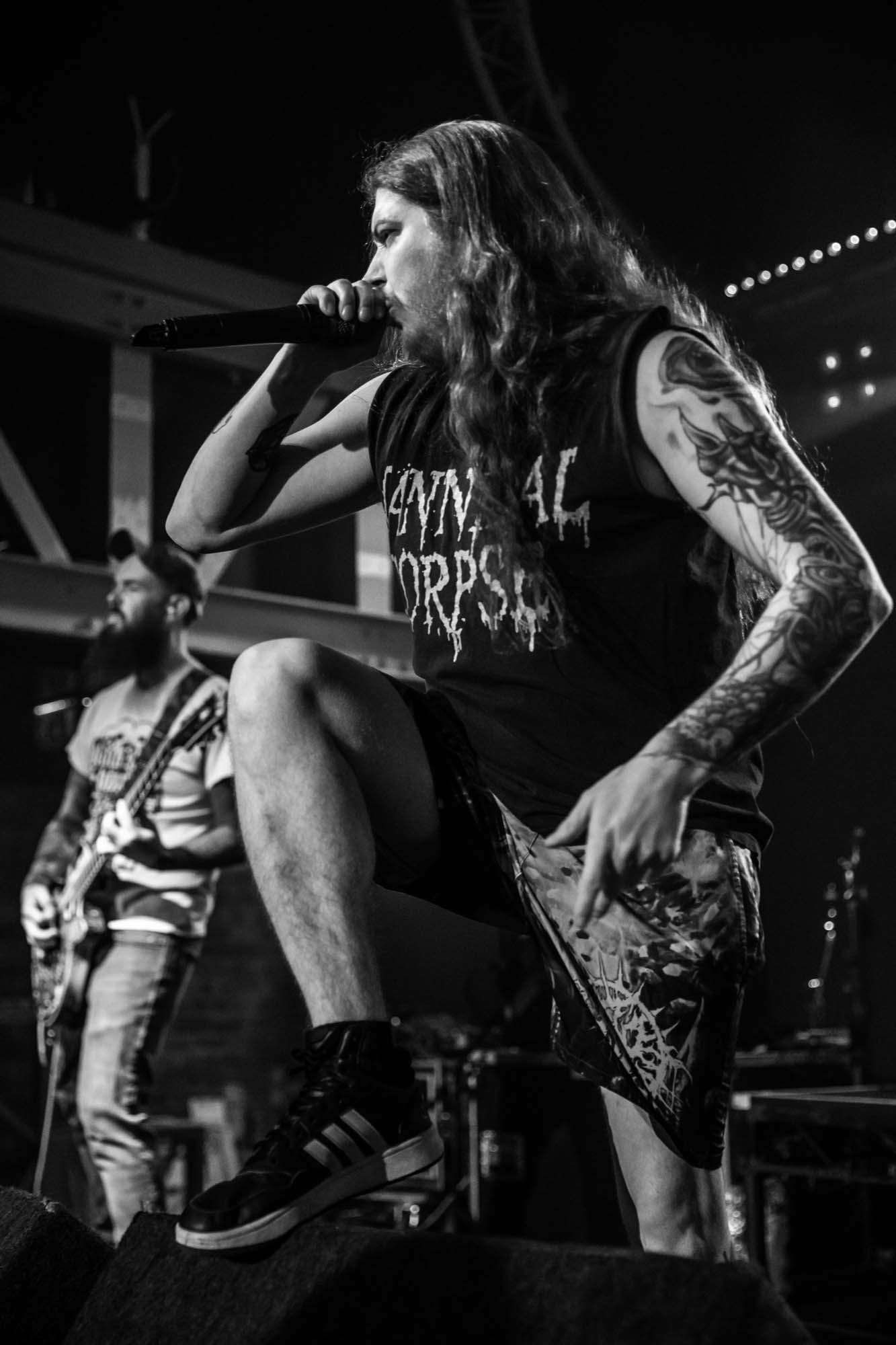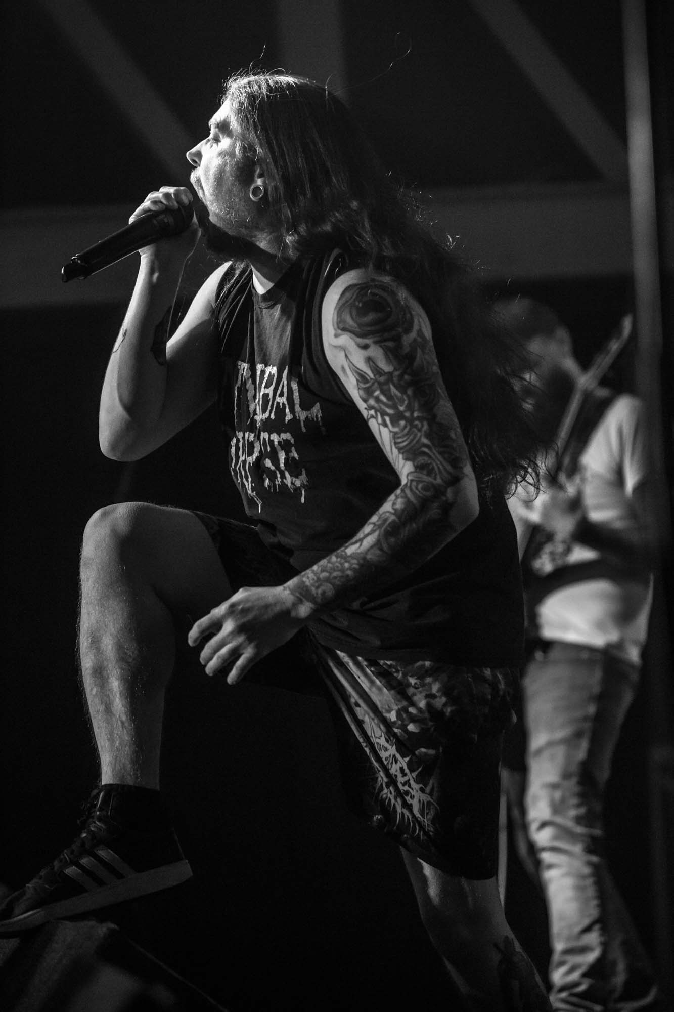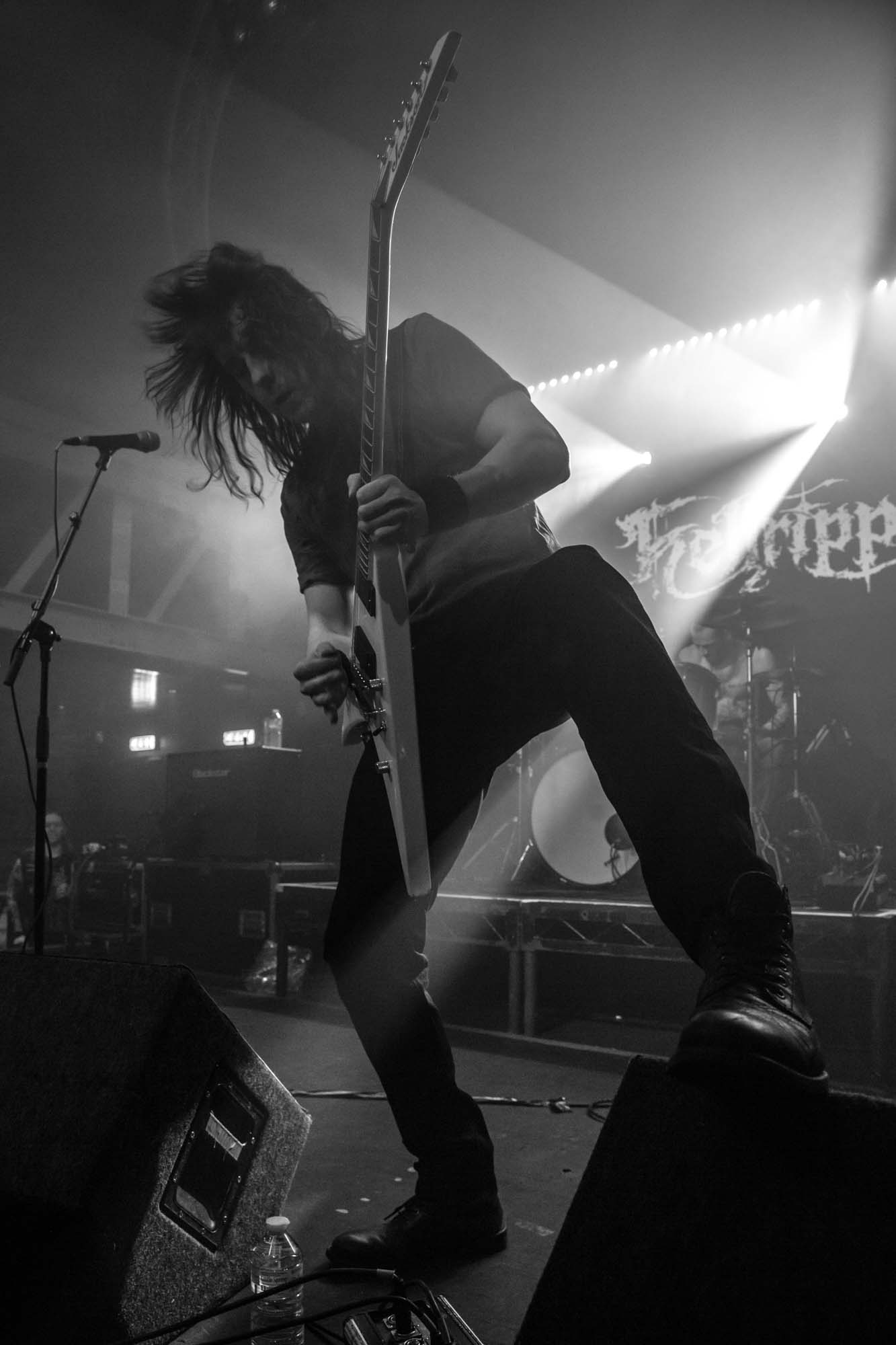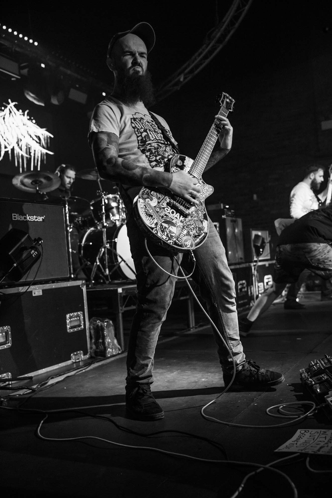 This crowded room of metalheads is appropriately sauced by the time Aberdeen’s greatest metal export, HELLRIPPER, lines up on stage. Instantly, James McBain and his hired guns kick things up to eleven by opening with the MIDNIGHT-worship of All Hail the Goat. Sordid riffs, fire-starting solos and accelerated drums formulate one of the headliner’s finest anthems. The results spark a rapacious pit and audacious crowd surfers. Another ode to MIDNIGHT follows with Hell’s Rock ‘n’ Roll, perfectly crafted for the devilish concert experience. As today marks the release of HELLRIPPER‘s fourth album, Kinchyle (Goatkraft and Granite) is the first new song they air. Named after a historic clan’s war cry, this track builds on the MIDNIGHT, VENOM and SABBAT foundation but with refreshing, introspective heavy metal influence, culminating in a catchy chorus.