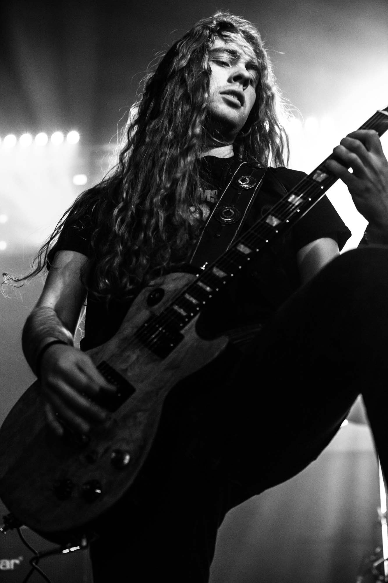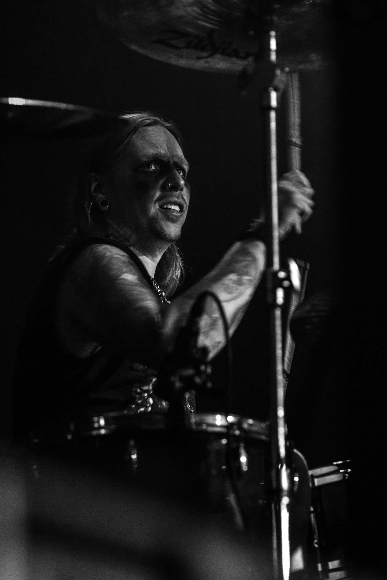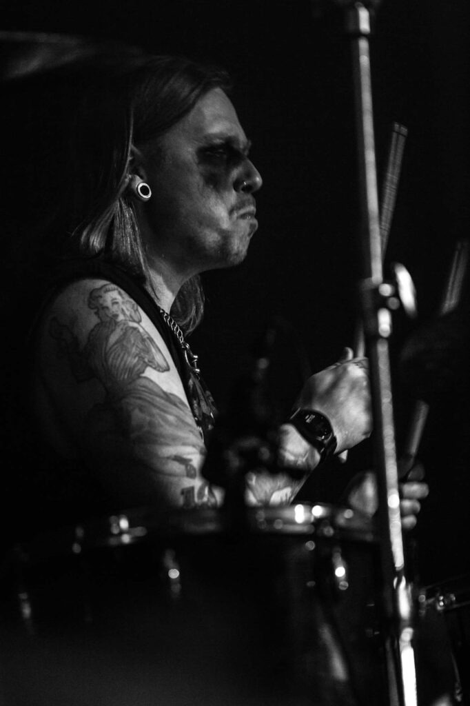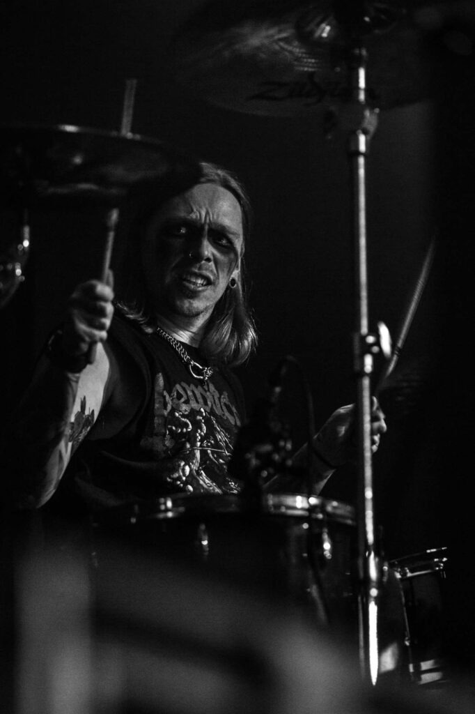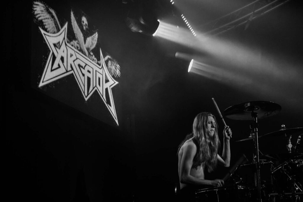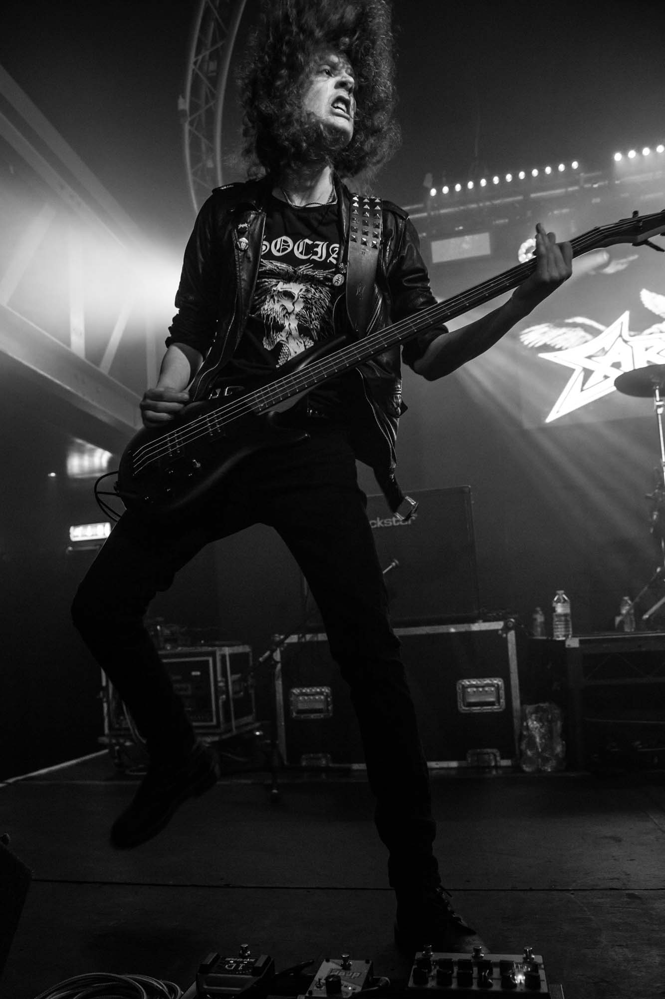 SARCATOR hail from that sanctuary of black thrash, Sweden. Formed in 2018, the quartet has discharged three full-lengths and already bagged a spot on Century Media‘s roster. This is their debut outing to the UK, and judging by the audience’s reaction, they do a fantastic job at entertaining them and spawning crowd surfers. Let’s face it – metal is an ageing genre of music, so it’s refreshing to see a youthful band with bundles of energy in a busy room. Their neckbreakingly ferocious headbanging (which must be whittling away their cartilage) and making full use of the spacious stage effectively demonstrate their enthusiasm for playing live.