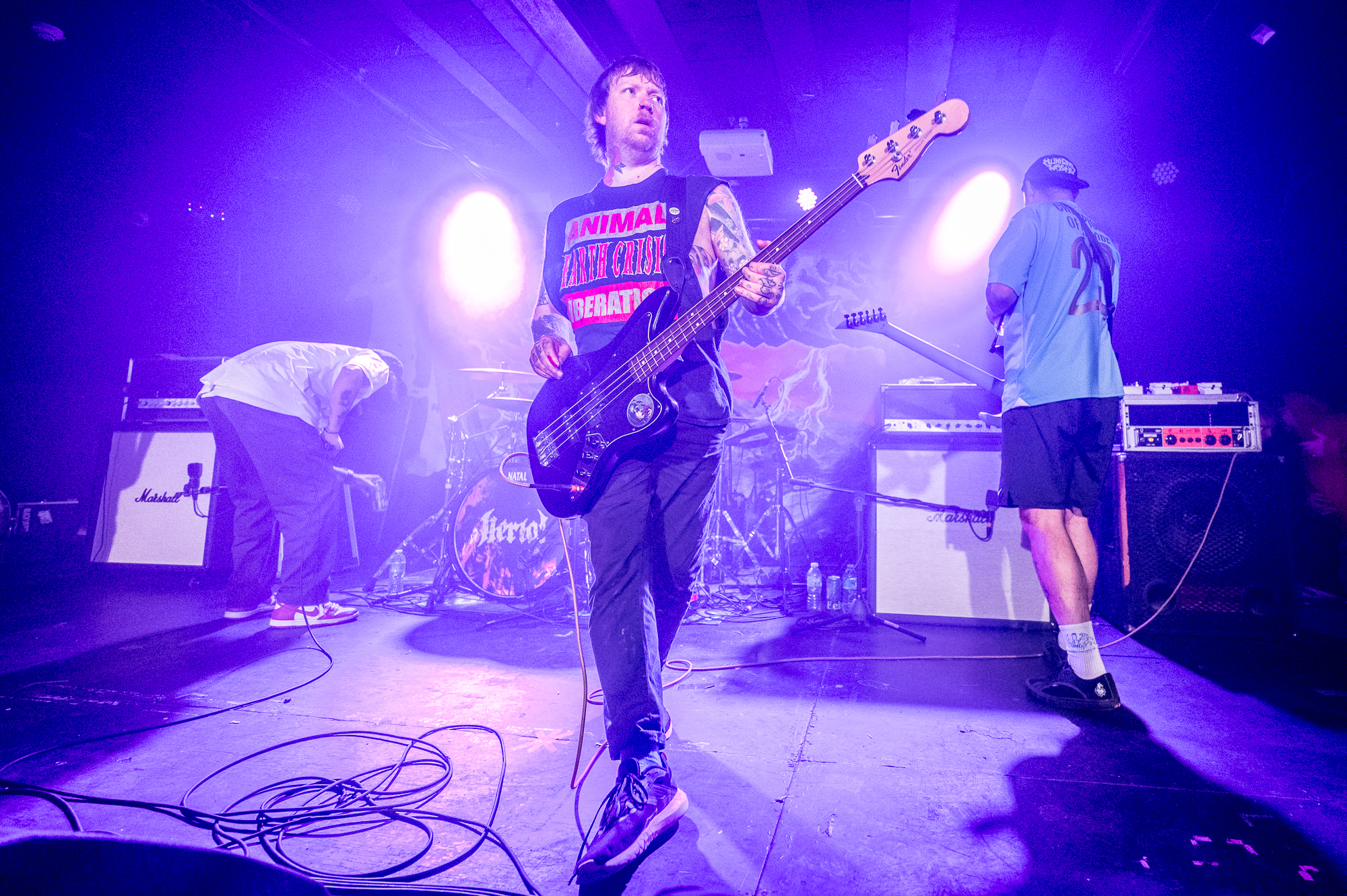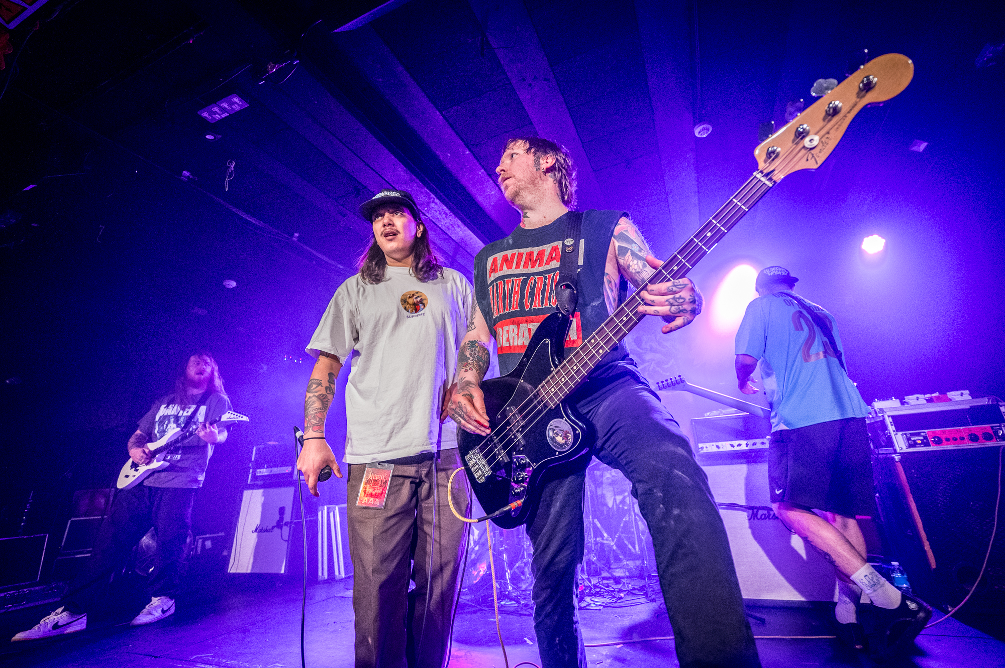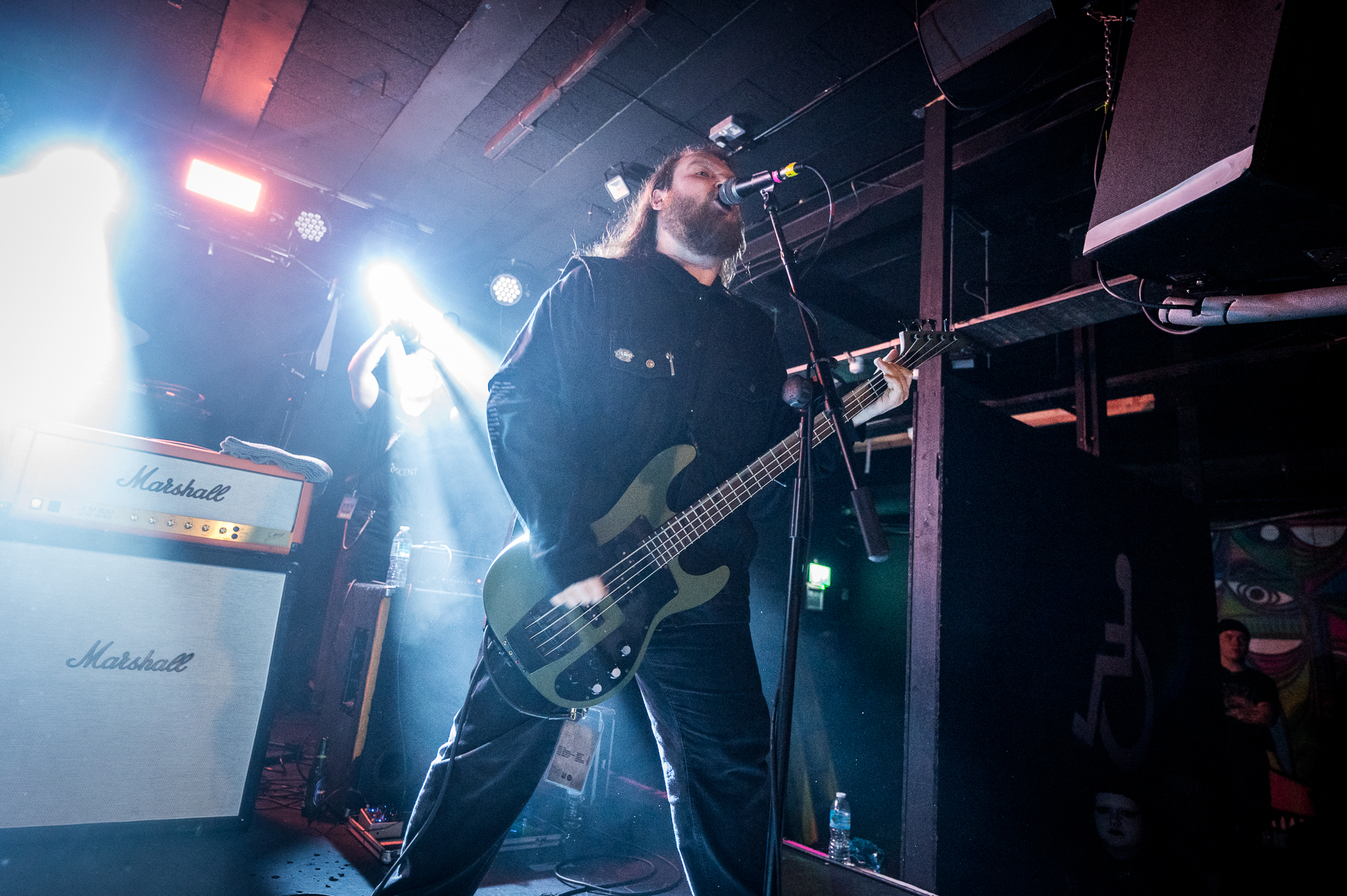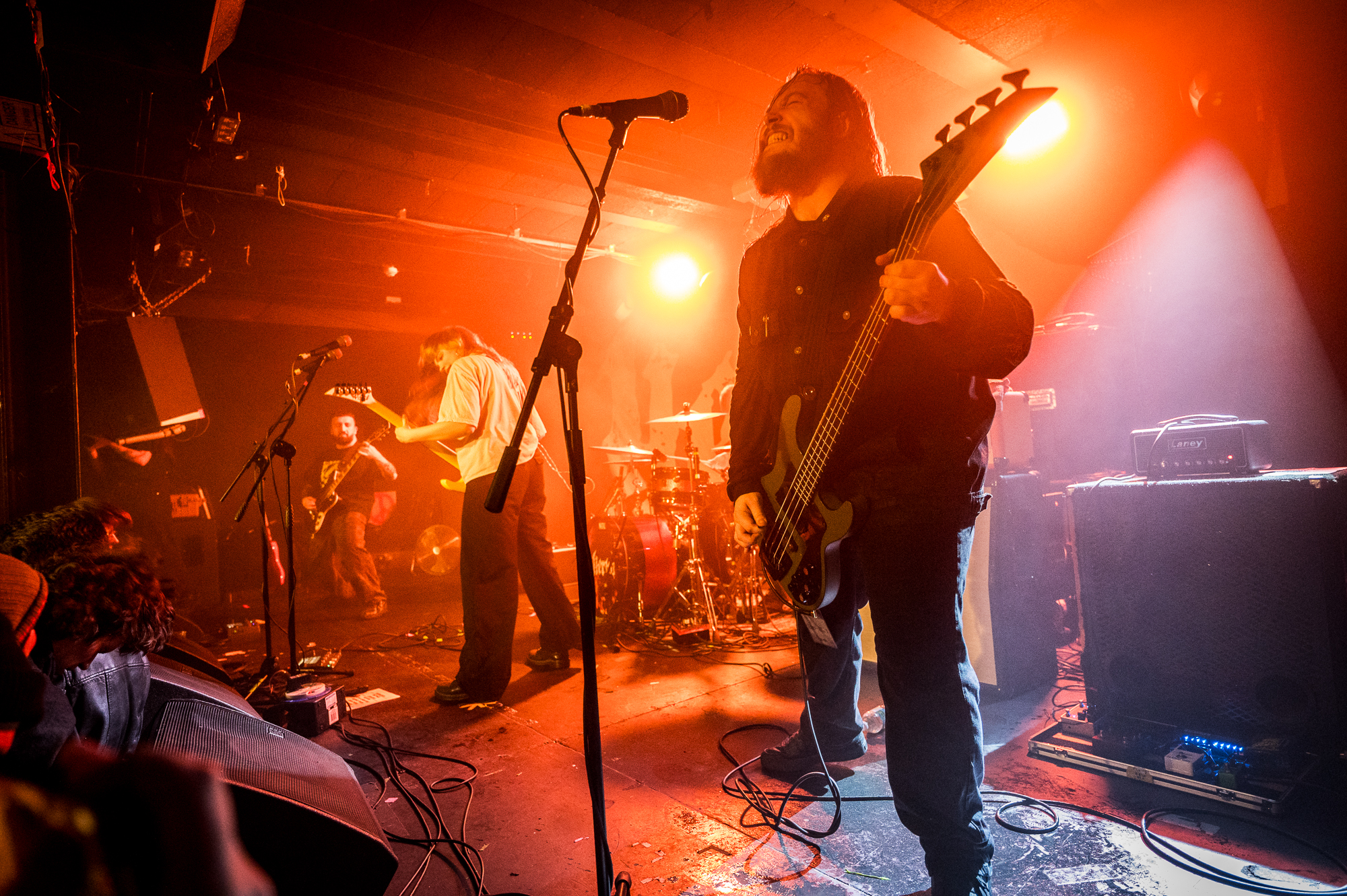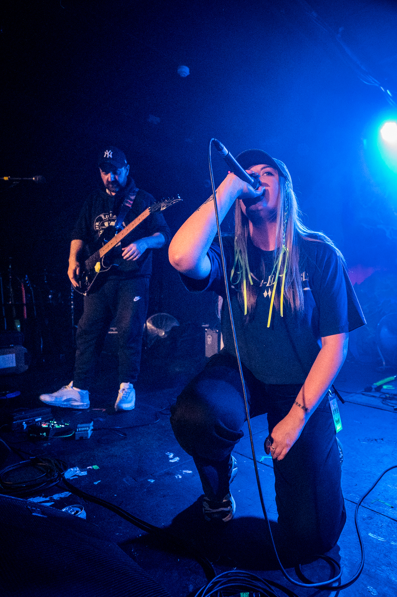 Soul Chasm, released between projects, makes the most of their sludgy, catastrophic sound, with both Debbie and guitarist E Alman’s sound reaching the boiling point as they cut above the noise. Demure commands a thick and sweaty circle pit, spun into fruition by Julian Gage’s high intensity rhythms. As an entire unit, the band performs with a wicked passion, on a high from their week of touring the country, only matching the crowd’s energy to move violently through the hot air building in the venue.