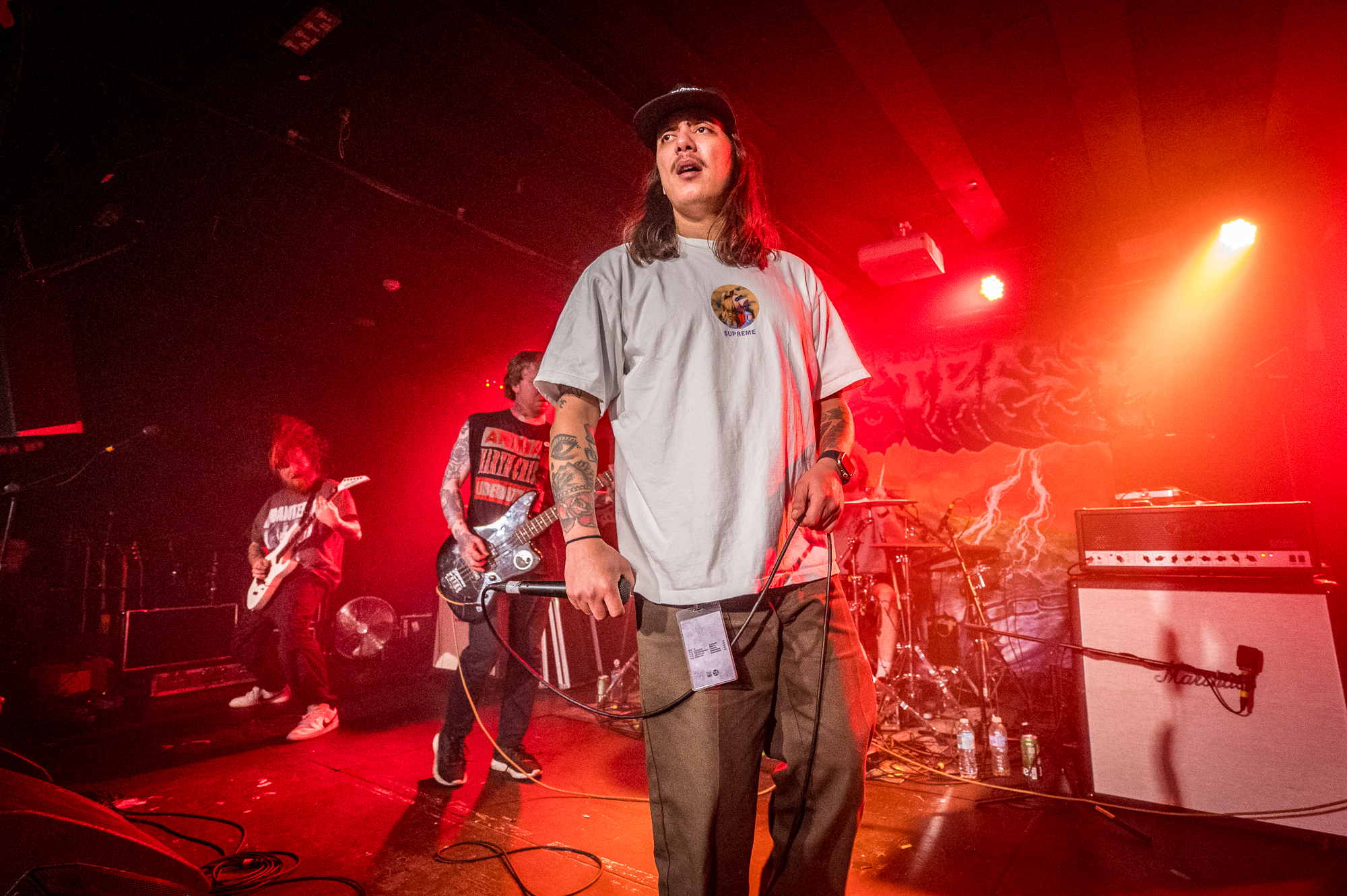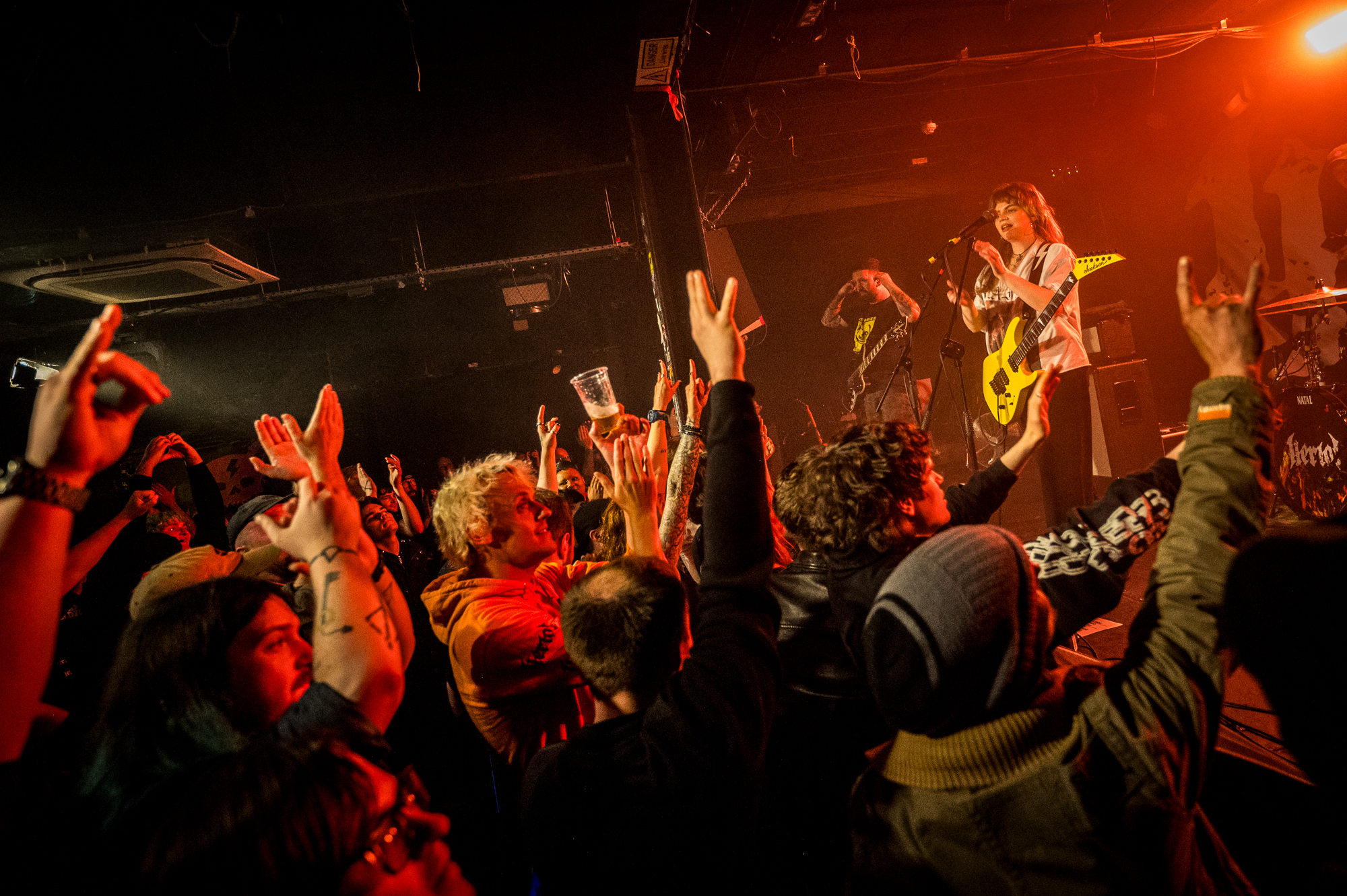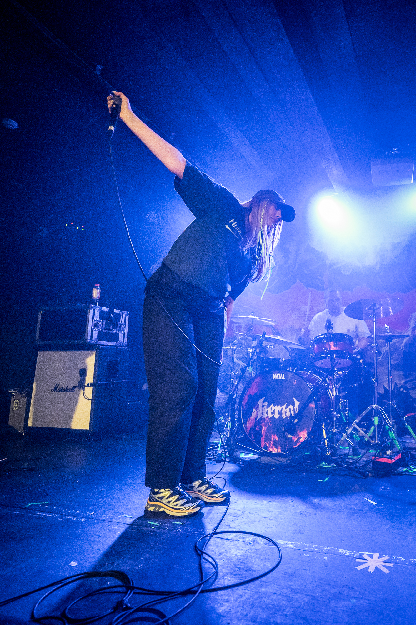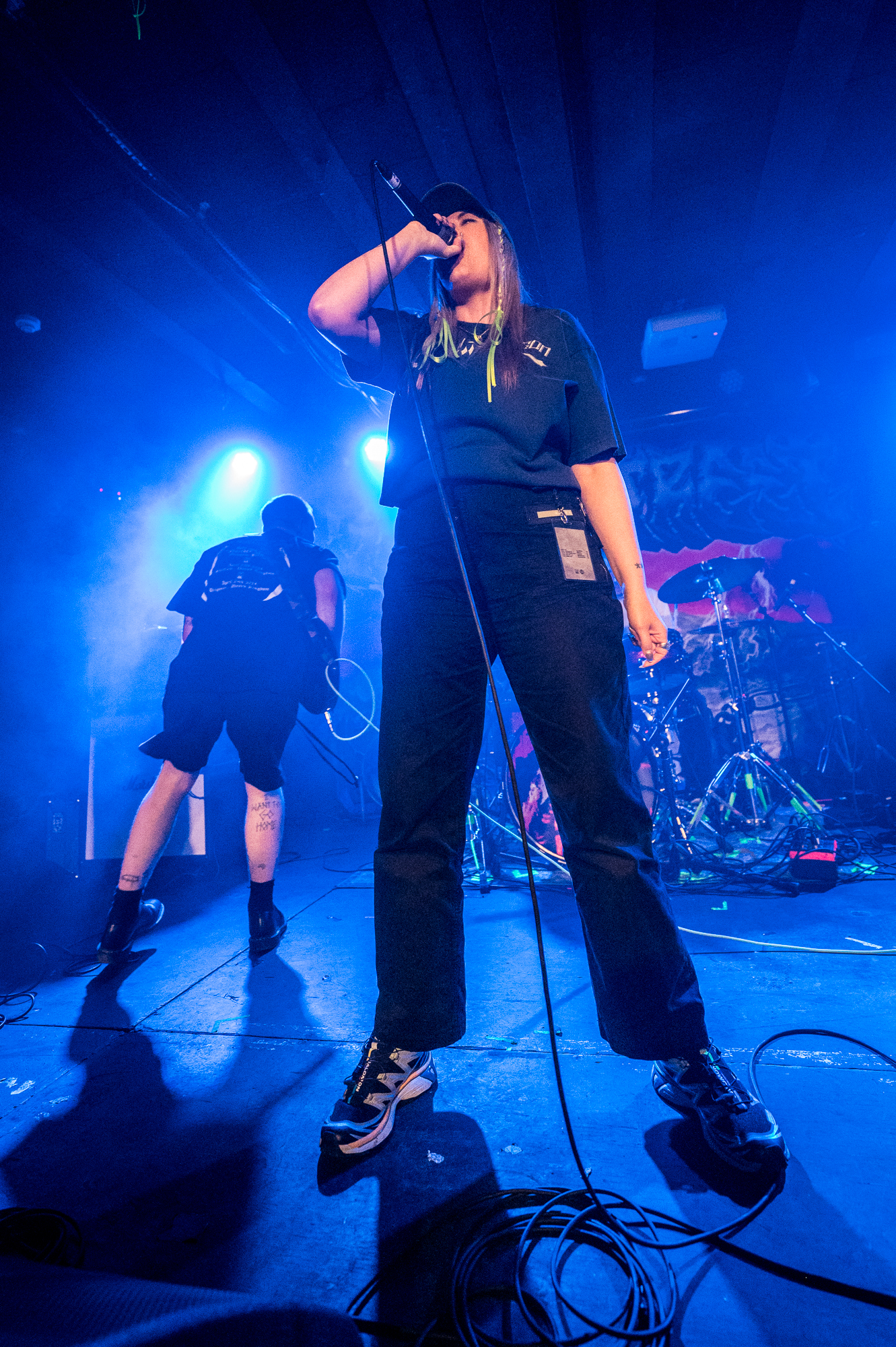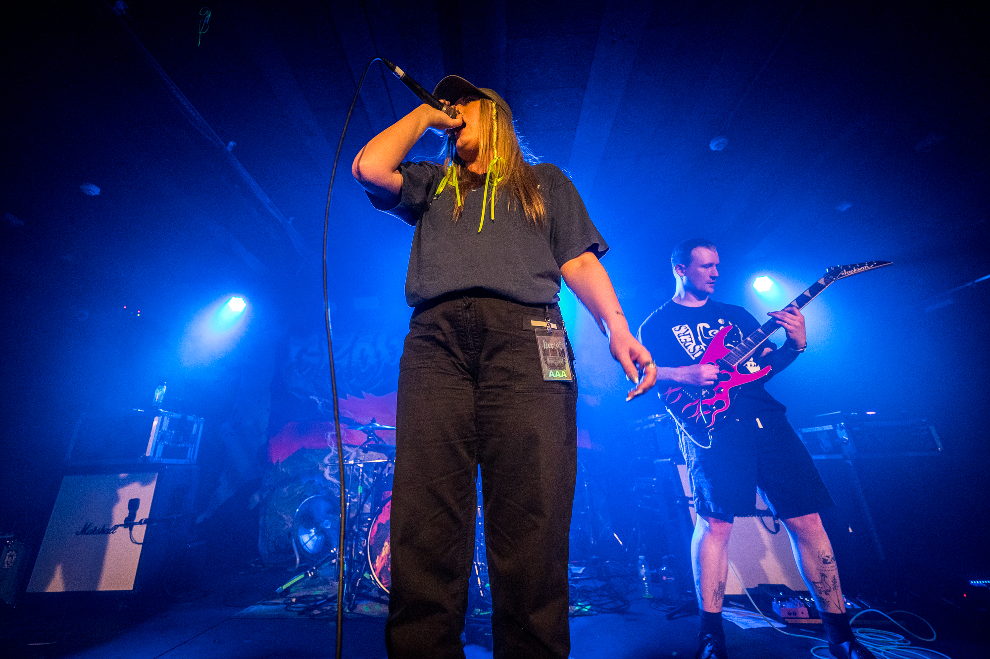 Soul Chasm, released between projects, makes the most of their sludgy, catastrophic sound, with both Debbie and guitarist E Alman’s sound reaching the boiling point as they cut above the noise. Demure commands a thick and sweaty circle pit, spun into fruition by Julian Gage’s high intensity rhythms. As an entire unit, the band performs with a wicked passion, on a high from their week of touring the country, only matching the crowd’s energy to move violently through the hot air building in the venue.