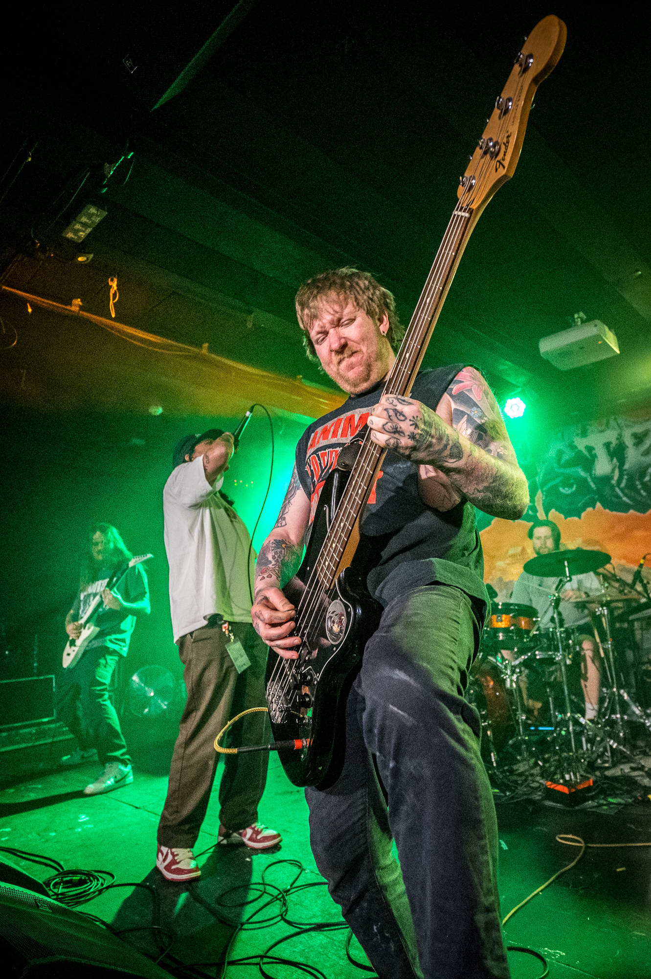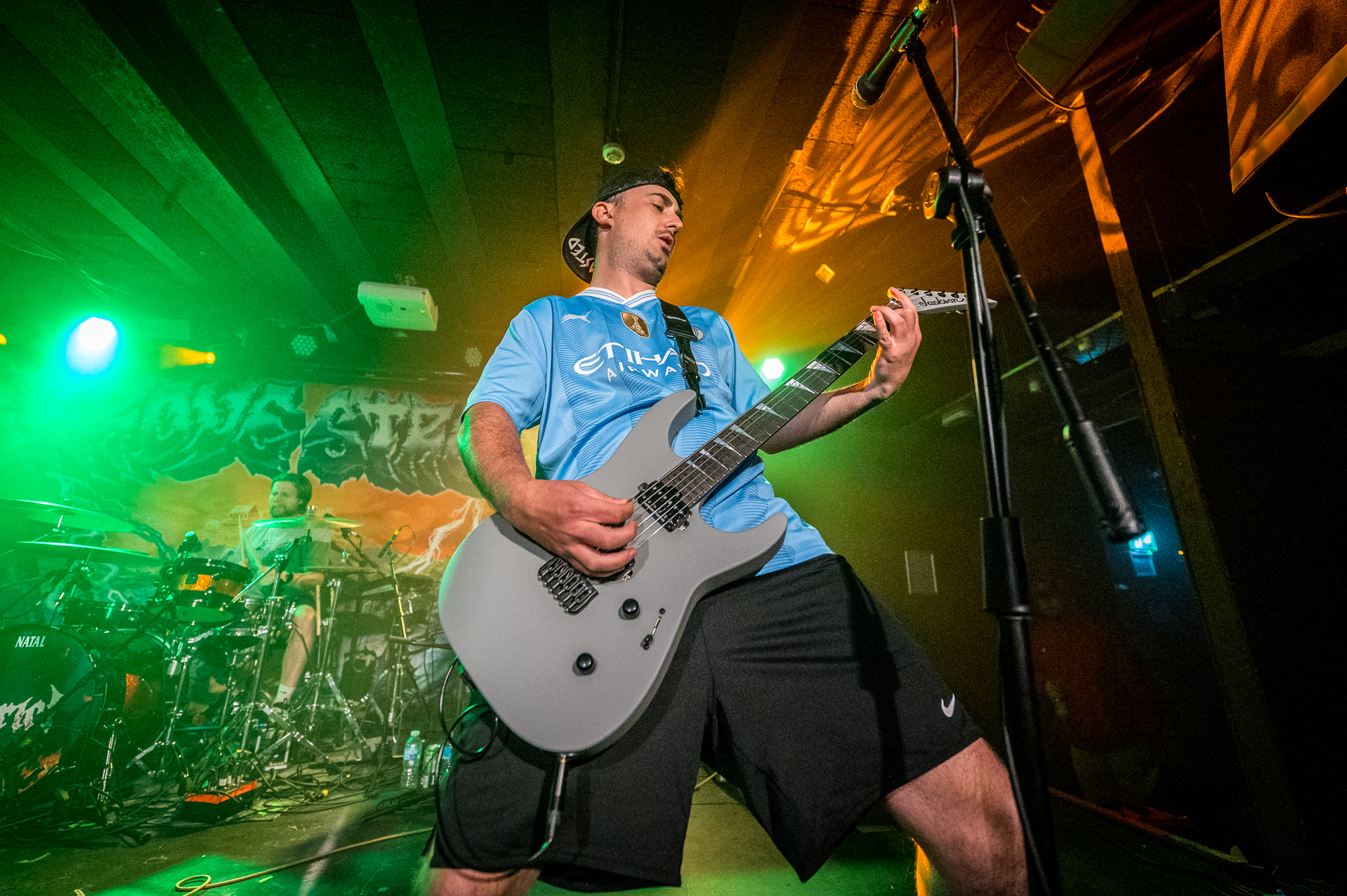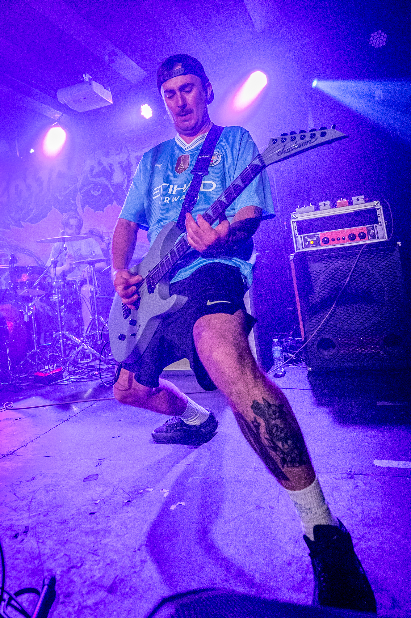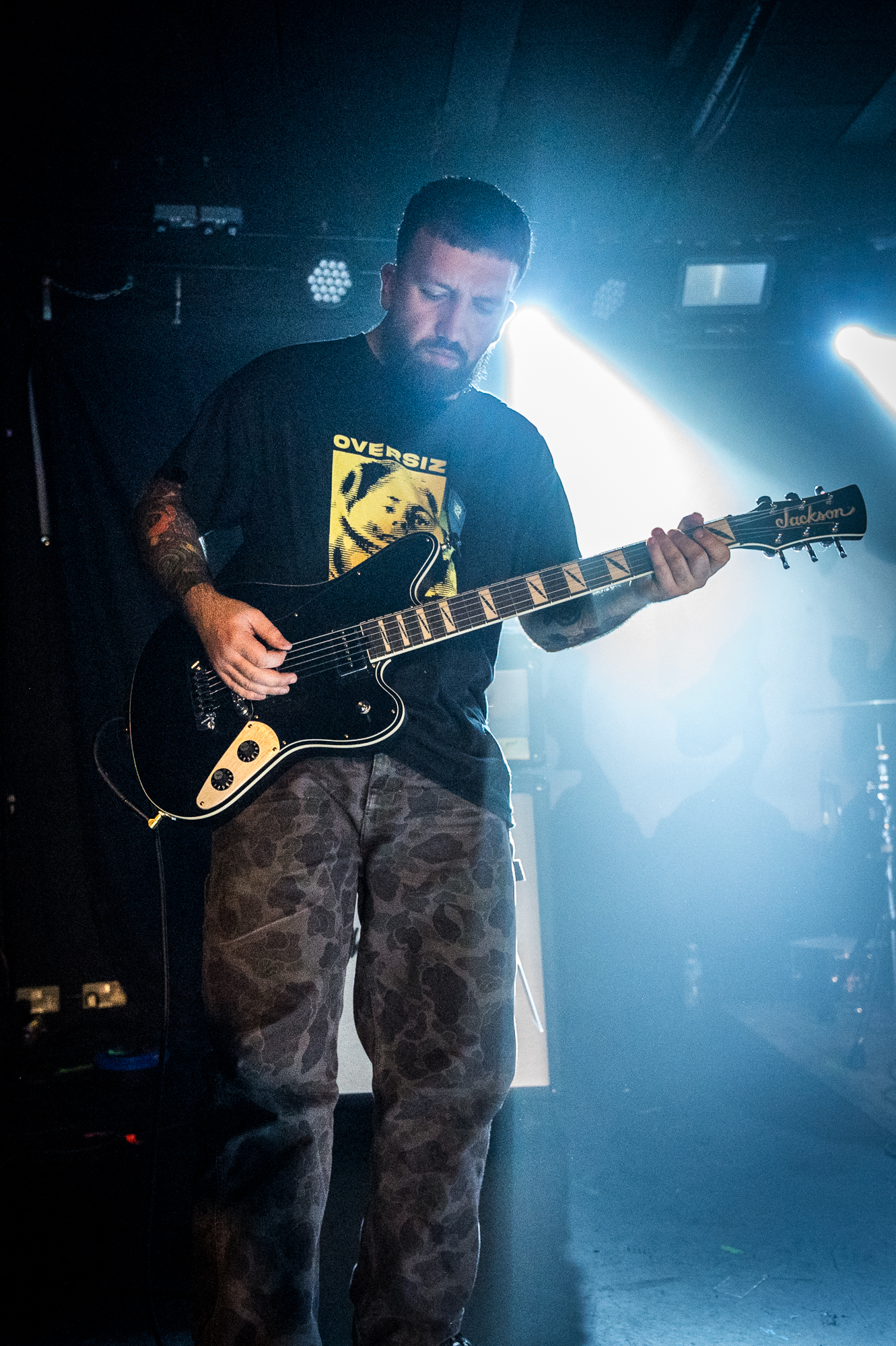 Southampton-based GROVE STREET made big moves, especially after the release of their 2023 album, The Path To Righteousness. The hardcore five-piece, who push the historic legacy of thrash to its limits, are more concerned about having fun than pit brutality. Asking the audience to come to the front, vocalist Sully explains, “We’re not that kind of band!” before setting the tempo for some much-needed headbanging. Despite a few hecklers, who made it known that guitarist Sandy was wearing a Manchester City shirt, the set was easy breezy and full of groove.