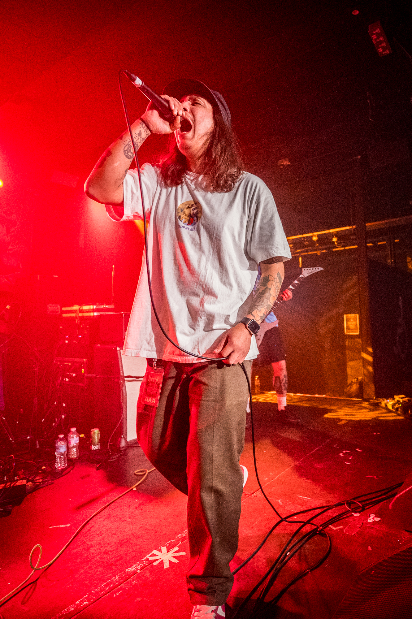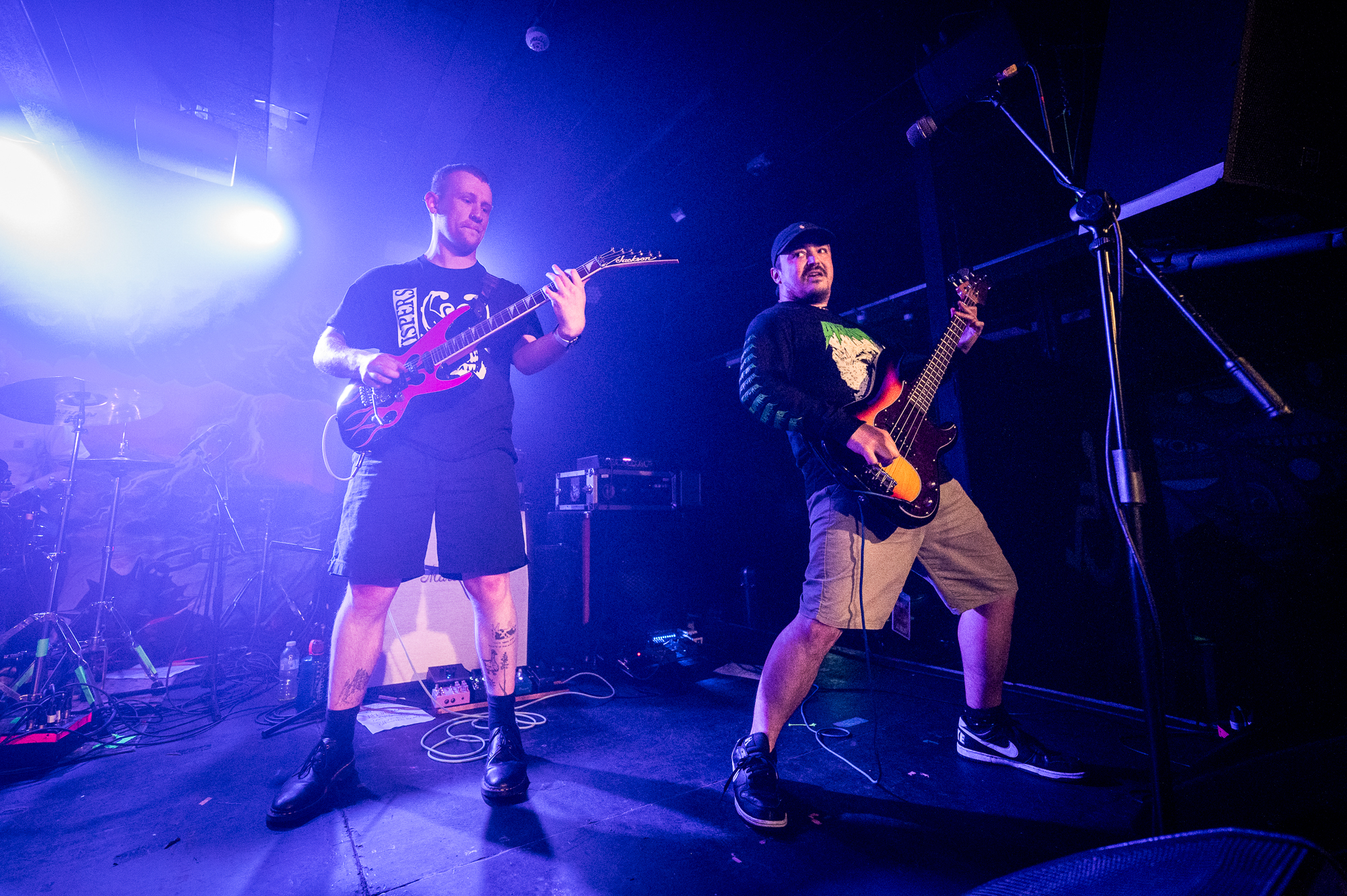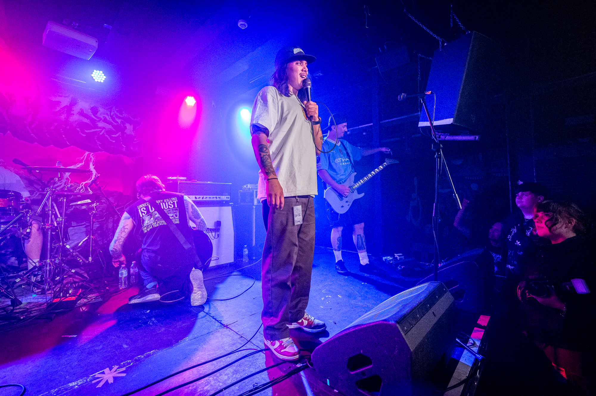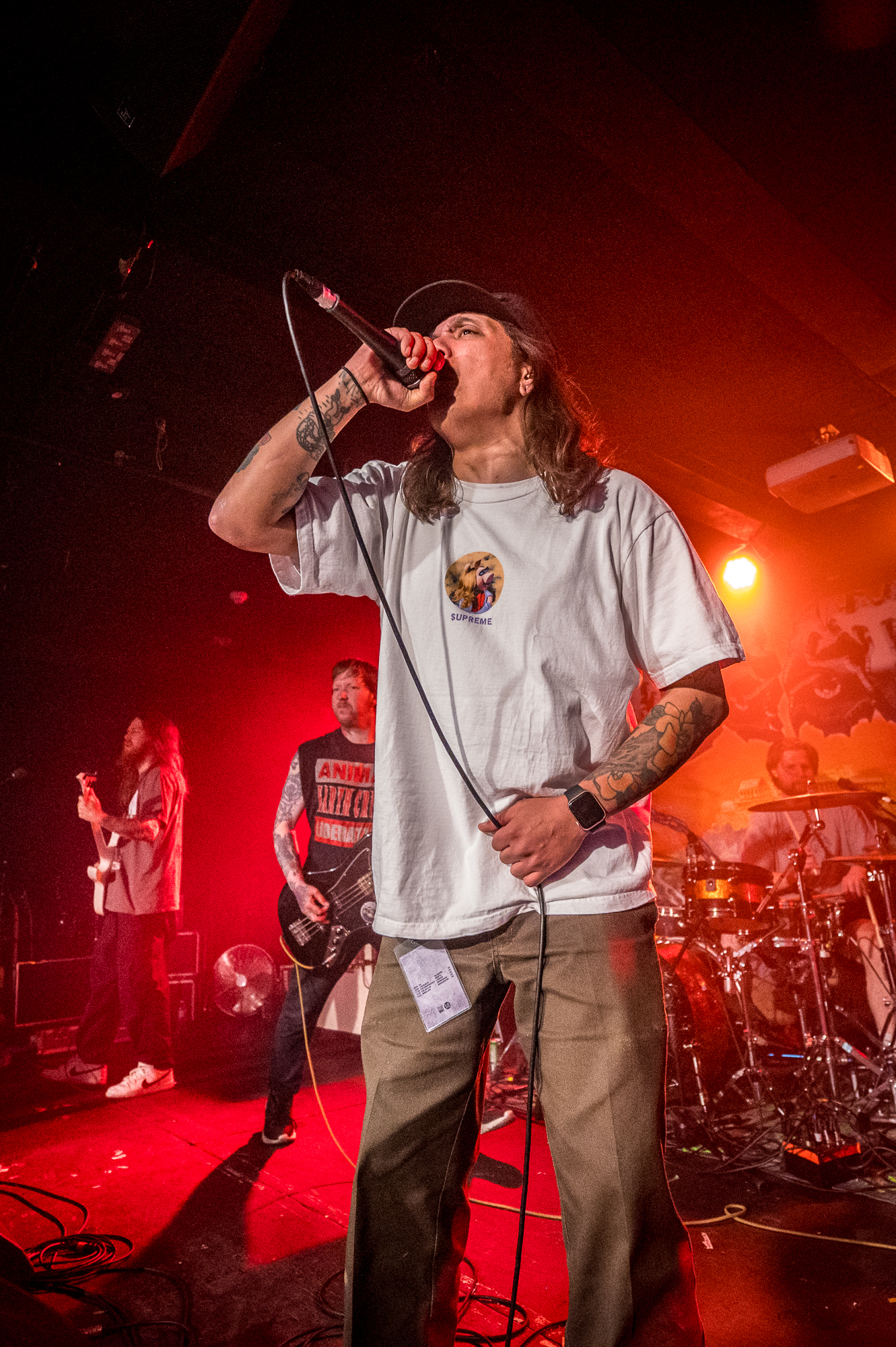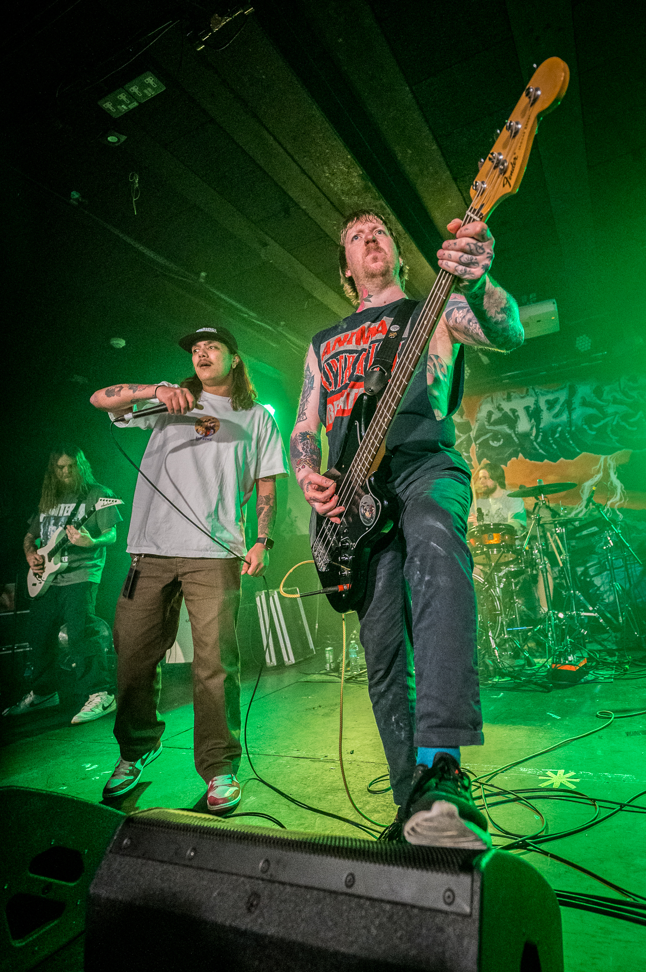 Southampton-based GROVE STREET made big moves, especially after the release of their 2023 album, The Path To Righteousness. The hardcore five-piece, who push the historic legacy of thrash to its limits, are more concerned about having fun than pit brutality. Asking the audience to come to the front, vocalist Sully explains, “We’re not that kind of band!” before setting the tempo for some much-needed headbanging. Despite a few hecklers, who made it known that guitarist Sandy was wearing a Manchester City shirt, the set was easy breezy and full of groove.