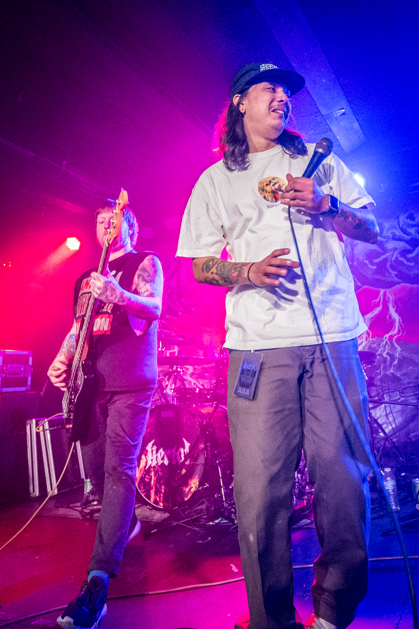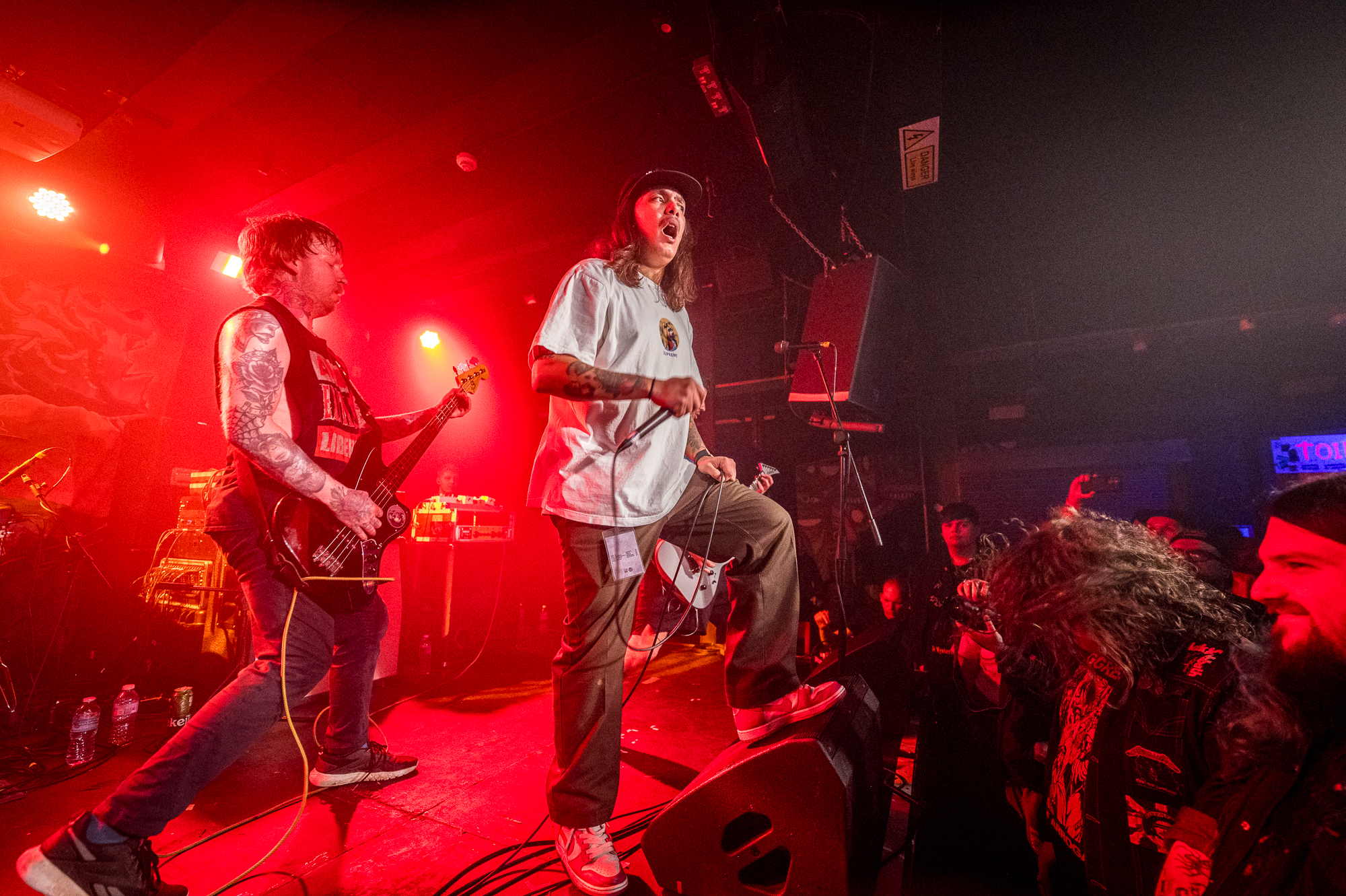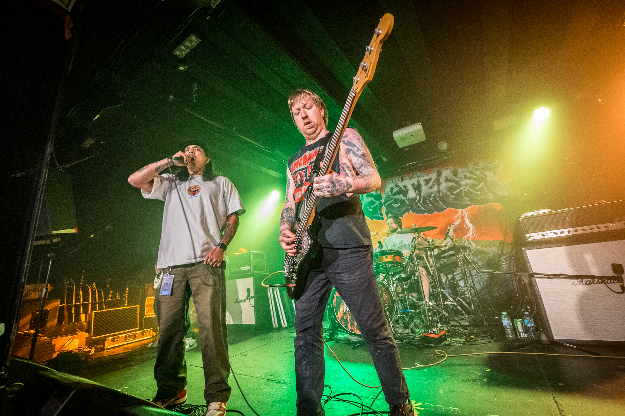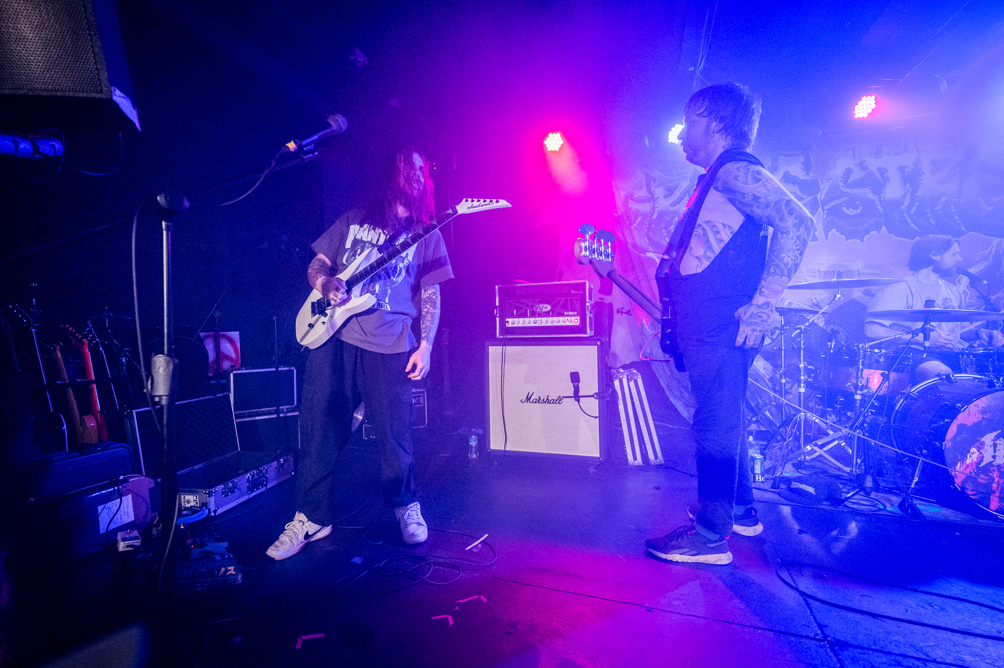 Southampton-based GROVE STREET made big moves, especially after the release of their 2023 album, The Path To Righteousness. The hardcore five-piece, who push the historic legacy of thrash to its limits, are more concerned about having fun than pit brutality. Asking the audience to come to the front, vocalist Sully explains, “We’re not that kind of band!” before setting the tempo for some much-needed headbanging. Despite a few hecklers, who made it known that guitarist Sandy was wearing a Manchester City shirt, the set was easy breezy and full of groove.
