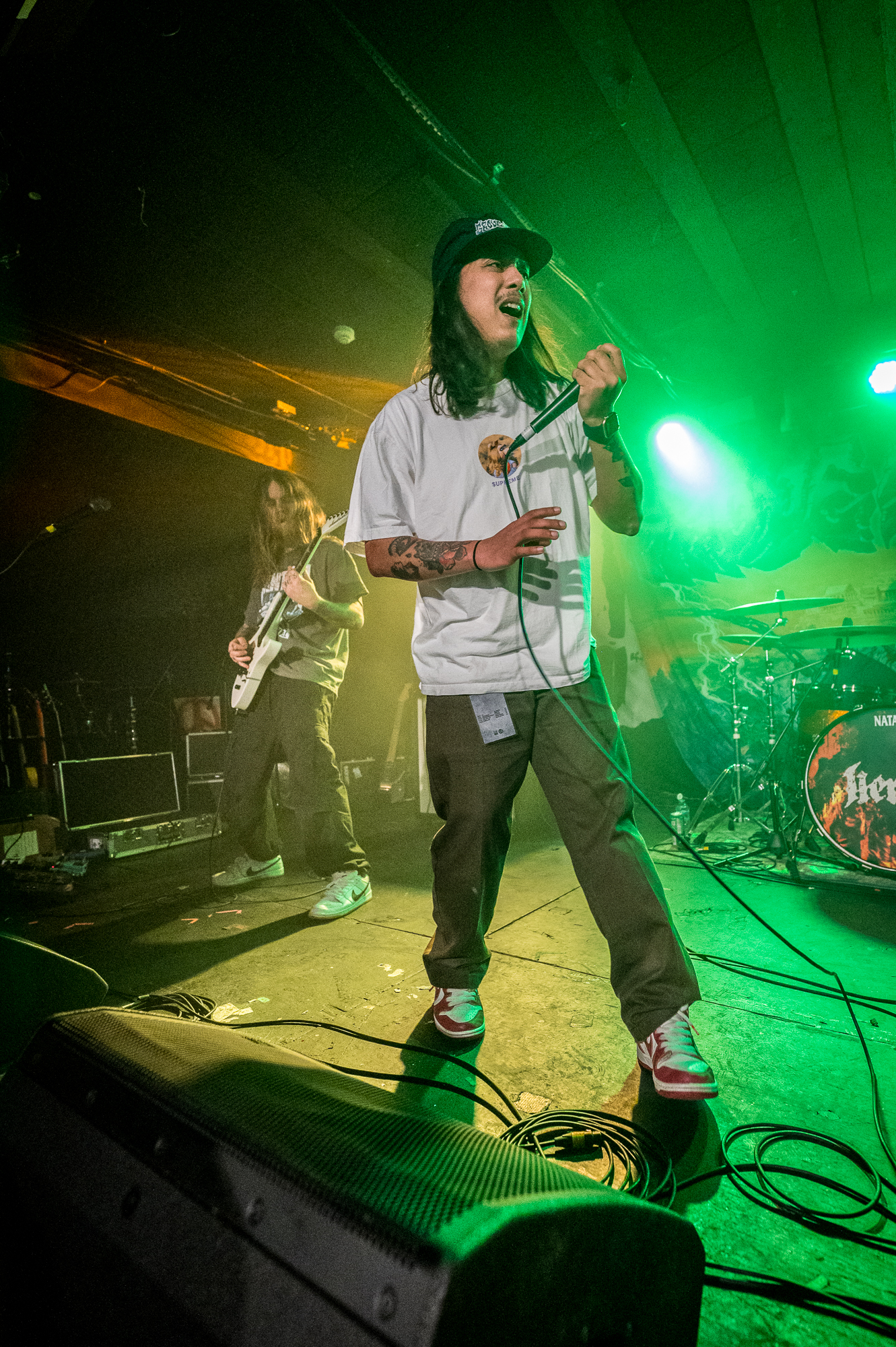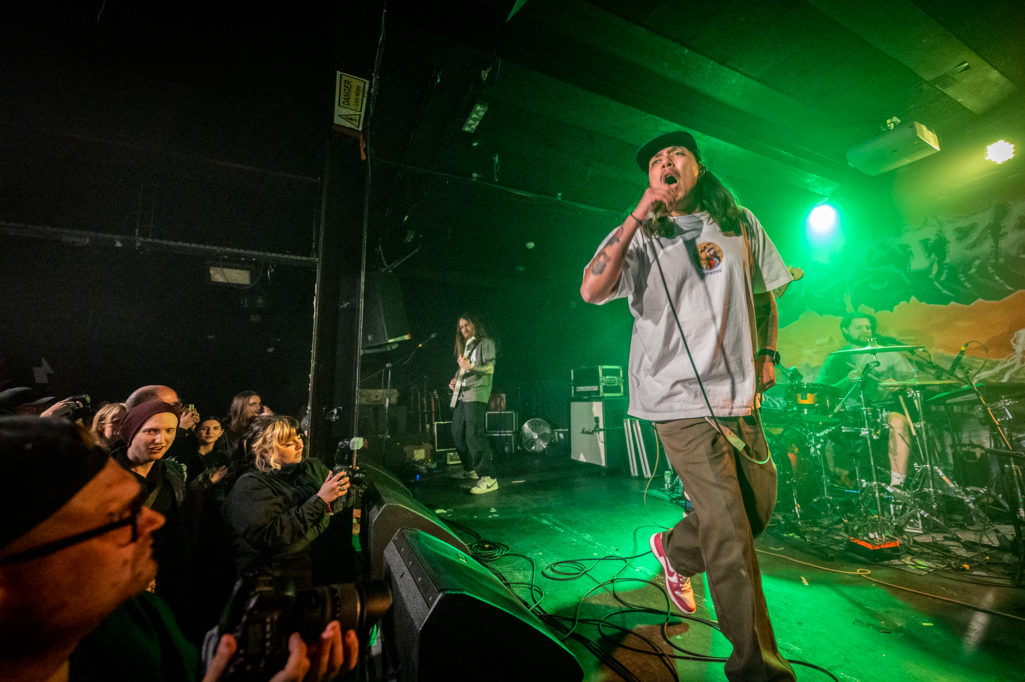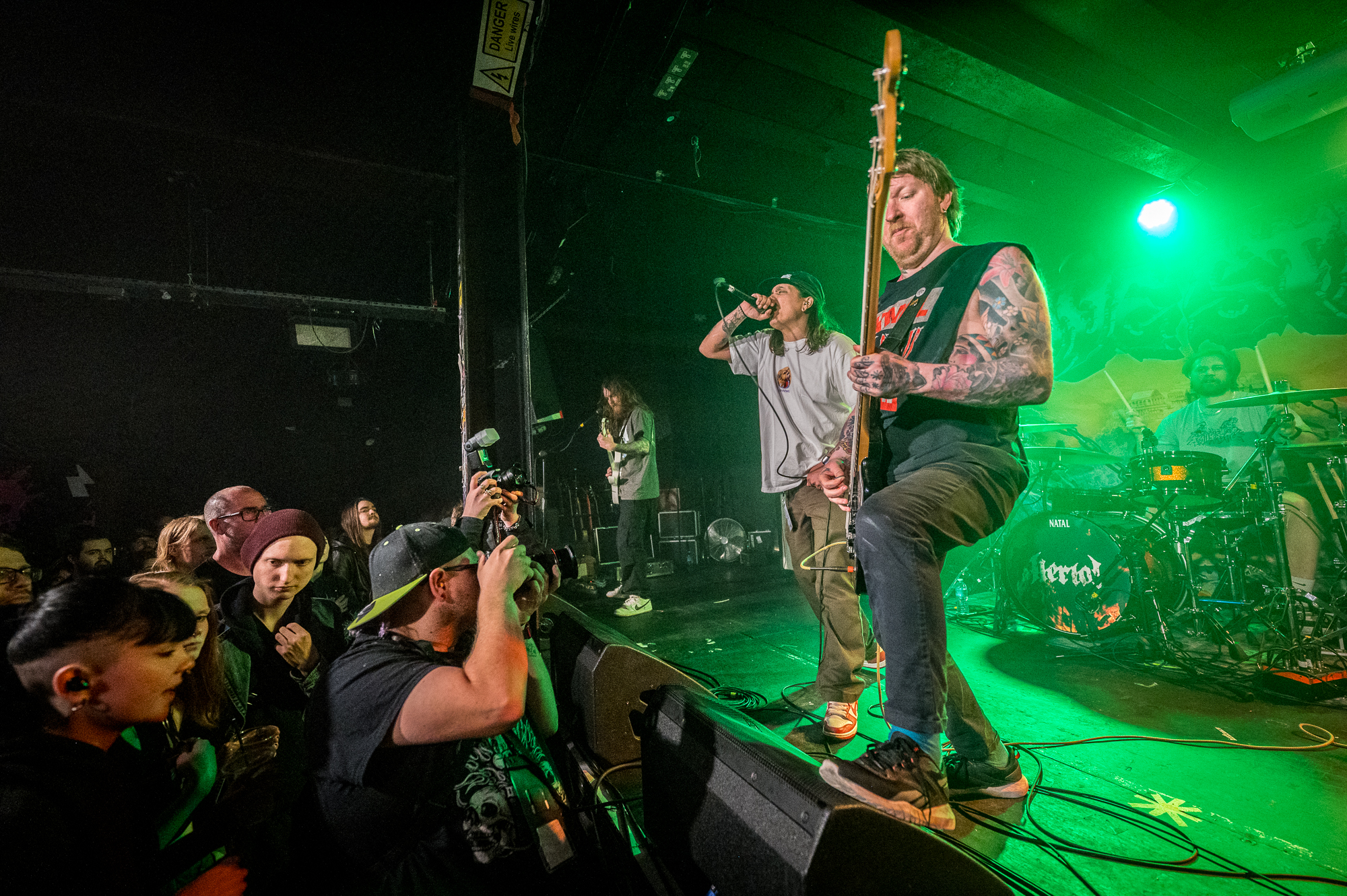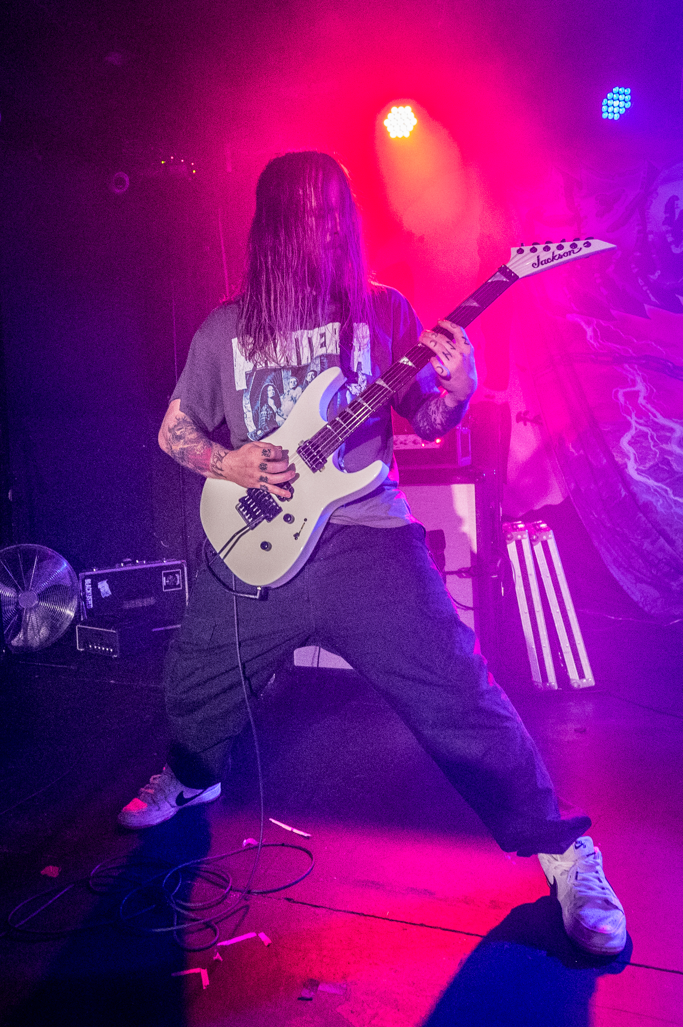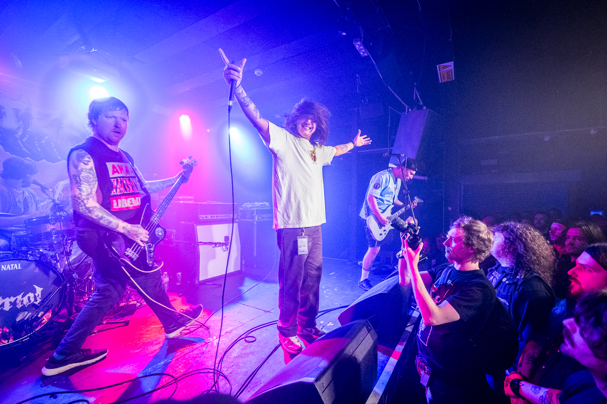 Southampton-based GROVE STREET made big moves, especially after the release of their 2023 album, The Path To Righteousness. The hardcore five-piece, who push the historic legacy of thrash to its limits, are more concerned about having fun than pit brutality. Asking the audience to come to the front, vocalist Sully explains, “We’re not that kind of band!” before setting the tempo for some much-needed headbanging. Despite a few hecklers, who made it known that guitarist Sandy was wearing a Manchester City shirt, the set was easy breezy and full of groove.