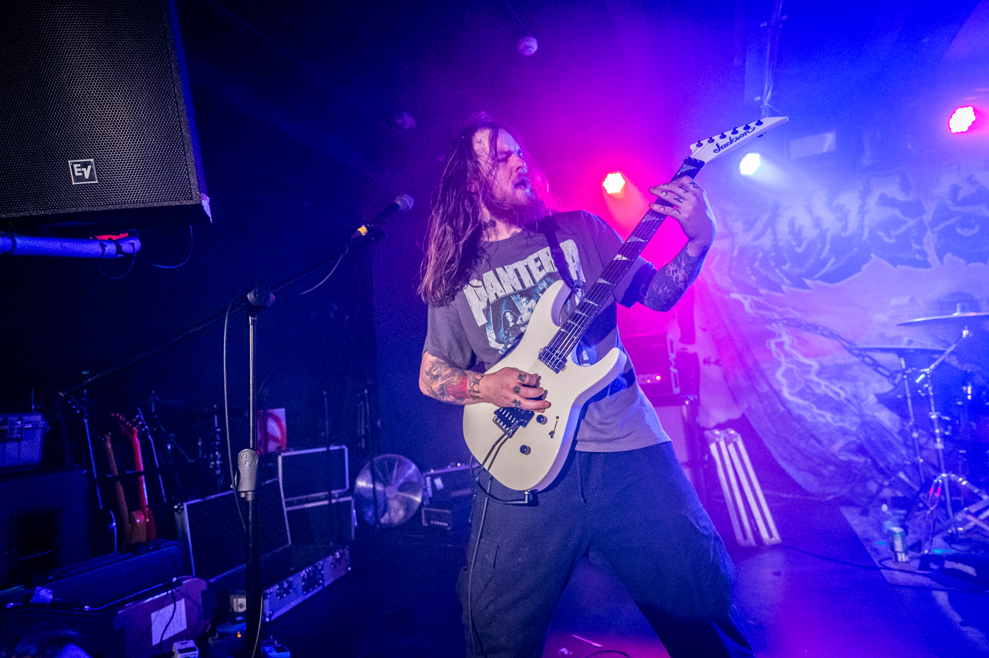In the wake of it all, favourites from 2022’s Profound Morality EP make a welcome return. Foul Void, Enter The Flesh and Dispirit weld the intense, industrial strength sound of the setlist together, without the appearance of fan-favourite Coalescence. Regardless, they made strong foundations, as the band moves towards the back end of their set. Opaline dazzles, with harrowing sung vocals- a highlight of the evening. Finishing with At The Fortress Gate, spirits ran high. A fitting victory to their week of touring.