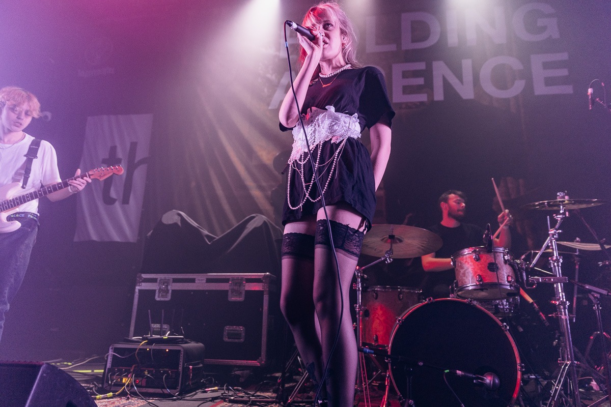 Just as the decision to revisit the various towns and cities devoid of their presence over recent years is reflective of HOLDING ABSENCE‘s establishment in the scene, so too is the decision to have a myriad of opener acts. For Stoke, we’re blessed with the presence of LIZZY FARRALL, a solo artist whose stock is certainly on the rise. And with plenty of people crammed into the intimate confines of The Sugamill from the get-go, there’s countless on eyes on Farrall and her bandmates as she delivers a set of alt class. With a bulk of material from 2020’s Bruise on show (from the topical Gas Lighting to the synth-tinged pulses of Addict) and a sneak preview of new material receiving a live rendition, LIZZY FARRALL performed with an abundance of energy and armed with enough wit and quips inbetween songs to keep your attention fixated towards the stage. Whilst the crowd’s reservation to participate was a slight blemish, there’s no doubting that LIZZY FARRALL is a hidden gem in the UK alternative scene.