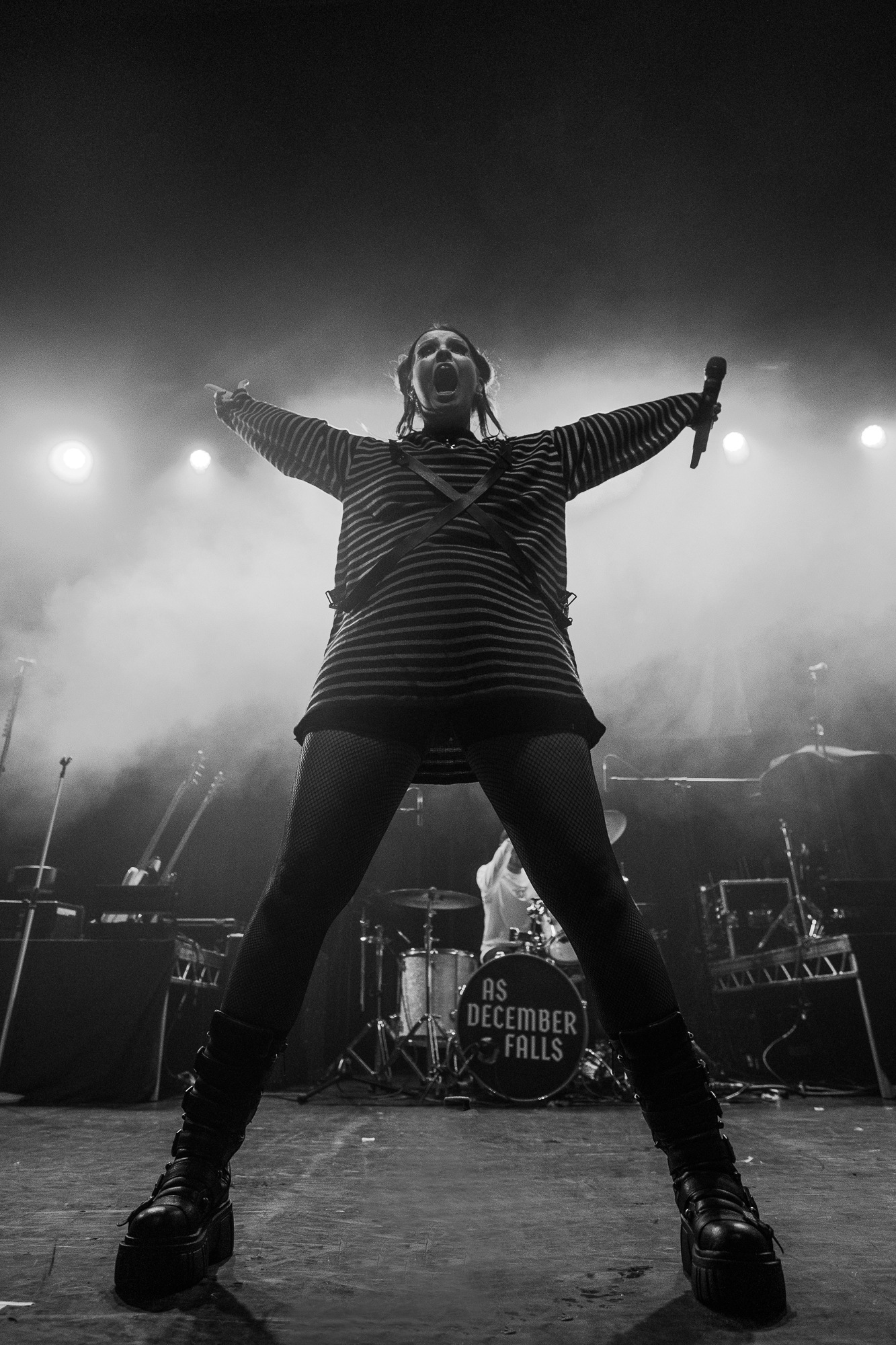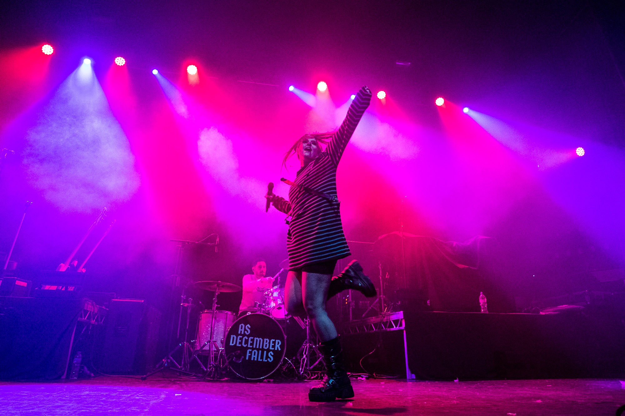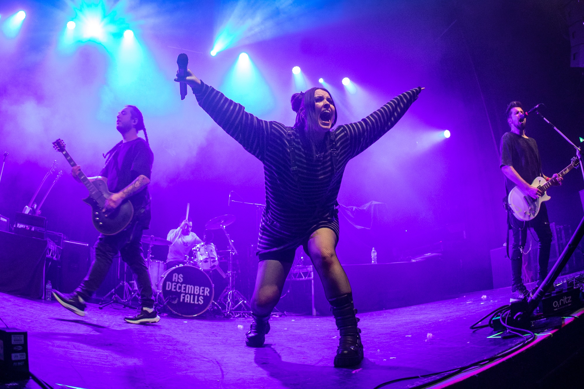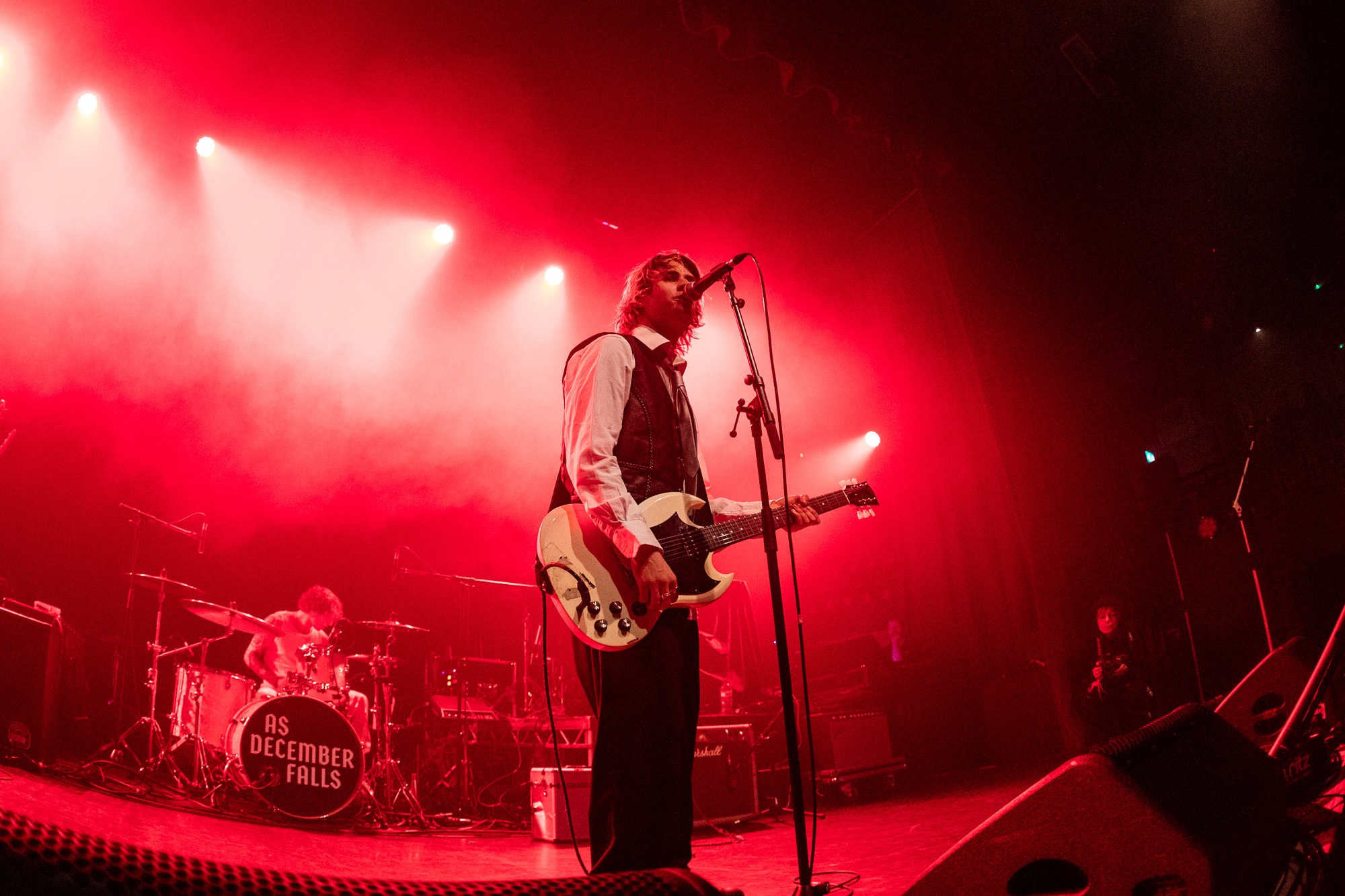 The penultimate group of the night are clearly one that are almost as anticipated as our headliners with an impressive number of shirts in the room reading the name AS DECEMBER FALLS. The fourpiece emerge powerfully to their track Go Away immediately providing feel good hooks and powerful riffs. The energy of the room promptly elevates with arms raised and feet off the ground and is mirrored universally by the band, with both guitarists making best use of their wireless systems pirouetting in tandem around the stage. They utilise the response in the room, encouraging multiple singalong moments throughout the set notably for the chorus of their pop punk anthem No Money, the effectiveness of which leaves the whole group looking euphoric. Their reception can’t be denied, and AS DECEMBER FALLS have shown their prowess at raising the energy in the room flourishingly.
