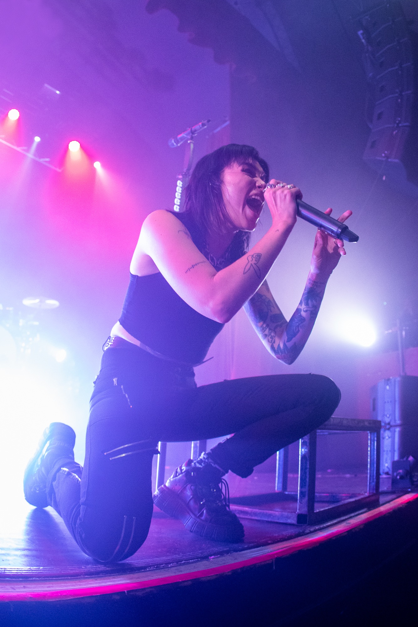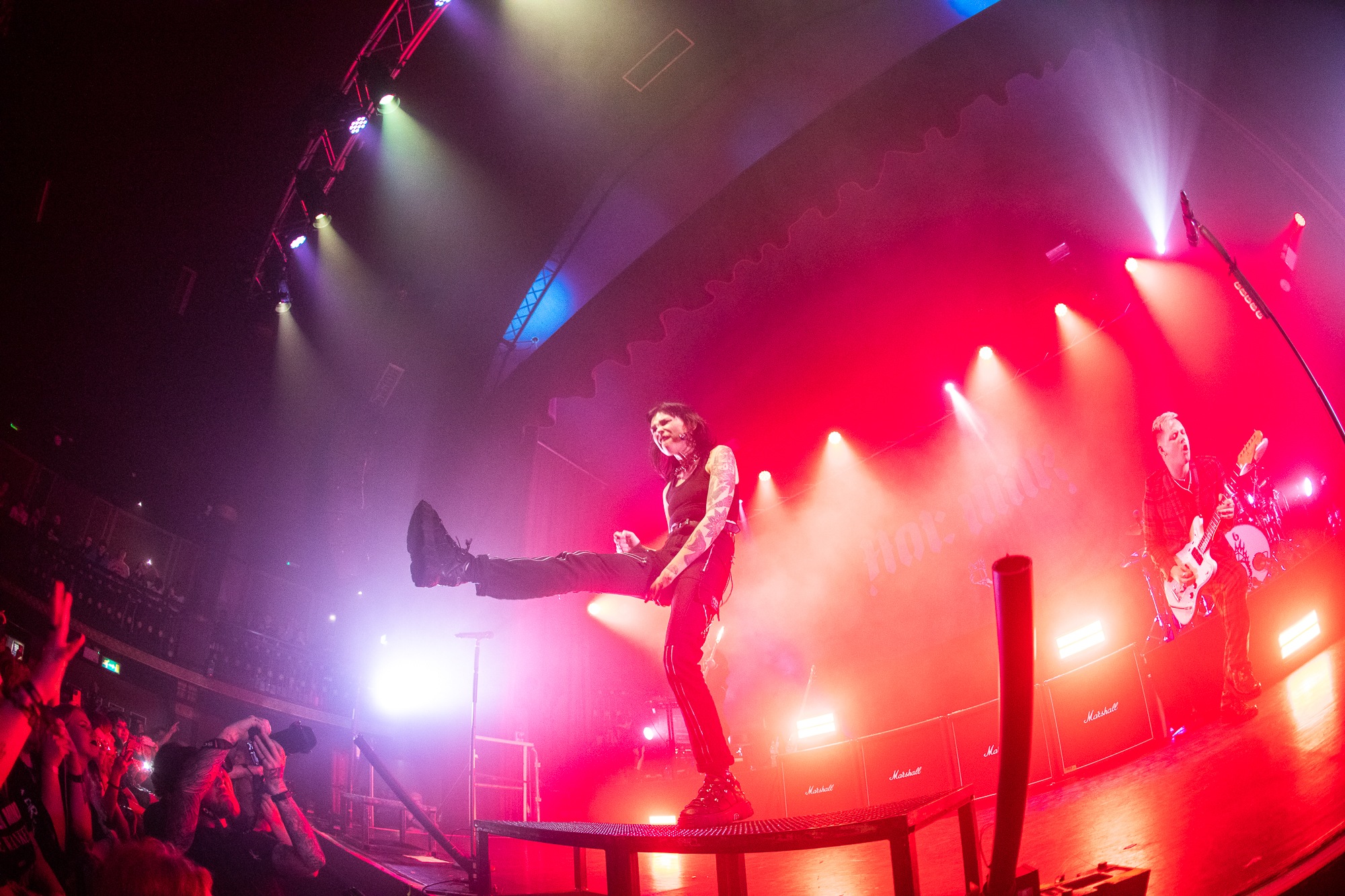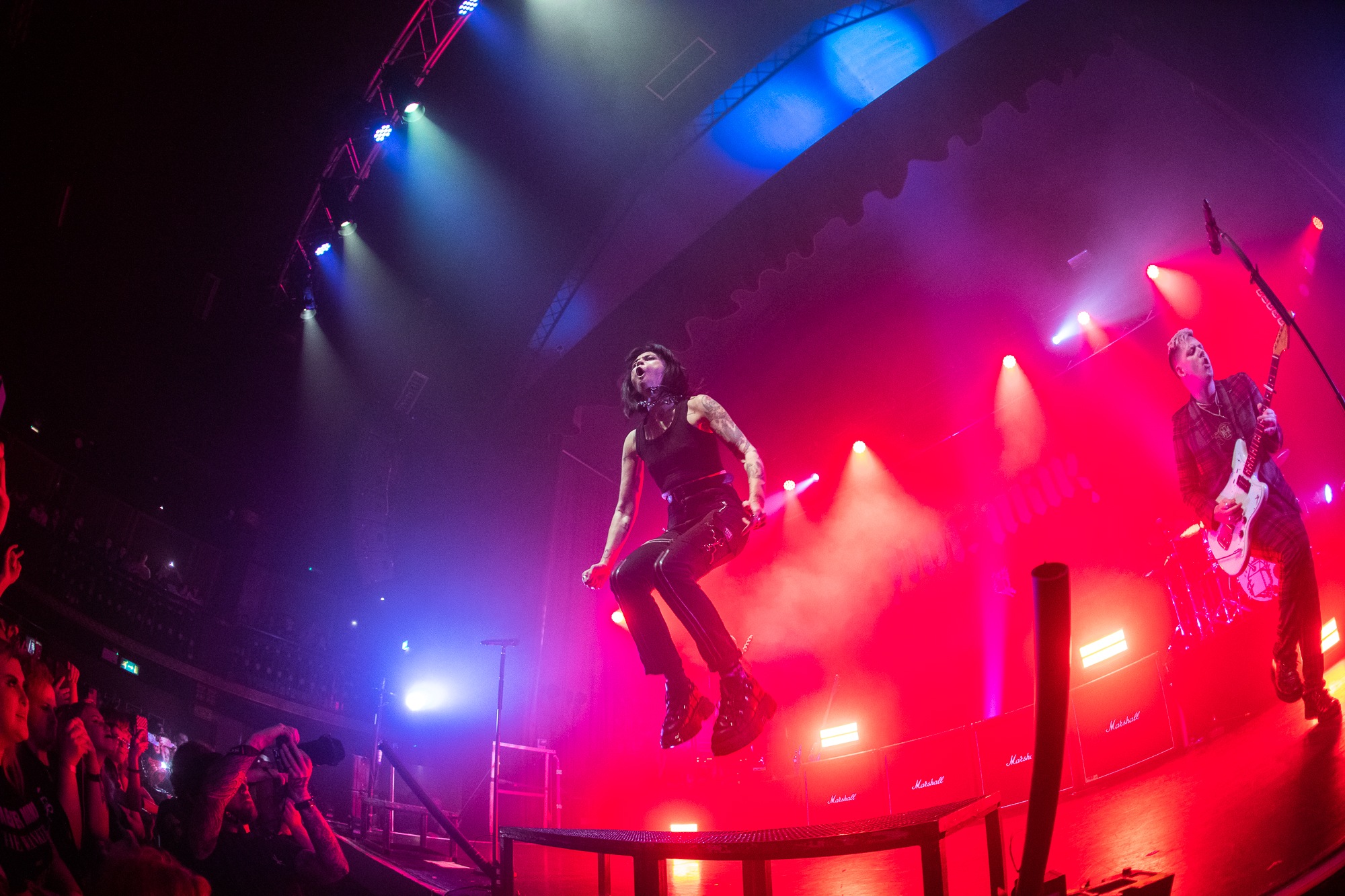 “Let’s lose some braincells” shrieks Mee before travelling headlong into I Just Wanna Know What Happens When I’m Dead, an arguable highlight of which was Shaw breaking into Teenage Dirtbag during the acoustic bridge section to a mass of cheers. The positive energy they create is a testament to the catharsis they visibly offer for their fans. “We want everyone to feel welcome here. Right now, we’re going to pretend we don’t hate ourselves sometimes” they announce leading into I Think I Hate Myself, a track which even gets JOOLS vocalist Mitch Gordon crowd surfing over the barrier.