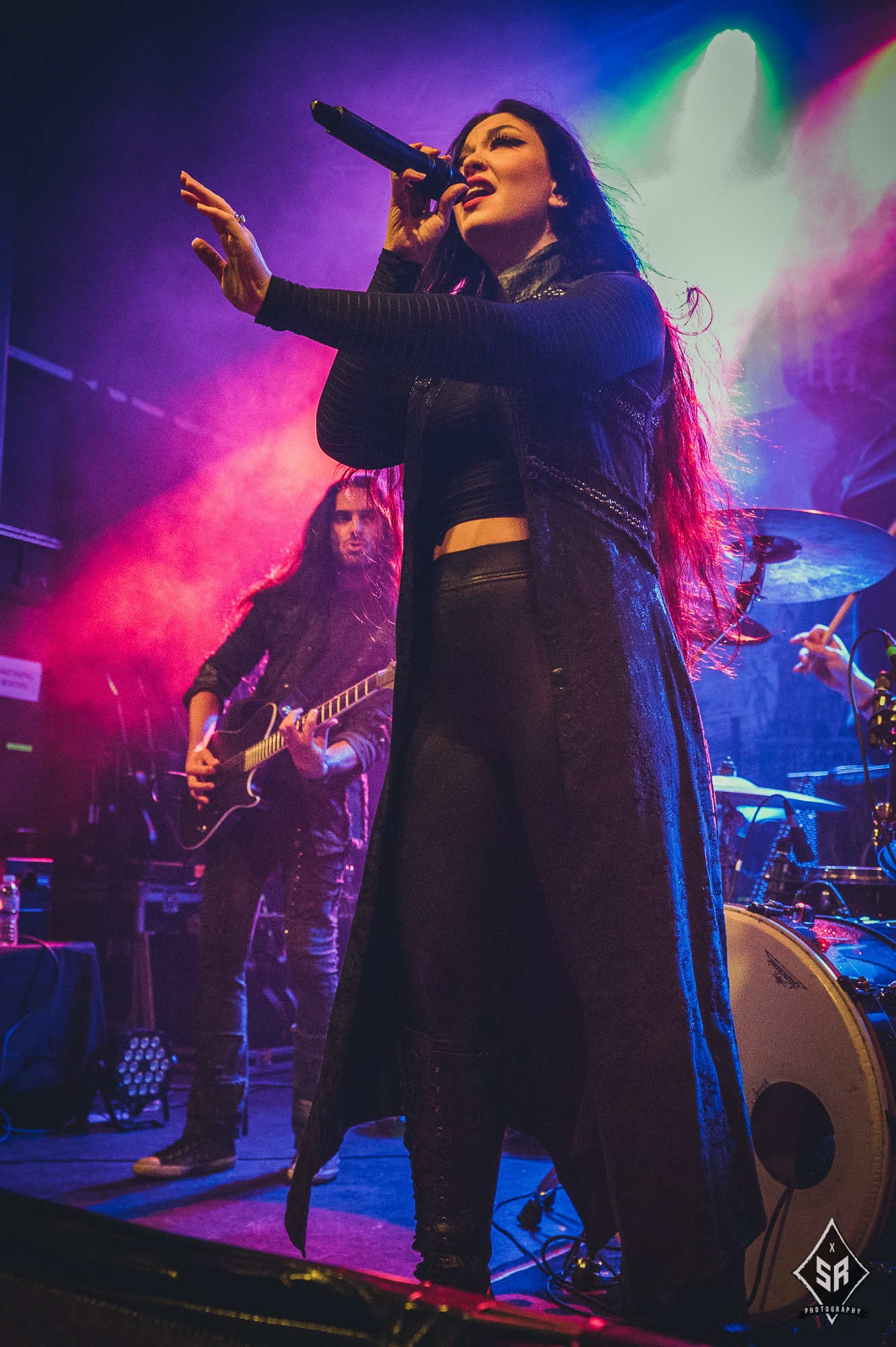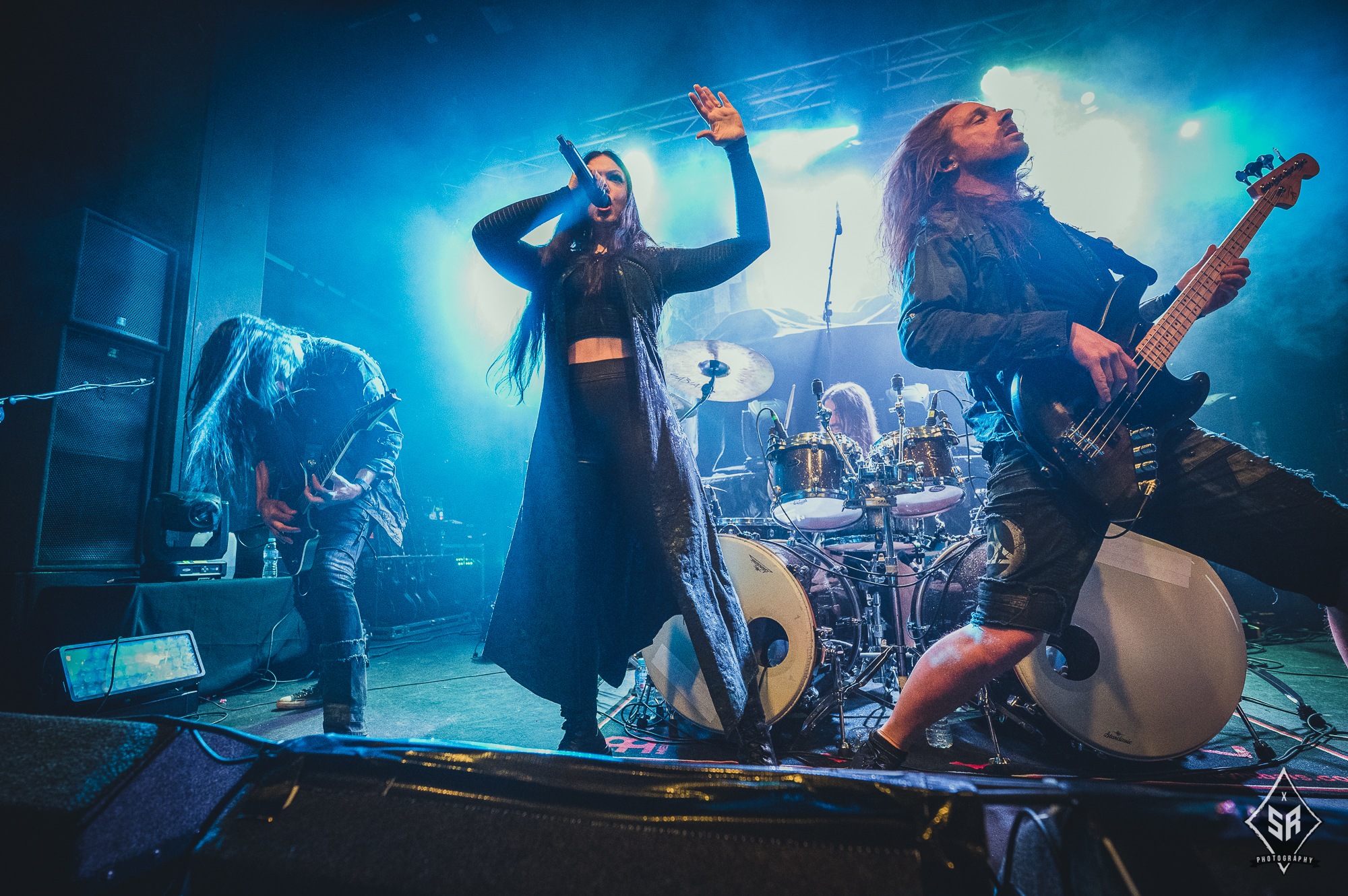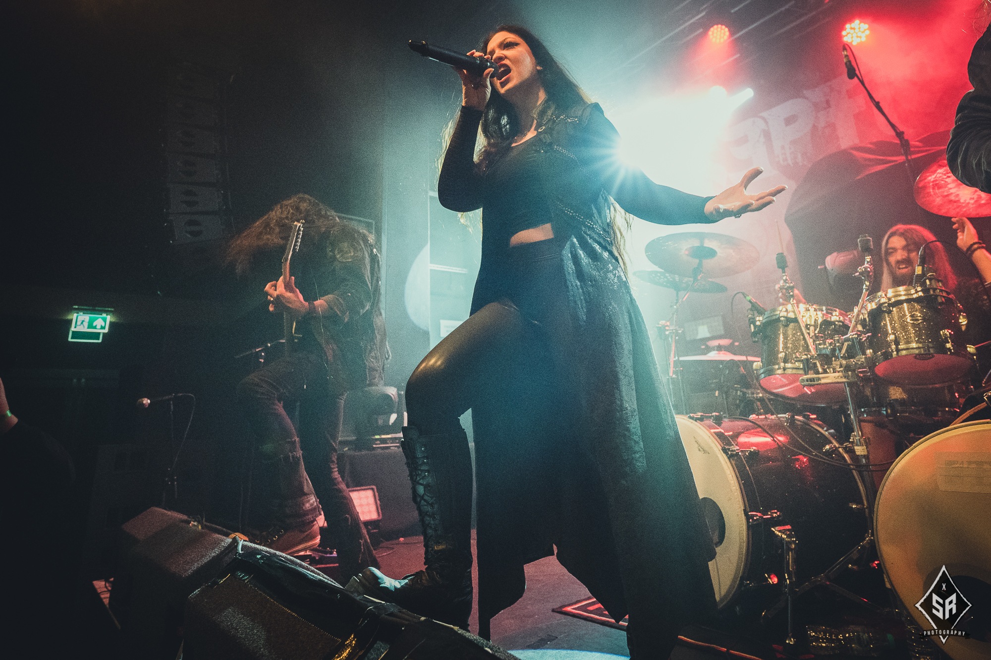 THE AGONIST took over for a short and bittersweet set which got everyone thinking, “this is going to be a fantastic night”. Getting fans and non-fans moving, cheering, roaring, it’s a great sign for their future in UK touring. Vocalist Vicky Psarakis was the standout star of the set: being the frontwoman of the Canadian outfit, she brings the range of clean and unclean vocals with no skipping beats. No note out of place. The melodic motions of her voice is enough to bring the angels to the Manchester venue; while the growls are slamming those white-winged wonders into the depths of hell. Captivating and enticing. That’s how you kick a show off.