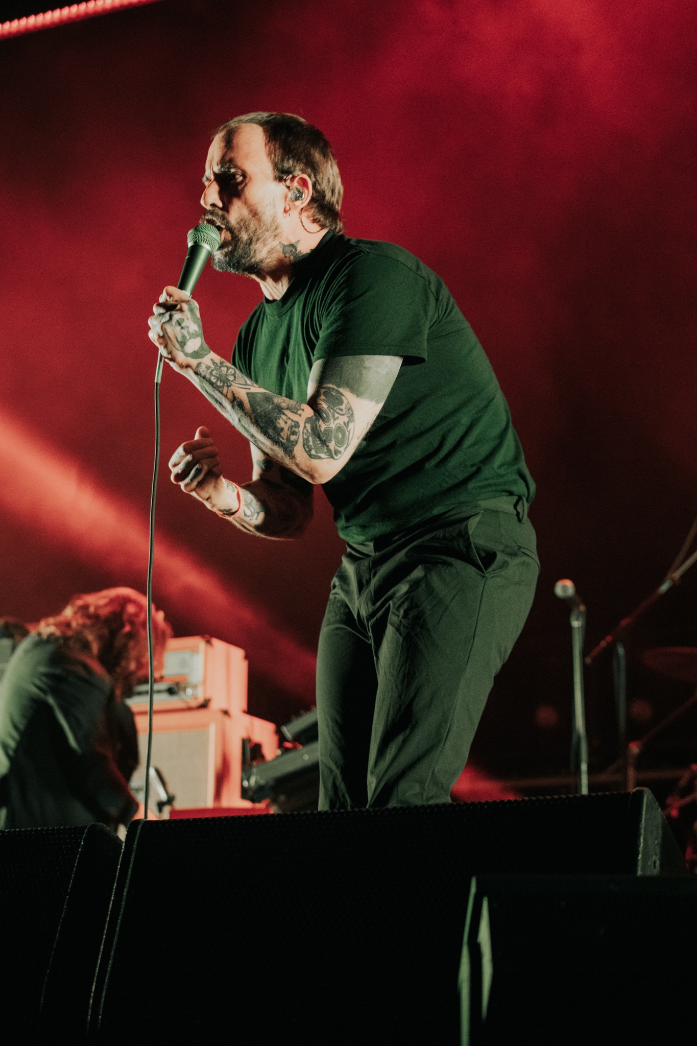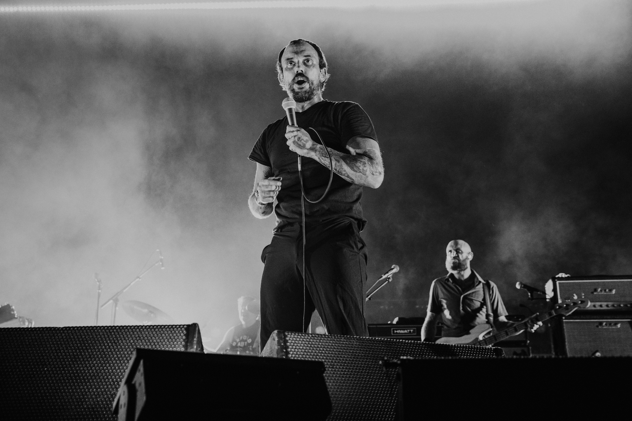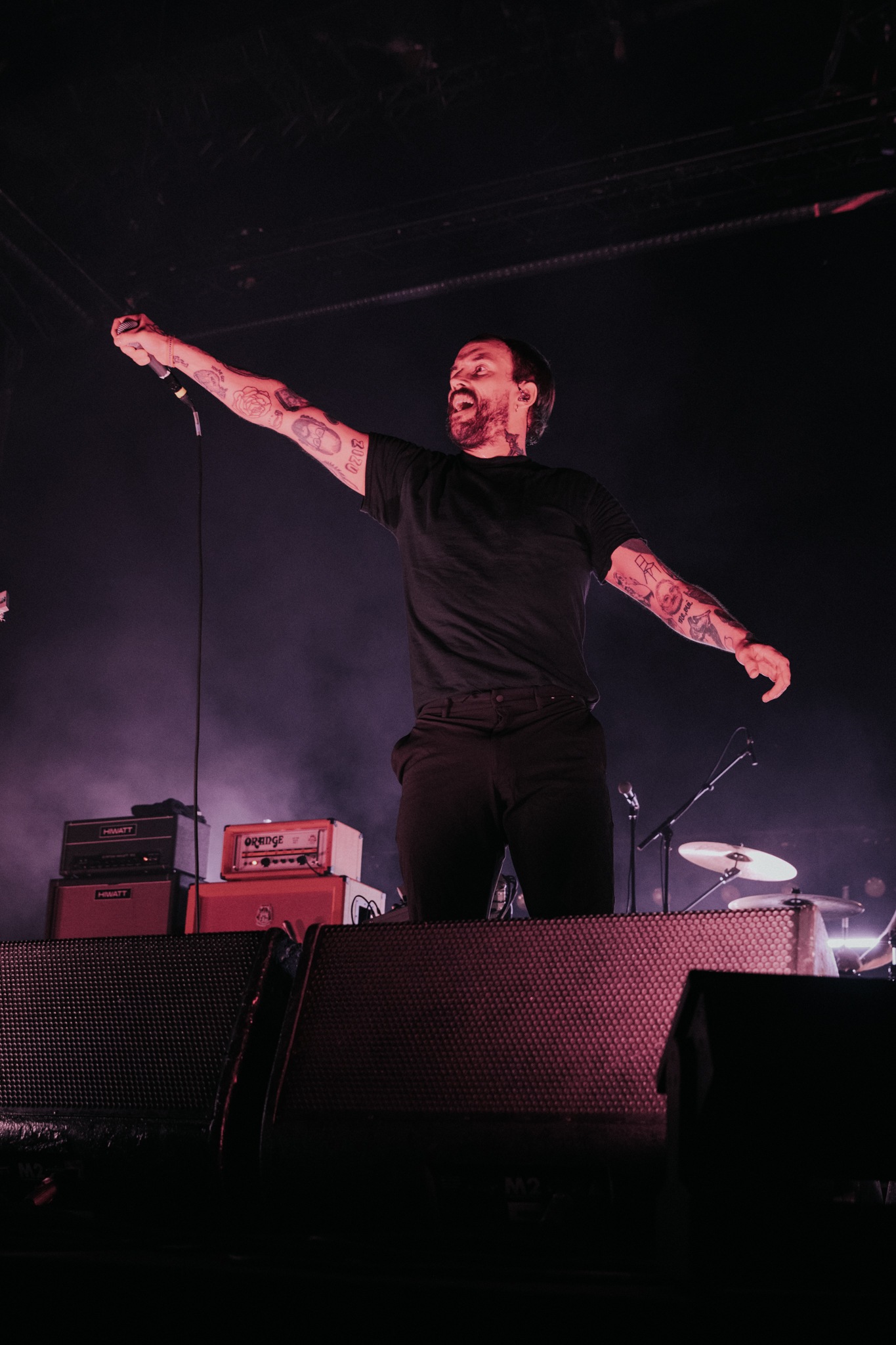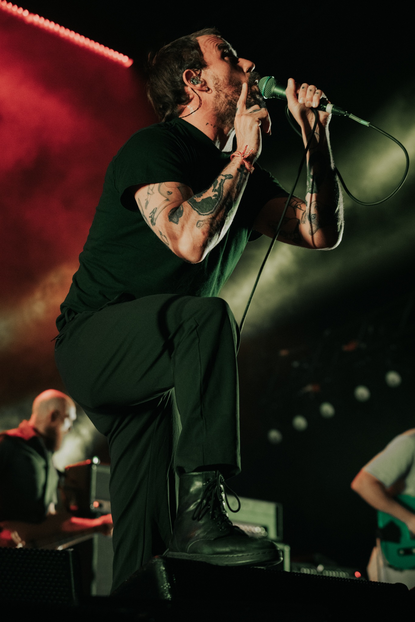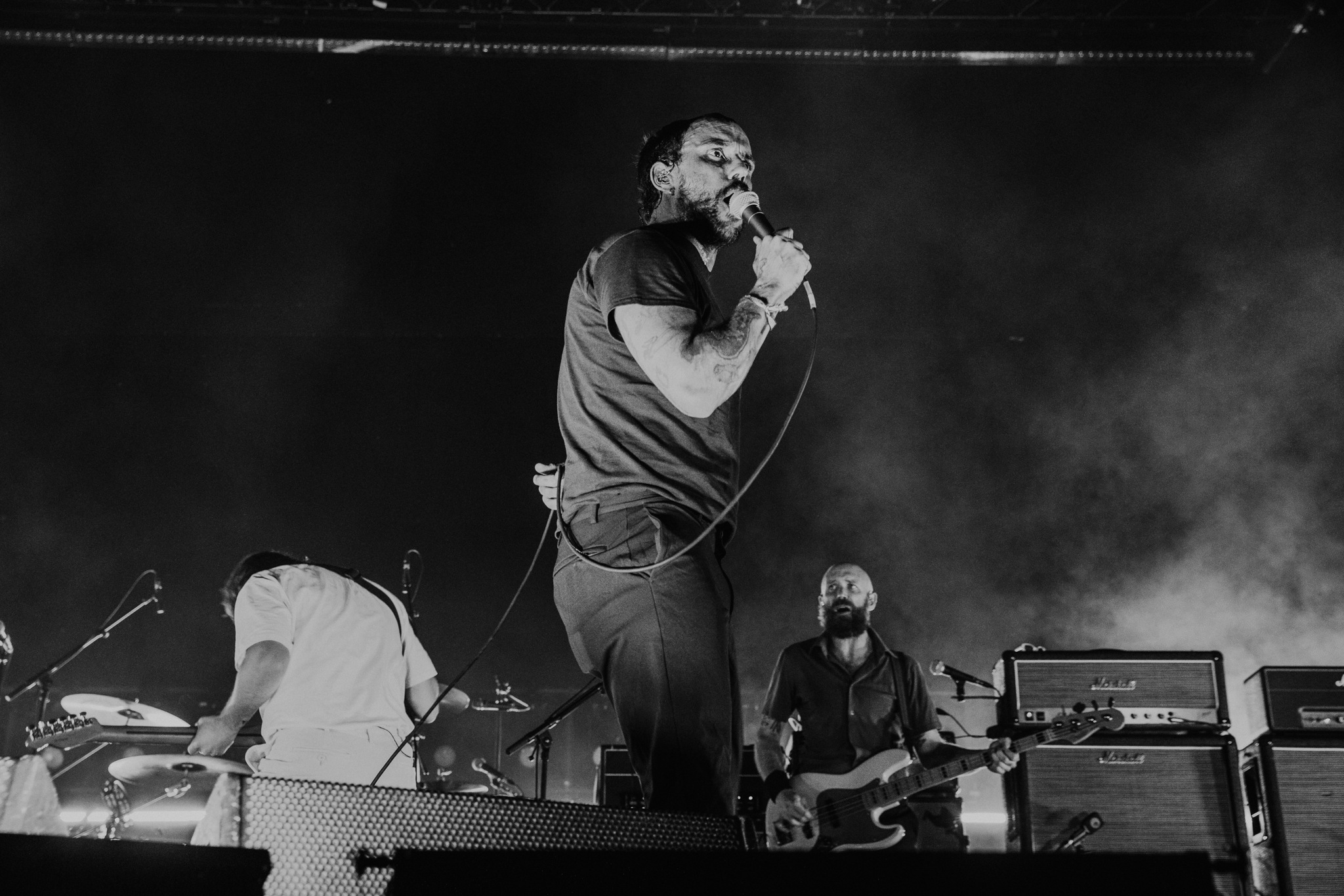 In fact, it may be at least 10x worse than any other gig we’ve had the chance to photograph. Before the end of their opening track, the audience has already been ordered to split in two ready for the ending and they follow orders directly from vocalist Joe Talbot. IDLES are known for the energy that surrounds their live shows and tonight was a prime example of why that is. Before we can even leave the photo pit, we end up sharing the space with guitarist Lee Kiernan, who has decided to jump down off the stage and into (or onto) the crowd, all while still playing guitar.