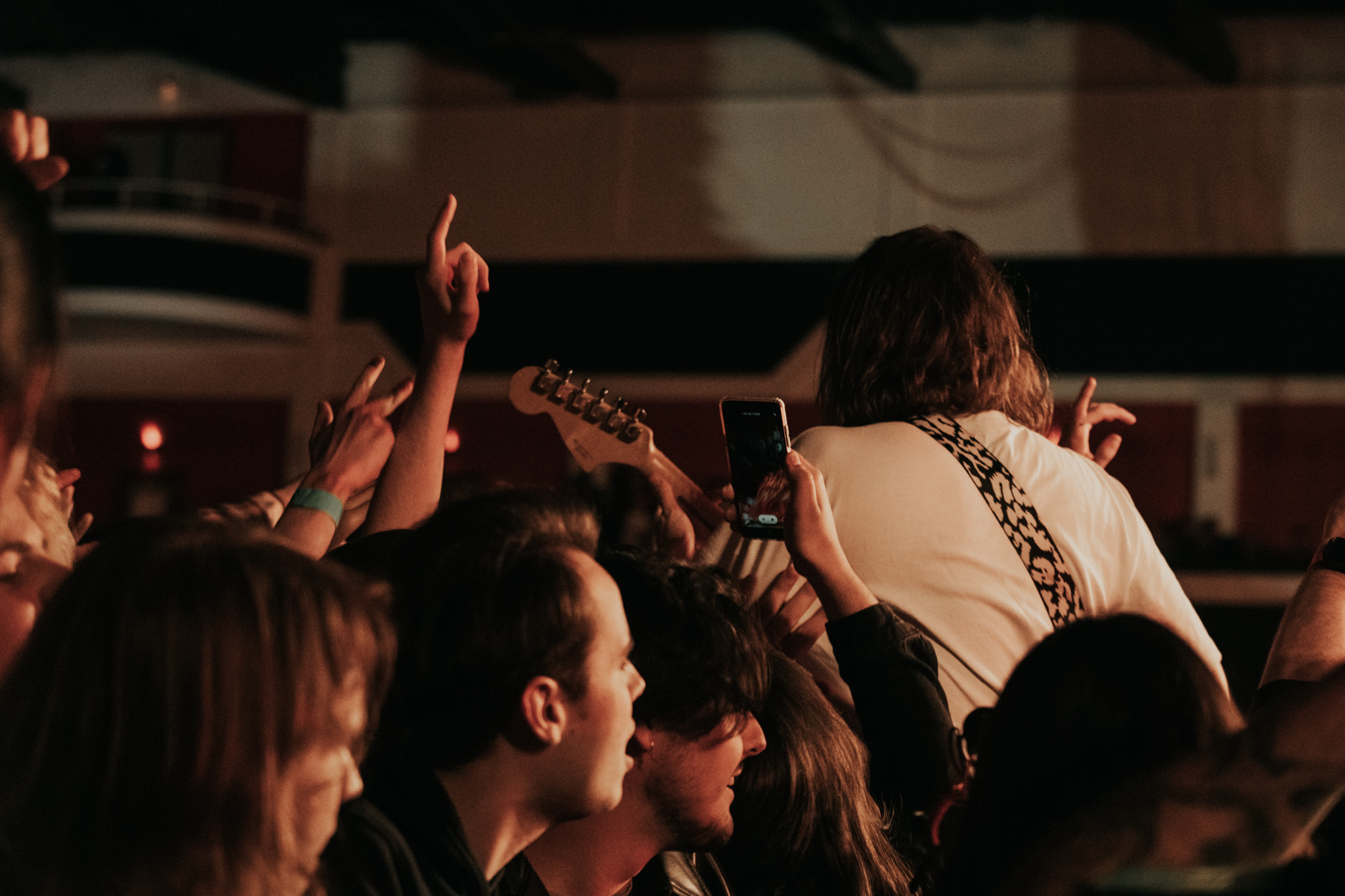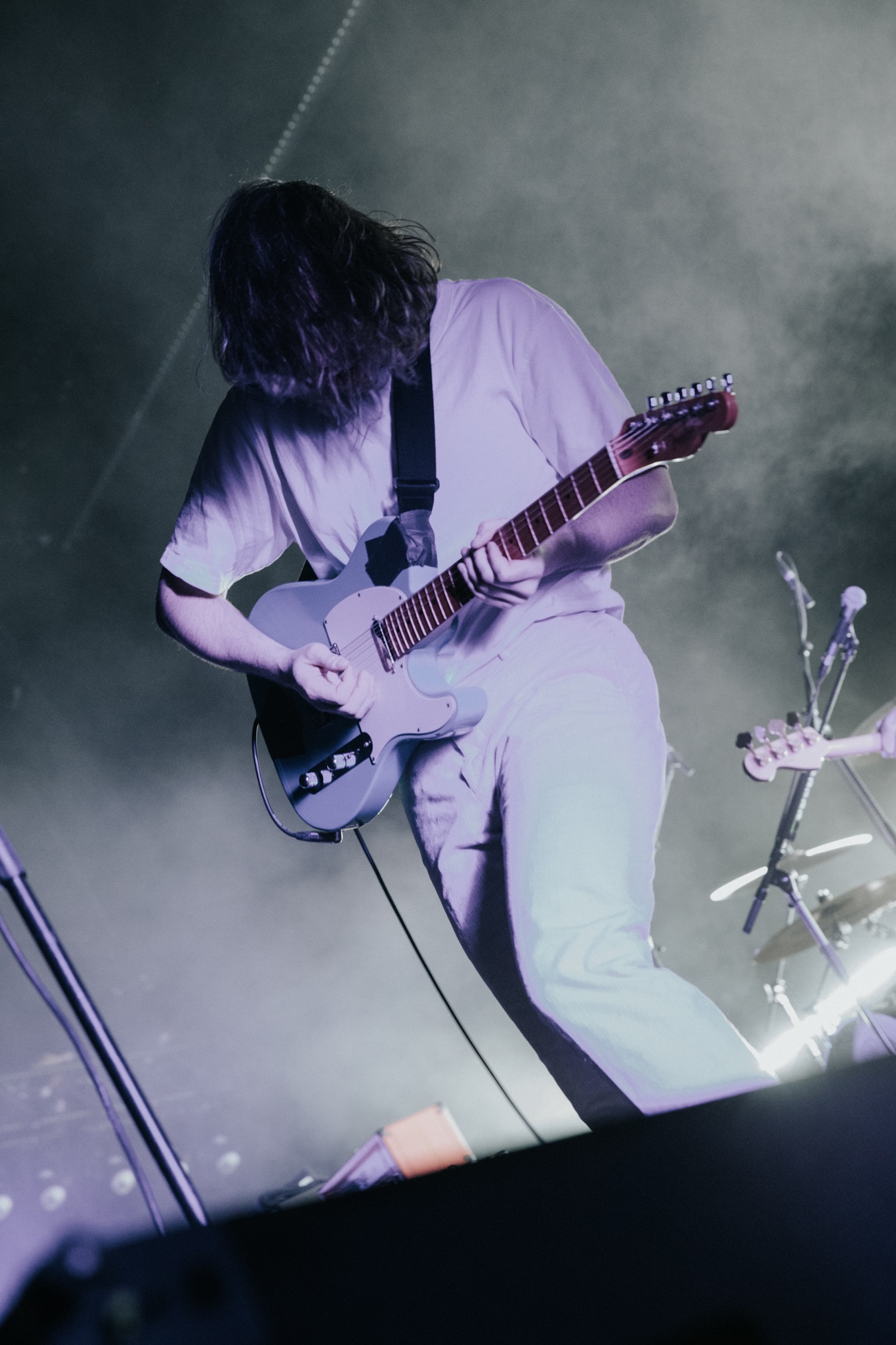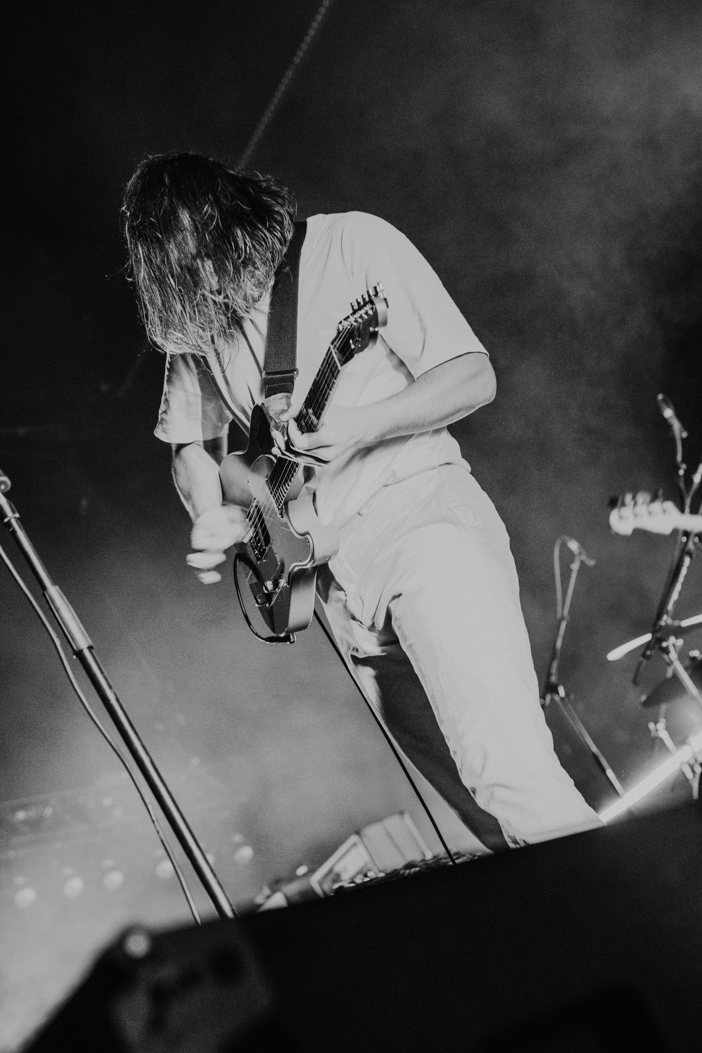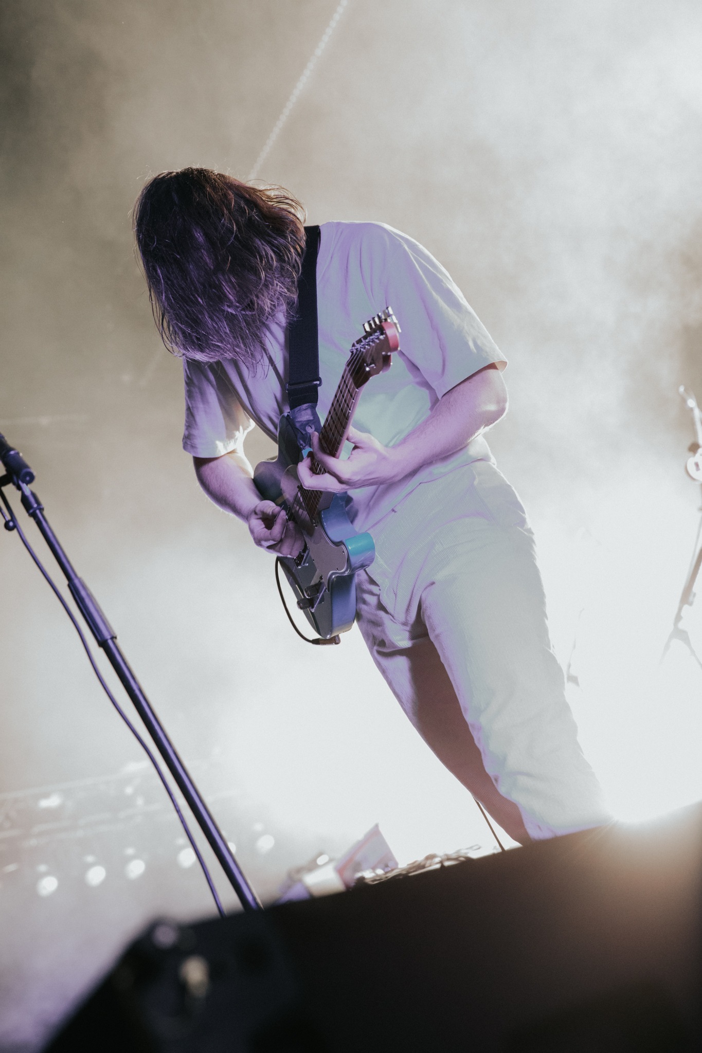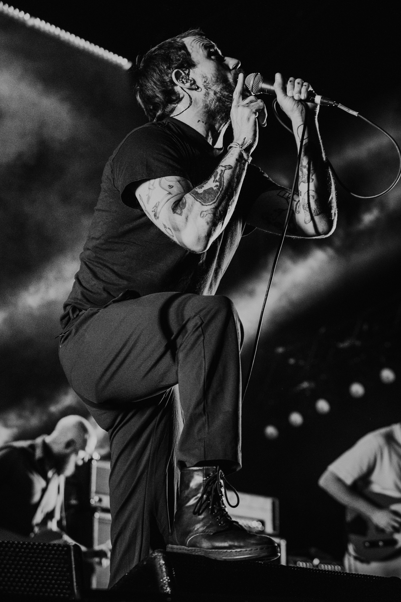 In fact, it may be at least 10x worse than any other gig we’ve had the chance to photograph. Before the end of their opening track, the audience has already been ordered to split in two ready for the ending and they follow orders directly from vocalist Joe Talbot. IDLES are known for the energy that surrounds their live shows and tonight was a prime example of why that is. Before we can even leave the photo pit, we end up sharing the space with guitarist Lee Kiernan, who has decided to jump down off the stage and into (or onto) the crowd, all while still playing guitar.