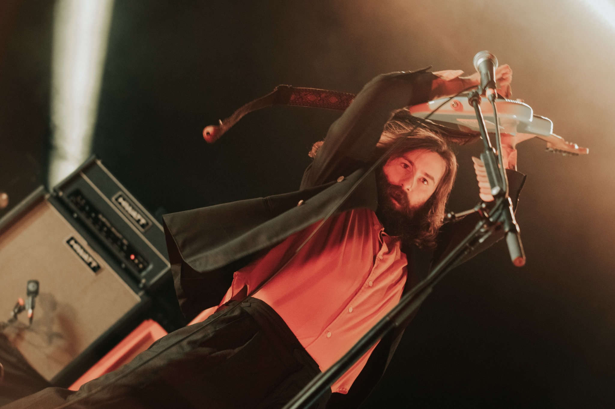 Carmarthen trio ADWAITH was support for the evening and proved to be an extremely fitting choice. This band’s efforts over the last few years have evidently paid off and culminate in this, which may be the biggest gig of their career so far. They’re an extremely well-oiled machine and are just a really solid band. The end of every single song in their set is met with enthusiastic cheers from those who braved the cold to get here early and see them.
