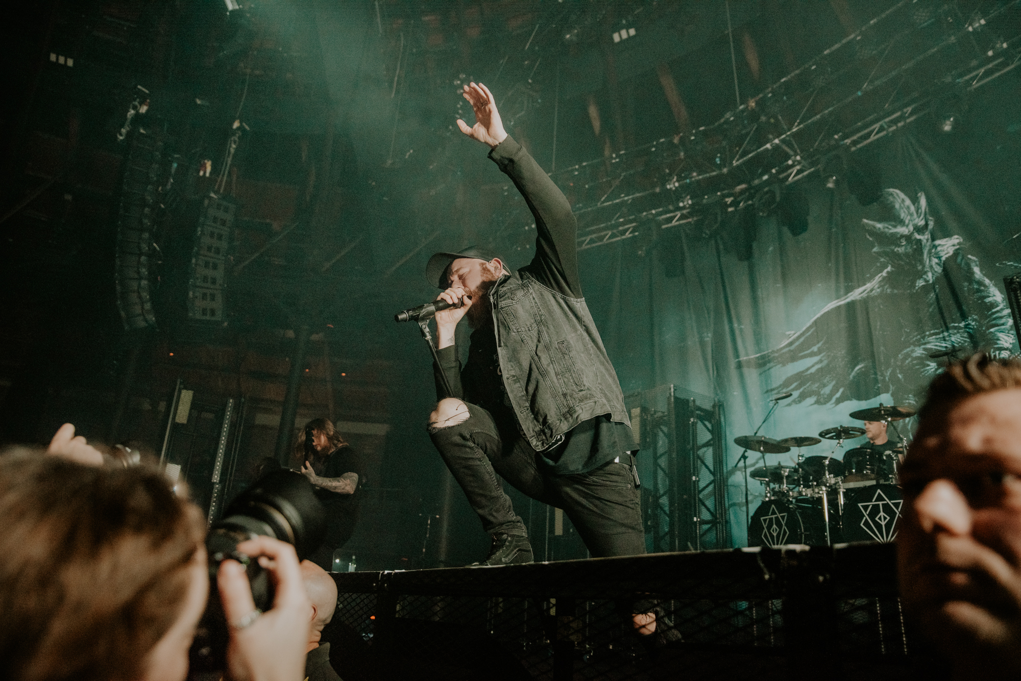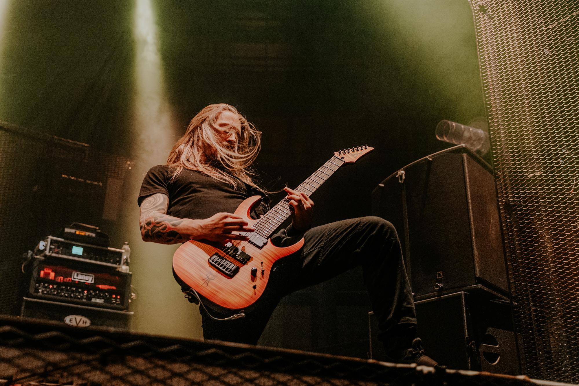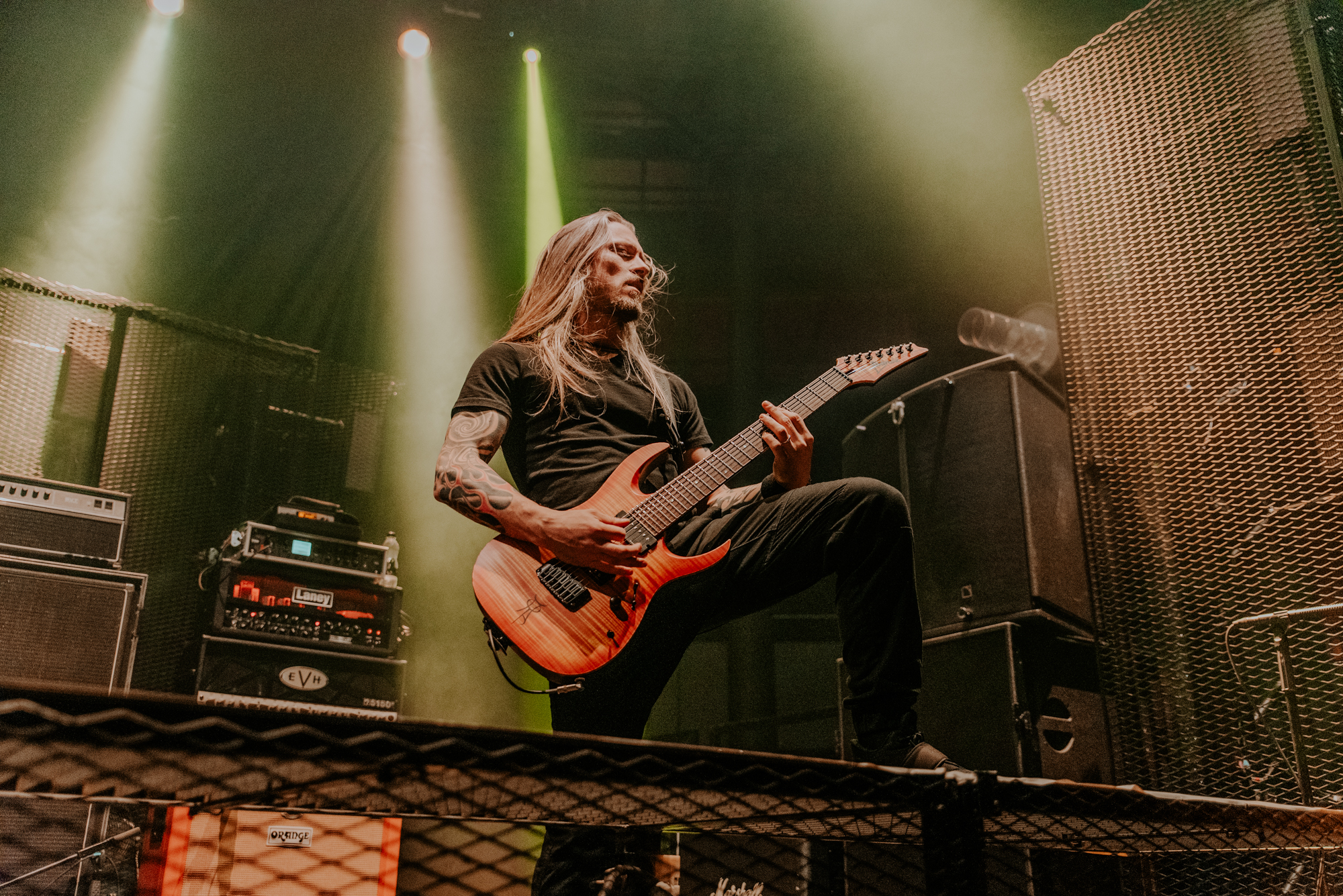 The band take to the stage bathed in light a jump straight in to Voices. A noticeable absence is that of guitarist Niclas Engelin who has been sitting out of all of IN FLAMES’ upcoming tours due to ‘personal issues’ which would normally be an issue, but the the boys have roped in an elite replacement in the form of Chris Broderick who has played for some genuine heavyweights in the metal world. The band then head straight from a decent rendition of Everything’s Gone before dialling up the intensity with a ferocious rendition of the classic Pinball Map. A song that still sounds as fresh and exciting as it did when it was released nineteen years ago and invoked the first real mosh pits of the evening.