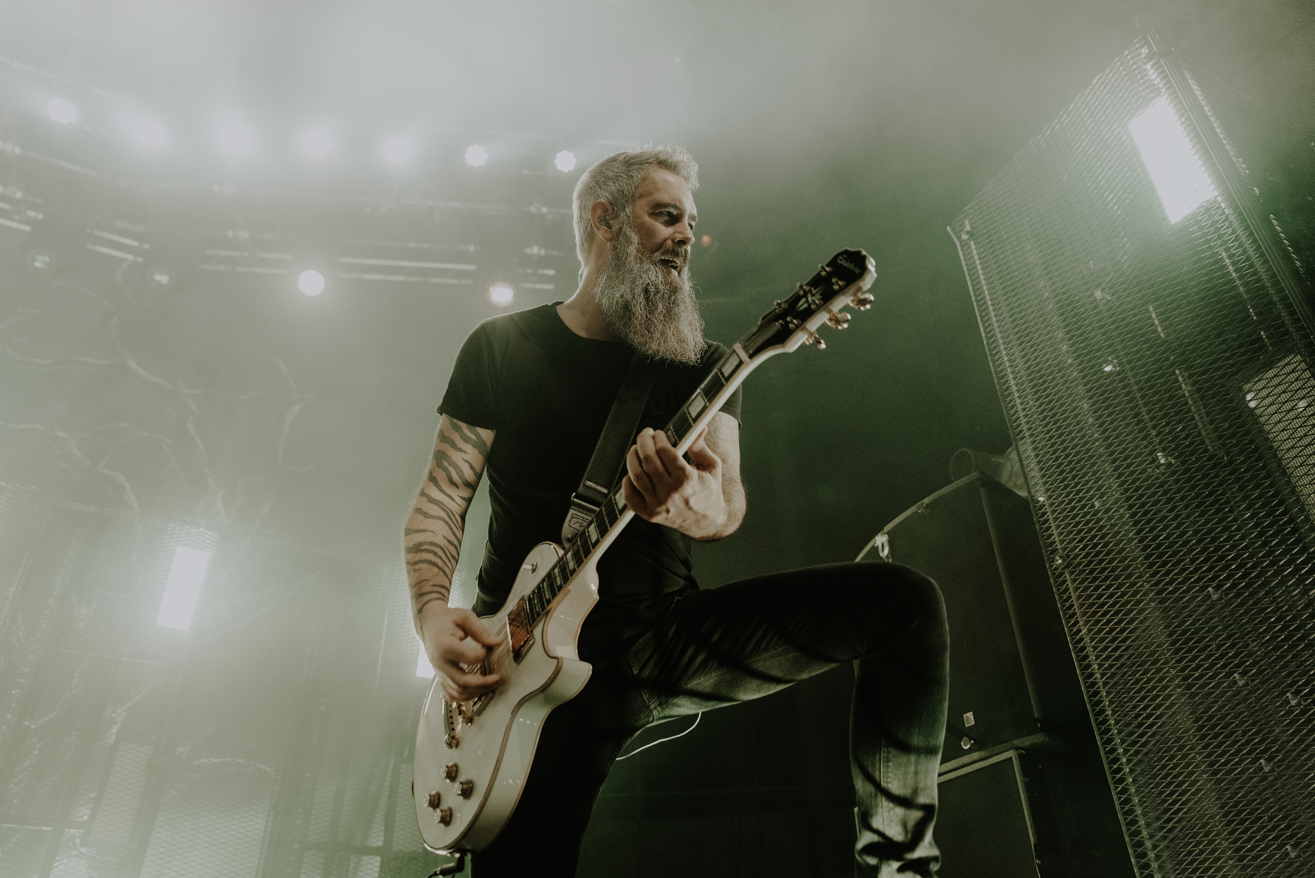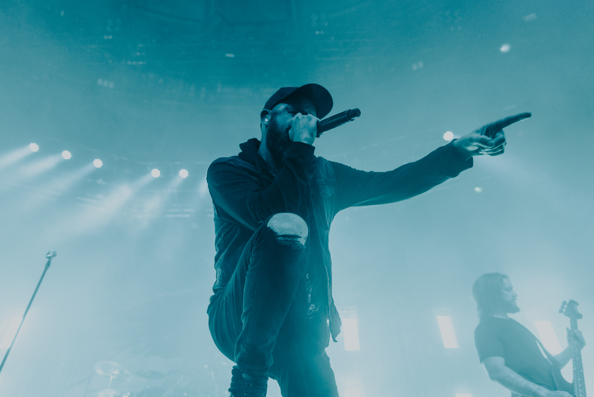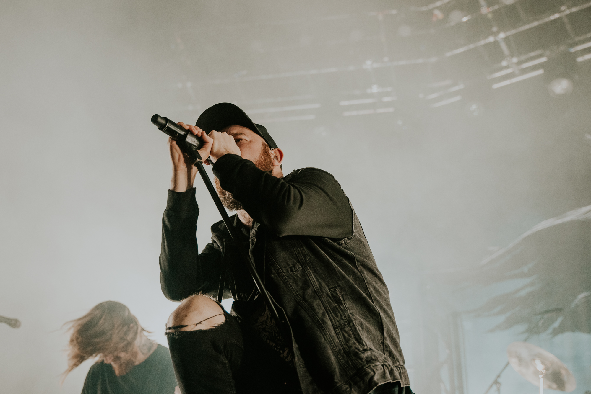 The band take to the stage bathed in light a jump straight in to Voices. A noticeable absence is that of guitarist Niclas Engelin who has been sitting out of all of IN FLAMES’ upcoming tours due to ‘personal issues’ which would normally be an issue, but the the boys have roped in an elite replacement in the form of Chris Broderick who has played for some genuine heavyweights in the metal world. The band then head straight from a decent rendition of Everything’s Gone before dialling up the intensity with a ferocious rendition of the classic Pinball Map. A song that still sounds as fresh and exciting as it did when it was released nineteen years ago and invoked the first real mosh pits of the evening.