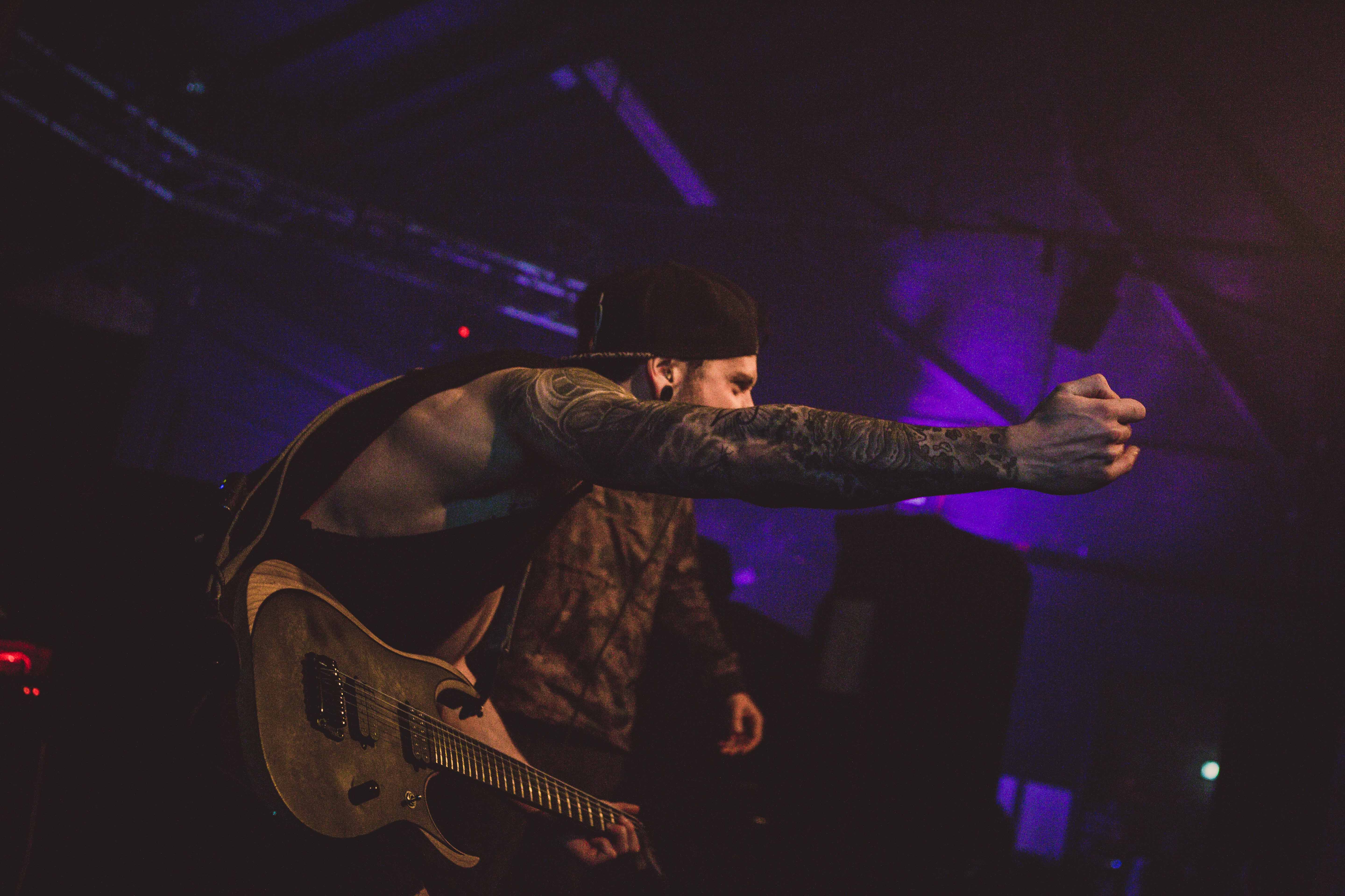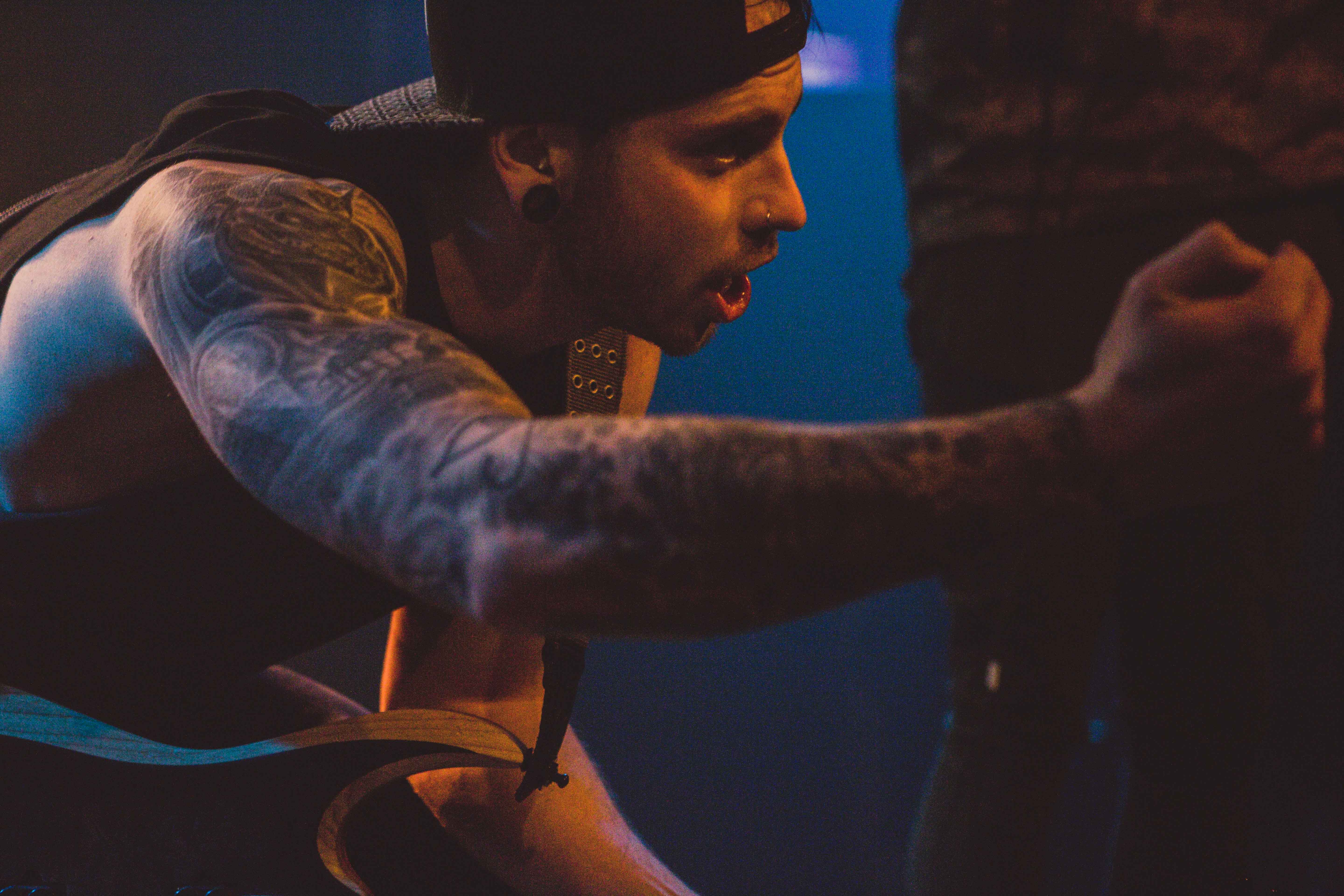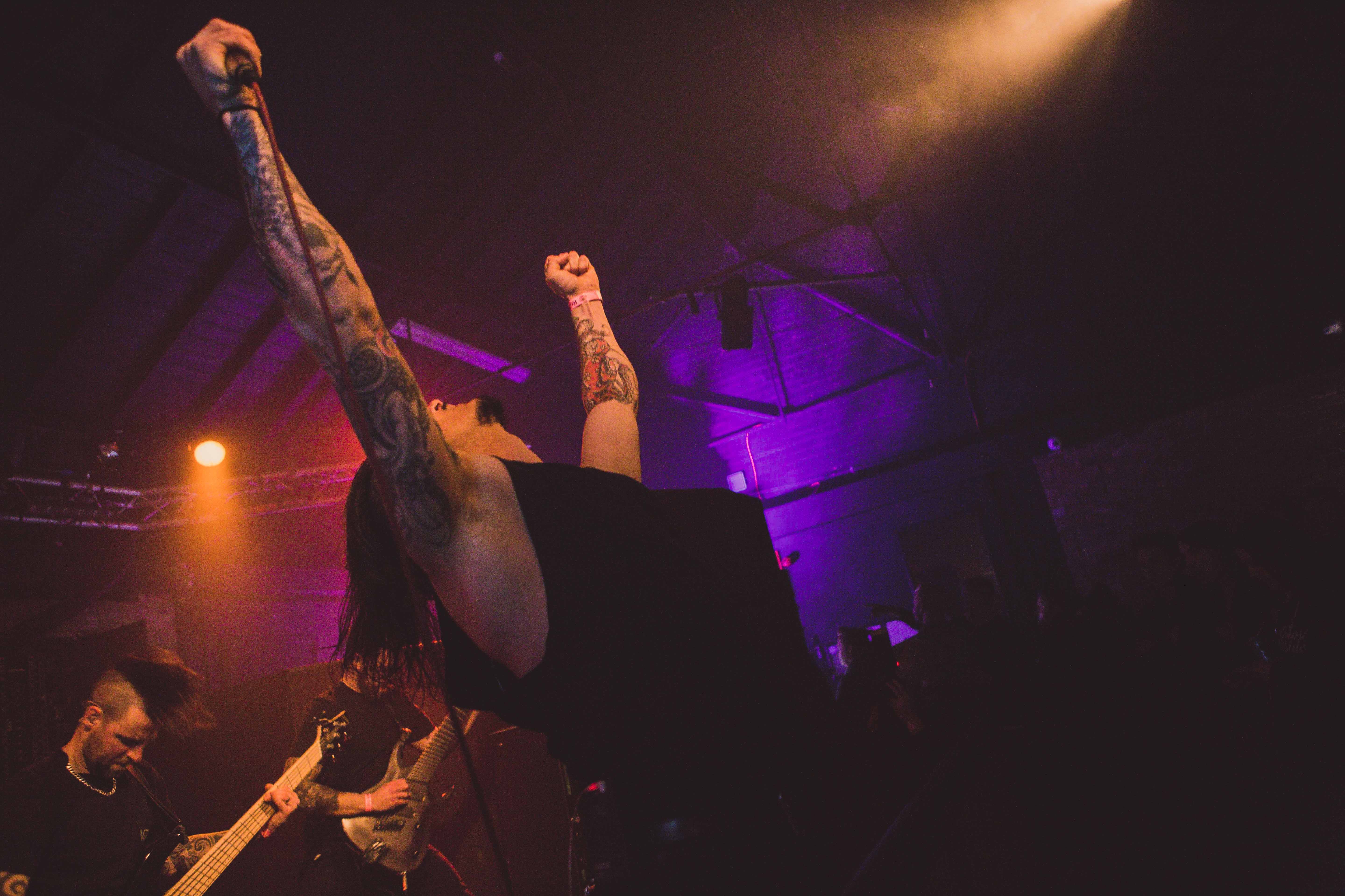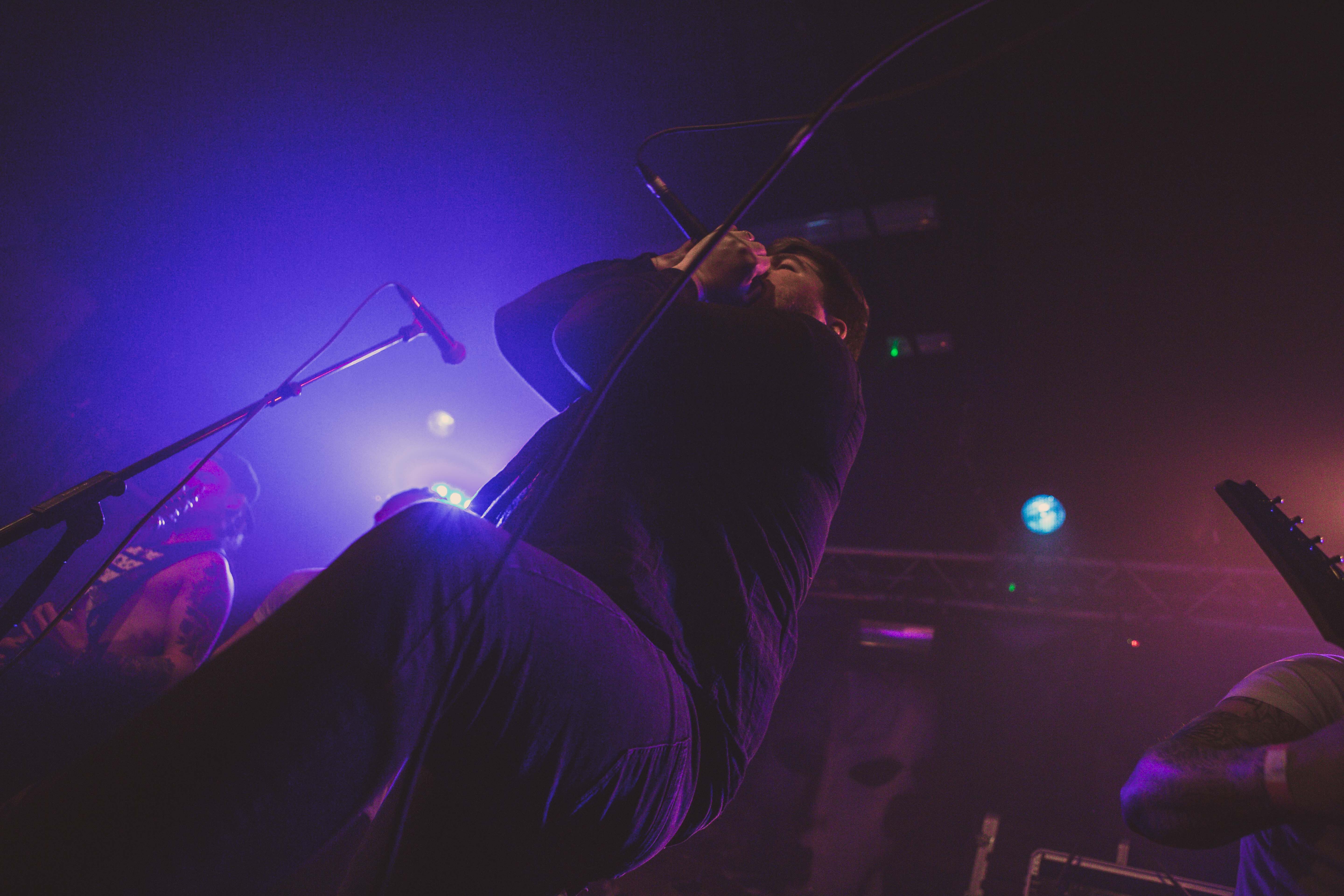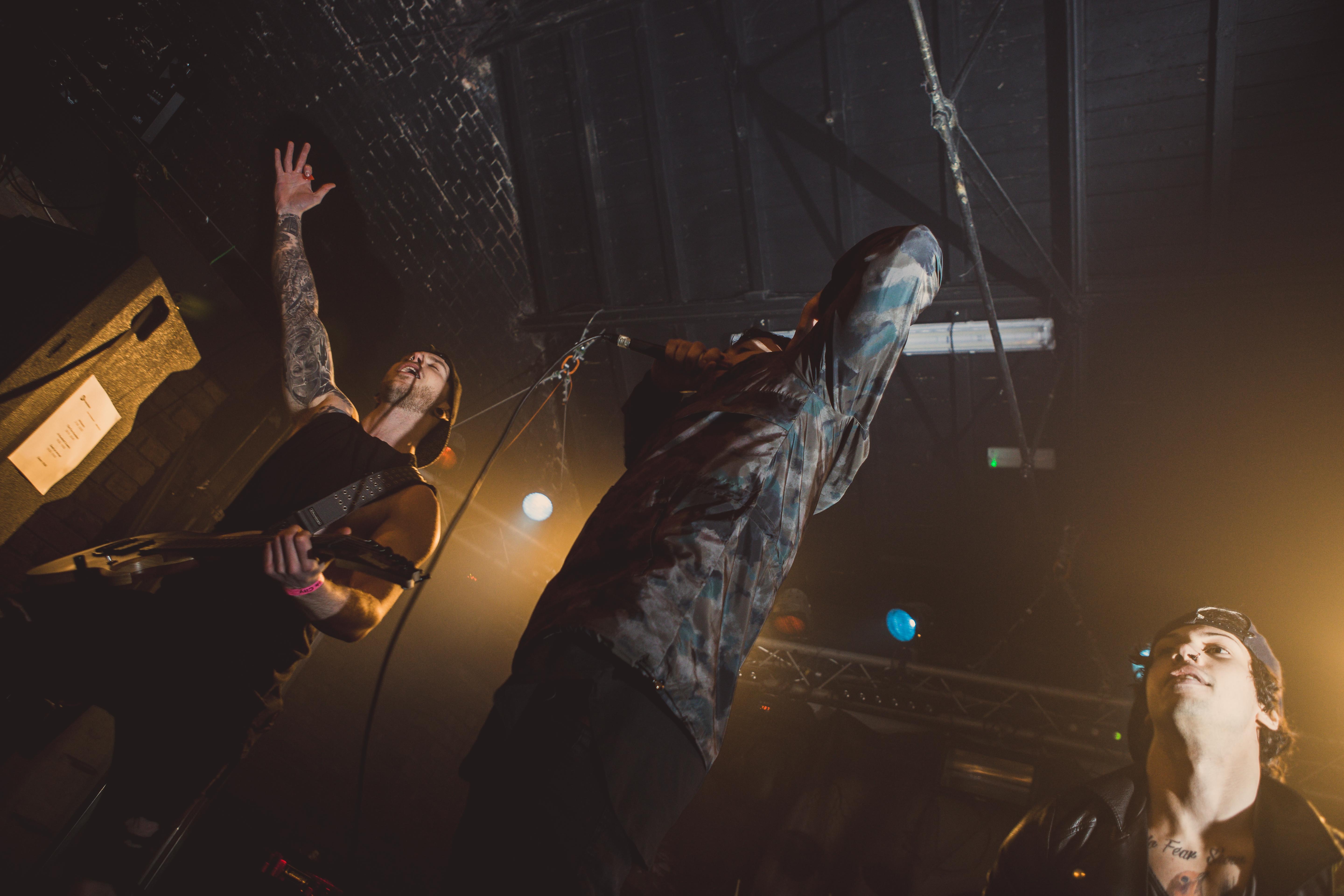 Less than two years ago, York’s INVISIONS were hitting up local venues and preparing to unleash beautifully brash debut Never Nothing upon the masses. In the short time since, the quartet have been championed by Kerrang! Radio’s Alex Baker and secured high-profile runs alongside the likes of BLESS THE FALL, SLAVES and OUR HOLLOW, OUR HOME. Their unshakable confidence has kept pace, and as the weighty groove and full-throttle attack of bonafide banger Turn Up explodes with all the strength of a nuclear bomb, they couldn’t look more at home. Nail-gargling growls and crunching guitars segue into synth-drenched beats lending an unmistakable air of menace. Wide-eyed vocalist Ben Ville saunters about the stage overseeing the mayhem beneath him as melodic calm wrestles with vitriol-drenched darkness; The Haunting’s bloodcurdling screams and call-to-arms choruses elicit word-for-word singalongs whilst the welcome inclusion of new song Parasite emanates with combative energy hitting another level of intensity fully capable of tearing everybody’s faces off. Not even a visibly depleted crowd (with many congregating around the nearby merch stands) towards the set’s conclusion can eclipse the rampant chaos that INVISIONS unleashed upon Nottingham tonight.