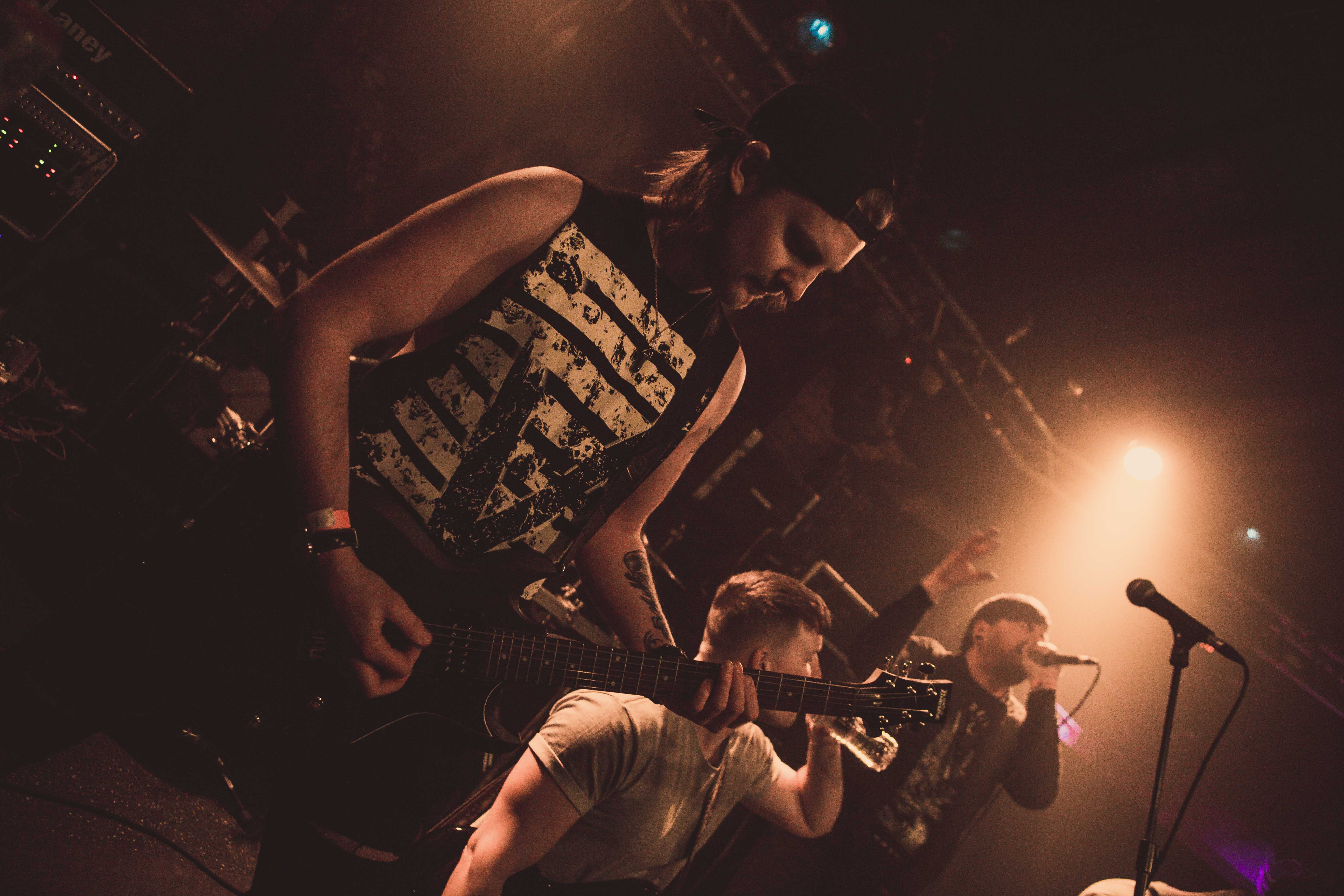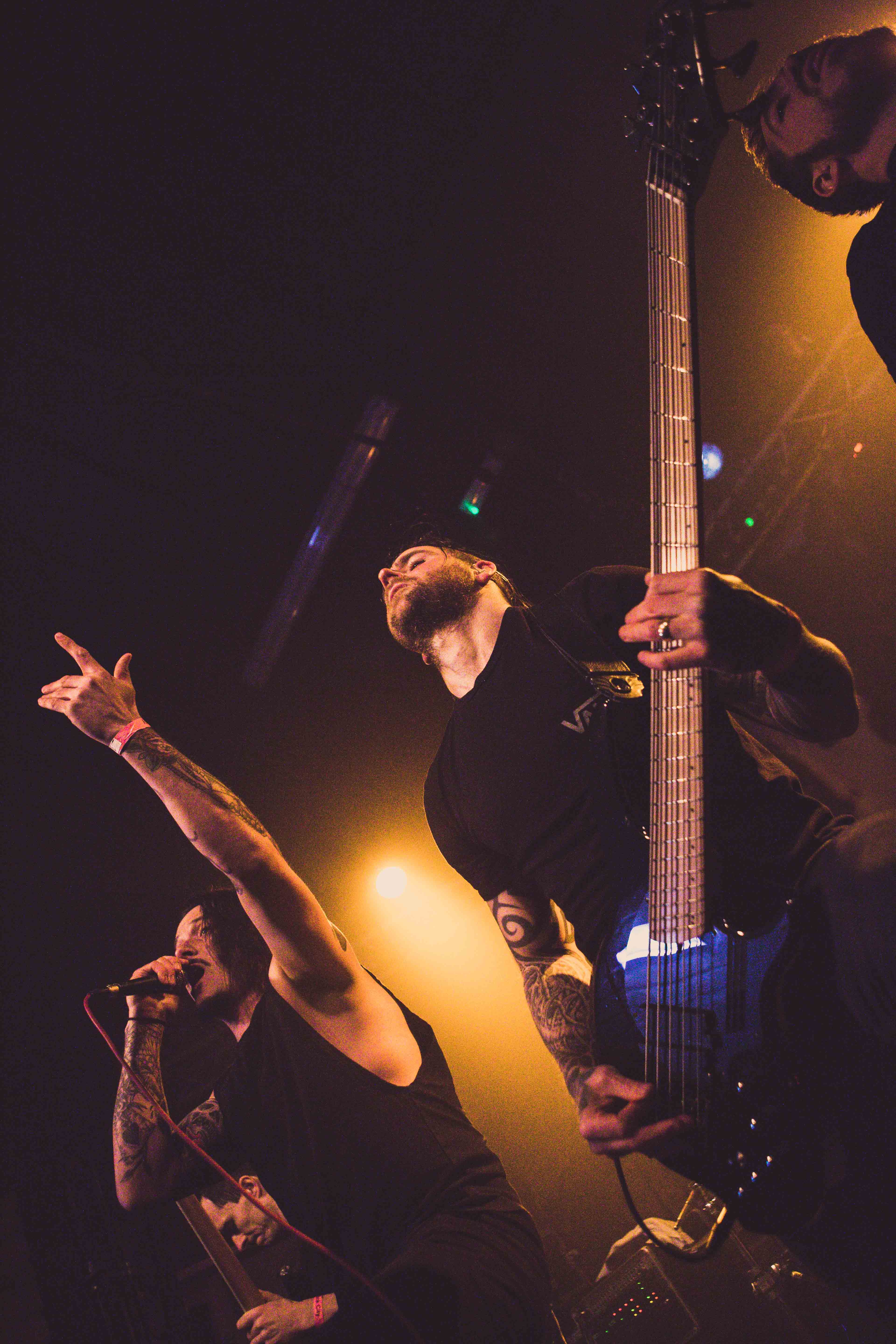 Mother Nature can be a cruel mistress, and she’s certainly making life infinitely difficult for folks of the journalistic persuasion this week. With plunging temperatures and most of the country resembling a frozen wasteland, gig commutes have become more akin to arctic expeditions than simple motorway hops. The mere sight of hallowed venue Rock City is one to behold, but as it turns out the basement offers little respite from the sub-zero exterior, so the coats remain on. Mercifully, the gruelling conditions have failed in dissuading punters to turn out, and if anyone can force the mercury to turn up then its metalcore mob INVISIONS. With Midlands-based supports THE FIVE HUNDRED, A HUNDRED CROWNS and DEAD ON ARRIVAL all in attendance, it’s very much a local affair. And all three bands are determined to show just how hard, fast and heavy Nottingham can go tonight.