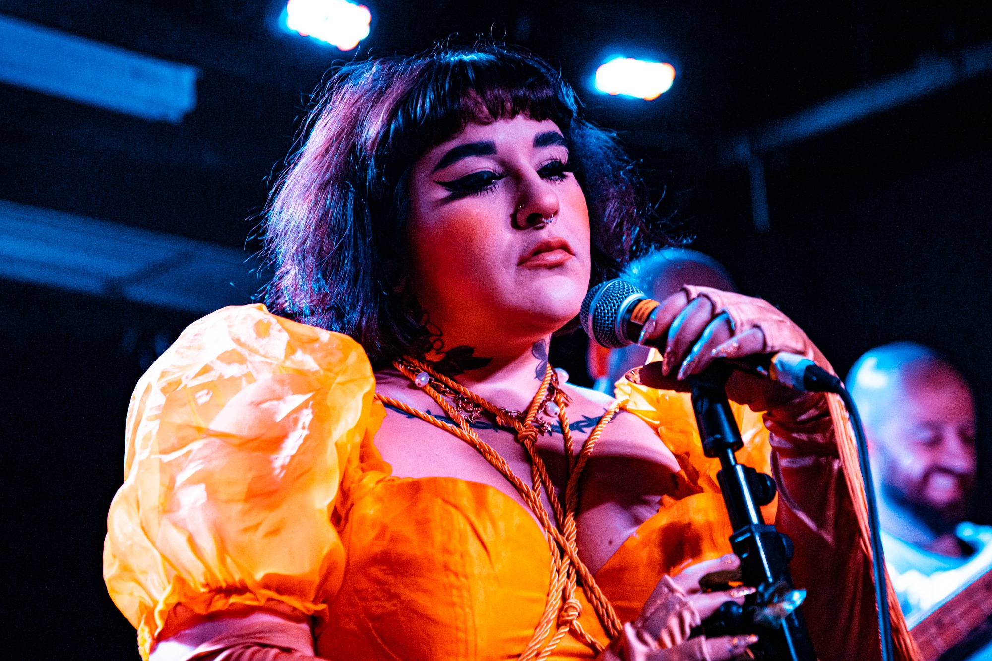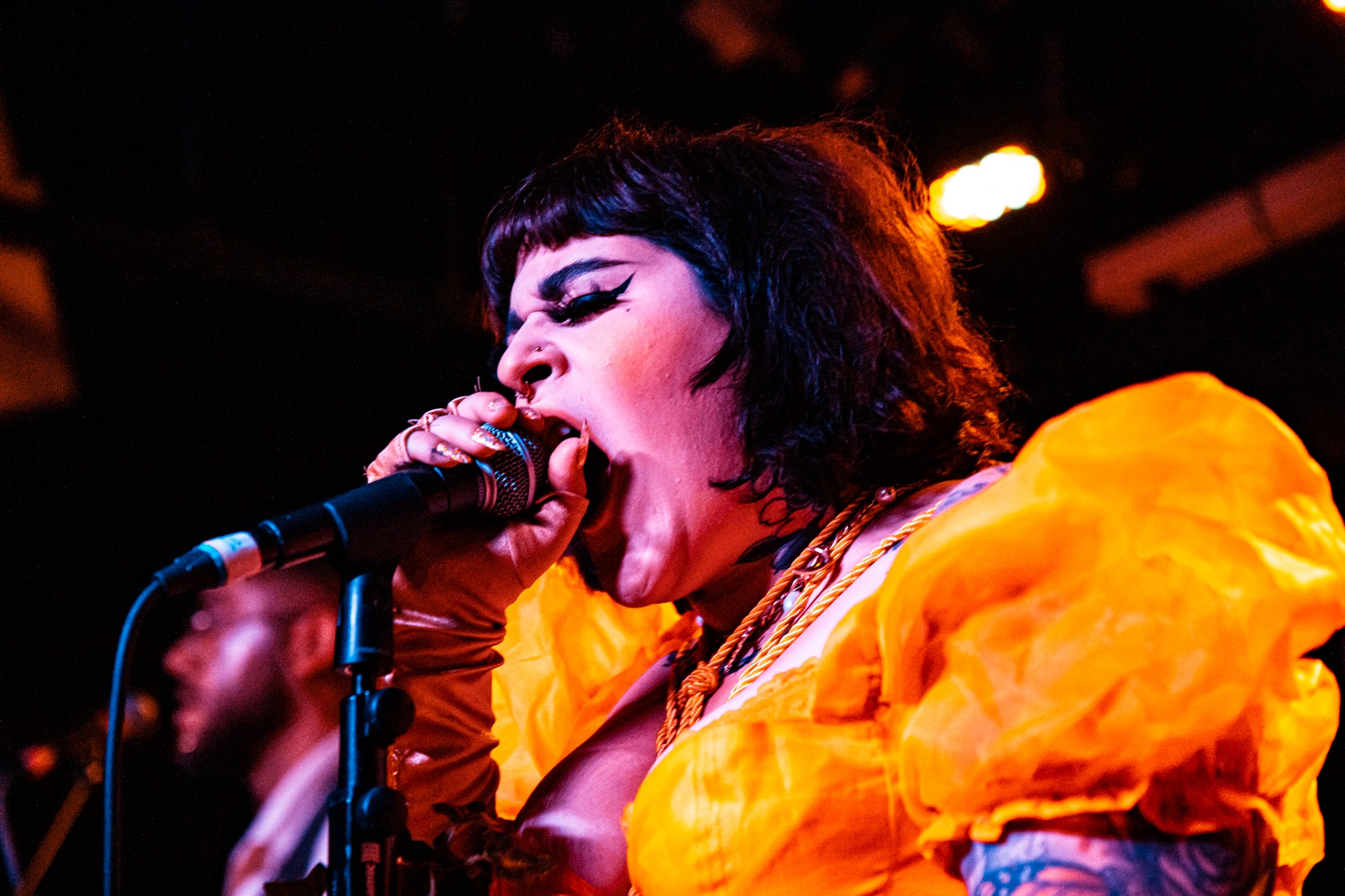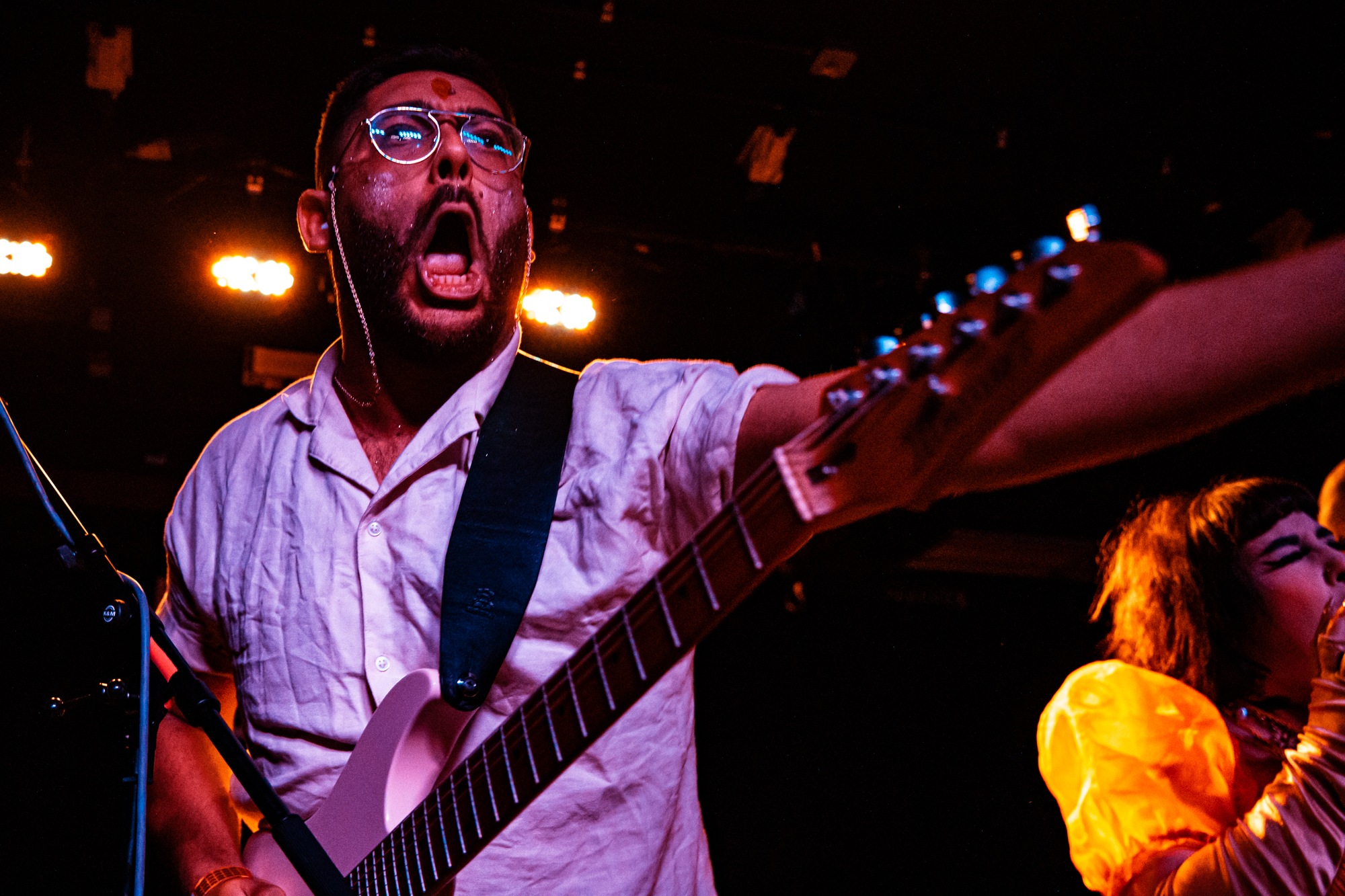 As soon as ITHACA hop up on stage, a punter to the right says “hey, the dress is fixed!”. Ah yes, during this tour singer Djamilia Azzouz suffered an unfortunate wardrobe malfunction, but there are no mishaps tonight; just big vibes and even bigger tunes. Decked in the outfits that all five wear on the They Fear Us album cover, what follows is forty minutes of utter carnage, with a few songs from debut record The Language Of Injury making an appearance alongside the new material. Cremation Party brings some much needed movement on the floor and the title track from their first album stands up well, no mean feat given the jump in quality between the releases. In addition, the stage banter is strangely wholesome; when was the last time you were asked what you were having for dinner in the middle of a gig?