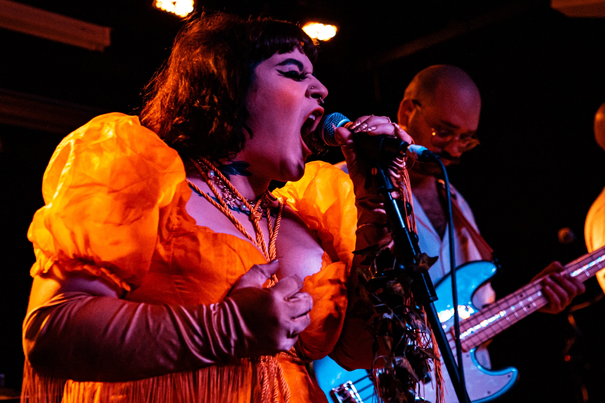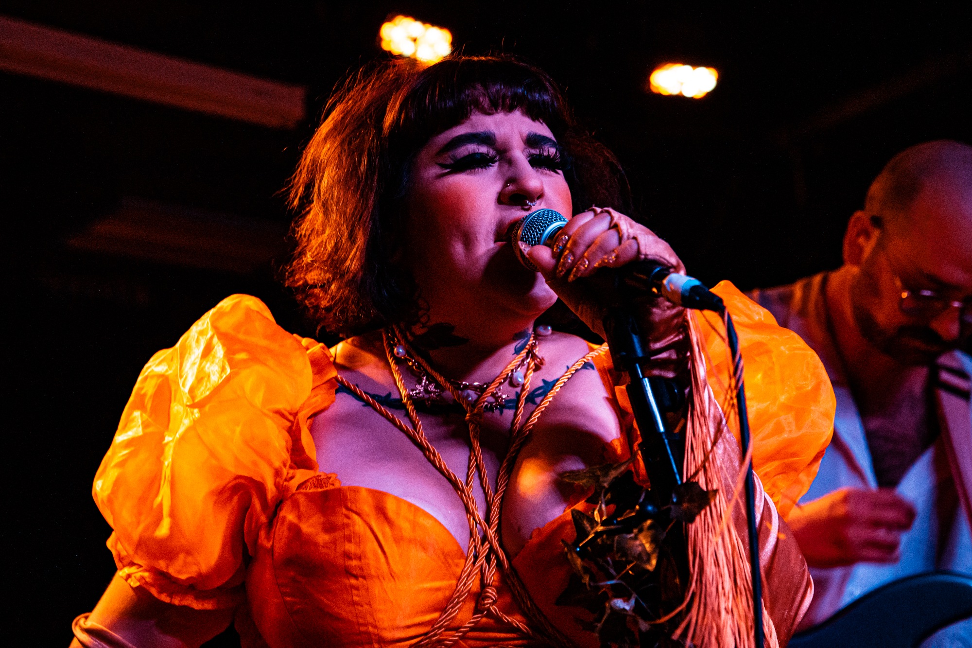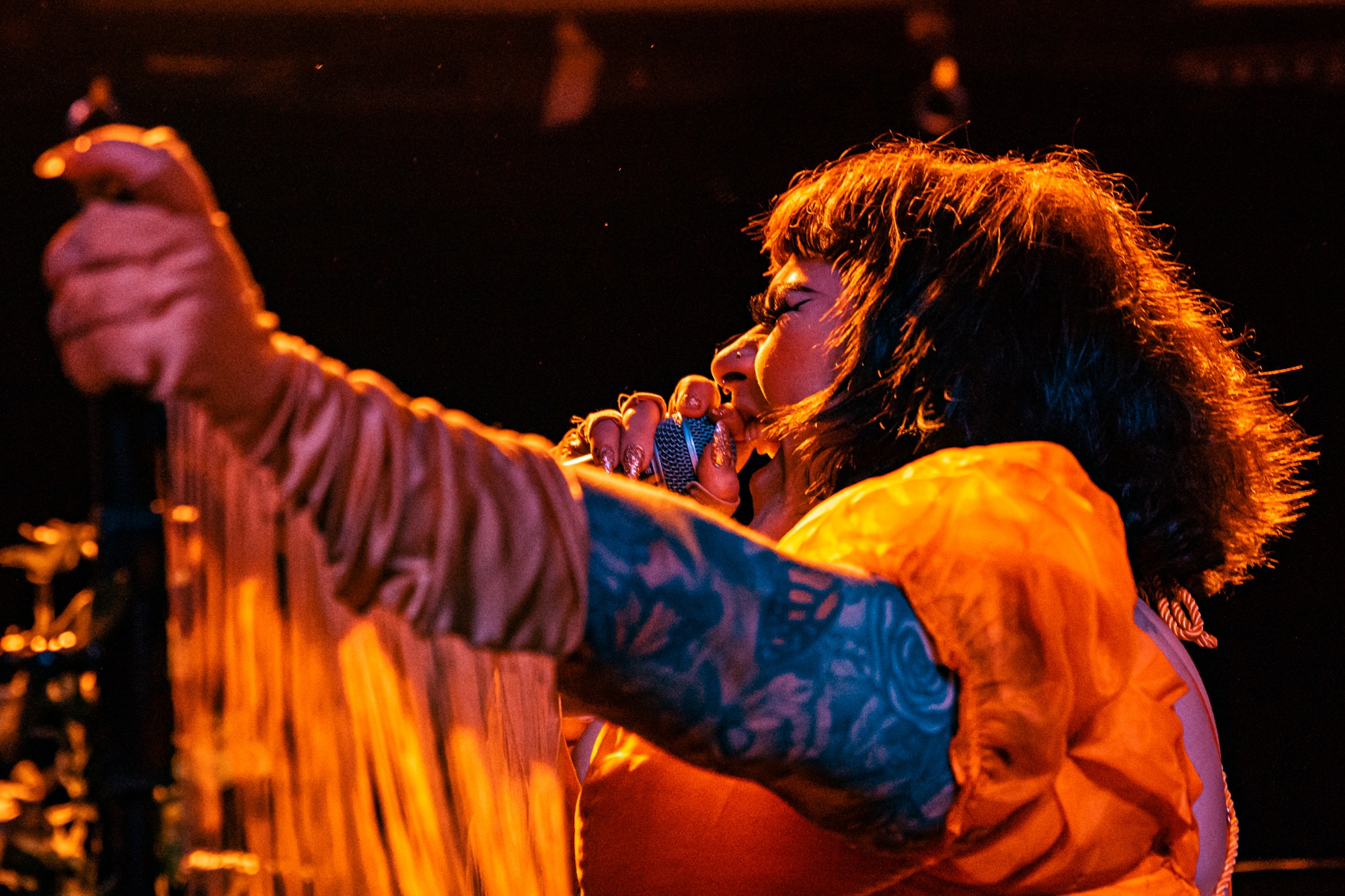 As soon as ITHACA hop up on stage, a punter to the right says “hey, the dress is fixed!”. Ah yes, during this tour singer Djamilia Azzouz suffered an unfortunate wardrobe malfunction, but there are no mishaps tonight; just big vibes and even bigger tunes. Decked in the outfits that all five wear on the They Fear Us album cover, what follows is forty minutes of utter carnage, with a few songs from debut record The Language Of Injury making an appearance alongside the new material. Cremation Party brings some much needed movement on the floor and the title track from their first album stands up well, no mean feat given the jump in quality between the releases. In addition, the stage banter is strangely wholesome; when was the last time you were asked what you were having for dinner in the middle of a gig?