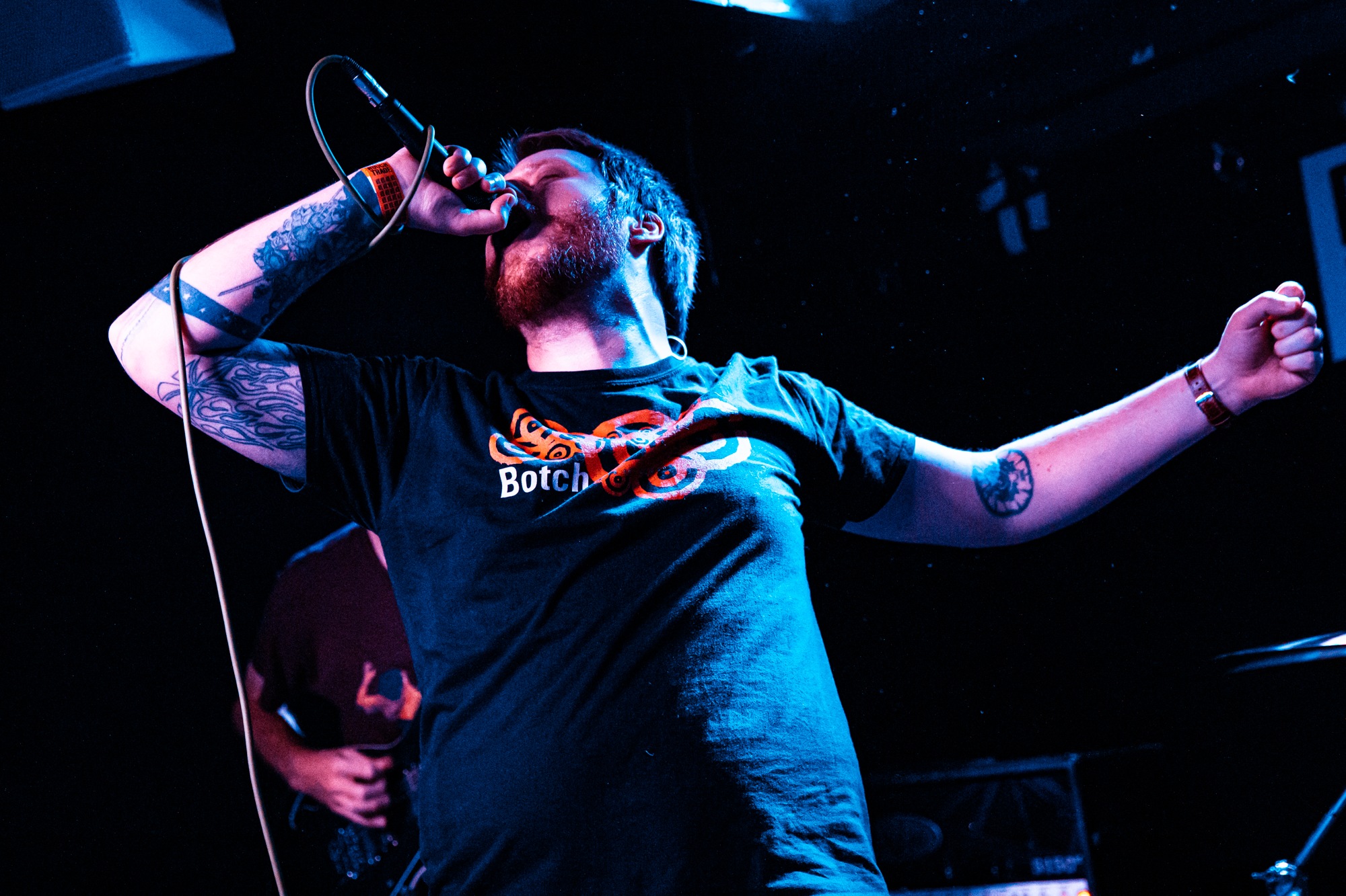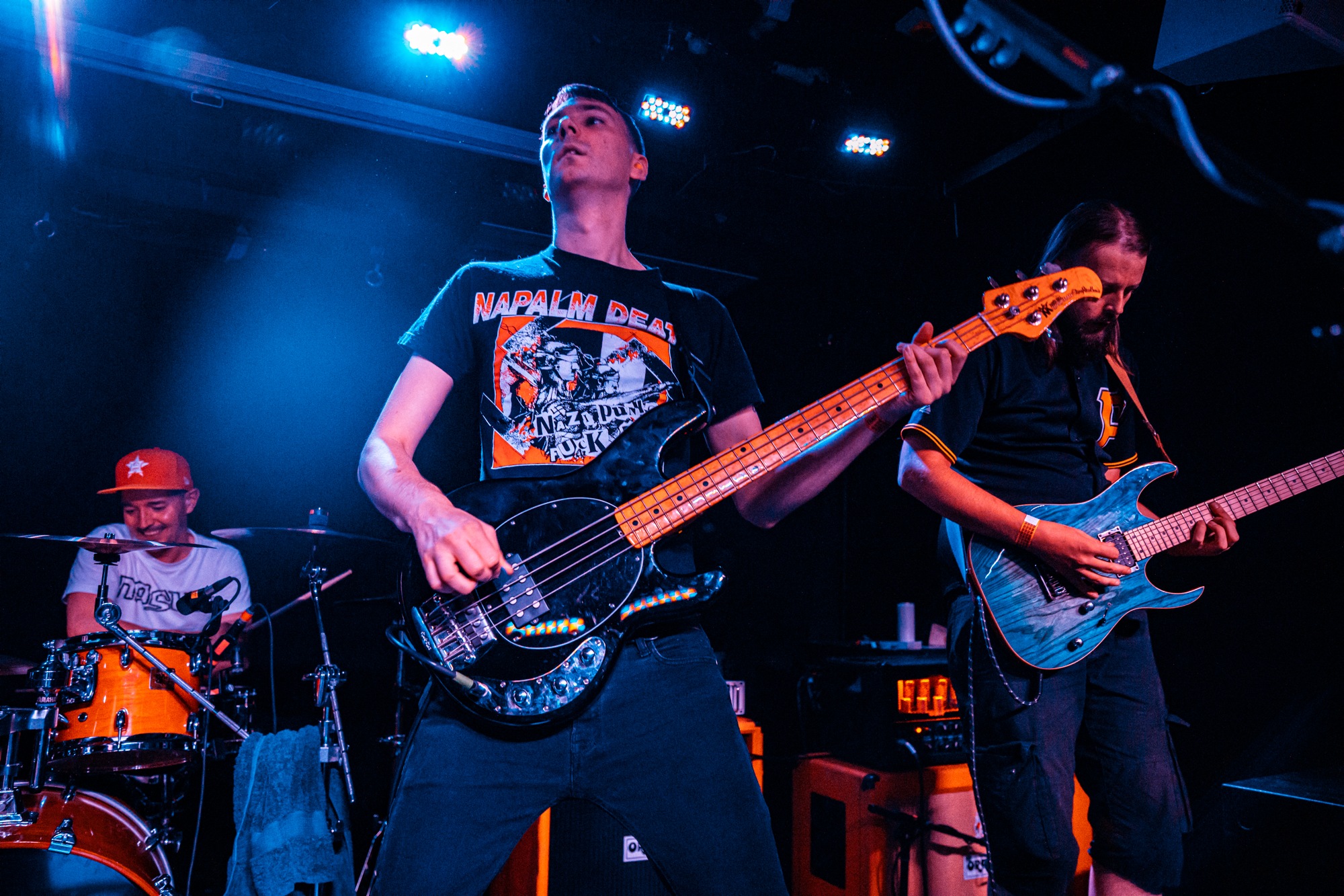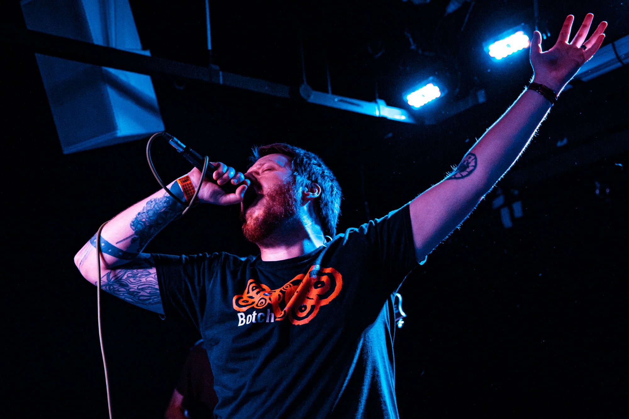 To open, local outfit LIGHTNING SHARKS, who give the crowd present a chaotic and heavy post-hardcore that takes GLASSJAW and throws in a dash of THE DILLINGER ESCAPE PLAN for good measure. Alongside this nucleus are the occasional elements of chug and groove implemented, and even when the guitarist breaks a string (no, not that one), they improvise, adapt and overcome. We Are Not Equals, People brings a feel of RAGE AGAINST THE MACHINE into their sound and they even debut a new song – Brandelina’s Law – which they were planning on saving for their performance at ArcTanGent three weeks from this show. There’s not much in the way of presence or charisma from the five piece, but their sound is exceptionally promising and the strength of the songs pull them through; a bright future awaits for the band recently dubbed ‘The Bristolian BOTCH‘.