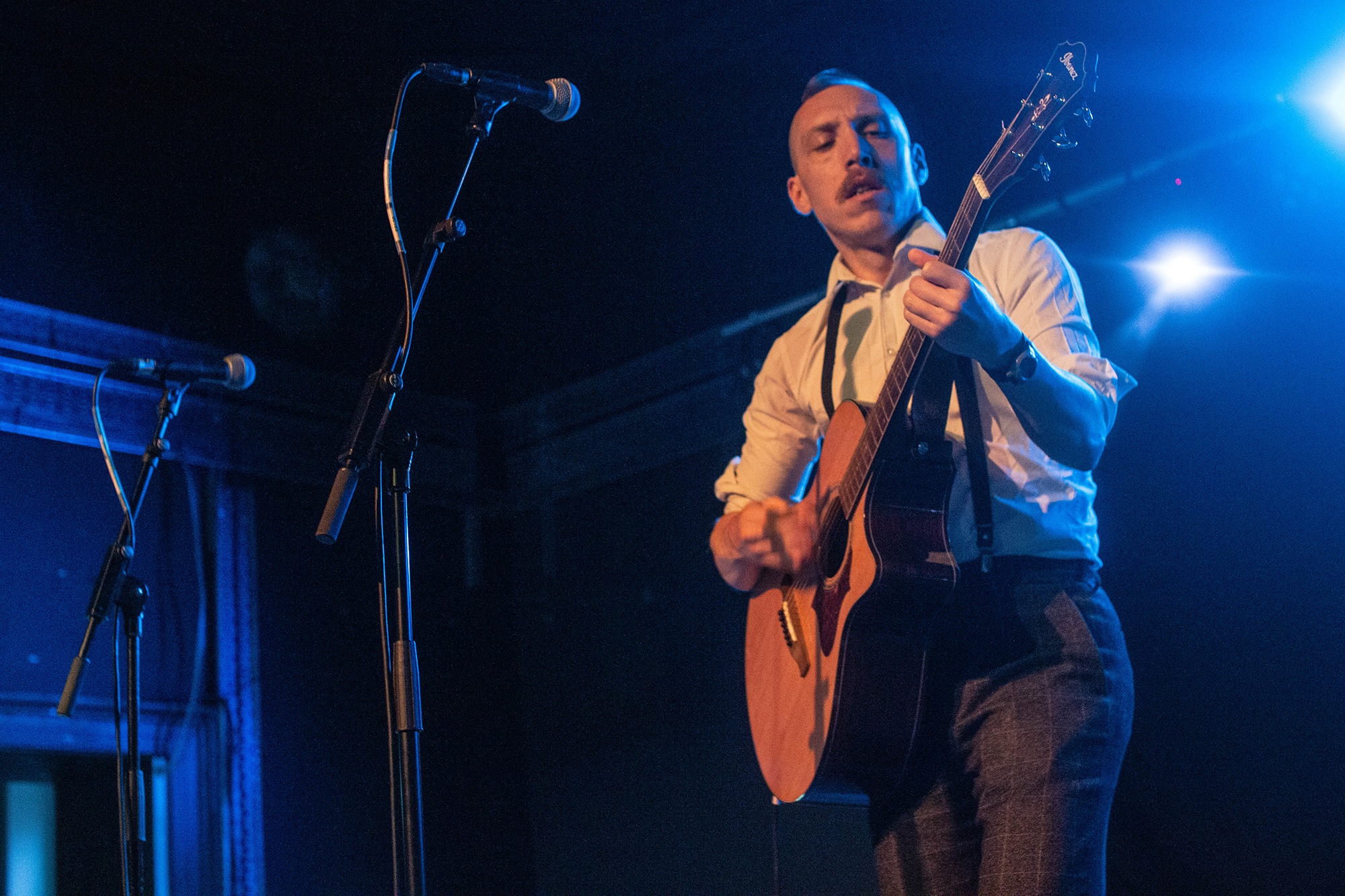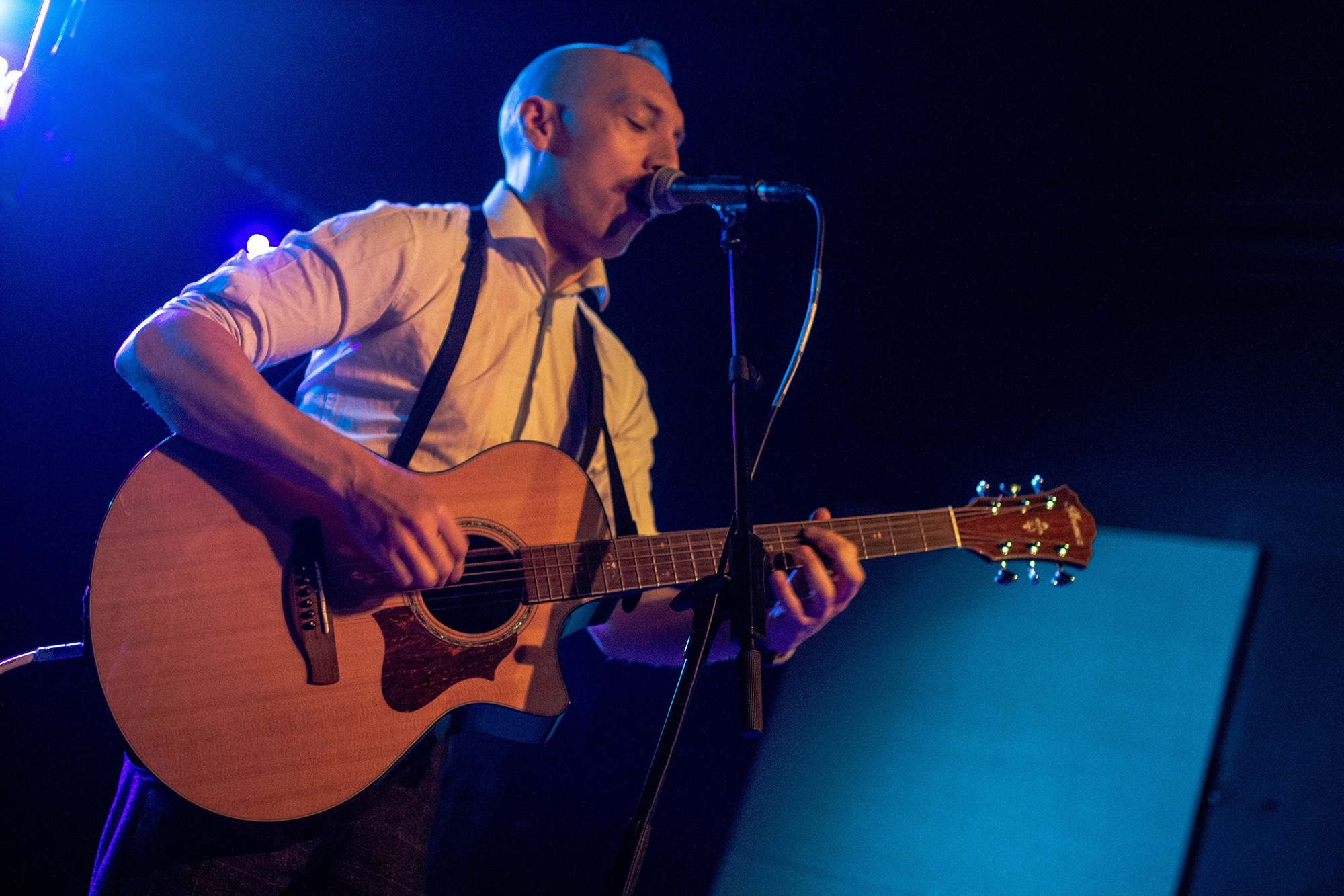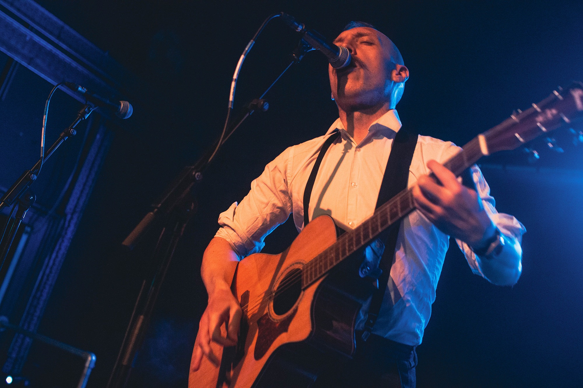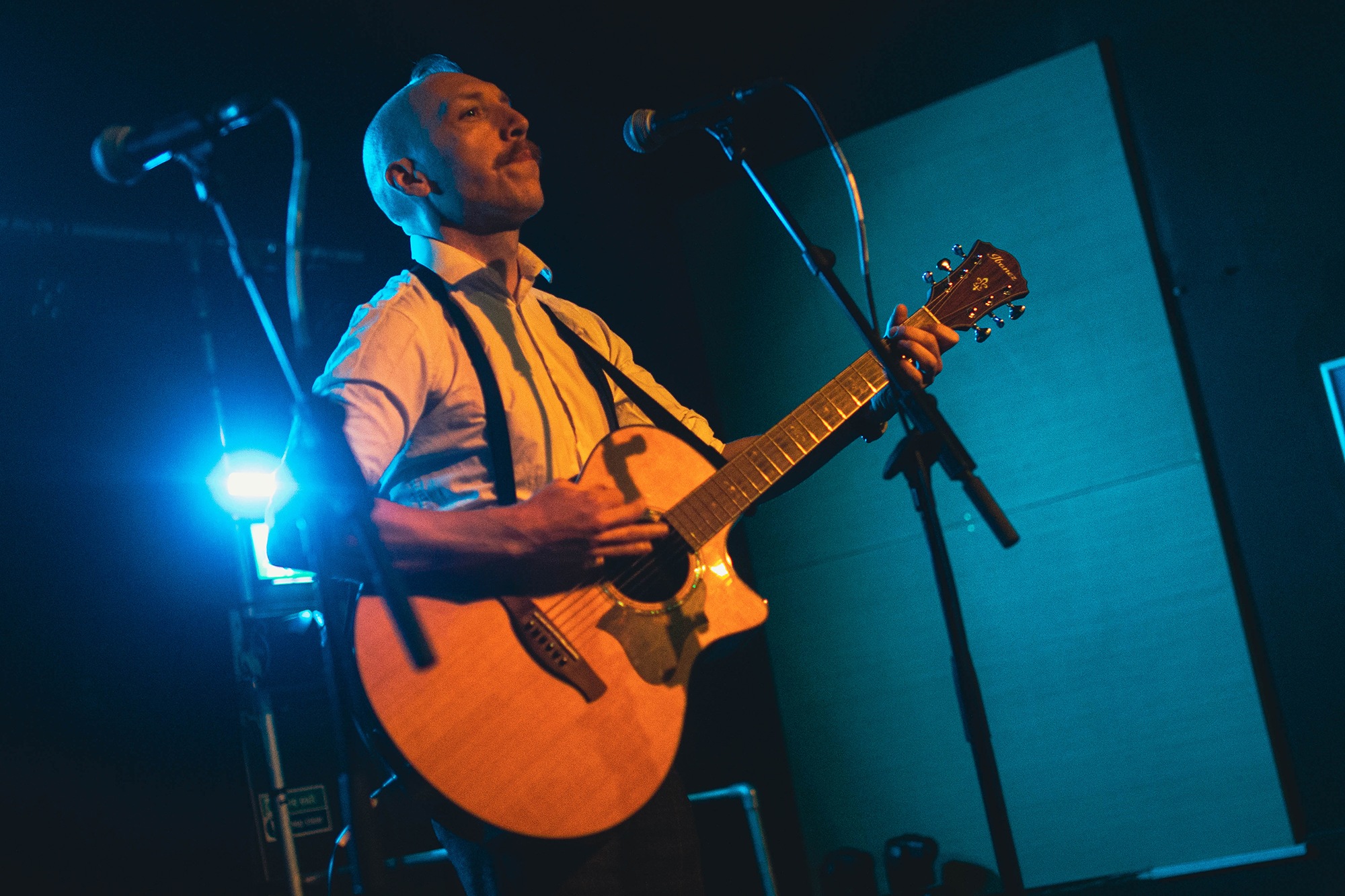 Opening the night was KURT WOOD with some acoustic renditions of songs of his band, SOUNDS OF SWAMI. From the offset, it is clear to see that Wood comes from a punk background with the power and gusto in his voice. Tough Love taken from the band’s most recent LP Furniture For Modern Living lends itself very well to the acoustic setting with a more mellow delivery to it. This is juxtaposed sharply with the likes of Sheep and The Lions Share, the latter of which Wood dedicates to “BNP and EDL dickheads” and he doesn’t spare the galloping breakdown just because he doesn’t have a band to beef it up. He then goes on to flog the band’s merchandise before ending the set by swiftly launching into an excellent cover of Merchandise by none other than FUGAZI.