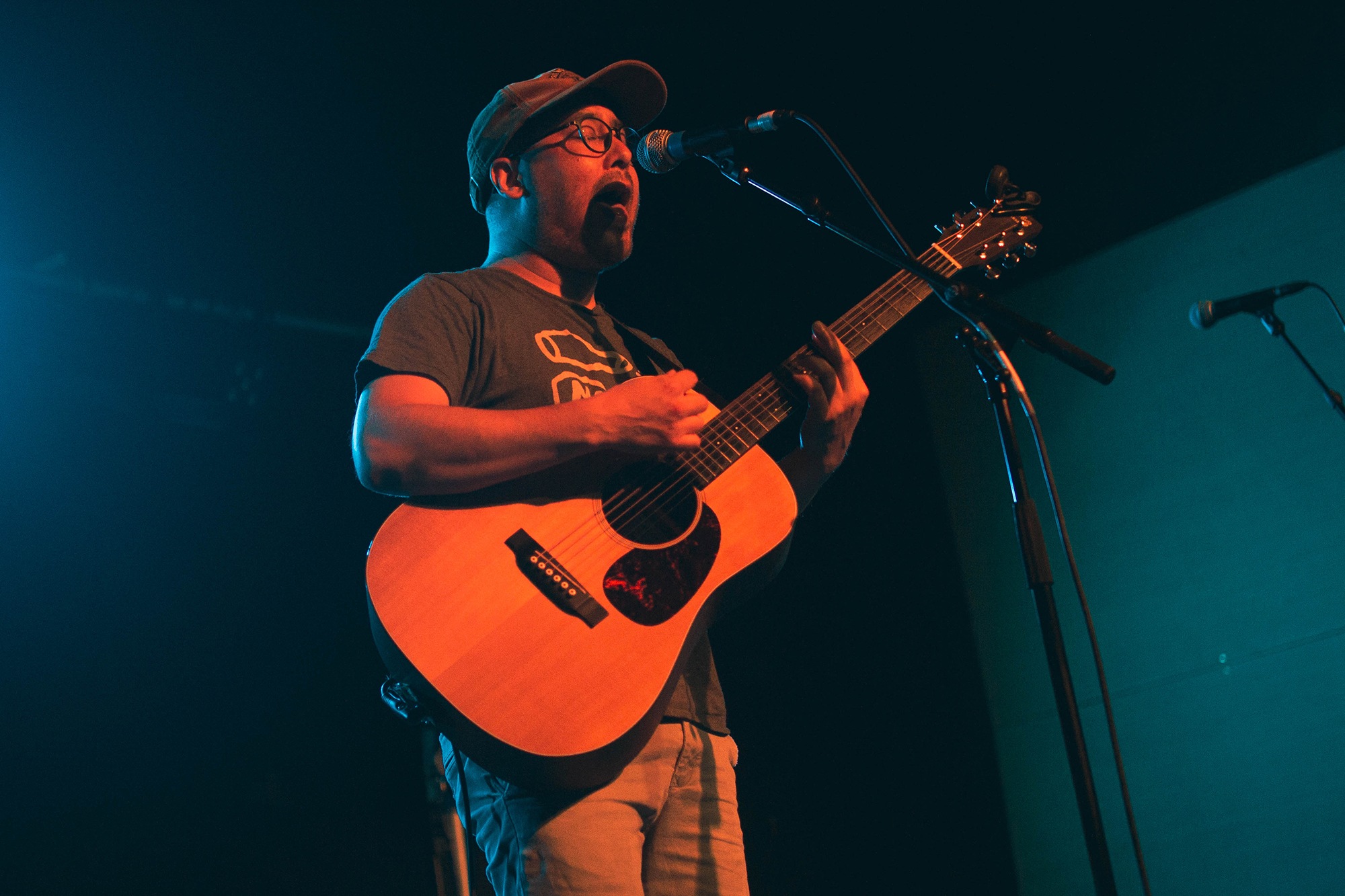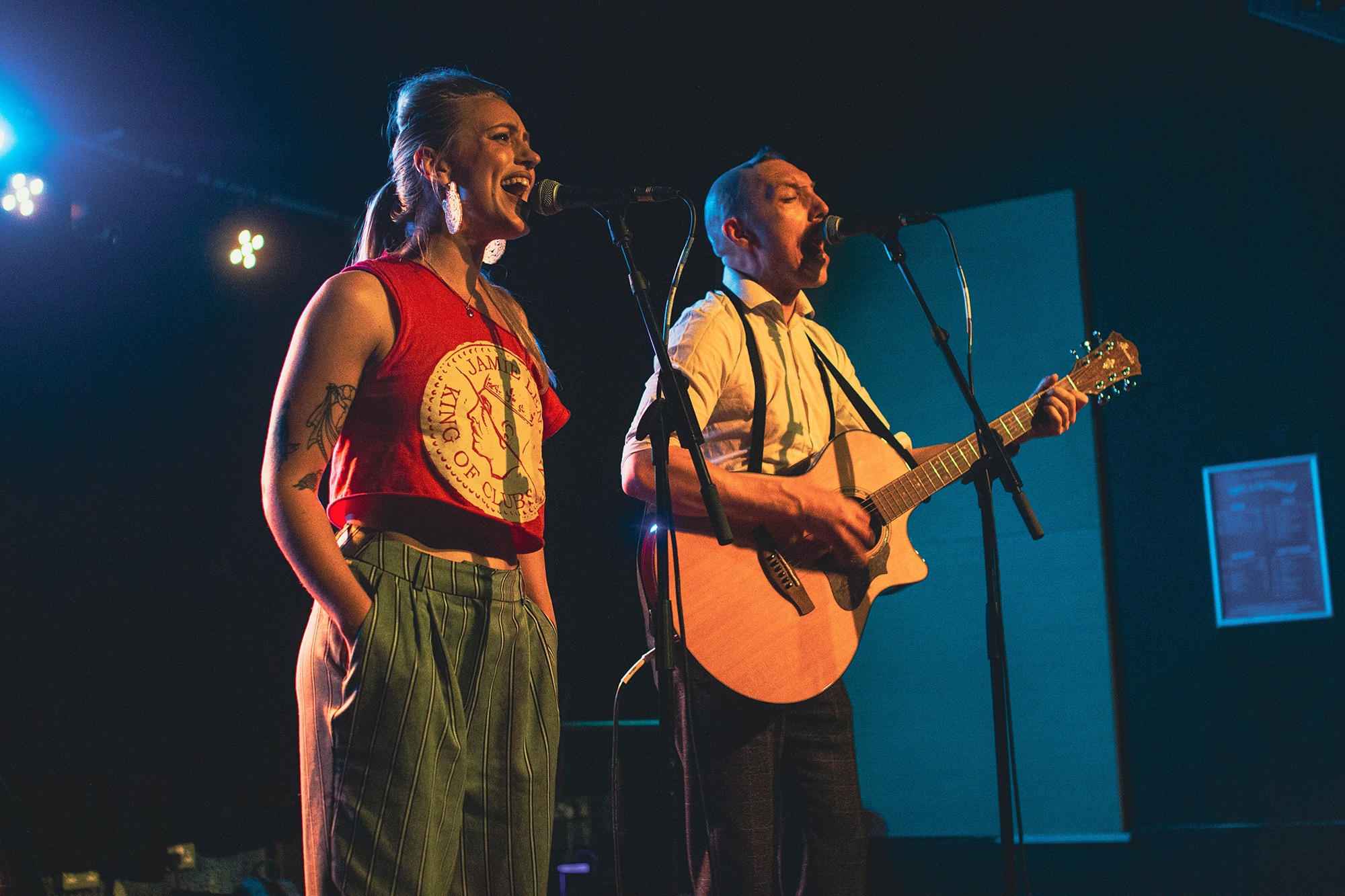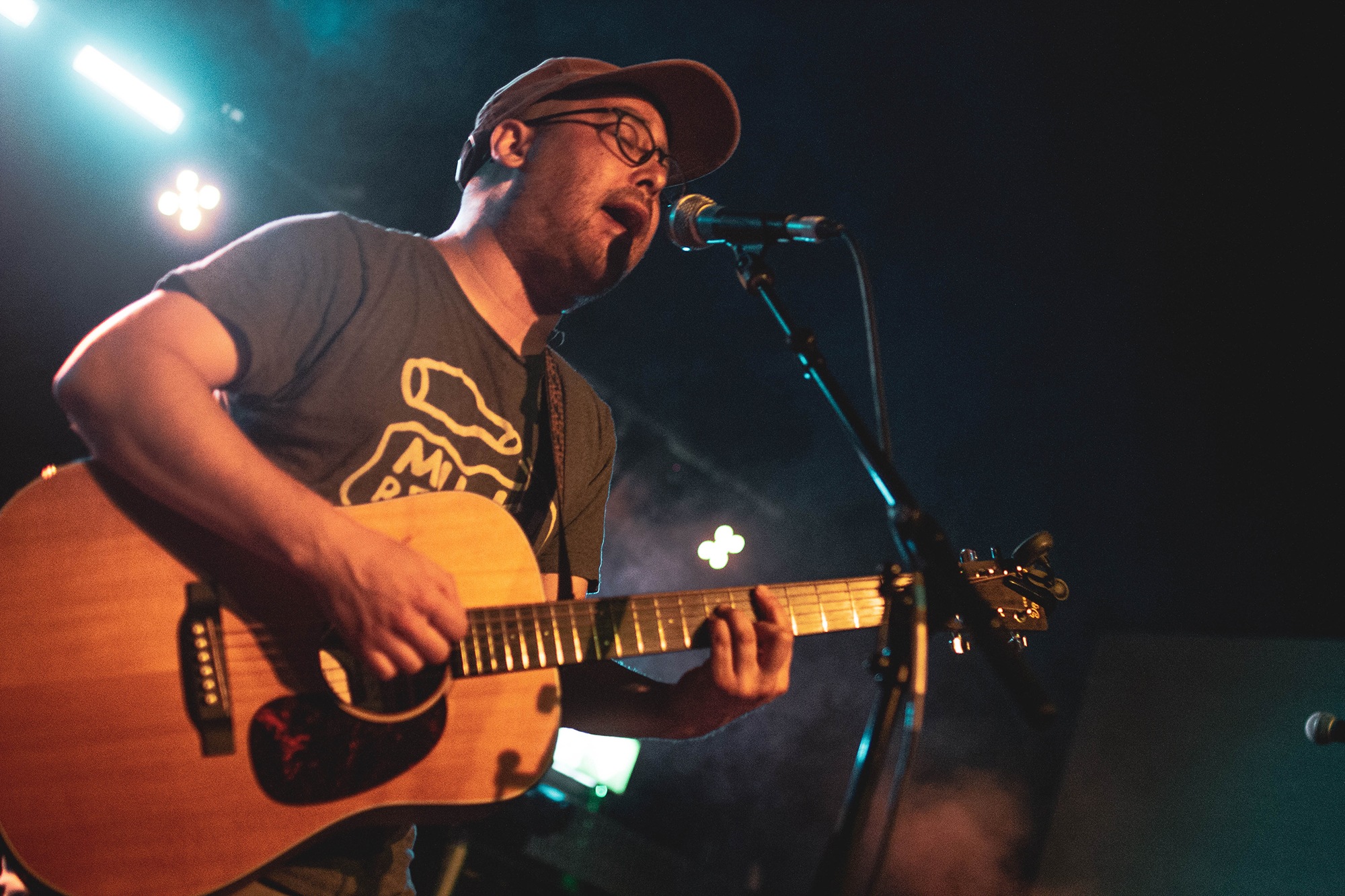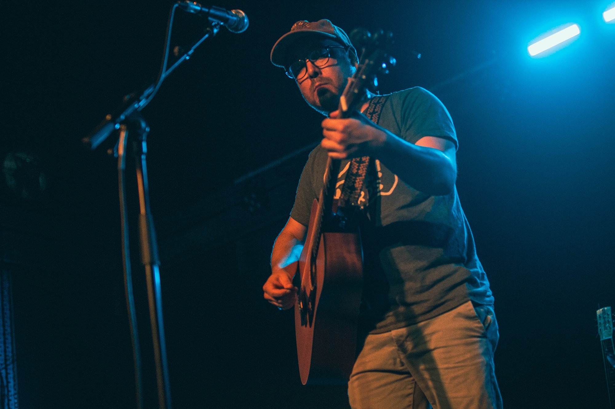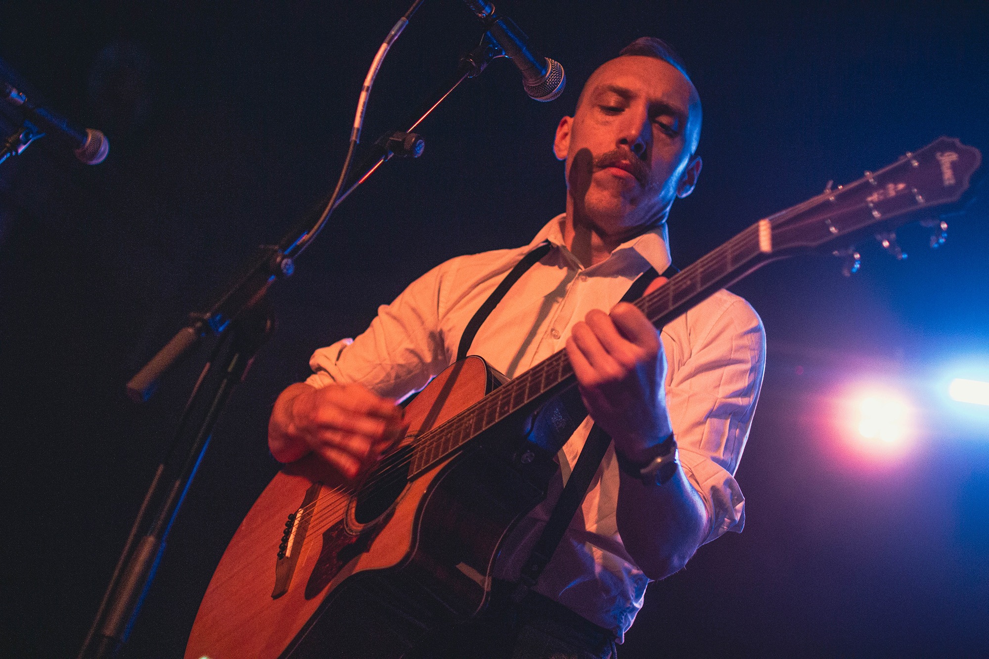 Opening the night was KURT WOOD with some acoustic renditions of songs of his band, SOUNDS OF SWAMI. From the offset, it is clear to see that Wood comes from a punk background with the power and gusto in his voice. Tough Love taken from the band’s most recent LP Furniture For Modern Living lends itself very well to the acoustic setting with a more mellow delivery to it. This is juxtaposed sharply with the likes of Sheep and The Lions Share, the latter of which Wood dedicates to “BNP and EDL dickheads” and he doesn’t spare the galloping breakdown just because he doesn’t have a band to beef it up. He then goes on to flog the band’s merchandise before ending the set by swiftly launching into an excellent cover of Merchandise by none other than FUGAZI.