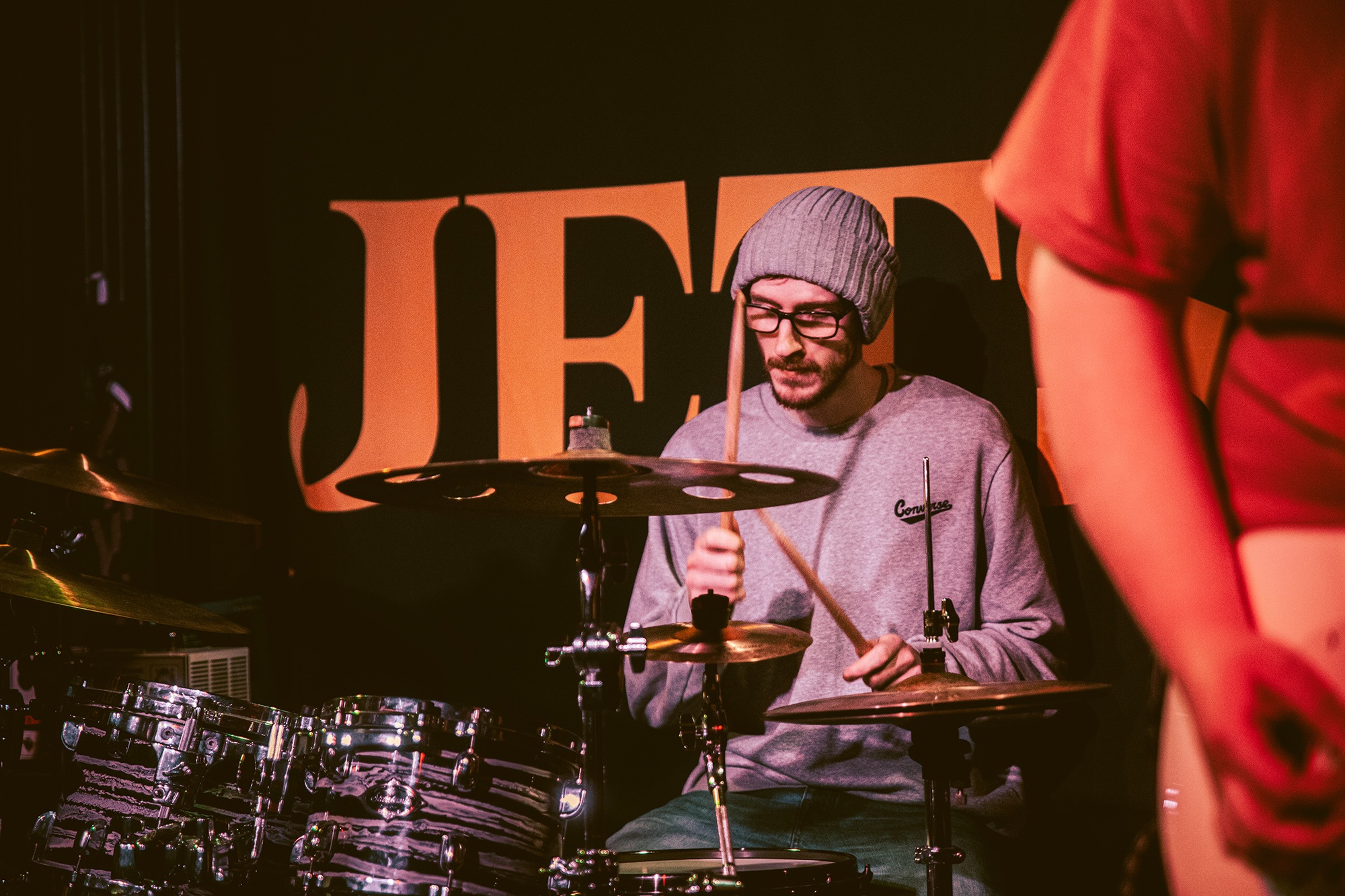 The joy of this being in such a tight, enclosed venue is the buzz it provides in anticipation of tonightās headliners JETSKI. The boys from Sheffield meander their way through the mob to take their places on stage to a slow crescendo of whoops as more people progressively spot their advance. Drummer Alex Pullen ensures his bandmates are primed before counting into Joey and Zoe, the opening track of their EP For The Family. The feel-good anthem provides bundles of energy and immediately gets the room off its feet, with bouncing rhythms showing off the prowess of Pullen that was promised on the record, seldom playing a part you would expect.