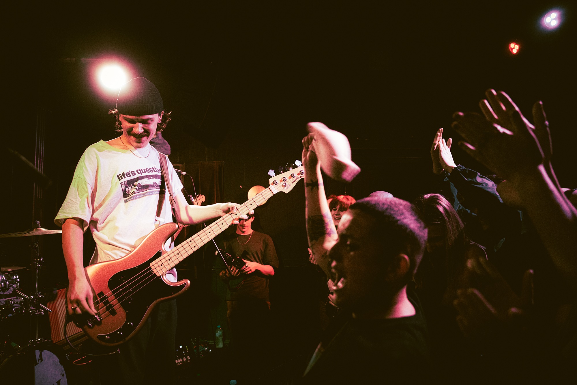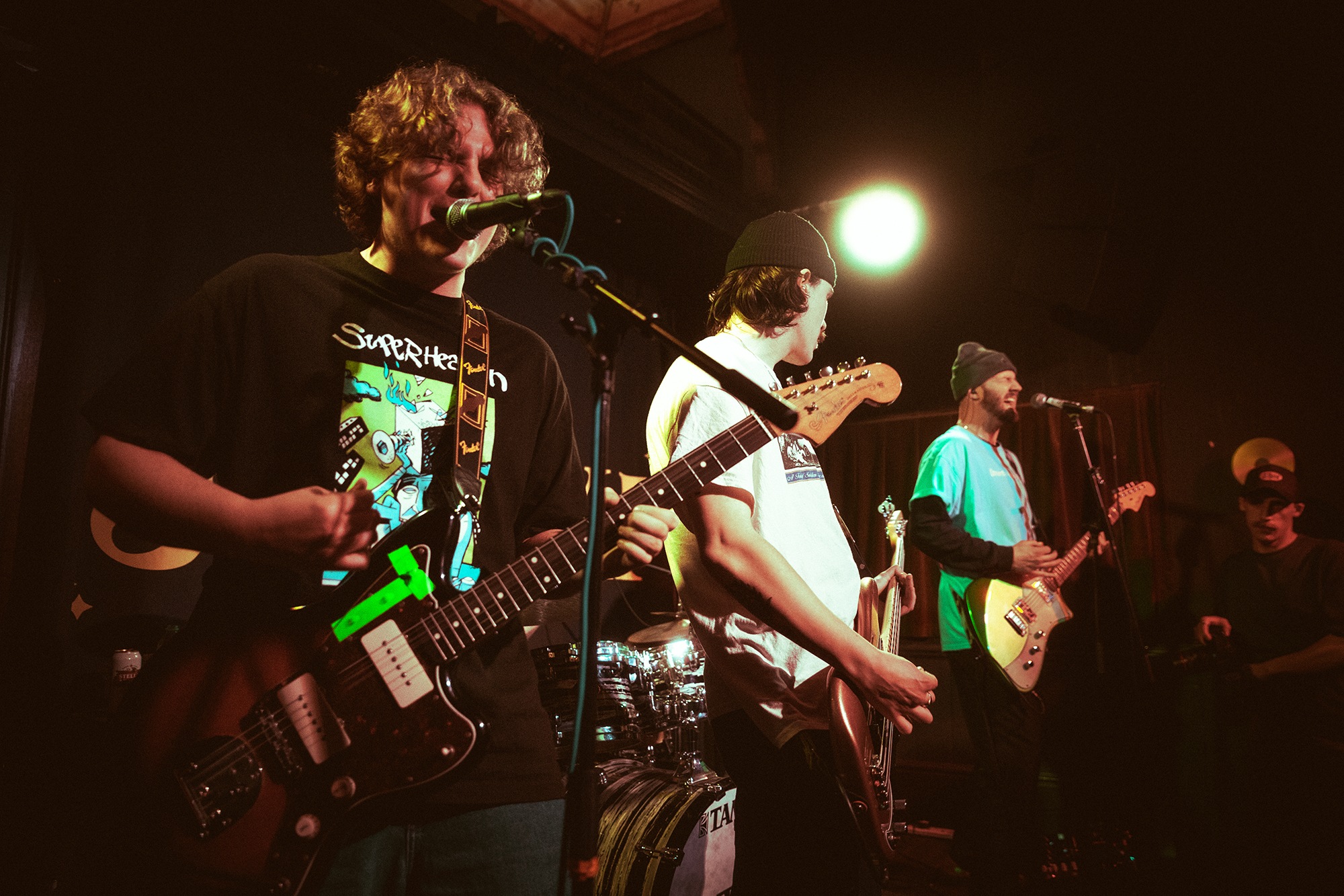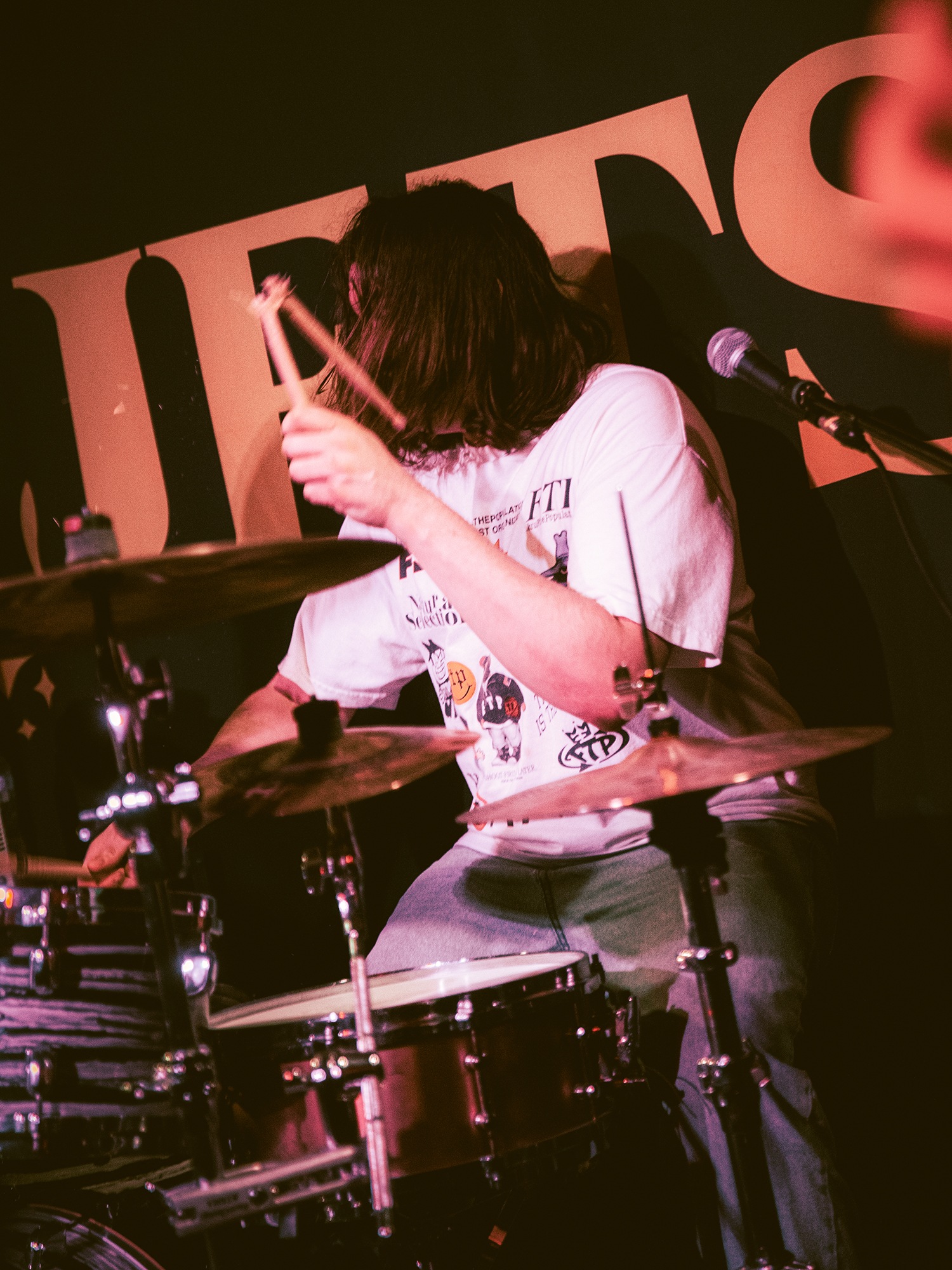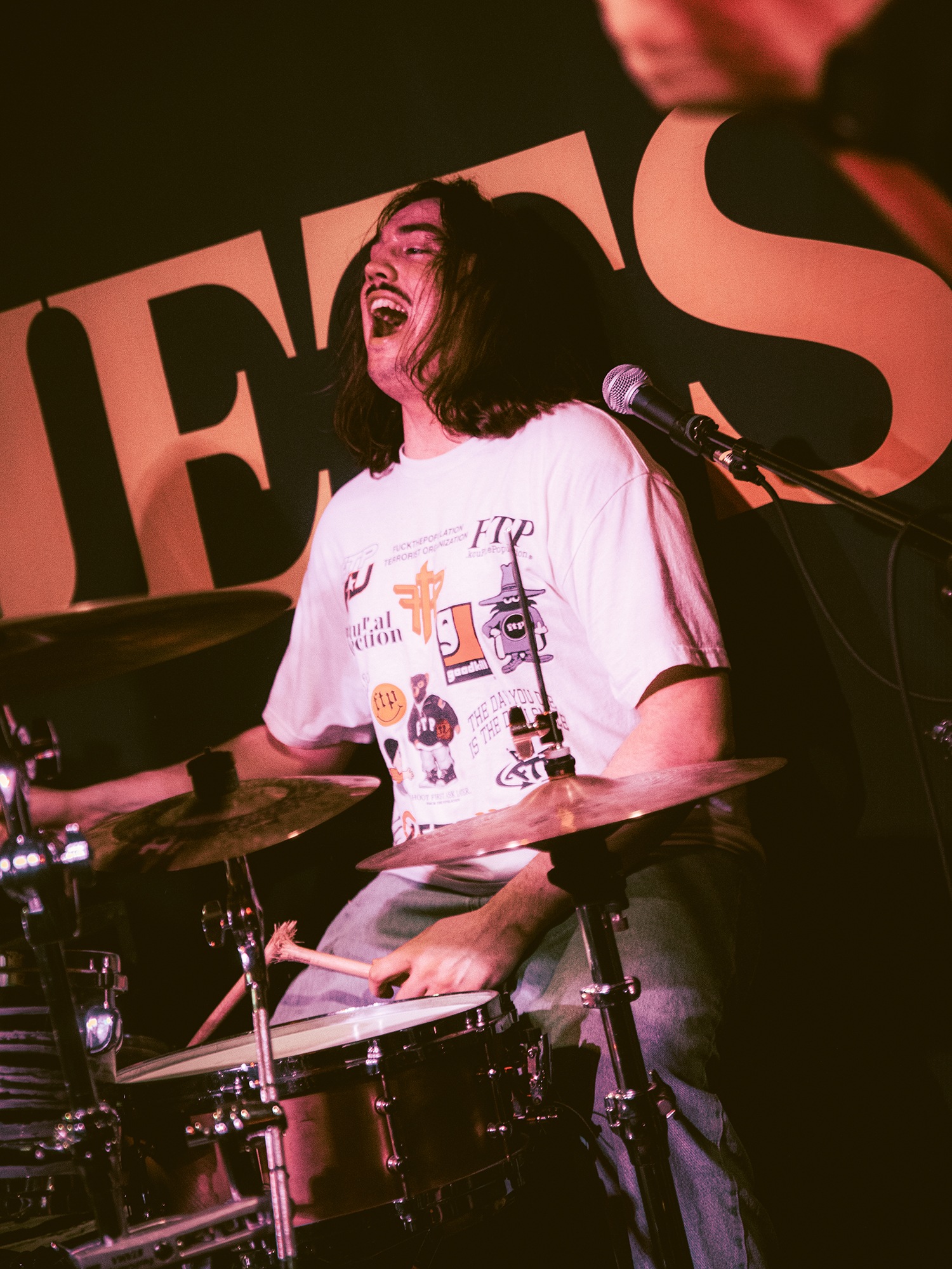 Vocalist Charles Fitzgerald leads the line comfortably from the edge of the compact stage, ushering the crowd closer early on to amplify the energy they desired. āLetās play the fast one way faster than we normally play itā he announces leading into Lemon Haze, and the statement was undoubtedly not just for show. As the outfit raise the energy, so too do the crowd opening mosh pits and utilising the pliant floor to elevate their jumping. They continue their frantic performance not wanting to waste the zeal in the room heading into Vanbourghini, a track about their van, with Pullen snapping a drumstick in the entrance to a breakdown to the gratification of the rest of the group, donating the splintered carcass to a member of the front row.