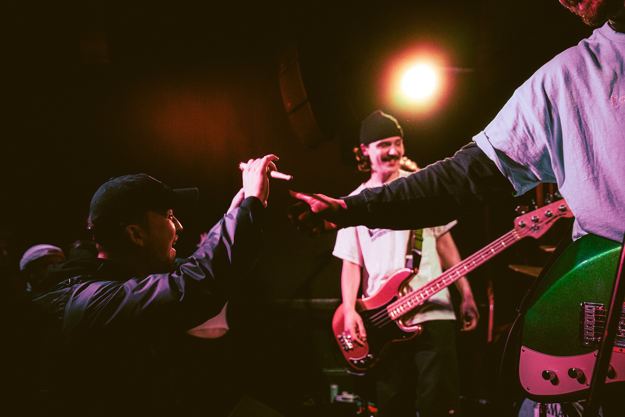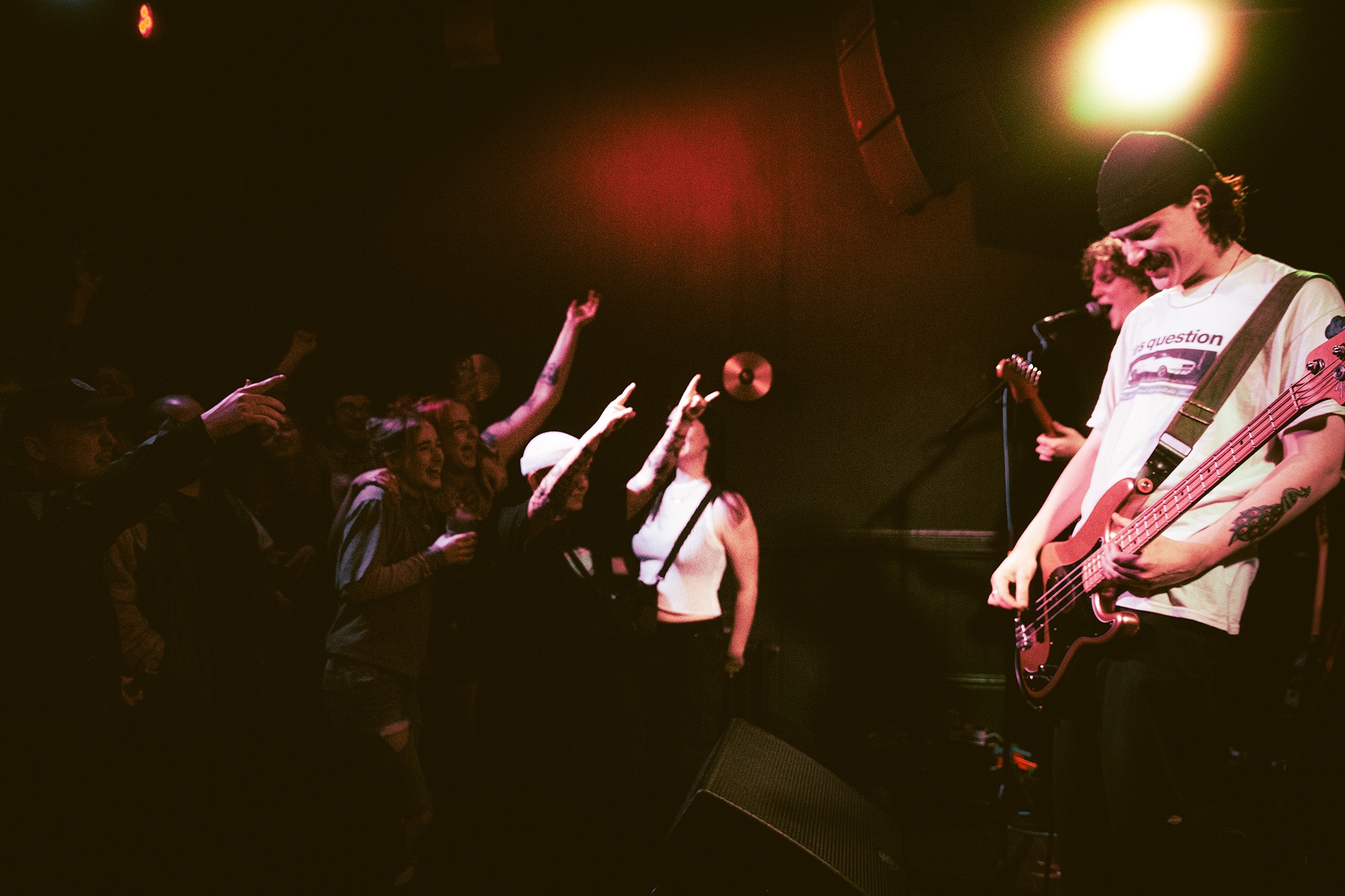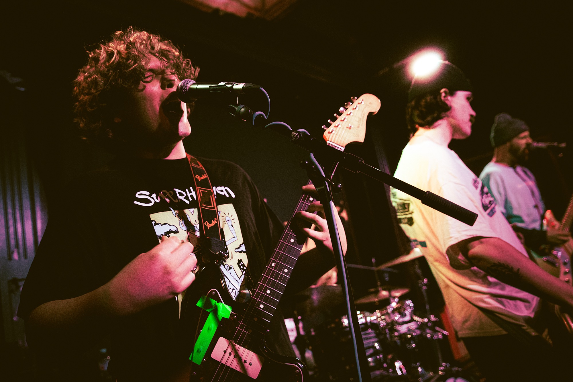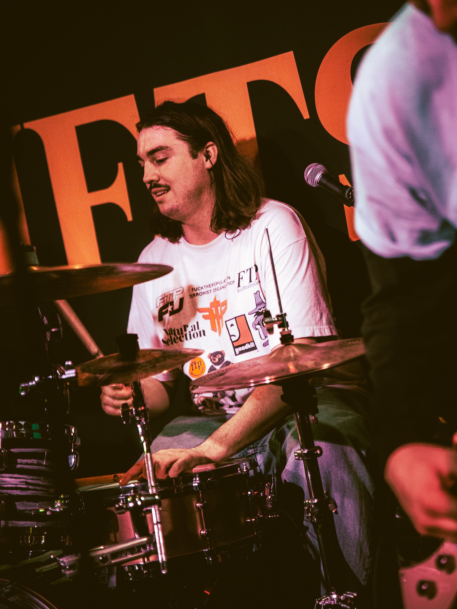 Vocalist Charles Fitzgerald leads the line comfortably from the edge of the compact stage, ushering the crowd closer early on to amplify the energy they desired. āLetās play the fast one way faster than we normally play itā he announces leading into Lemon Haze, and the statement was undoubtedly not just for show. As the outfit raise the energy, so too do the crowd opening mosh pits and utilising the pliant floor to elevate their jumping. They continue their frantic performance not wanting to waste the zeal in the room heading into Vanbourghini, a track about their van, with Pullen snapping a drumstick in the entrance to a breakdown to the gratification of the rest of the group, donating the splintered carcass to a member of the front row.