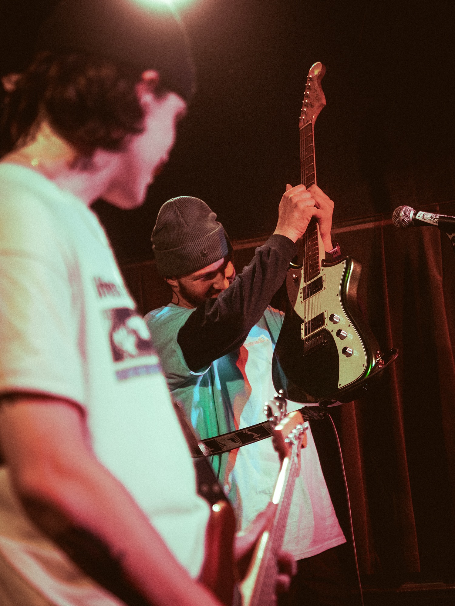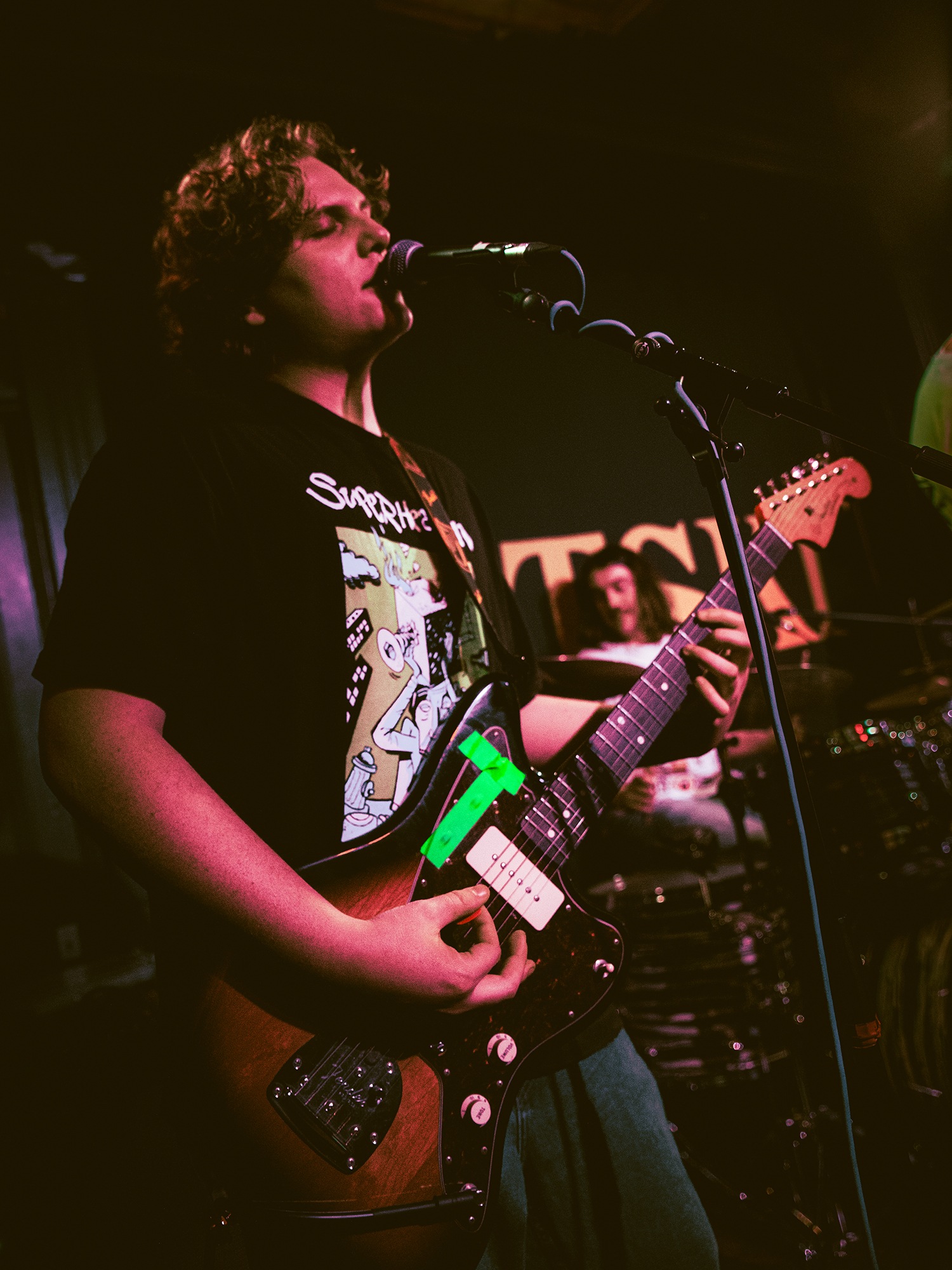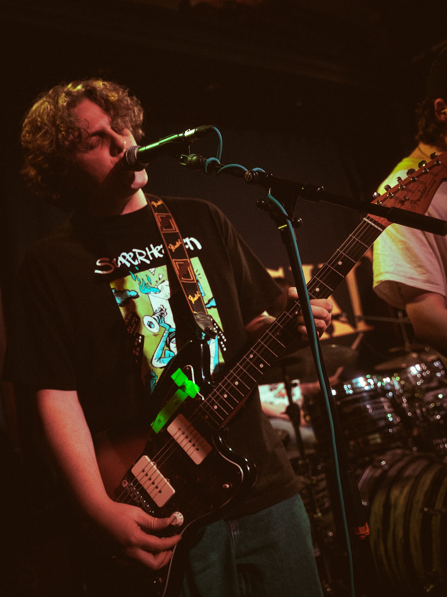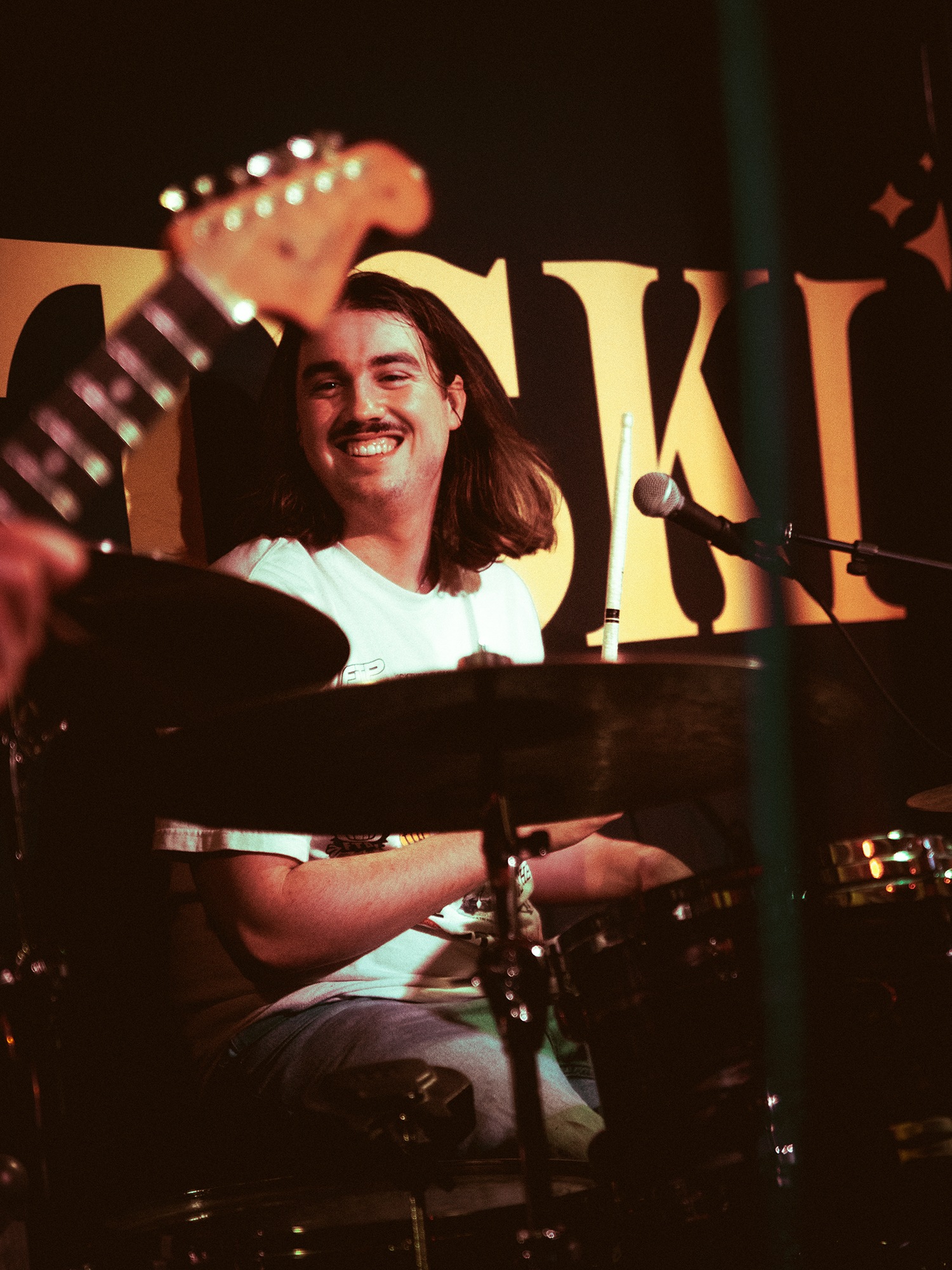 Vocalist Charles Fitzgerald leads the line comfortably from the edge of the compact stage, ushering the crowd closer early on to amplify the energy they desired. āLetās play the fast one way faster than we normally play itā he announces leading into Lemon Haze, and the statement was undoubtedly not just for show. As the outfit raise the energy, so too do the crowd opening mosh pits and utilising the pliant floor to elevate their jumping. They continue their frantic performance not wanting to waste the zeal in the room heading into Vanbourghini, a track about their van, with Pullen snapping a drumstick in the entrance to a breakdown to the gratification of the rest of the group, donating the splintered carcass to a member of the front row.