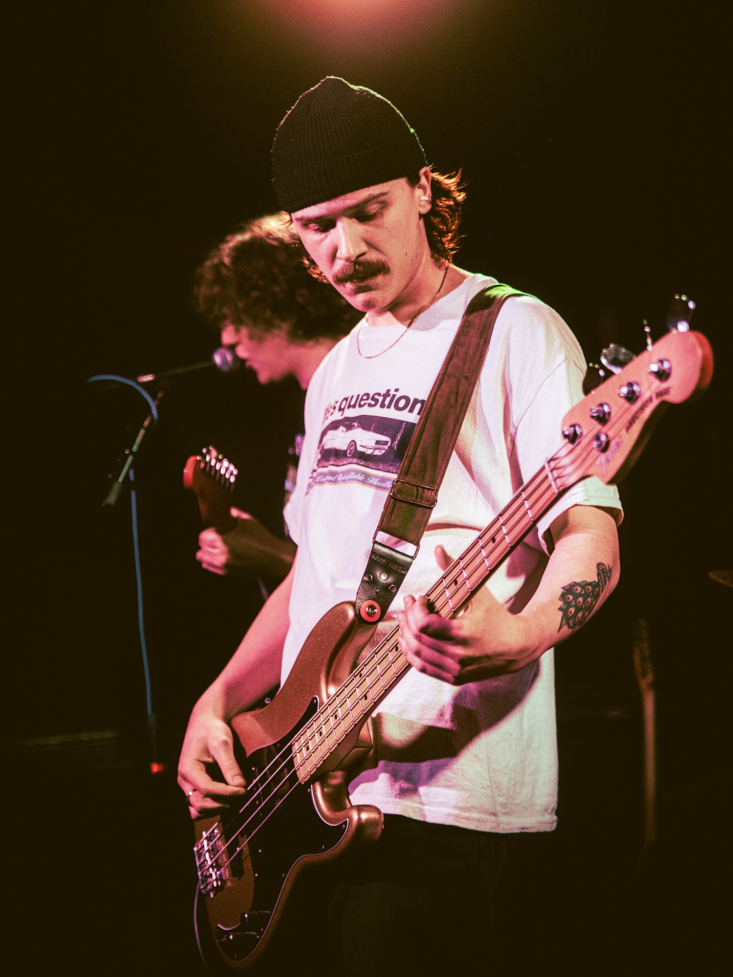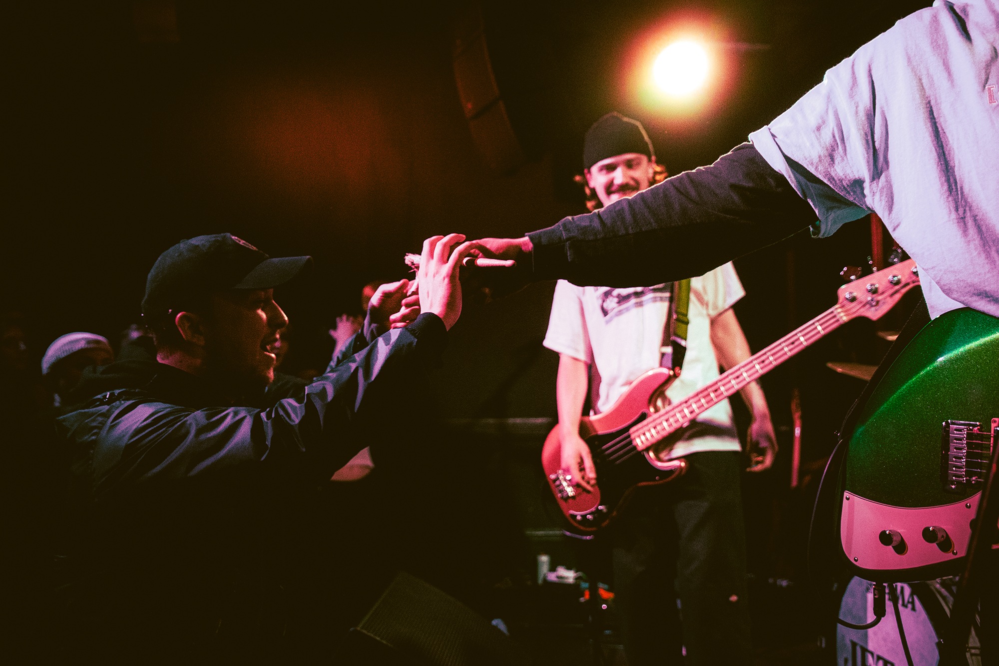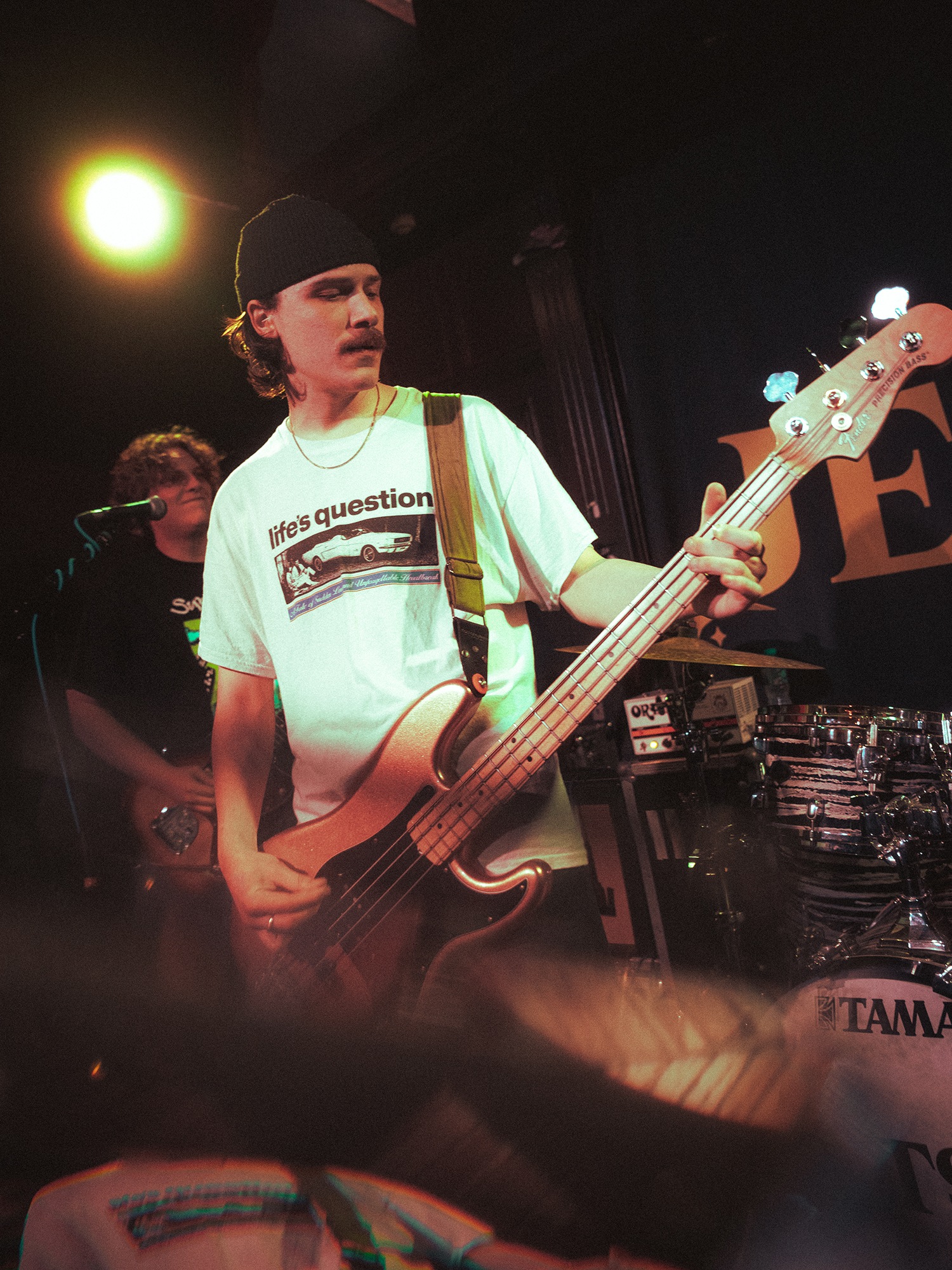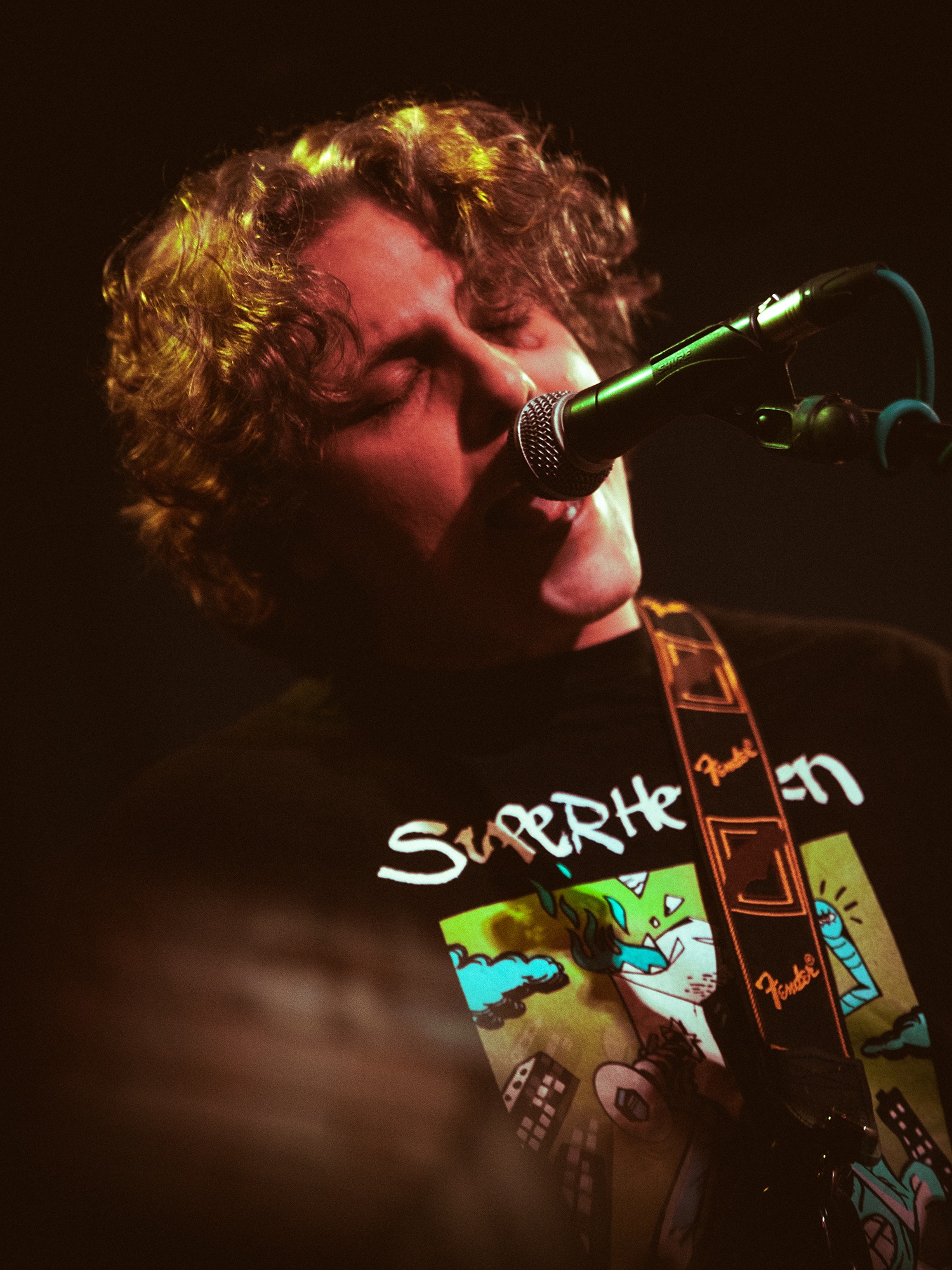 Vocalist Charles Fitzgerald leads the line comfortably from the edge of the compact stage, ushering the crowd closer early on to amplify the energy they desired. āLetās play the fast one way faster than we normally play itā he announces leading into Lemon Haze, and the statement was undoubtedly not just for show. As the outfit raise the energy, so too do the crowd opening mosh pits and utilising the pliant floor to elevate their jumping. They continue their frantic performance not wanting to waste the zeal in the room heading into Vanbourghini, a track about their van, with Pullen snapping a drumstick in the entrance to a breakdown to the gratification of the rest of the group, donating the splintered carcass to a member of the front row.