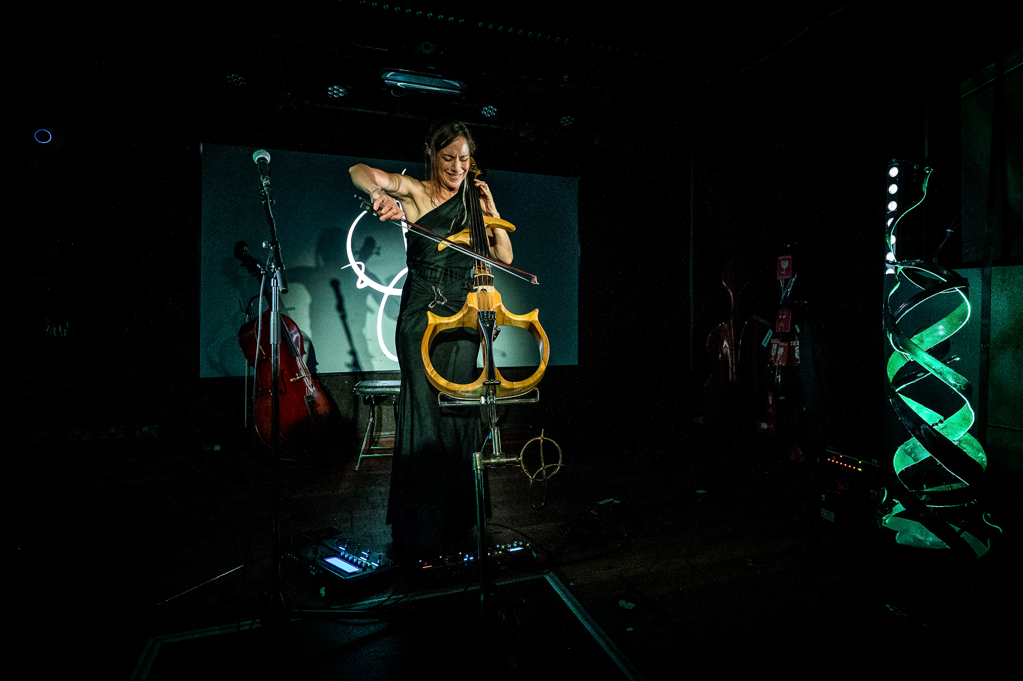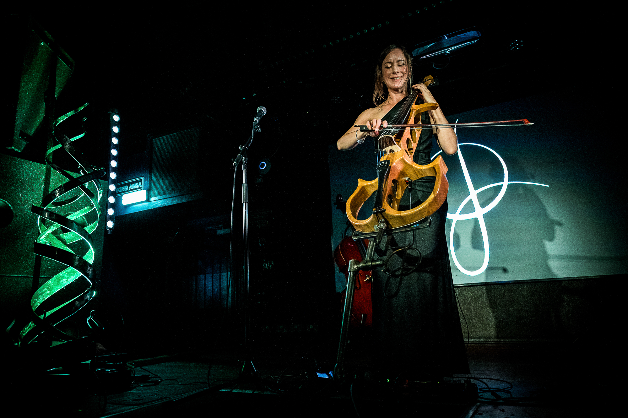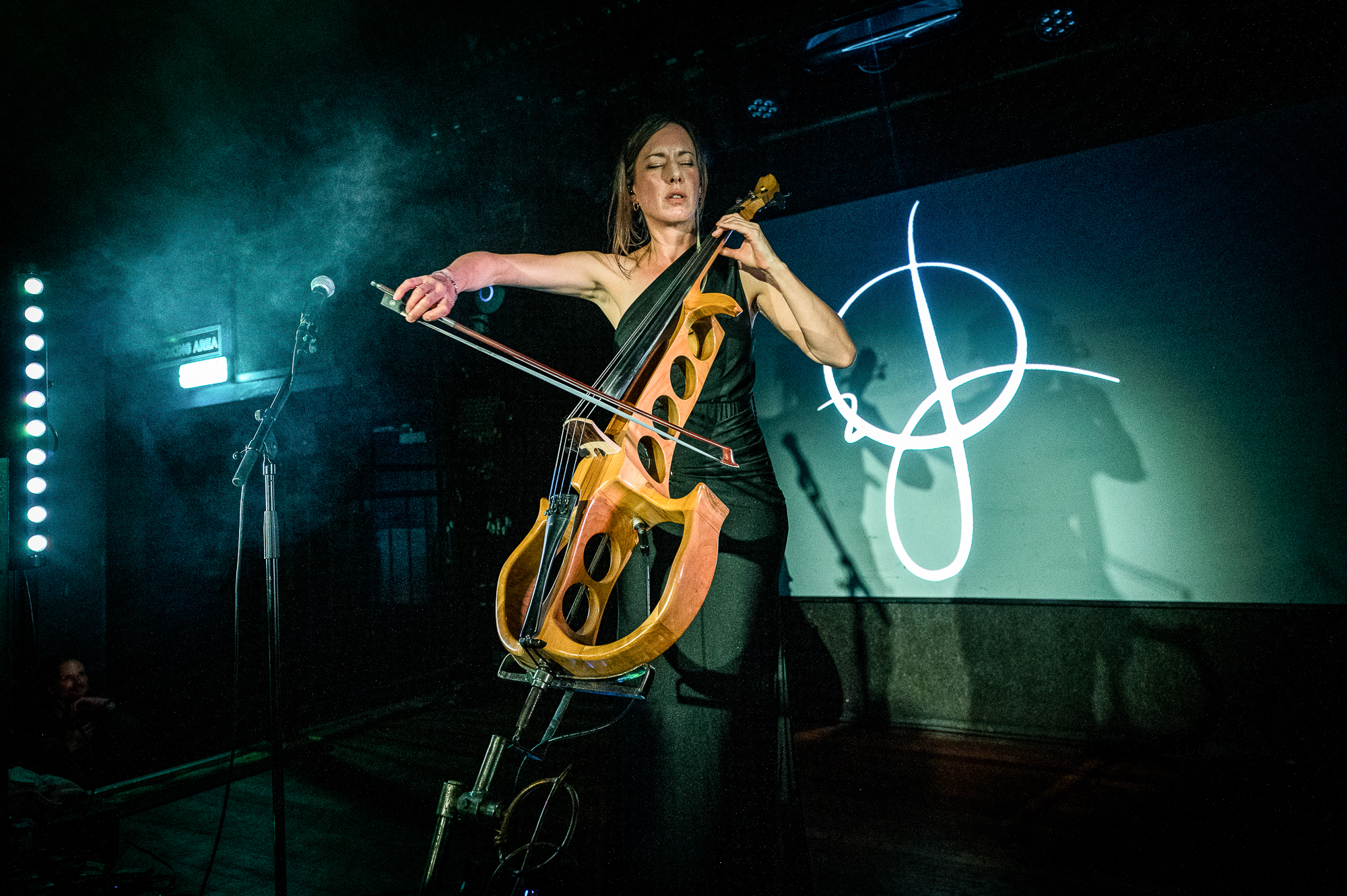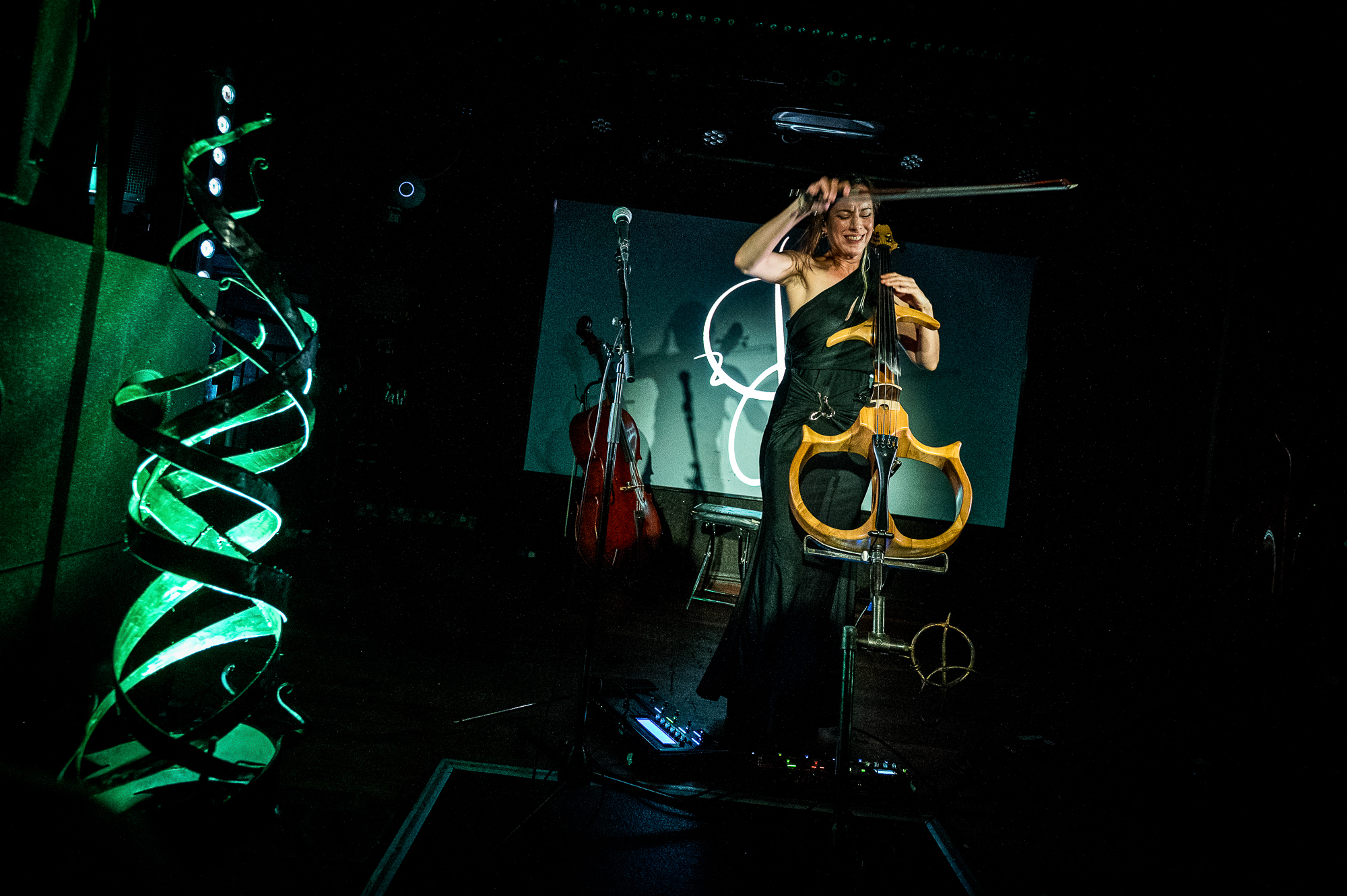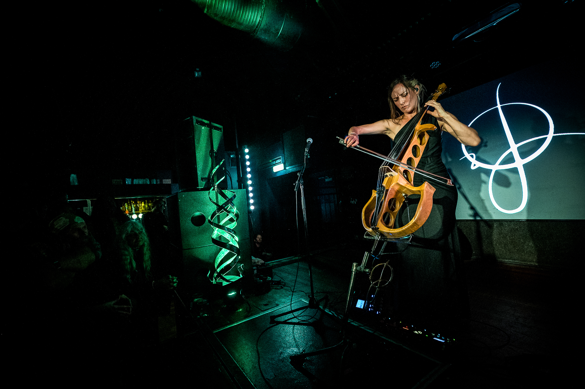 Two songs follow on Jo‘s acoustic cello (“He’s called Ferdinand, born 1820, doesn’t go out to gigs much” she quips), namely A Leaf, and Then a Key and Supplication, where the instrument is the star; there’s a real melancholic power about the sound of a single cello. Its violin cousin may hog the strings spotlight, but it’s more than capable of producing breathtaking moments all on its own. Jo shifts back to her electric cello for the final third – Elia’s Song is tender and soft, a lullaby composed for her daughter, while KingFisher is a journey, eleven minutes in length and never once losing intensity or interest…and then, after Jo has mentioned the trouble she’s had performing it live, it abruptly stops. “I ended it when I mean to kick it back in” she admits sheepishly to a room of laughter, but she picks up where she belongs and finished strongly.