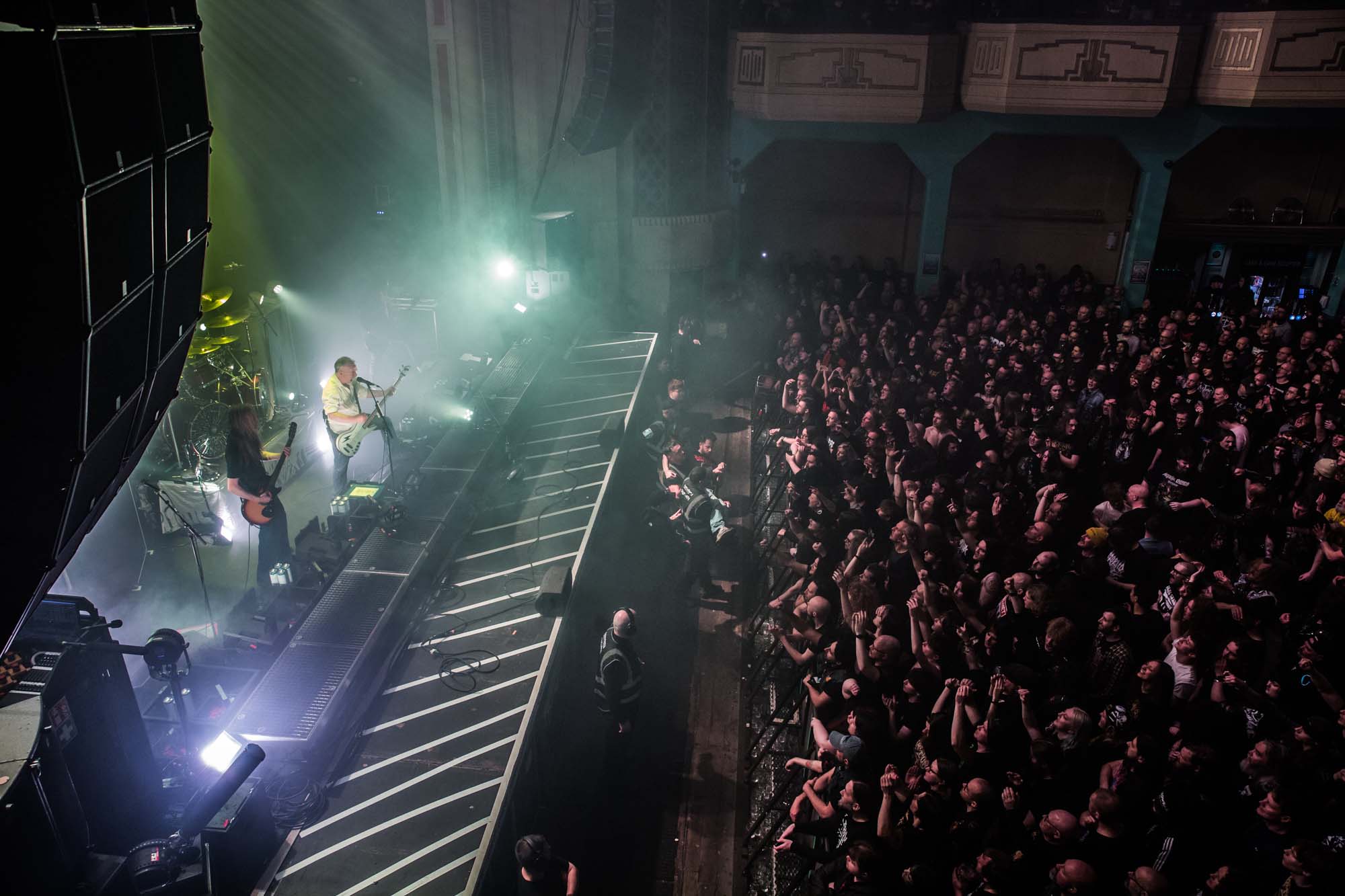 It’s time to wake up and smell the CARCASS, the originators of both impressively goregrind and melodic death metal. They’ve hit the city more frequently and recently than the preceding acts, but you really can’t ever have enough of them. The soundman has got his shit together as the English death legends sound solid from the opener, Unfit for Human Consumption. Perhaps the crowd need a break after the intense action from EXODUS, as their energy is markedly lower for this stellar reunion song. The melodically inclined Buried Dreams from the incredibly influential Heartwork gets a slightly more enthusiastic reaction. But it’s the third song, Incarnated Solvent Abuse, from the seminal Necroticism: Descanting the Insalubrius album, that truly ignites the fire under the crowd’s arses.