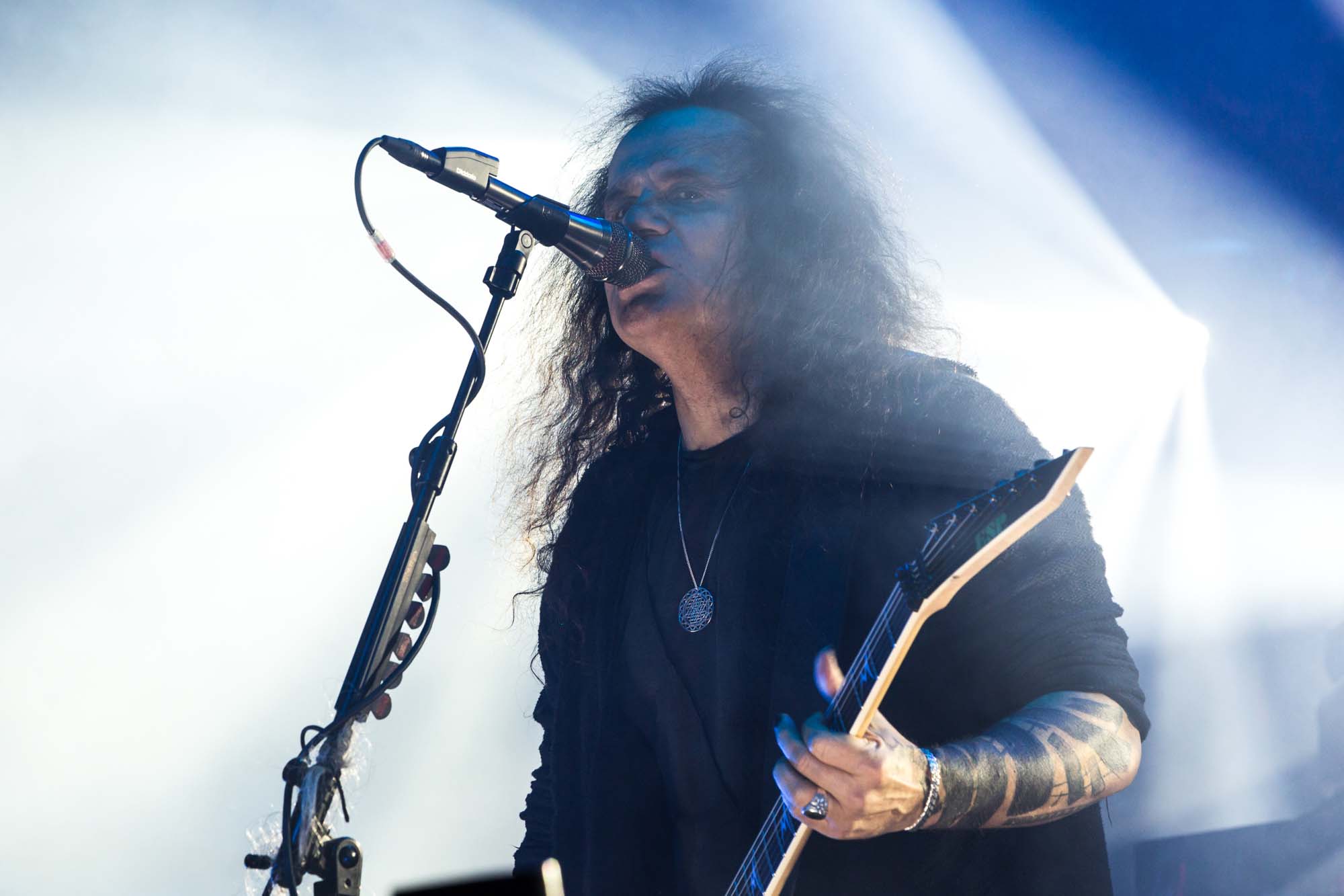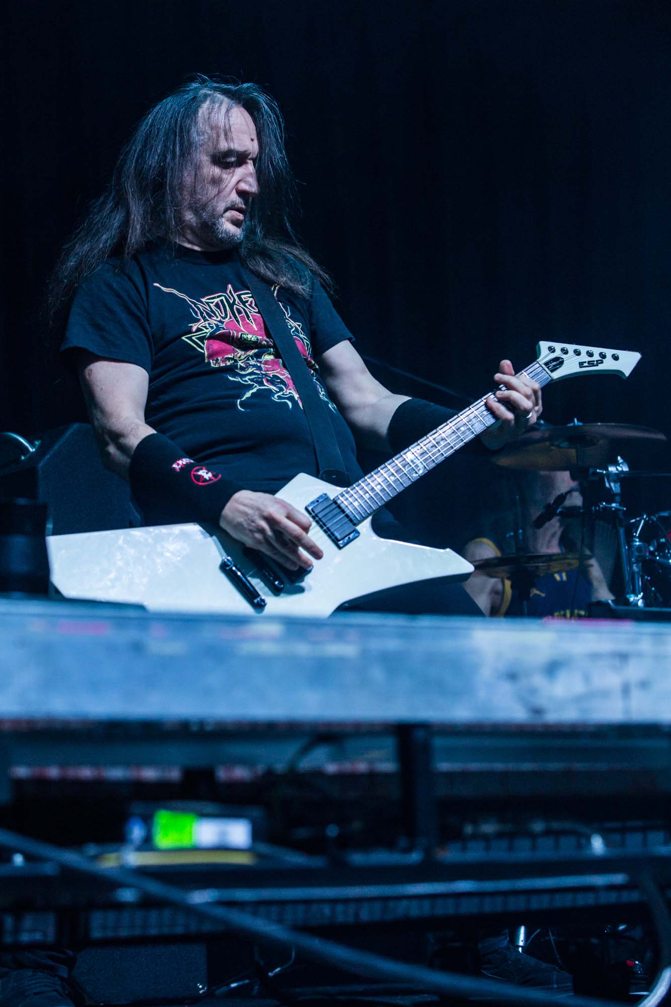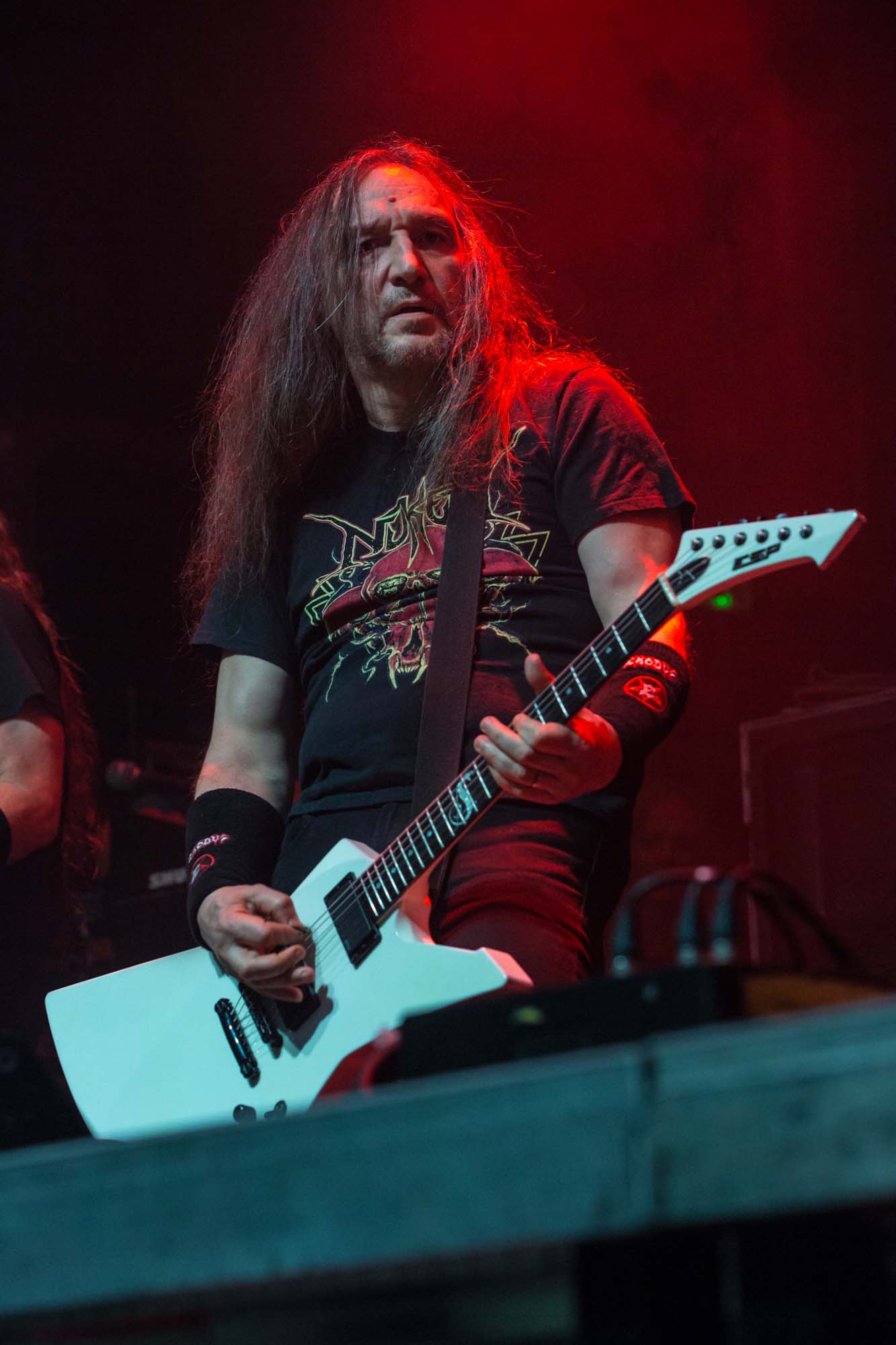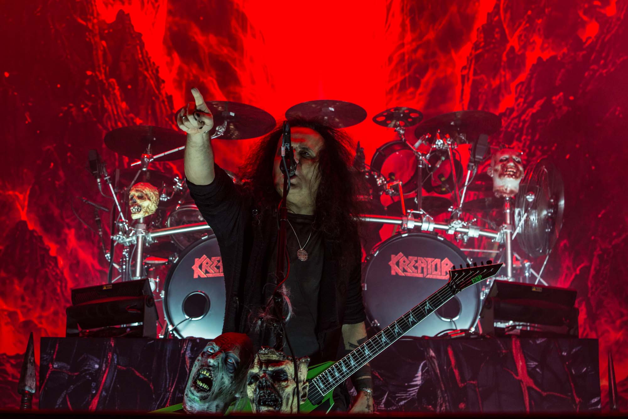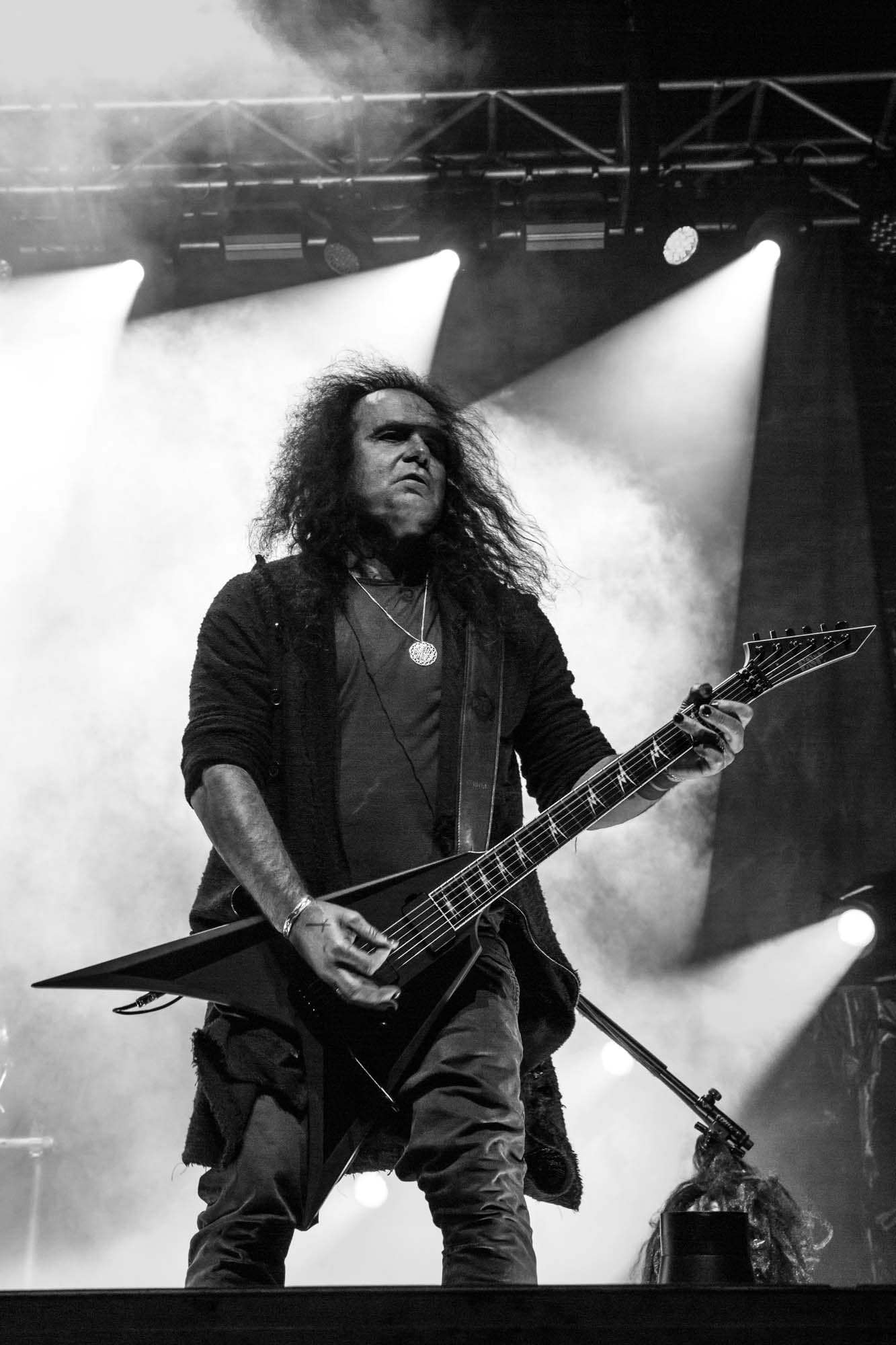 Petrozza‘s guitar proficiency and venomous snarl are still on top form, as is original drummer Ventor, who slaps the skins with resounding force, in spite of his age. The band’s energy and showmanship make it clear they’ve run tight live performances for decades. Even if the songs from their latest album Krushers of the World, like the title track, Loyal to the Grave and Satanic Anarchy don’t hit the spot, their musicianship can be easily admired. There are peaks and troughs to the spectators’ energy, and quite a few start heading for the door prematurely, but this doesn’t deter the headliners. Closing classic Pleasure to Kill shatters the venue for a final time before the band separates from their instruments. It’s surprising that they don’t play usual staples Flag of Hate or Tormentor, but this is just additional evidence that KREATOR are far from a nostalgia act.