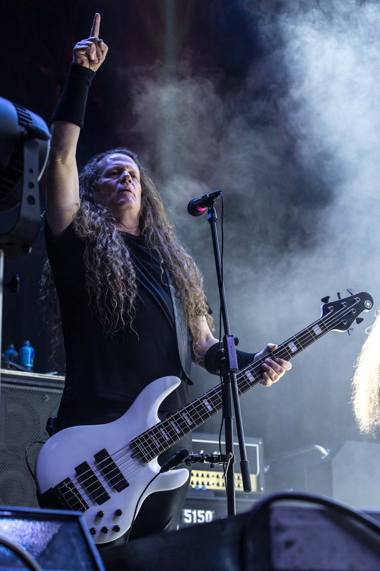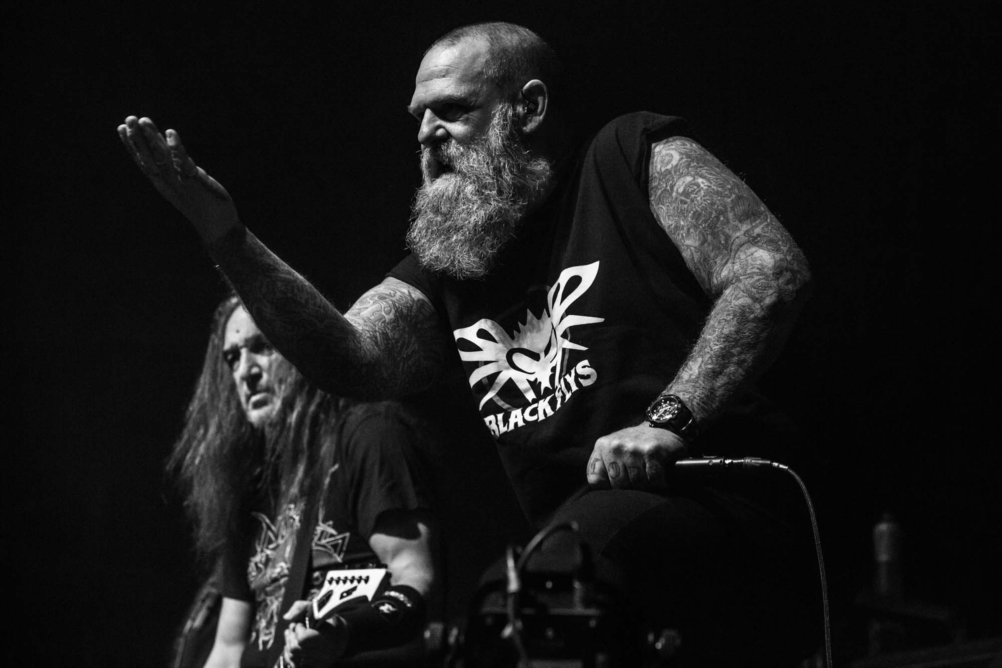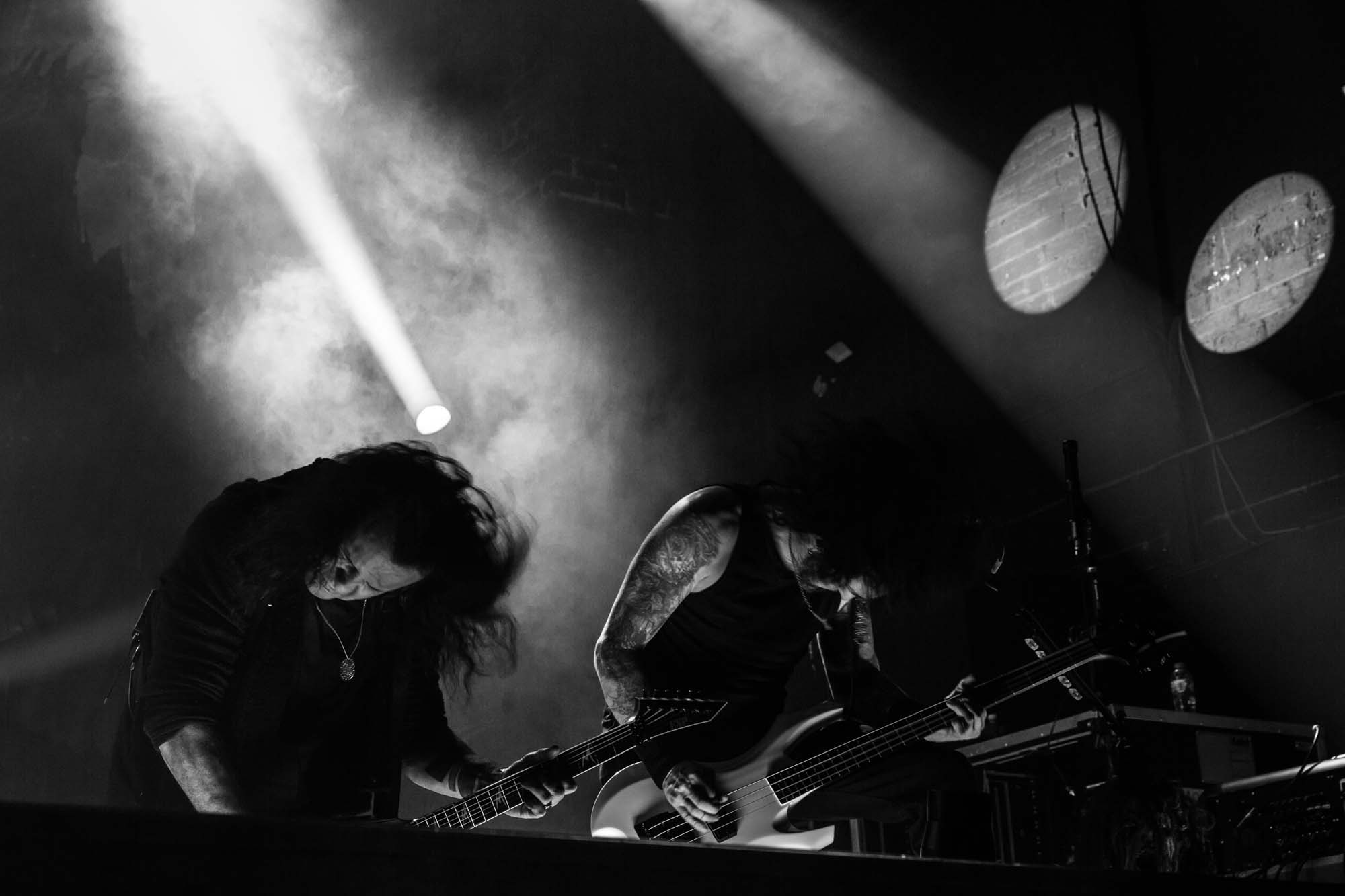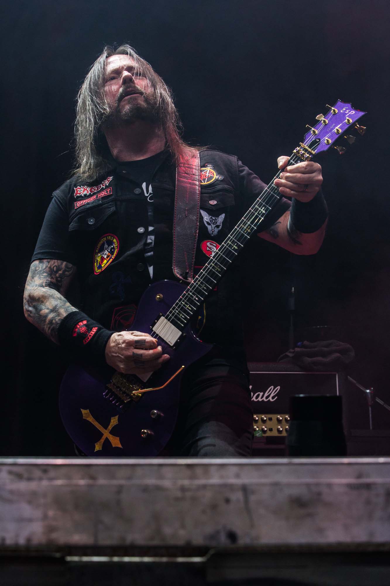 With a shorter set than they should have, the Americans have to be picky about their setlist. Wisely, the plodding title track is the only other song from Goliath. The usual suspects, like Deathlist, A Lesson in Violence and Toxic Waltz (teased before with a snippet of SLAYER‘s Raining Blood from Gary Holt, the now live guitarist for that unholy alliance), get showered in glory. Hyper-caffeinated tempos, electrifying solos and drumming that hits deeper than an oil rig smack all four walls of the room are reasons EXODUS rose to the forefront of thrash metal four decades ago. They’re also impacted by major sound drawbacks – the guitars sound hollow but this improves after a few songs. In defiance of their age, they’re dynamic, constantly moving and headbanging. There are some intriguing stage moments, such as Dukes strumming on Holt‘s guitar while the guitarist’s left hand hammers out a solo, and someone wearing a weird ape mask with long curly red hair taking over Lee Altus‘ rhythm guitar for a bit. The galloping Strike of the Beast closes the performance and leaves its mark on the venue. This is an utterly devastating showing that the following two acts will struggle to match.