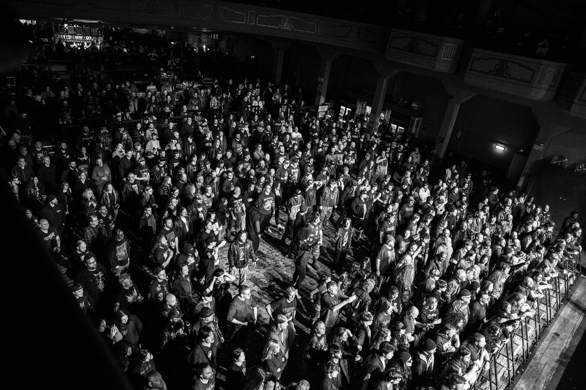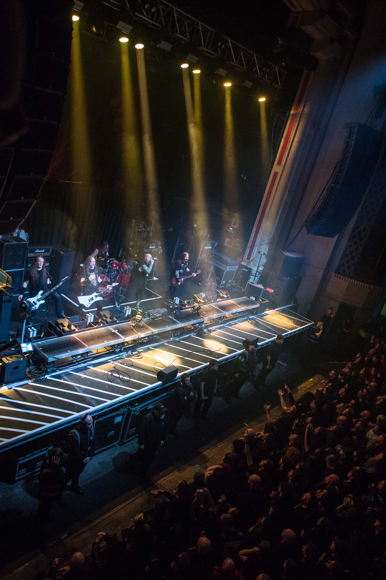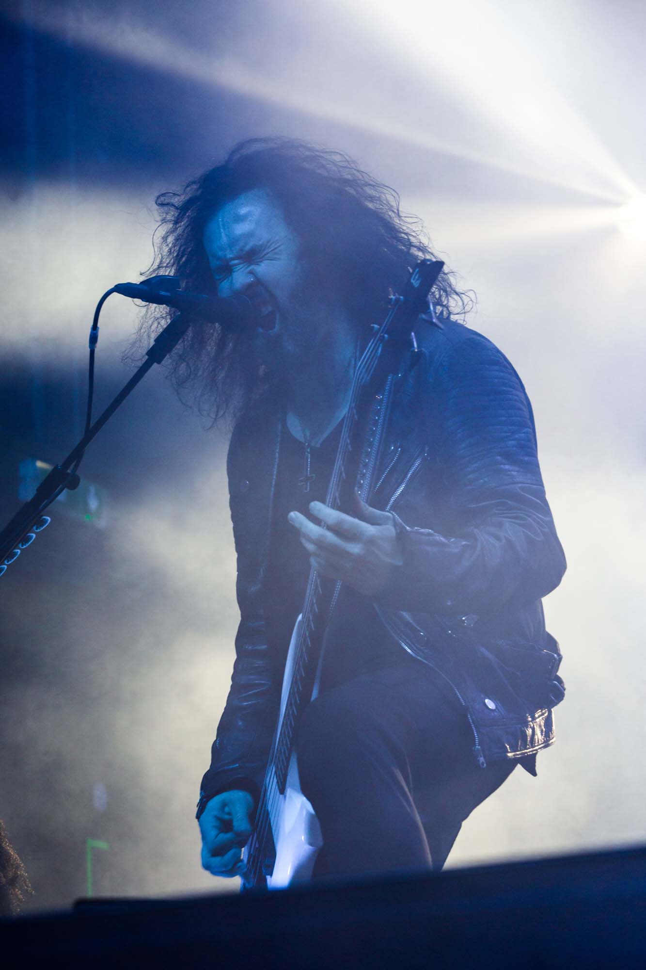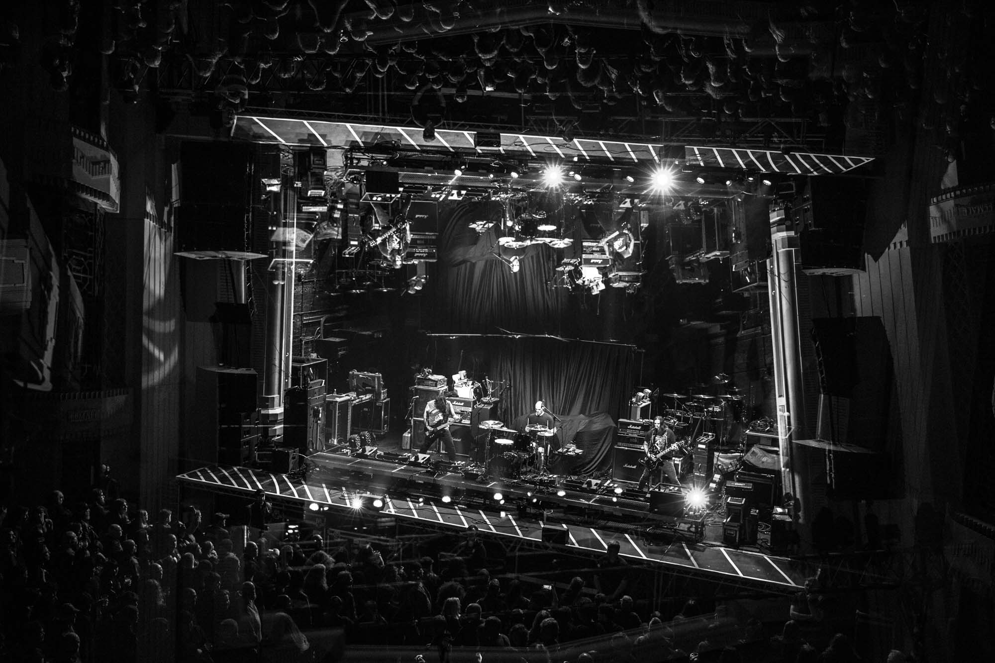 With a shorter set than they should have, the Americans have to be picky about their setlist. Wisely, the plodding title track is the only other song from Goliath. The usual suspects, like Deathlist, A Lesson in Violence and Toxic Waltz (teased before with a snippet of SLAYER‘s Raining Blood from Gary Holt, the now live guitarist for that unholy alliance), get showered in glory. Hyper-caffeinated tempos, electrifying solos and drumming that hits deeper than an oil rig smack all four walls of the room are reasons EXODUS rose to the forefront of thrash metal four decades ago. They’re also impacted by major sound drawbacks – the guitars sound hollow but this improves after a few songs. In defiance of their age, they’re dynamic, constantly moving and headbanging. There are some intriguing stage moments, such as Dukes strumming on Holt‘s guitar while the guitarist’s left hand hammers out a solo, and someone wearing a weird ape mask with long curly red hair taking over Lee Altus‘ rhythm guitar for a bit. The galloping Strike of the Beast closes the performance and leaves its mark on the venue. This is an utterly devastating showing that the following two acts will struggle to match.