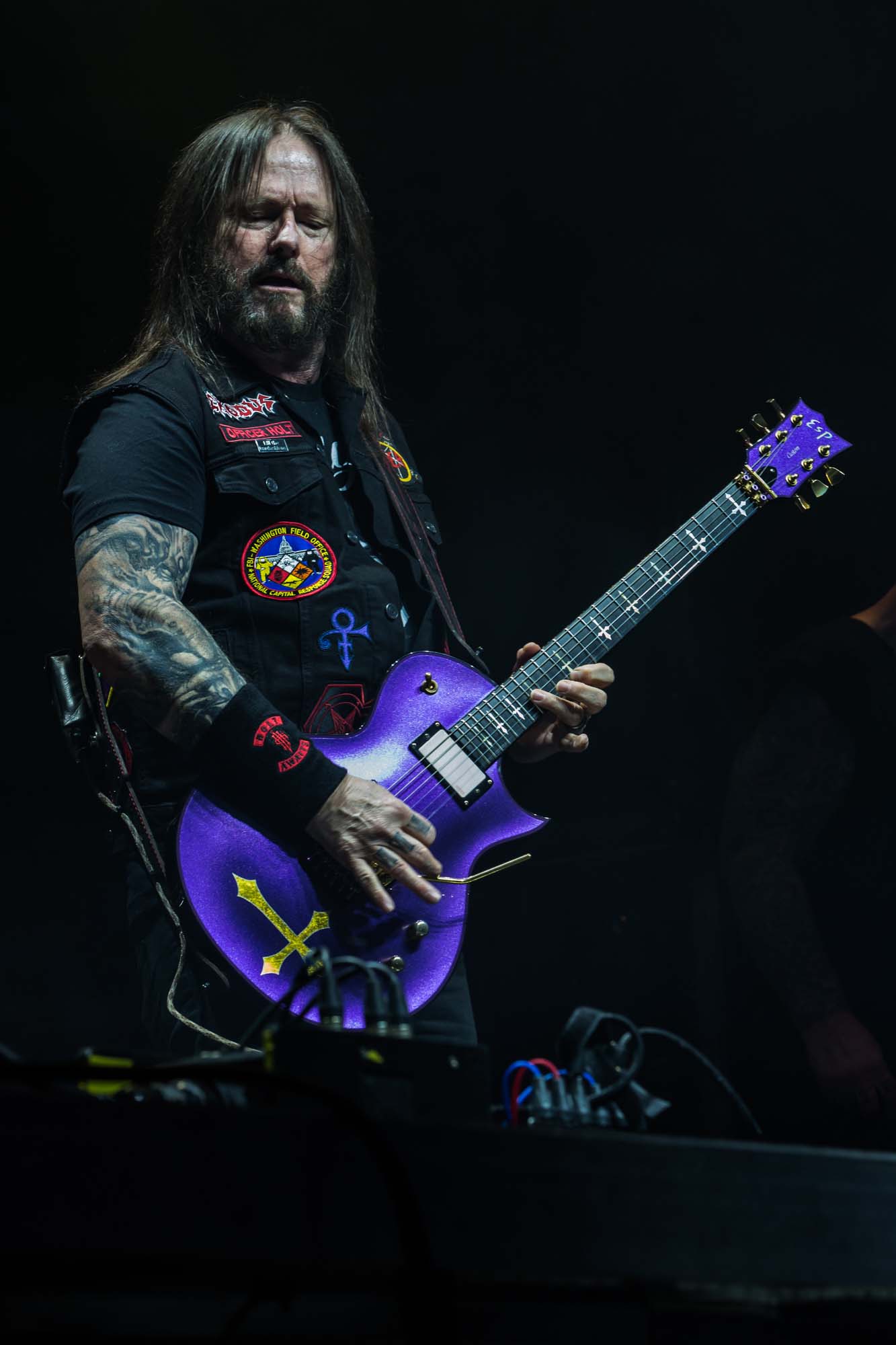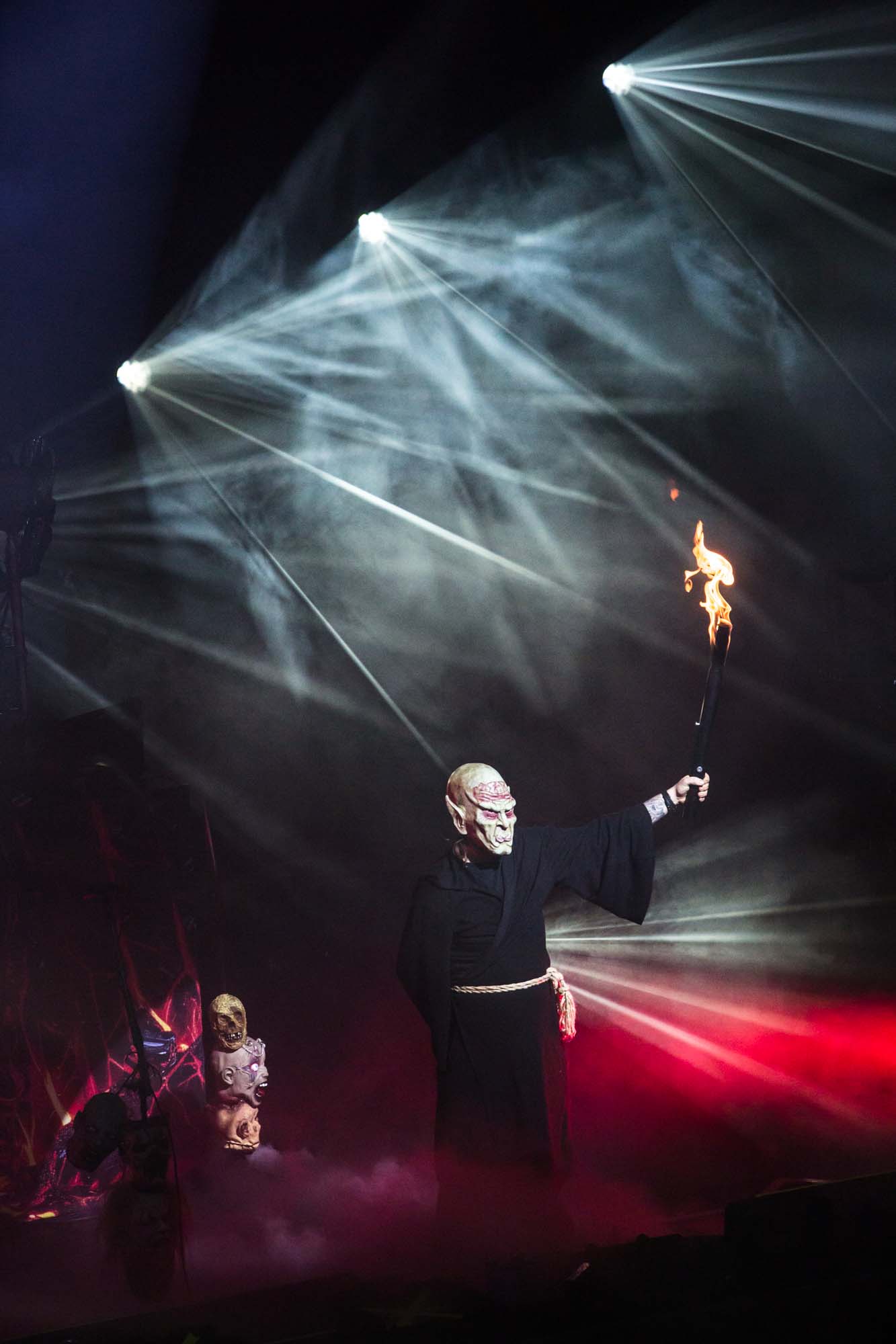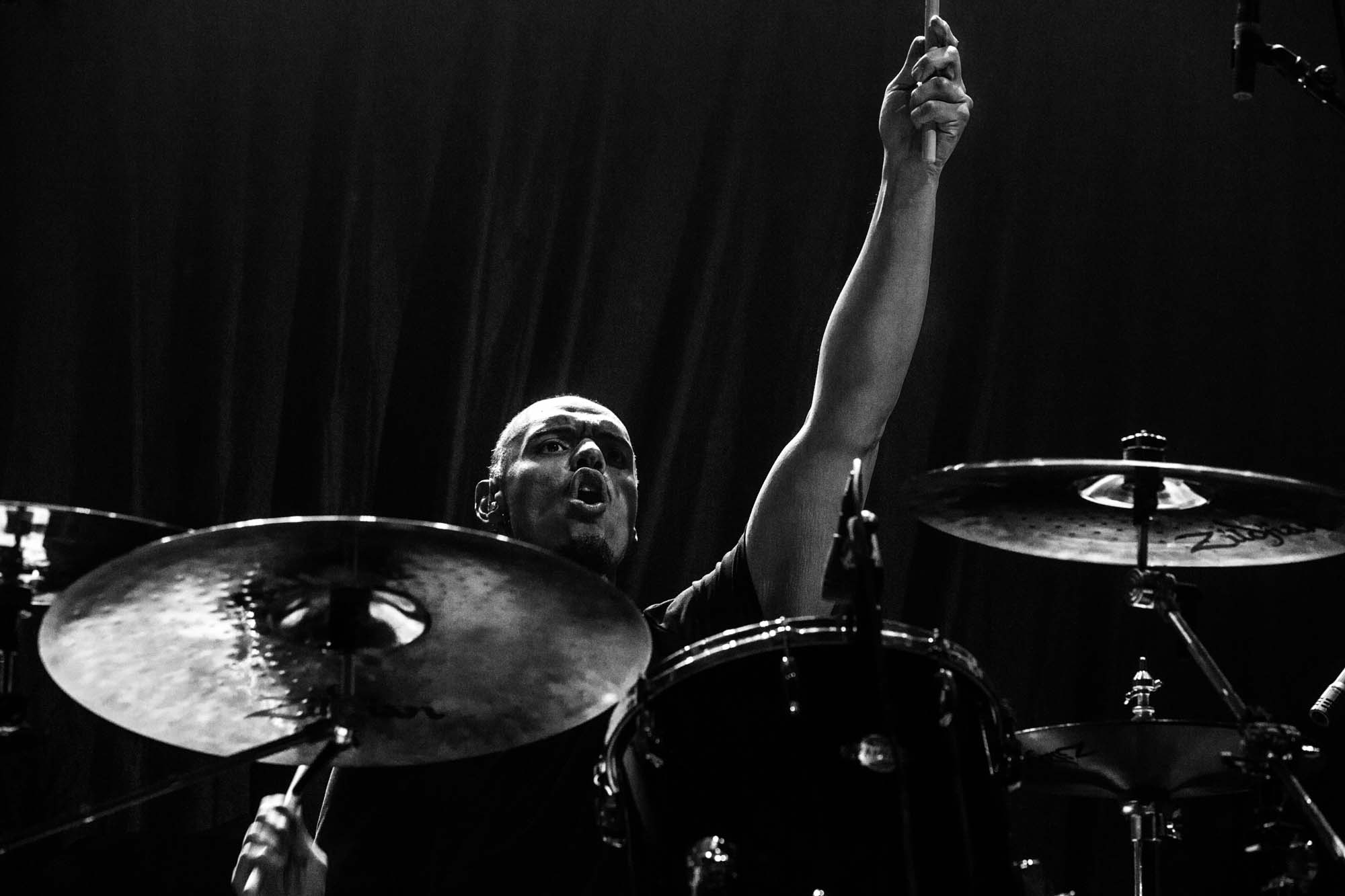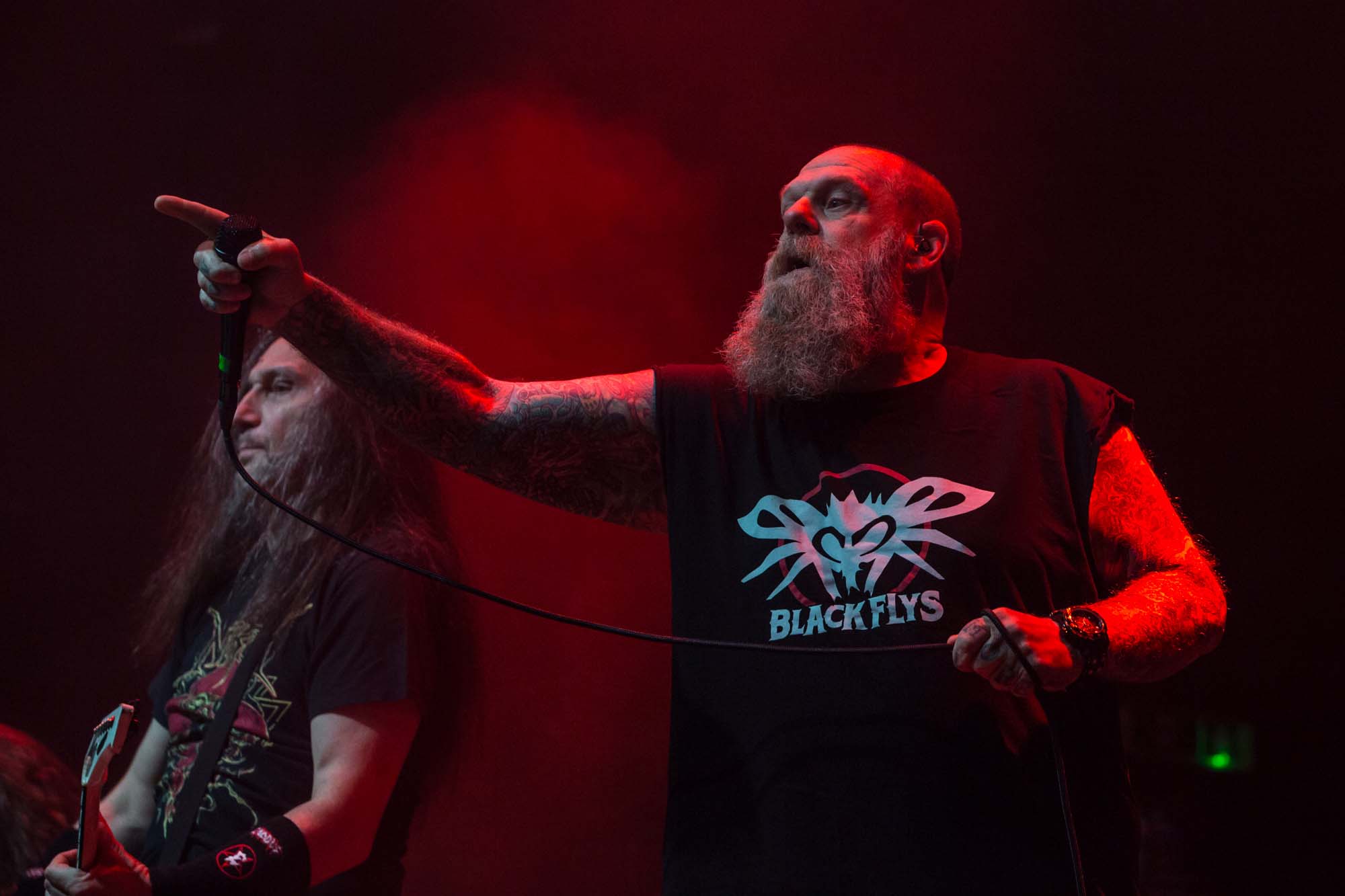 With a shorter set than they should have, the Americans have to be picky about their setlist. Wisely, the plodding title track is the only other song from Goliath. The usual suspects, like Deathlist, A Lesson in Violence and Toxic Waltz (teased before with a snippet of SLAYER‘s Raining Blood from Gary Holt, the now live guitarist for that unholy alliance), get showered in glory. Hyper-caffeinated tempos, electrifying solos and drumming that hits deeper than an oil rig smack all four walls of the room are reasons EXODUS rose to the forefront of thrash metal four decades ago. They’re also impacted by major sound drawbacks – the guitars sound hollow but this improves after a few songs. In defiance of their age, they’re dynamic, constantly moving and headbanging. There are some intriguing stage moments, such as Dukes strumming on Holt‘s guitar while the guitarist’s left hand hammers out a solo, and someone wearing a weird ape mask with long curly red hair taking over Lee Altus‘ rhythm guitar for a bit. The galloping Strike of the Beast closes the performance and leaves its mark on the venue. This is an utterly devastating showing that the following two acts will struggle to match.