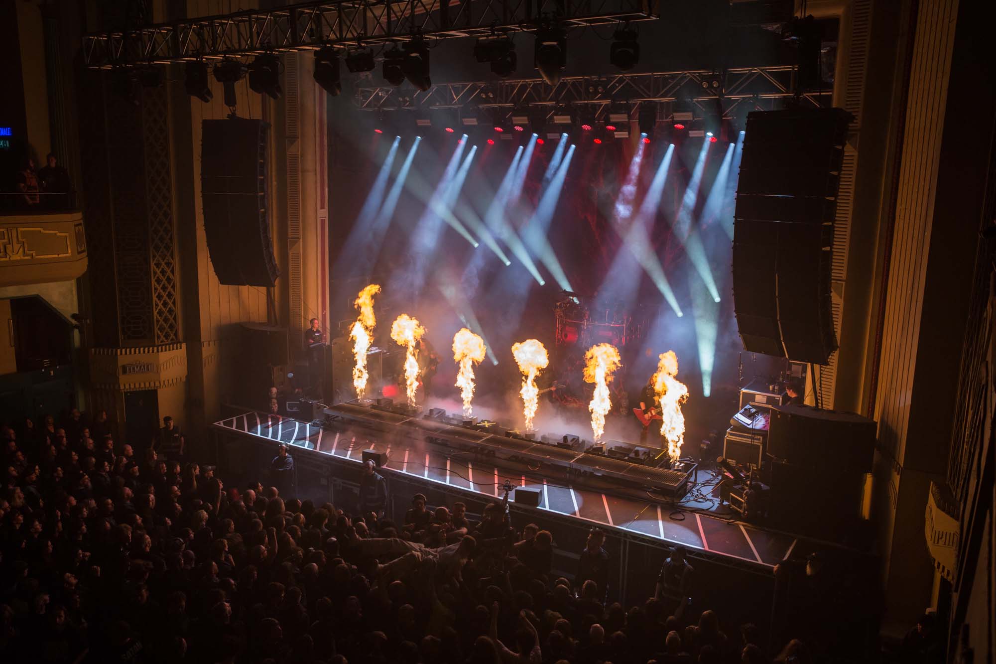 Finally, Teutonic thrash divinity KREATOR take aim at the venue. New song Seven Serpents begins the expedition through over forty years of their existence, accompanied by scorching pyro. They’ve recently progressed their music to incorporate melodic death metal elements, building on the tuneful guitars of their mid-era. This genre-bending has seen many fans fall out of love with their later albums, and tonight, these songs don’t elicit the same level of crowd participation as their more purist compositions. However, with a munificent set that clocks in over one and a half hours, there’s something for every fan of these calamitous Germans tonight.