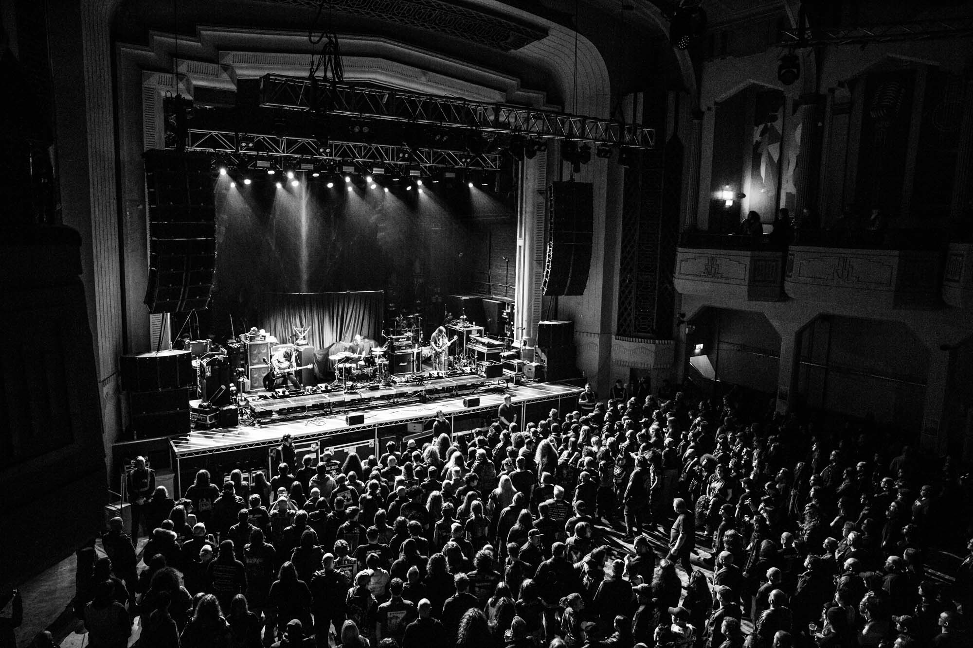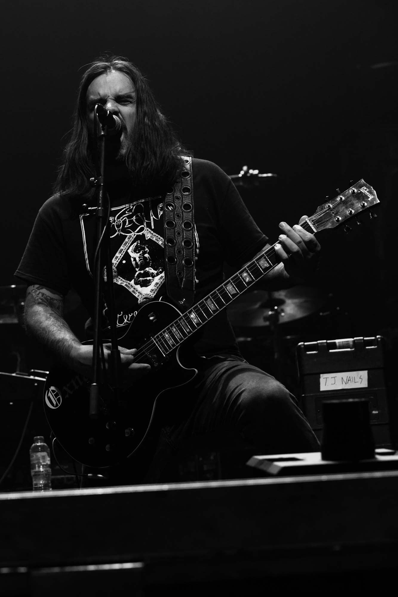 First up is American powerviolence ideologues NAILS. A sizeable contingent has rocked up to the O2 Academy mostly to catch them. They’re a rare sight in Glasgow, having last nuked the city in 2013, and mainman Todd Jones is accompanied by a new lineup since then. While the trio start their agitated paroxysms, unfortunately, the venue is still filling up and isn’t even half full when they roar out opener I Can’t Turn Off. This impacts their usual performance as a mosh pit is slow to form and is minuscule in proportion to the venue’s size. The sound is a mess for half of the set; Jones‘ guitar cascades into a wall of noise and it takes some time to discern the songs. The band plays with the rabid conviction that their bastardisation of grindcore and hardcore demands, but looks lost remaining static on such a broad stage. I Will Not Follow, Endless Resistance and You Will Never Be One of Us are brilliant for oozing your worldly frustrations from your pores. They’re the most intense act of the night, as closer Unsilent Death confirms, but they really benefit from levelling a compact, squalid sweatbox, rather than a voluminous, ornate theatre.