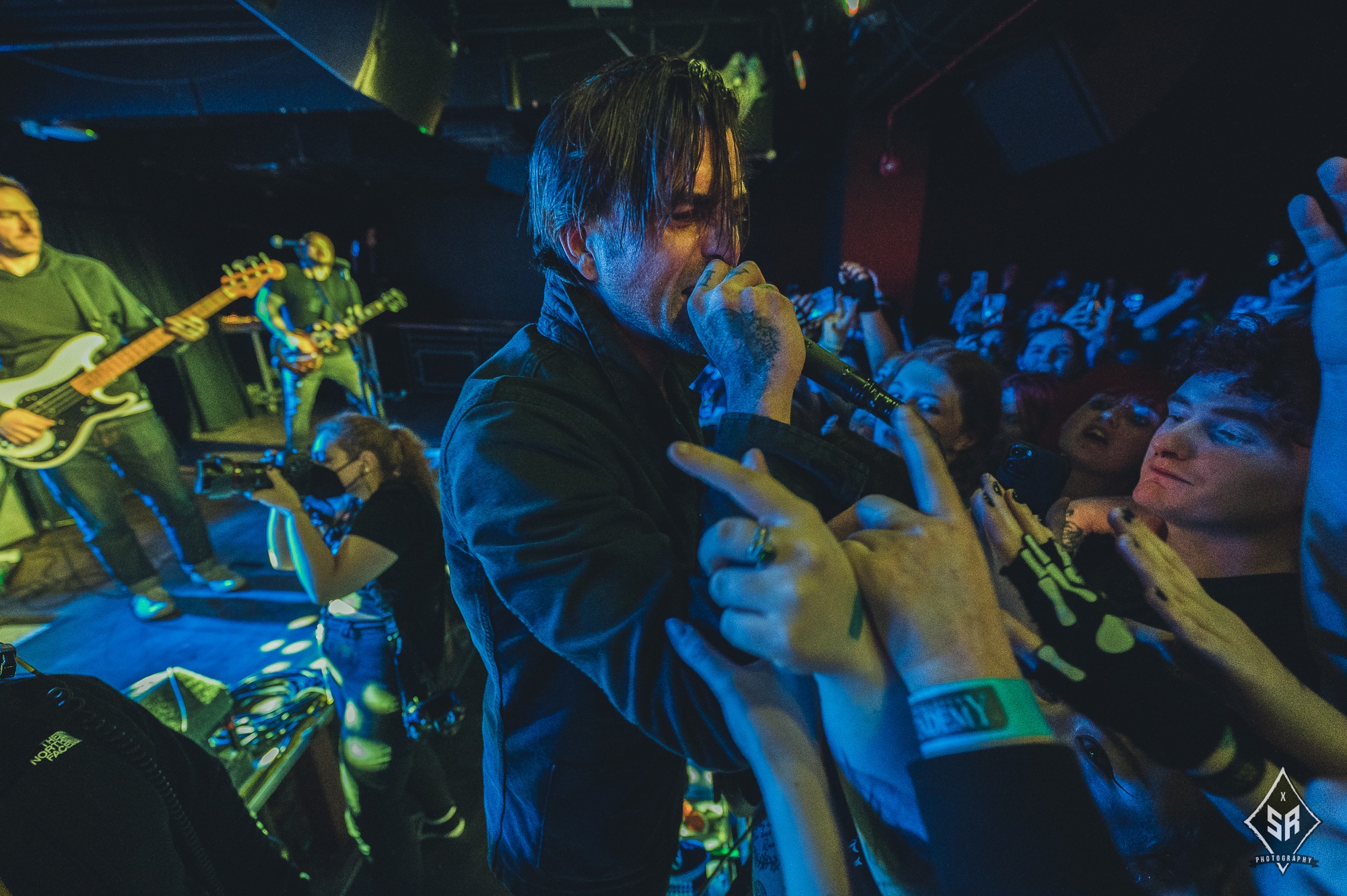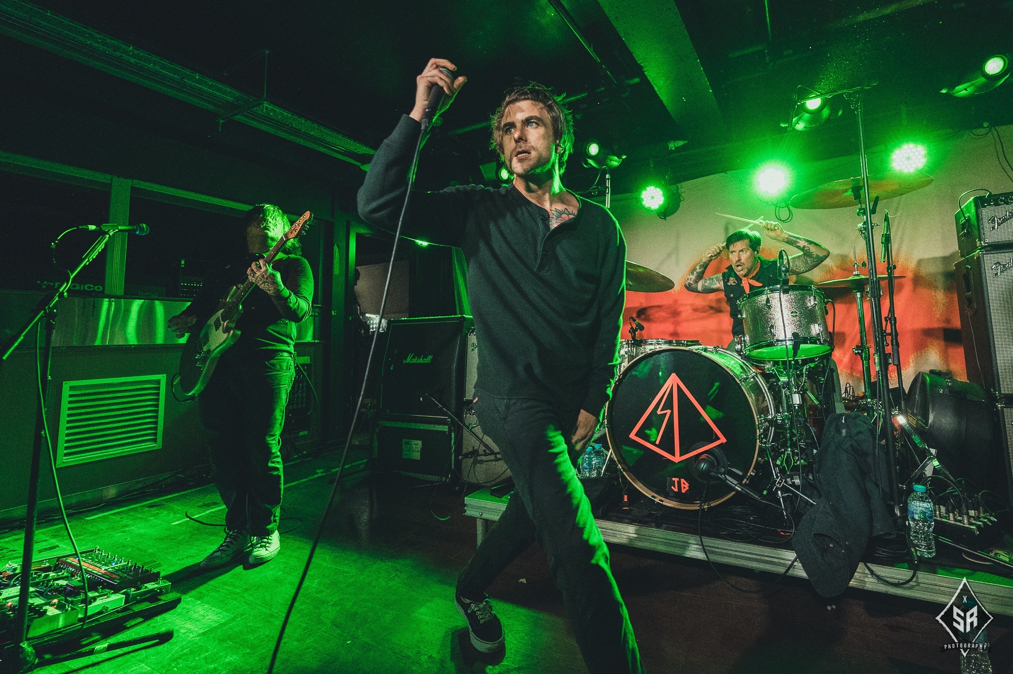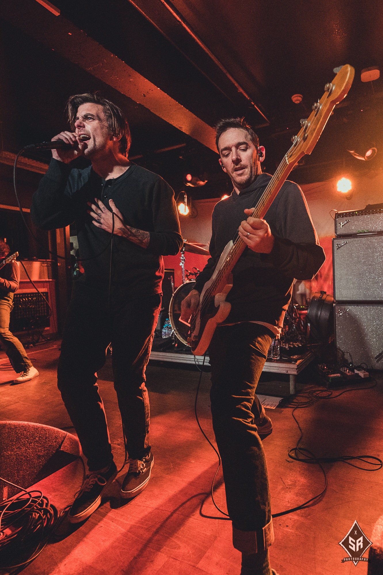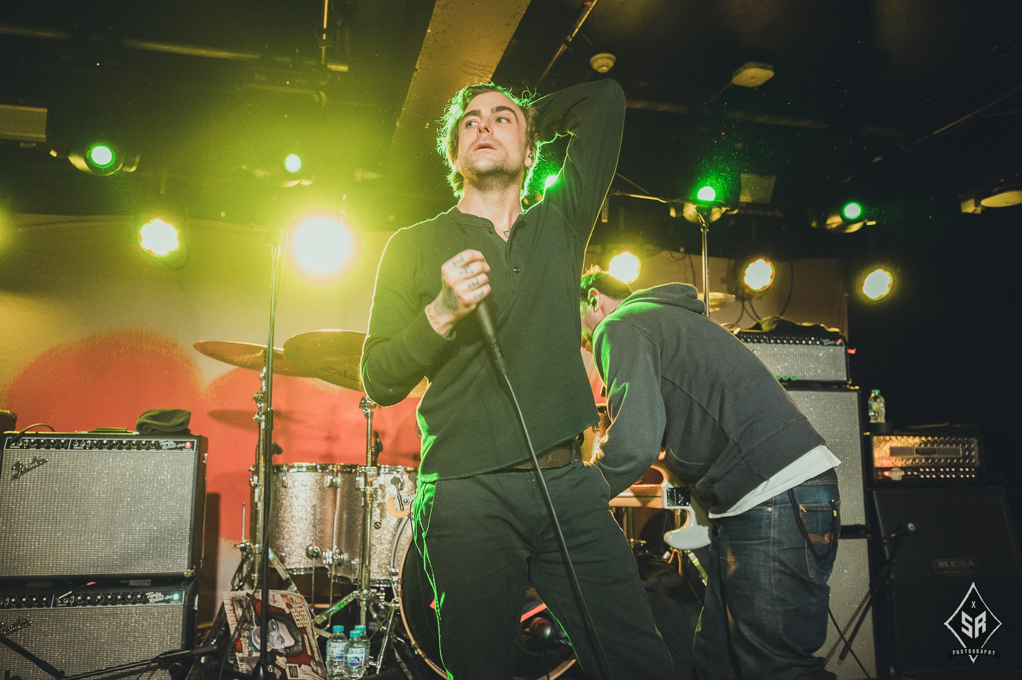 Each member had a moment to shine, be it through a strategically placed solo, or through the crowd chanting each bandmembers name (to which Tucker joined in drumming). It comes as no surprise that with only one album out, that is exactly what they played in its entirety. With an album packed of hard-hitters, every single song had a visceral reaction from the audience, many of which were following the entire tour, but none had reactions quite like their debut track Permanent Rebellion, with the crowd screaming every single lyric, sometimes even more coherently than Anthony Green’s notoriously distorted vocals. With such a small venue comes a small stage, so the band couldn’t move around anywhere near as much as would be expected, but they were by no means stuck in one place. With Green often clambering onto the front barrier, Travis Stever and Tim Payne took the opportunity to run and jump around to their hearts content.