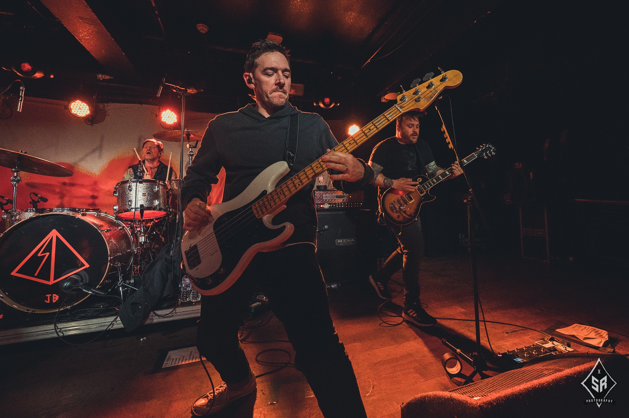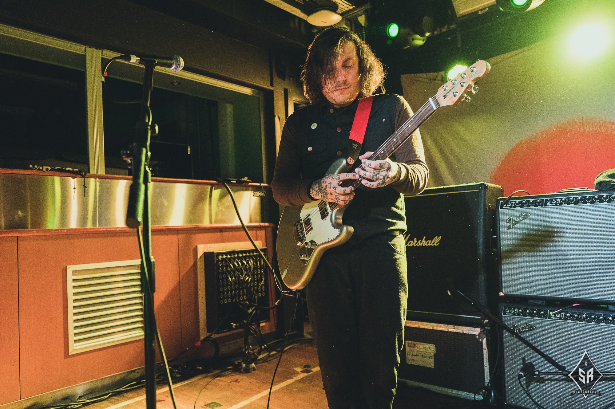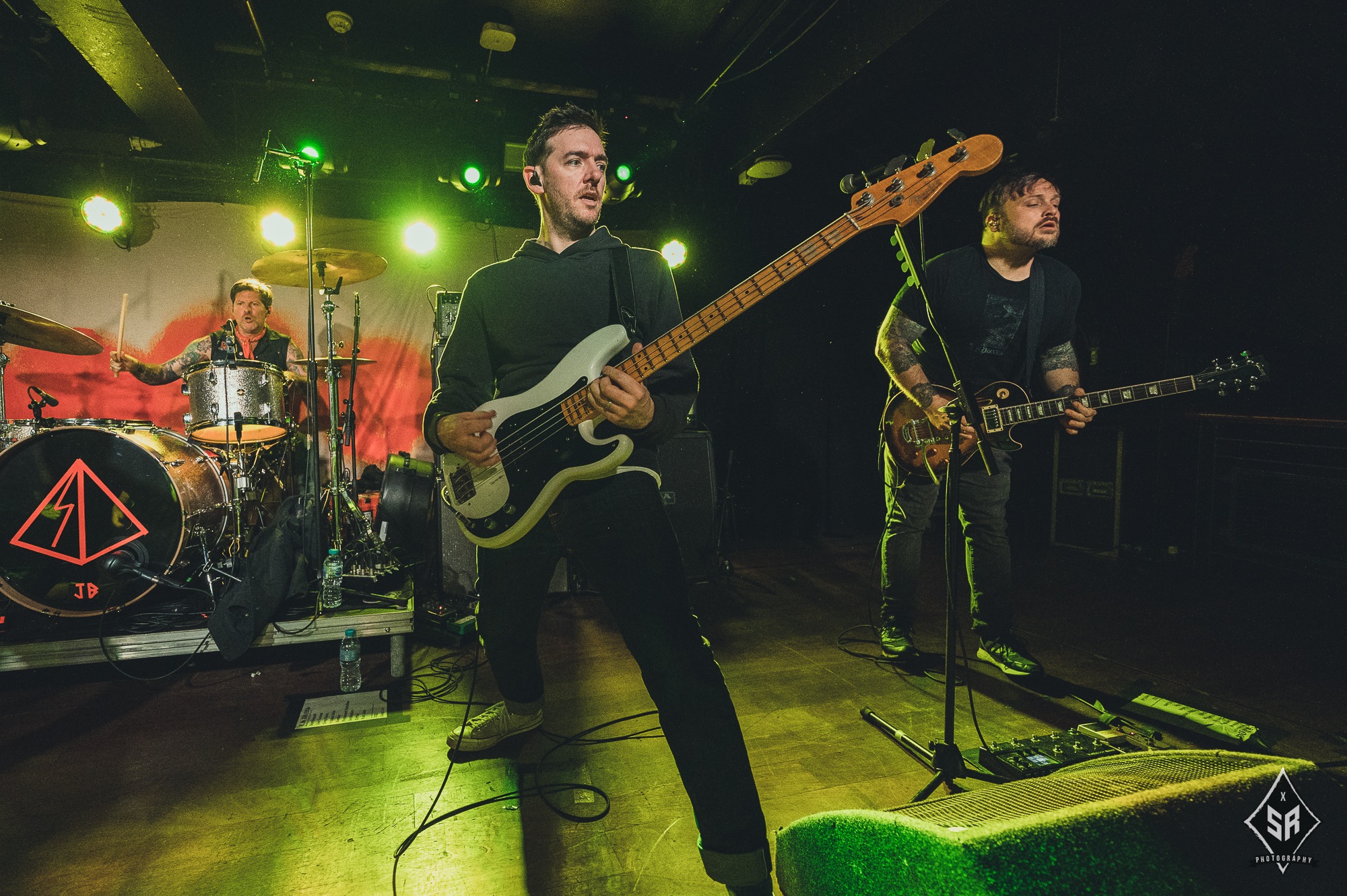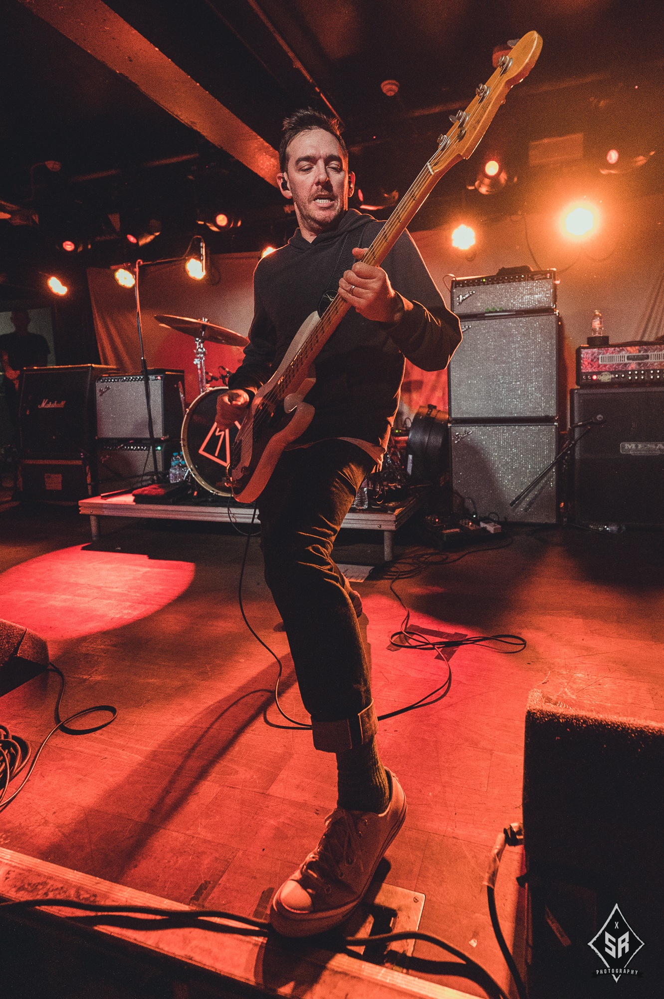 Each member had a moment to shine, be it through a strategically placed solo, or through the crowd chanting each bandmembers name (to which Tucker joined in drumming). It comes as no surprise that with only one album out, that is exactly what they played in its entirety. With an album packed of hard-hitters, every single song had a visceral reaction from the audience, many of which were following the entire tour, but none had reactions quite like their debut track Permanent Rebellion, with the crowd screaming every single lyric, sometimes even more coherently than Anthony Green’s notoriously distorted vocals. With such a small venue comes a small stage, so the band couldn’t move around anywhere near as much as would be expected, but they were by no means stuck in one place. With Green often clambering onto the front barrier, Travis Stever and Tim Payne took the opportunity to run and jump around to their hearts content.