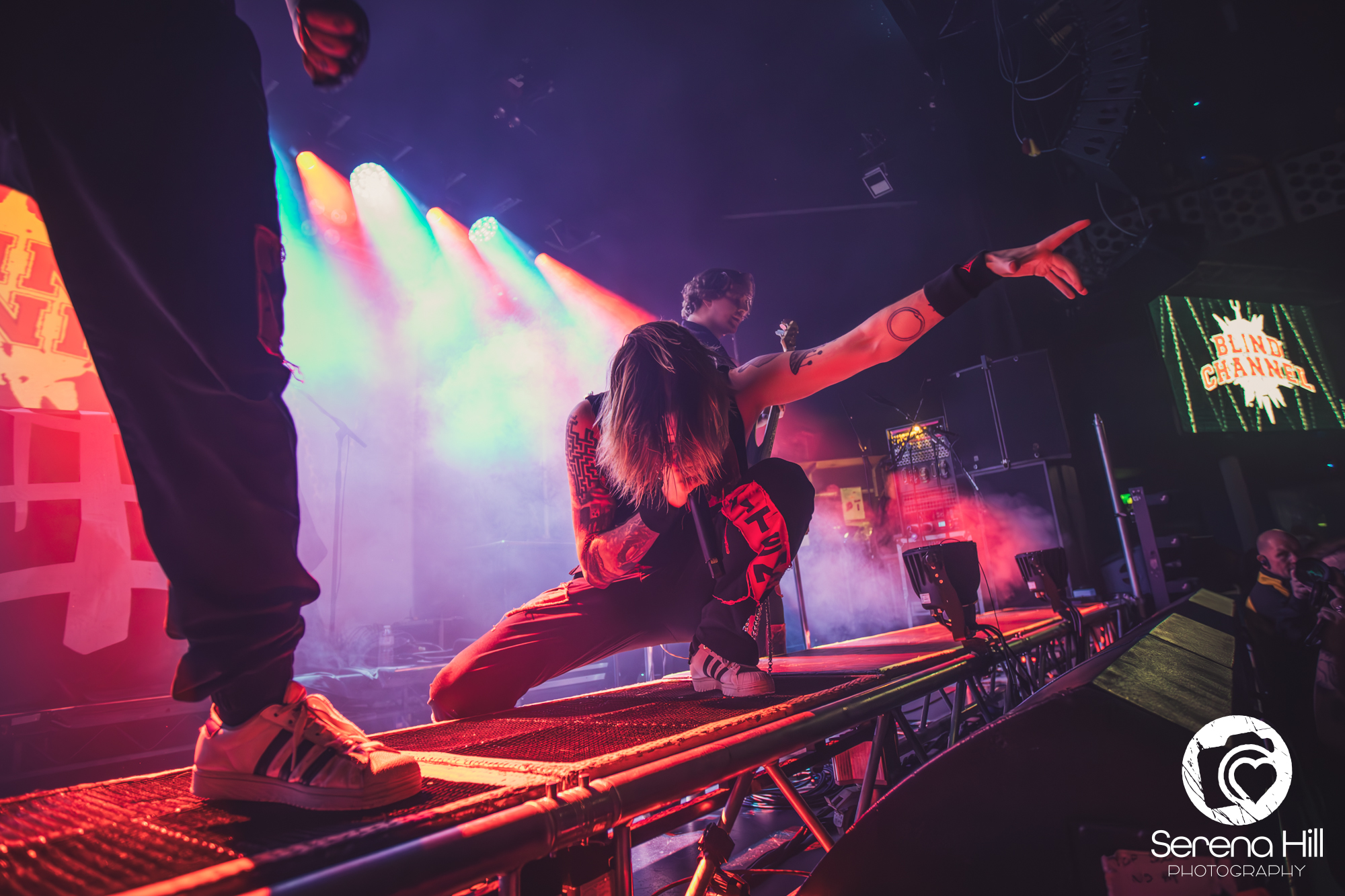 Weāre treated to a SYSTEM OF A DOWNĀ cover with B.Y.O.B., a great party song that brings in newcomers for a sing-along, though it would have been nice to see another original track given BLIND CHANNELās extensive back catalogue. Back to their own music with WOLVES IN CALIFORNIA, which brings out heavy nu-metal riffs and grooves, showing how nu-metalās fusion of rap and metal influences todayās bands, including BLIND CHANNEL.