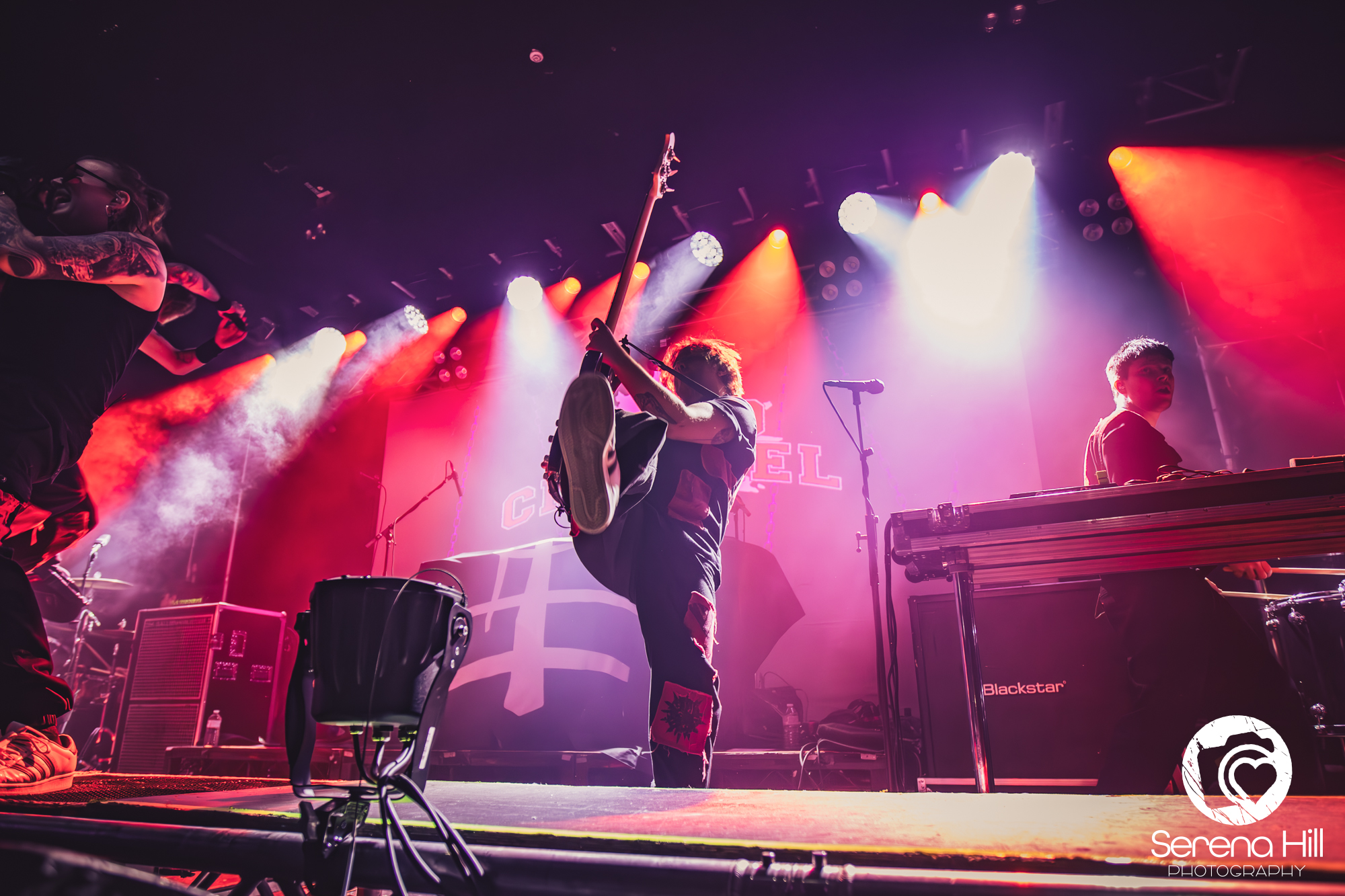 The band blasts onto the stage with DEADZONE, and you can tell theyāre seasoned performers. The whole band is moving, hyping up the crowd, and playing the songs to perfection. The first half of the set spanning the most recent three albums, with tracks like Over My Dead Body, where the crowd enthusiastically screams the chorus back, We Are No Saints, and XOXO. After an energetic first half, the set slows down with DIE ANOTHER DAY, it would have been nice to have the RĆRY feature like London did but unfortunately we can’t have that at every date on the tour. Regardless, it still makes for a nice breather before they jump back in with Deja Fu, the oldest song on their setlist, from their debut album Revolutions.