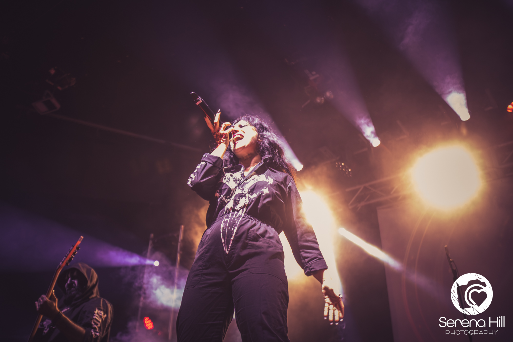 With an eager crowd fully warmed up, LACUNA COILĀ takes the stage. Blasting through their back catalogue, theyāve got almost ten albums and several EPs to choose from for tonightās setlist. The first half features hits from recent albums, like Blood, Tears, Dust, Reckless, and Trip To Darkness. We get our first taste of the new album with Oxygen, a track that captures classic LACUNA COILĀ sound with a modern twist as the band continues to evolve.