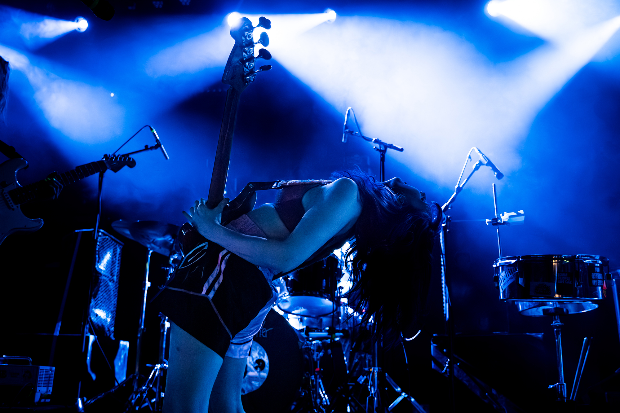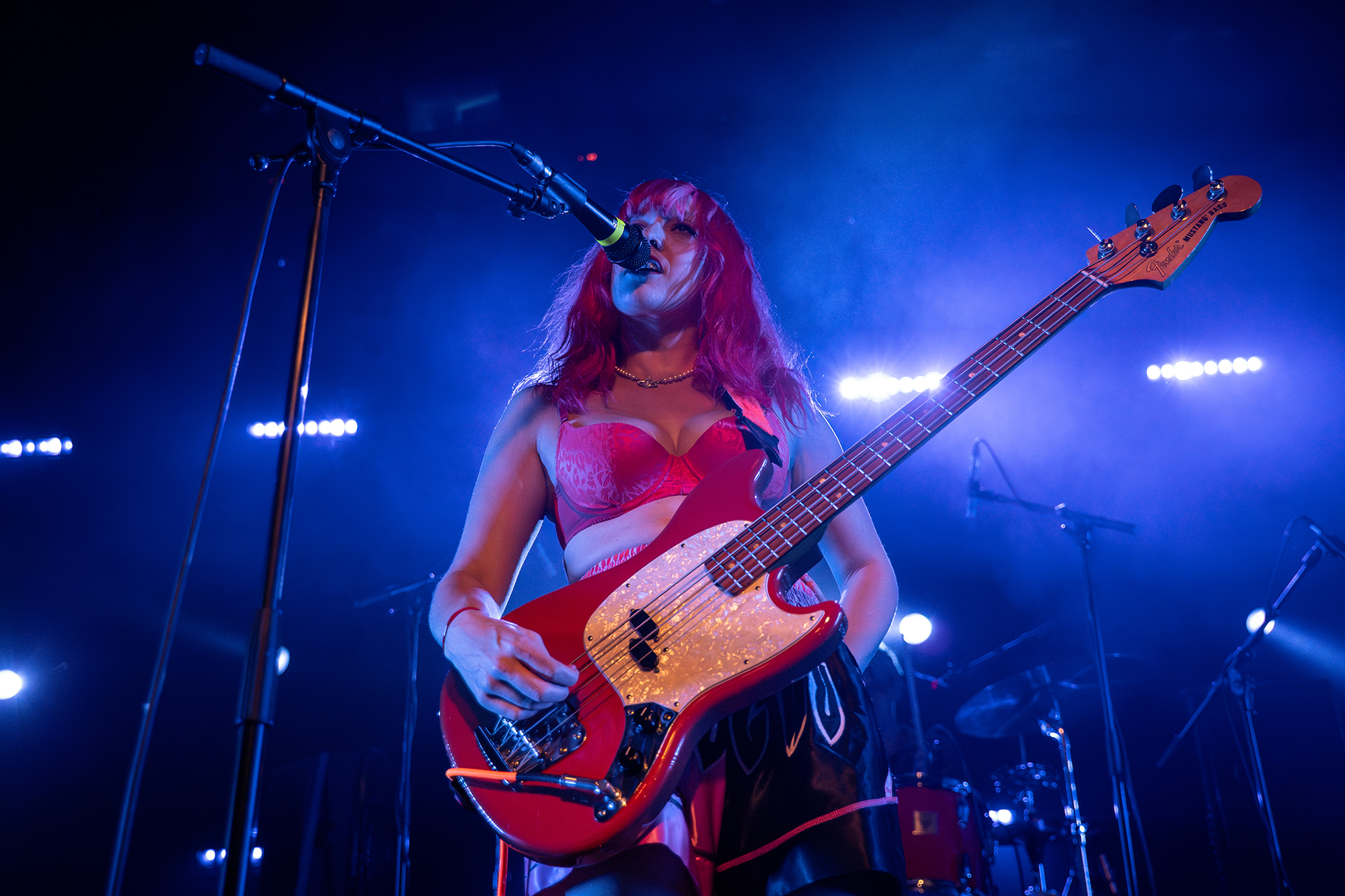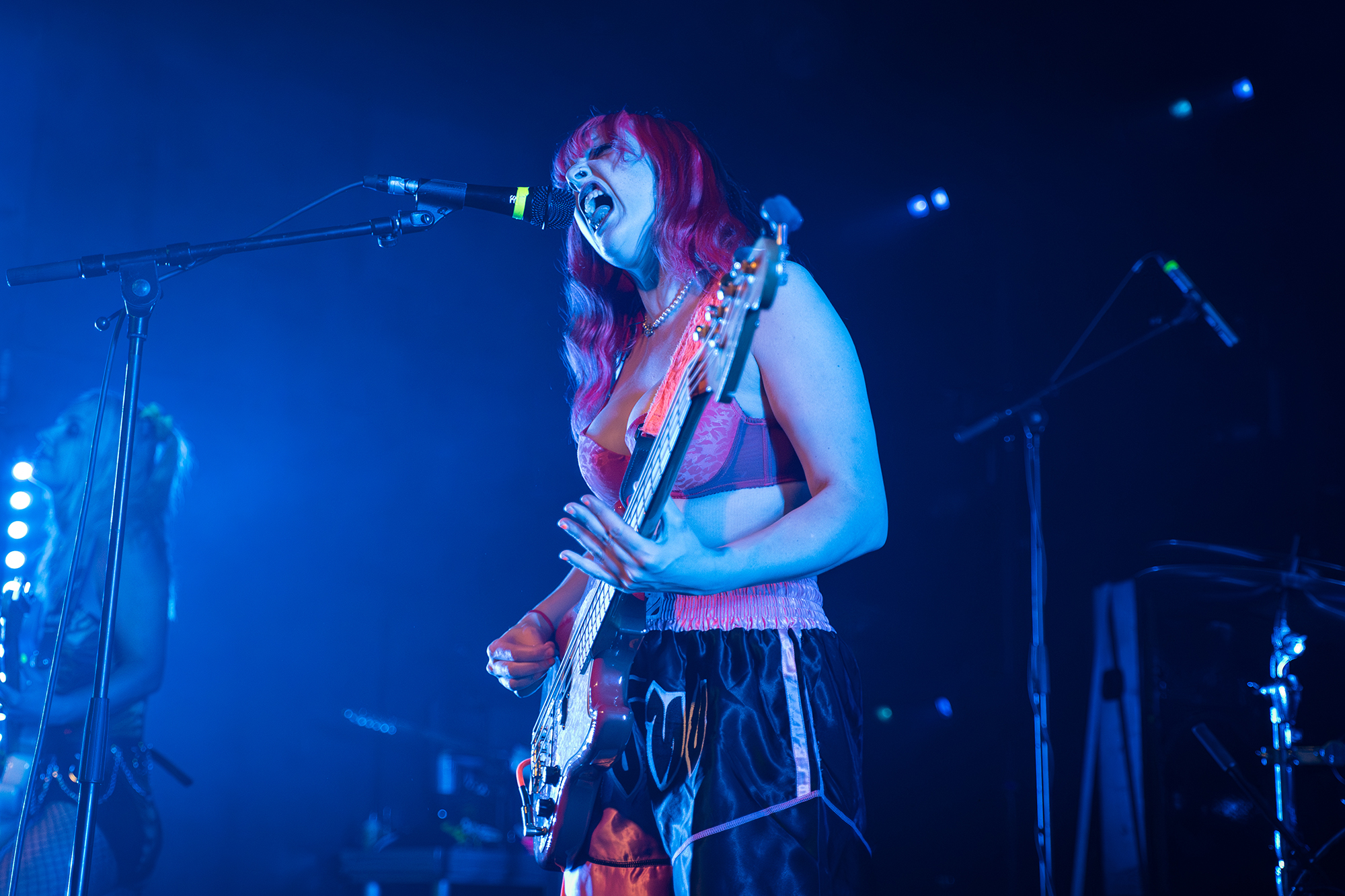 Tonight,Ā LAMBRINI GIRLSĀ show why they are THE punk band to follow. Confrontational, abrasive and unashamedly themselves, this is part gig, part rally where members of the LGBTQIA+ community are announced as “queer legends” before Help Me I’m Gay,Ā God’s CountryĀ is preceded by chants of “Free Palestine” and Bad AppleĀ receives an ACAB call and response. Phoebe LunnyĀ spends just as much time in the audience as she does onstage, leading raucous renditions ofĀ Big Dick Energy andĀ Filthy Rich Nepo Baby along with an audience who are eating out of the palm of her hand all night. The absolute highlight of the set is an explosive Company CultureĀ which, by a mile and a half, has mosh call of the year sewn up with “Michael, I don’t want to suck you off on my lunch break!”