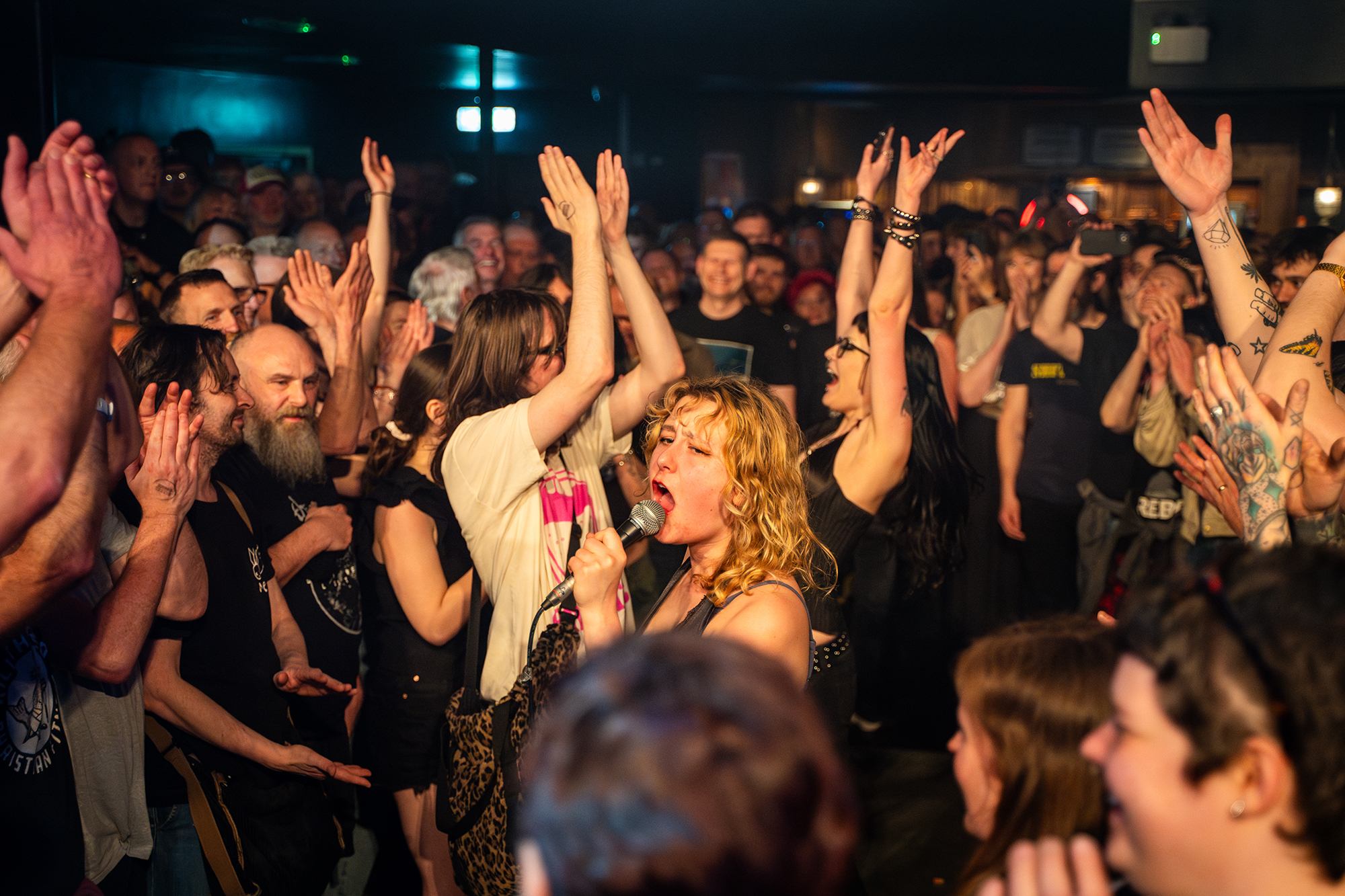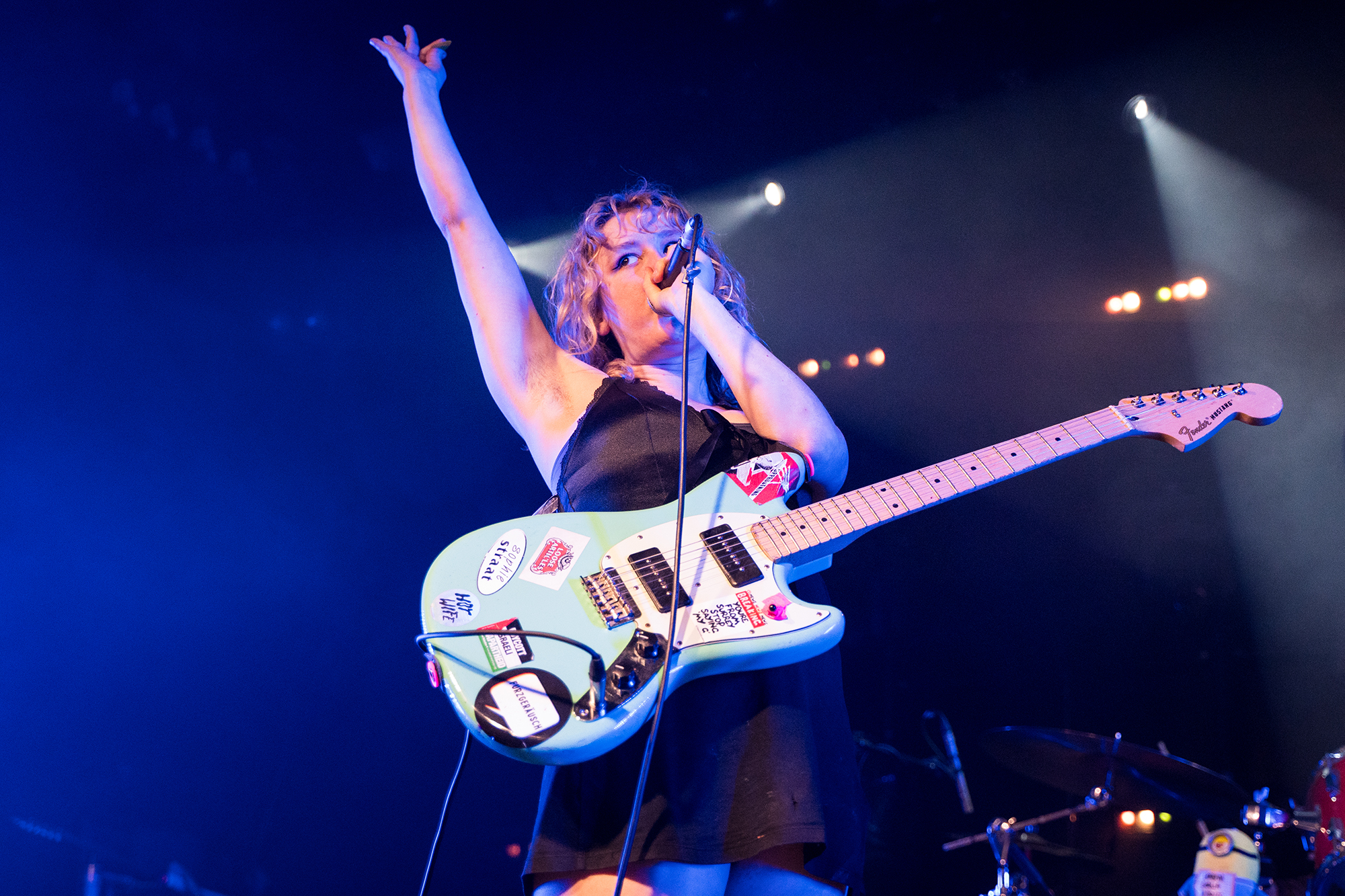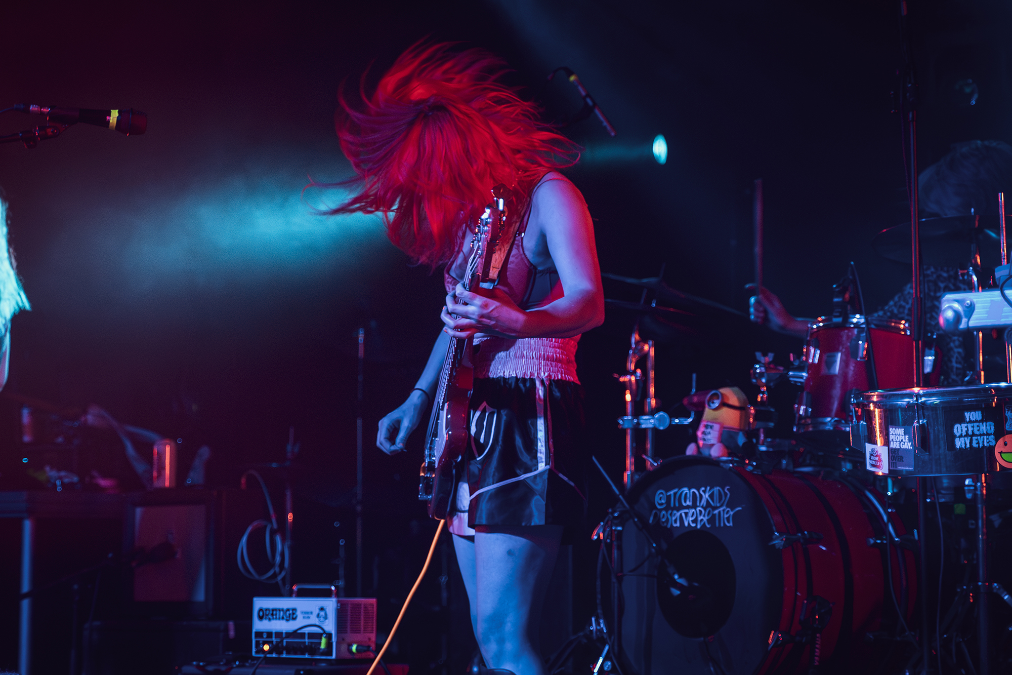 Tonight,Ā LAMBRINI GIRLSĀ show why they are THE punk band to follow. Confrontational, abrasive and unashamedly themselves, this is part gig, part rally where members of the LGBTQIA+ community are announced as “queer legends” before Help Me I’m Gay,Ā God’s CountryĀ is preceded by chants of “Free Palestine” and Bad AppleĀ receives an ACAB call and response. Phoebe LunnyĀ spends just as much time in the audience as she does onstage, leading raucous renditions ofĀ Big Dick Energy andĀ Filthy Rich Nepo Baby along with an audience who are eating out of the palm of her hand all night. The absolute highlight of the set is an explosive Company CultureĀ which, by a mile and a half, has mosh call of the year sewn up with “Michael, I don’t want to suck you off on my lunch break!”