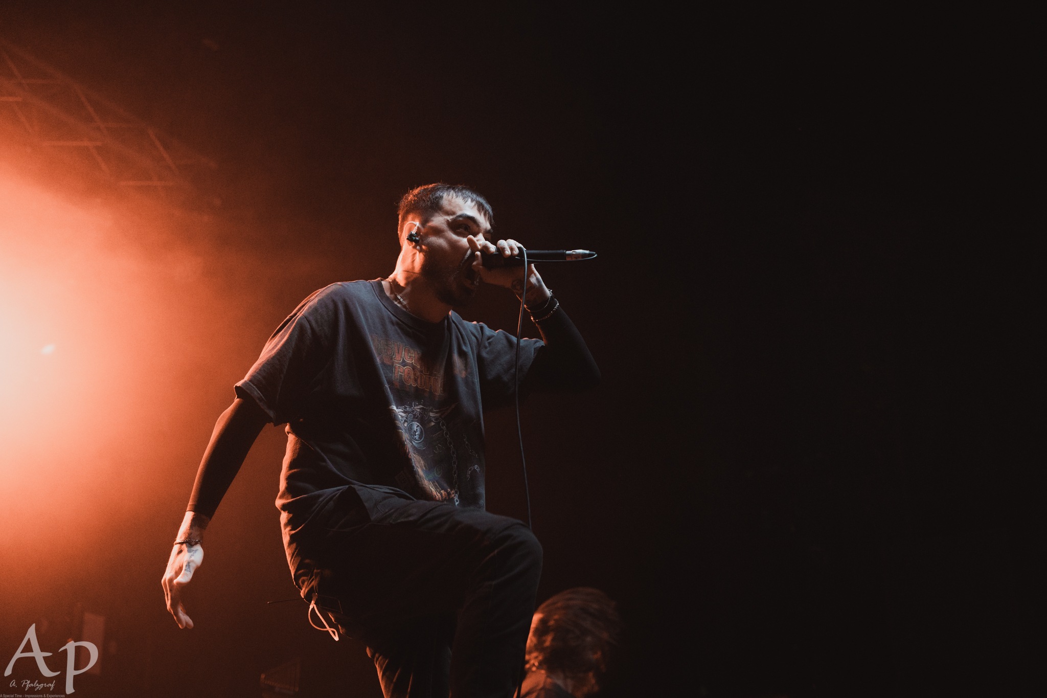 If you didn’t already know GUILT TRIP are from Manchester, blaring OASIS’ What’s the Story (Morning Glory) as they stroll onstage is one hell of way to find out before they deliver a bruising assault of metallic hardcore. Yes there’s more than a passing resemblance to MALEVOLENCE (the MLVLTD connection, naturally) but they lean more into their earlier hardcore sound with fairly minimal modern metal flourishes. It leans heavily on their excellent recent album Severance and while there isn’t necessarily the brutality you’d see at their own or pure hardcore shows, the pit’s plenty active and they set a high bar.Â
