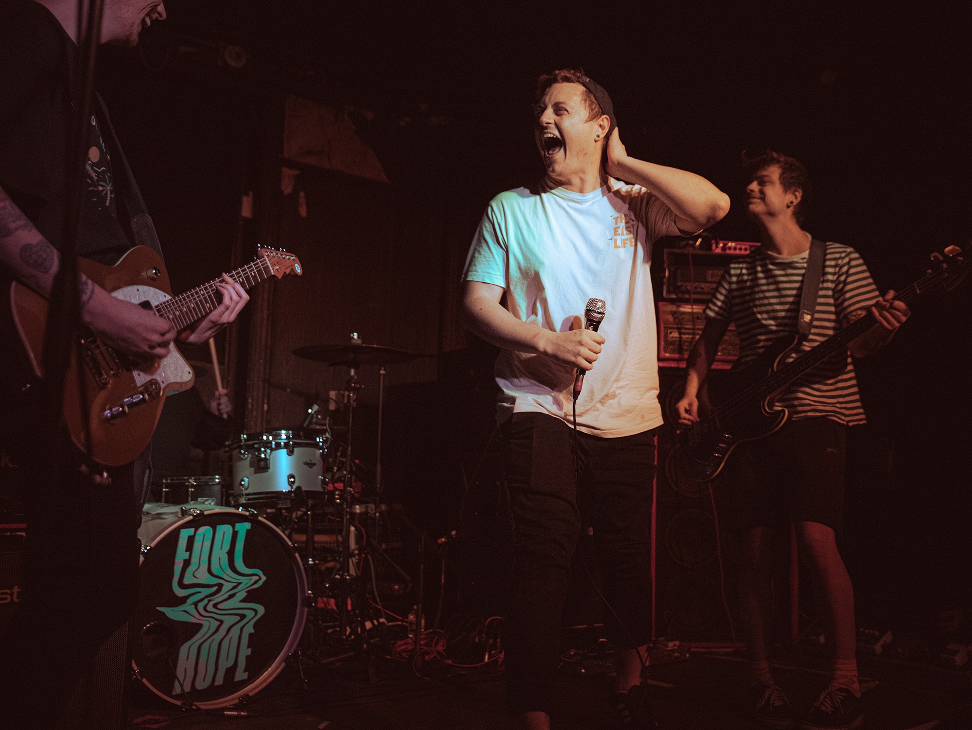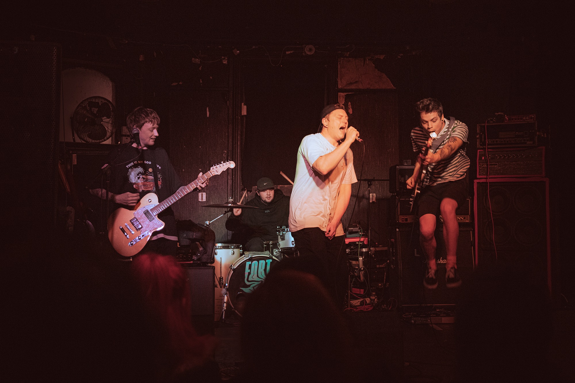 First to warm up the room are sun soaked pop punk outfit GOLD BLOOM, with their first show with new singer and bassist. “You’re taking our virginity, so be gentle” pleads vocalist Benji Yapp, before bounding into Over It which ends with a colossal drum fill. The four piece provide bundles of energy and buoyant positivity that would even make a shivering soul picture a California sunrise. Their exuberance is infectious, particularly during God Complex as their eyes catch one another’s throughout sparking a few laughs between them. While it is occasionally apparent that their live chemistry and performance still requires some cultivation and polish, it is hard to knock the group for this jubilant outing.