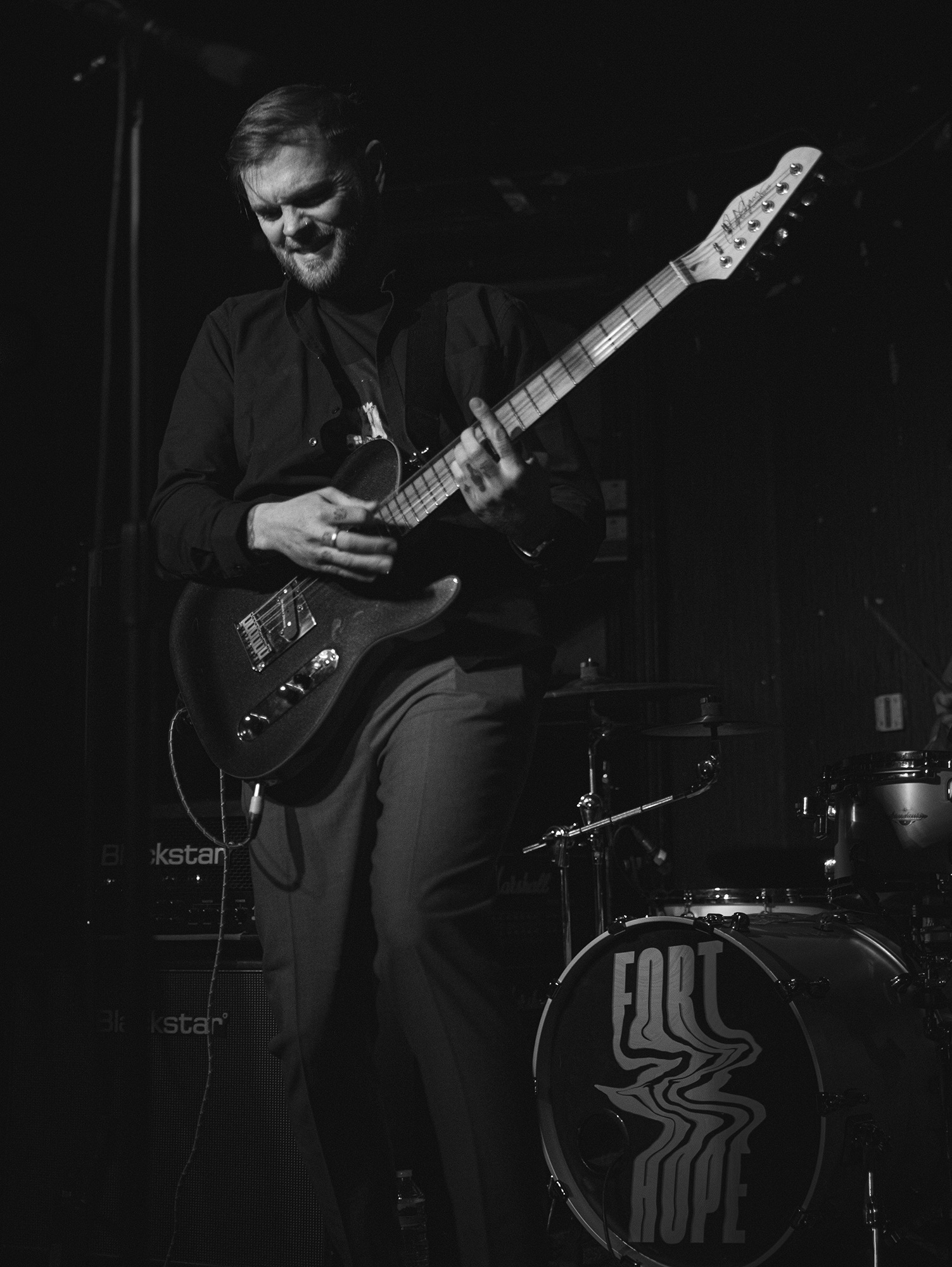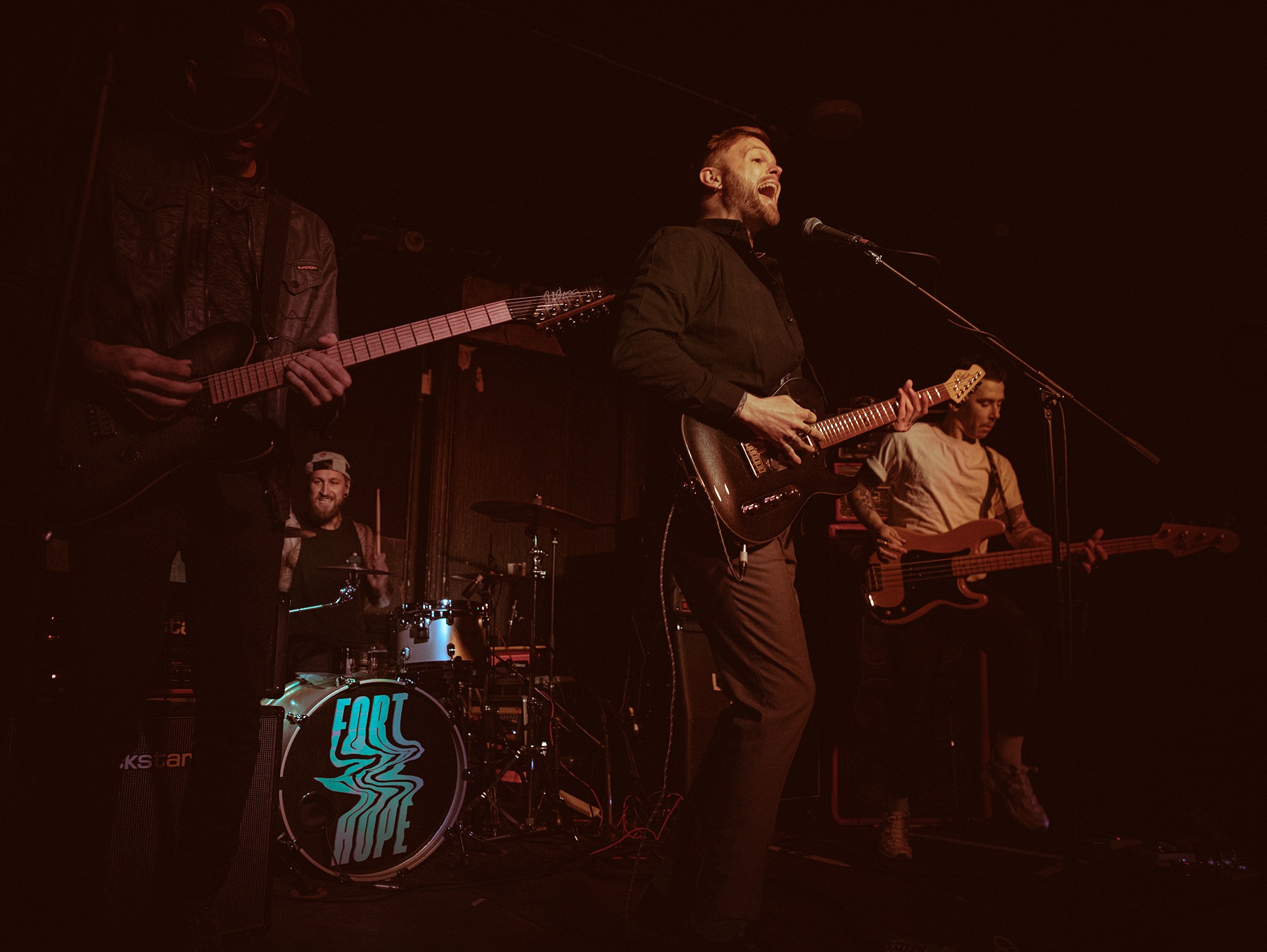 On a tour already boasting a band returning from abandon, main support alt rockers FORT HOPE take the stage playing their first shows since 2017. Renowned for their unique blend of choppy riffs and angelic vocals, they are truly a unique watch. “We’re FORT HOPE, it’s good to be back” proudly exclaims singer Jon Gaskin, before launching headfirst into That’s The Way The River Flows boasting a punchy headbanging chorus groove. The task of balancing a rhythm section that pummels with freight train power of drummer Jamie Nicholls, accenting rhythms of Gaskin’s guitar and bassist Simon Rowlands with beautiful, ornamental vocals sat aloft seems as though it would be an impossible feat, but they tackle that challenge head on and produce truly brilliant results. Despite the occasional extended pause between tracks without addressing the crowd, the excitement fails to drop. “We’re going to play an old one” announces Gaskin as they open up the chugging intro to Sick, clearly a fan favourite by the response as the room takes over the singing of “I’m sick of this empty house” in the build-up to each chorus. They end with Plans allowing Gaskin to exhibit his phenomenal falsetto, and there can truly be no doubts about their talents by the end of this set.