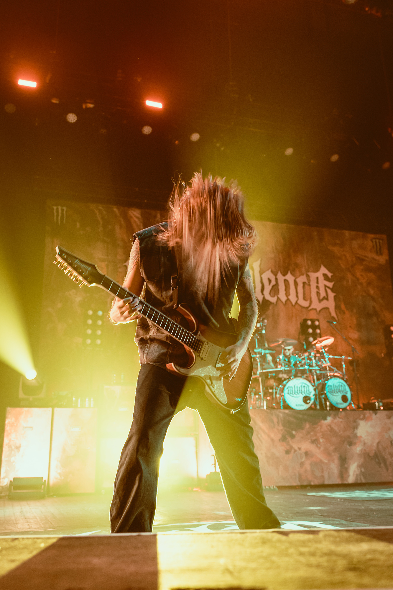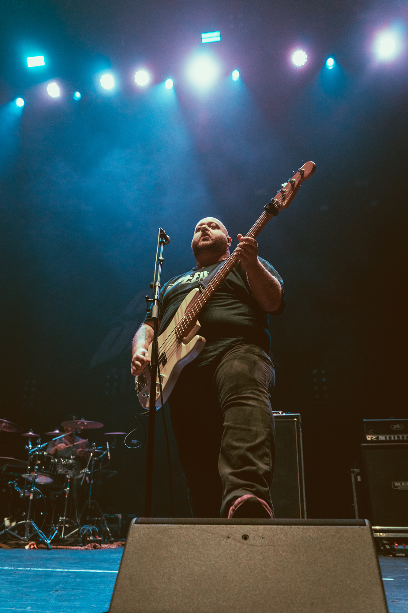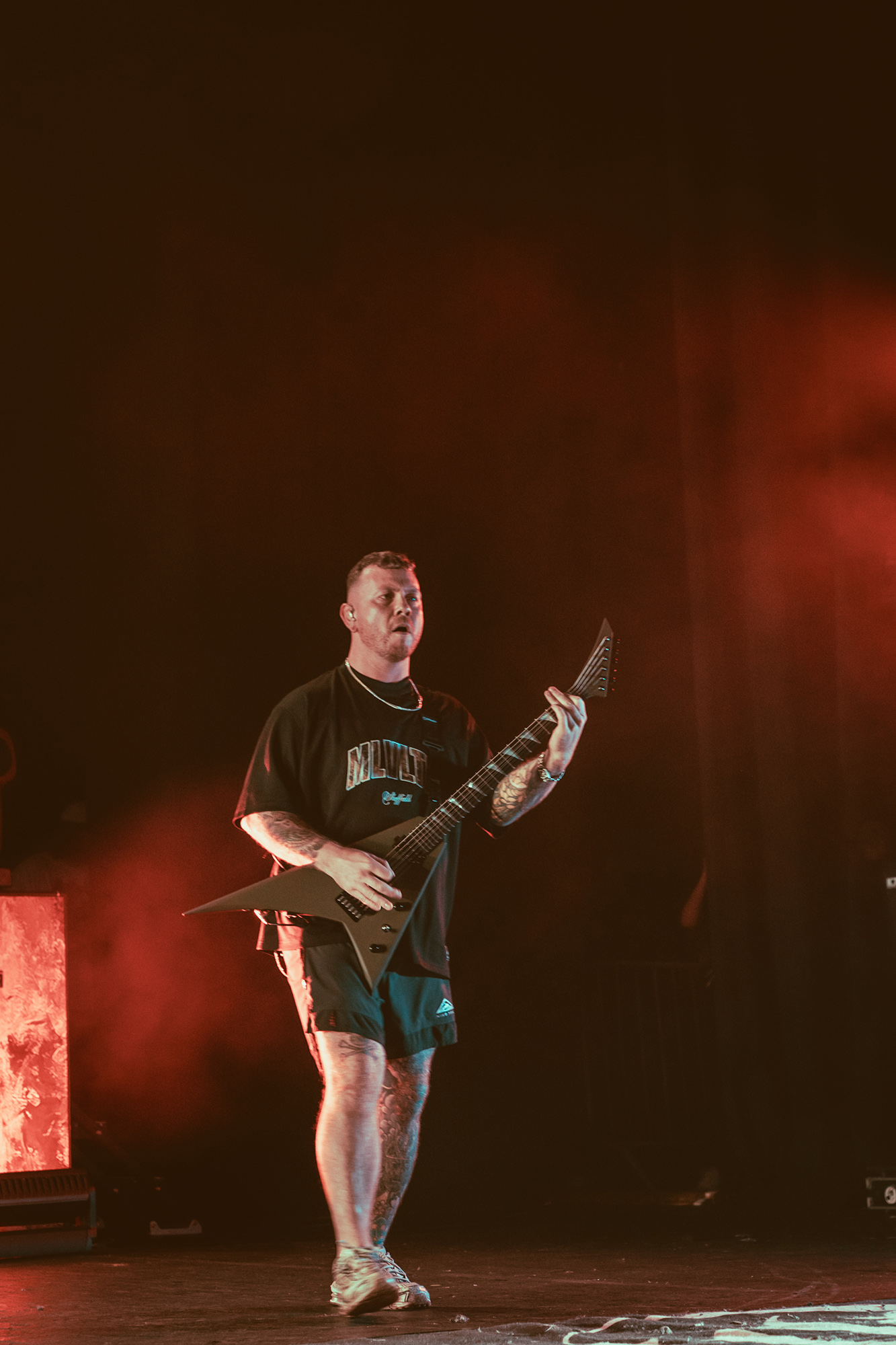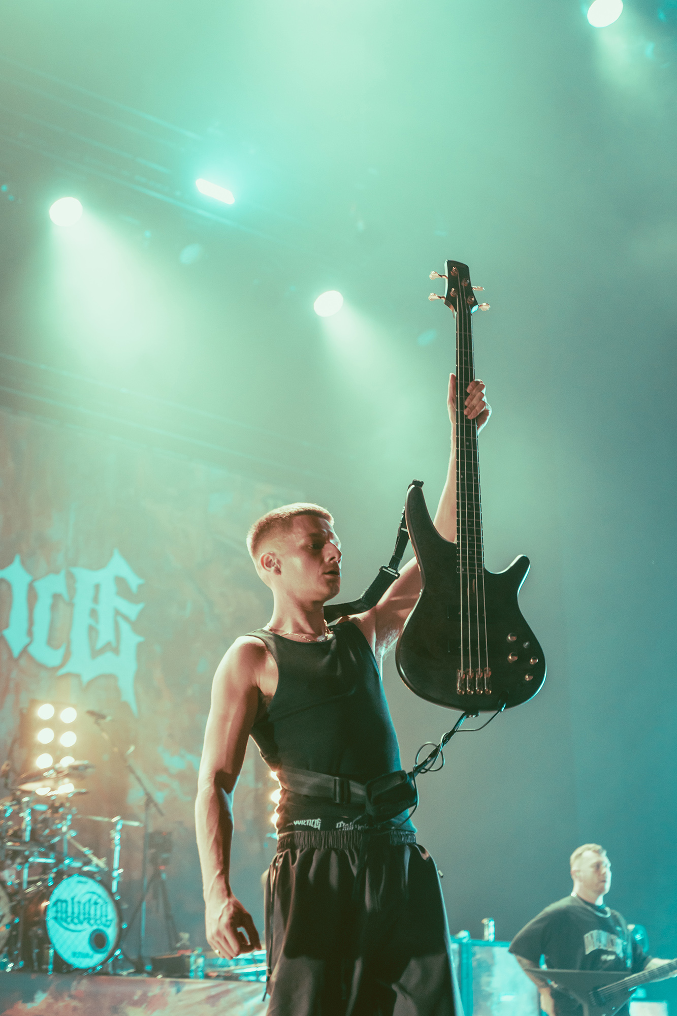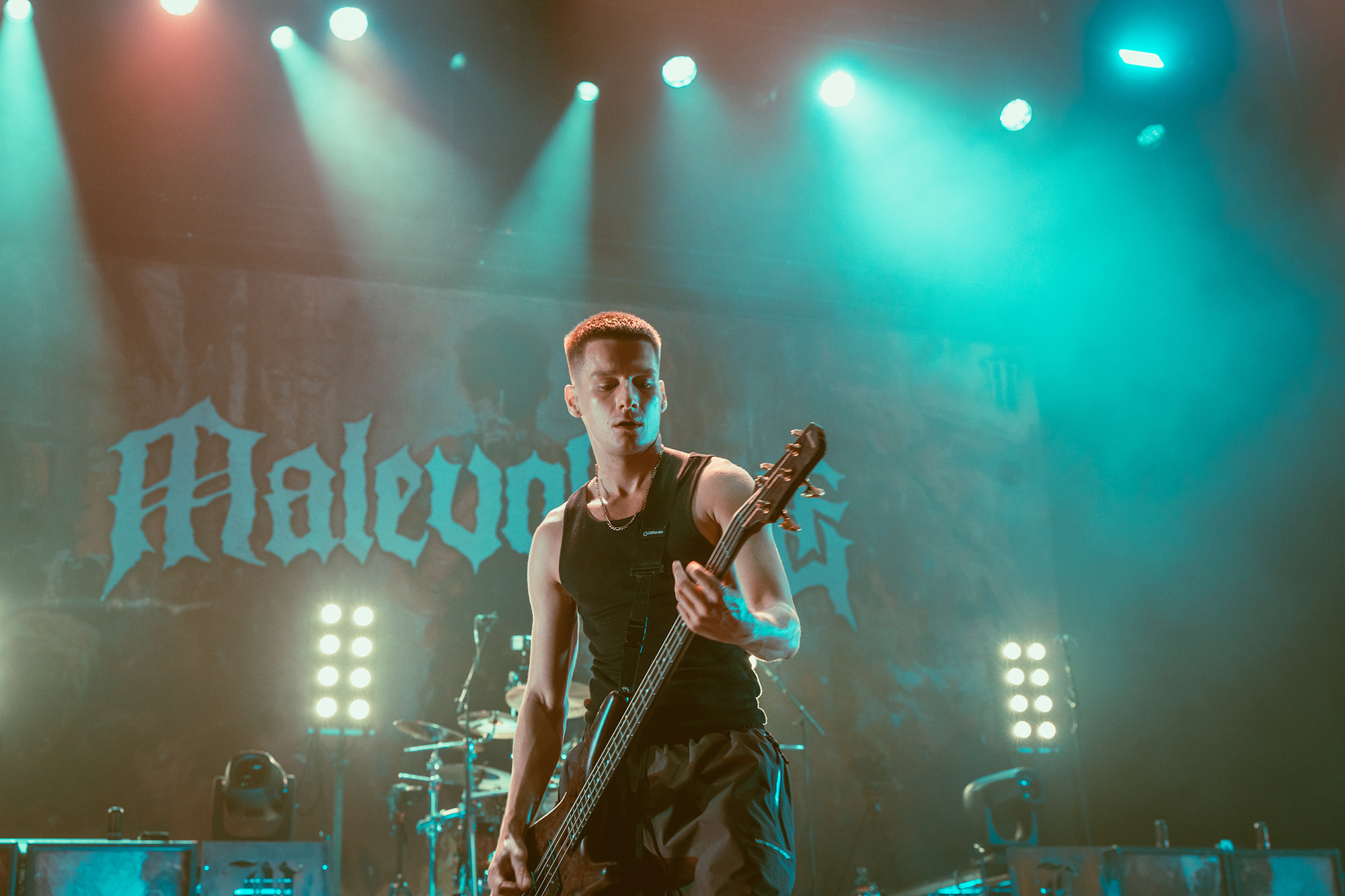 MALEVOLENCE are clearly revelling in their status as Brixton headliners, and frankly who else could get the infamous Brick Top to introduce them on his own home turf without it seeming ridiculous? Certainly thereās more than a few shades of over the top bombast but this comes from a band whoāve more than earned their stripes and this is a hard won victory. The floor is covered in MLVLTD mats, the back of the stage adorned by a giant drum riser that also features space for the other band members to get up and riff on – which they make the most of. After such an attention-grabbing beginning, the only thing left for them to do is what they do best, hulking groove metal with a hardcore spine that turns the floor into more mosh pits than you can shake a stick at.Ā