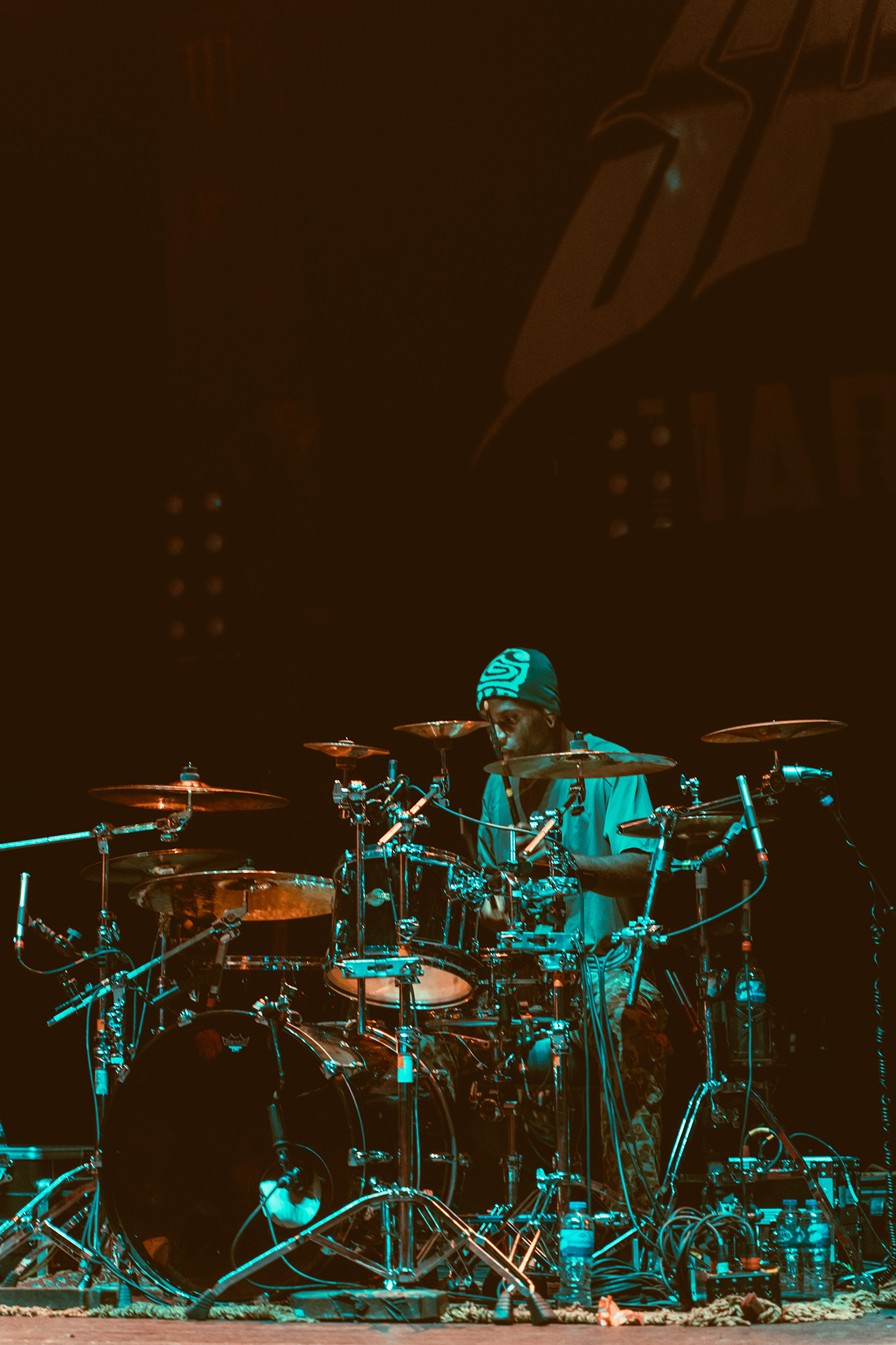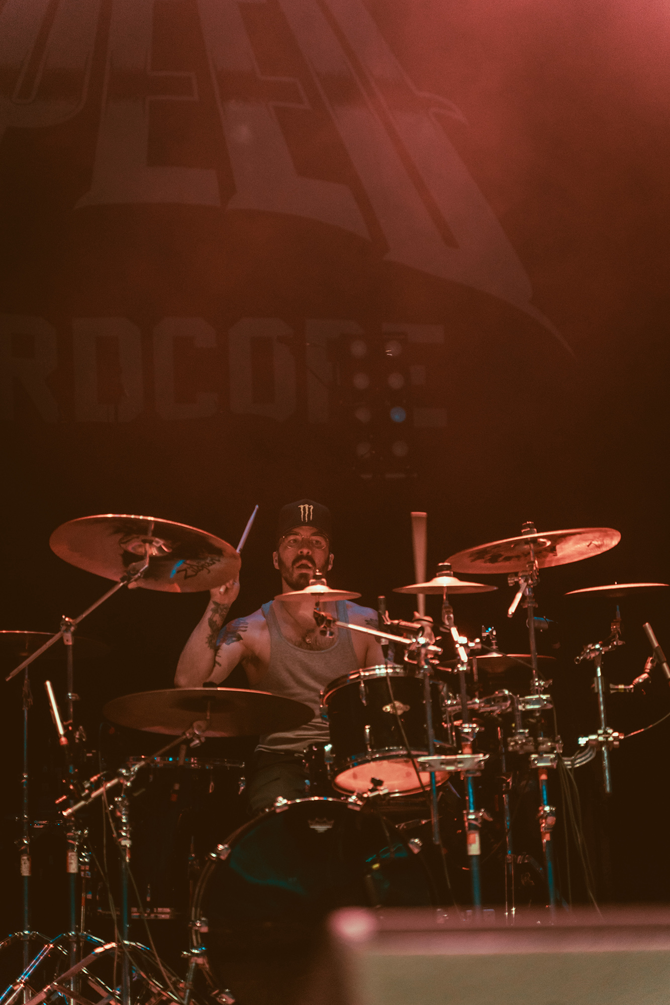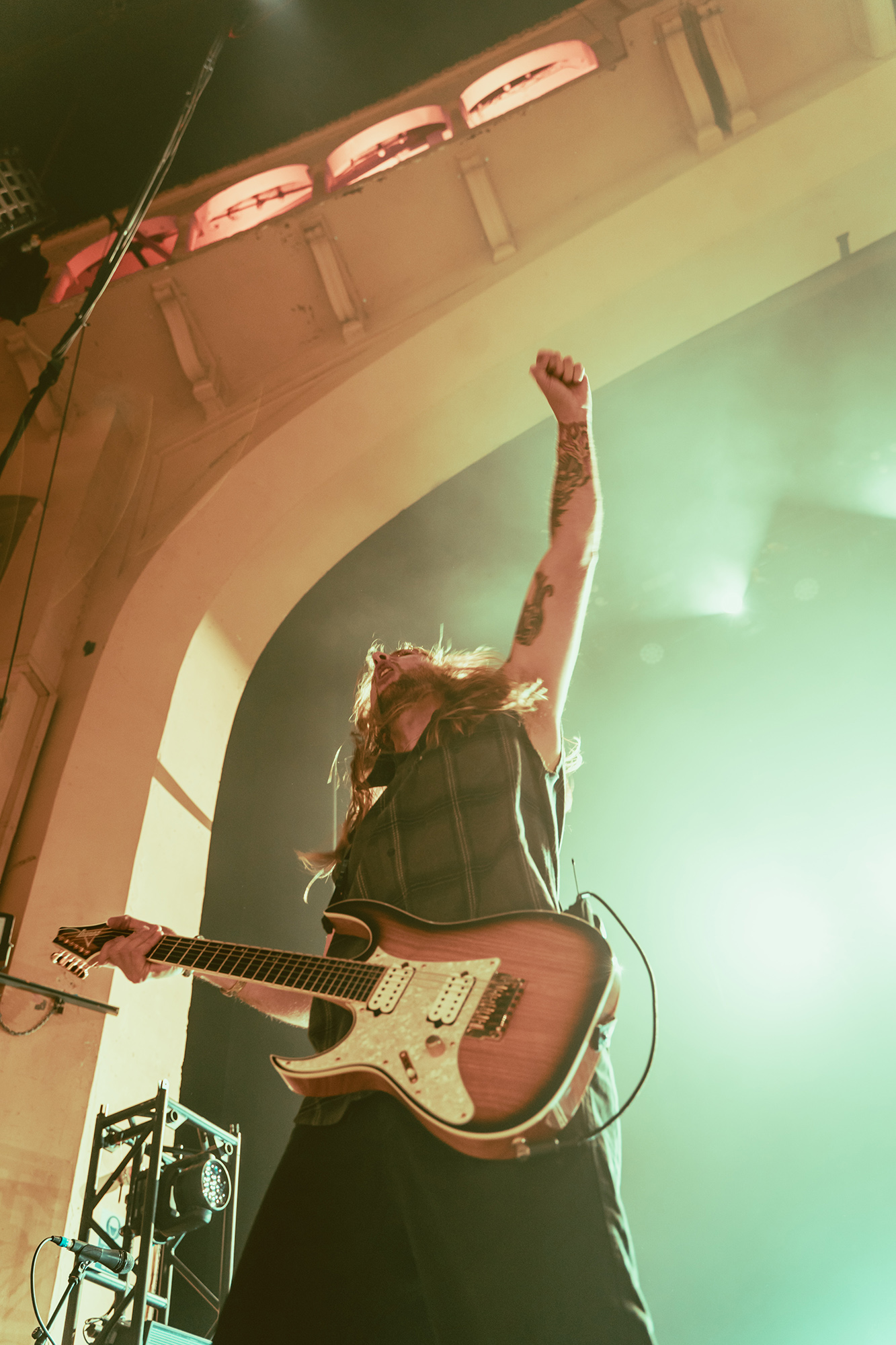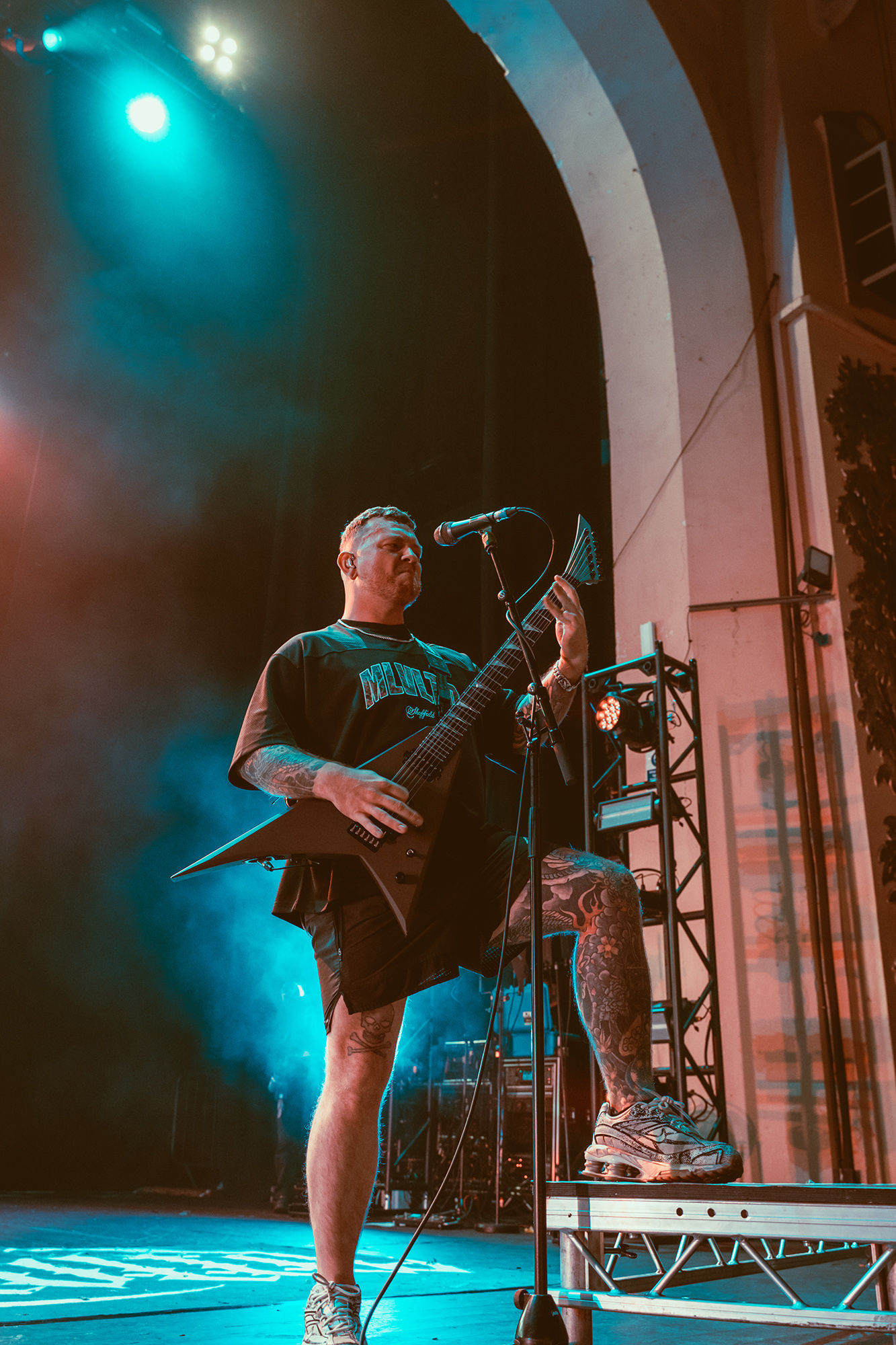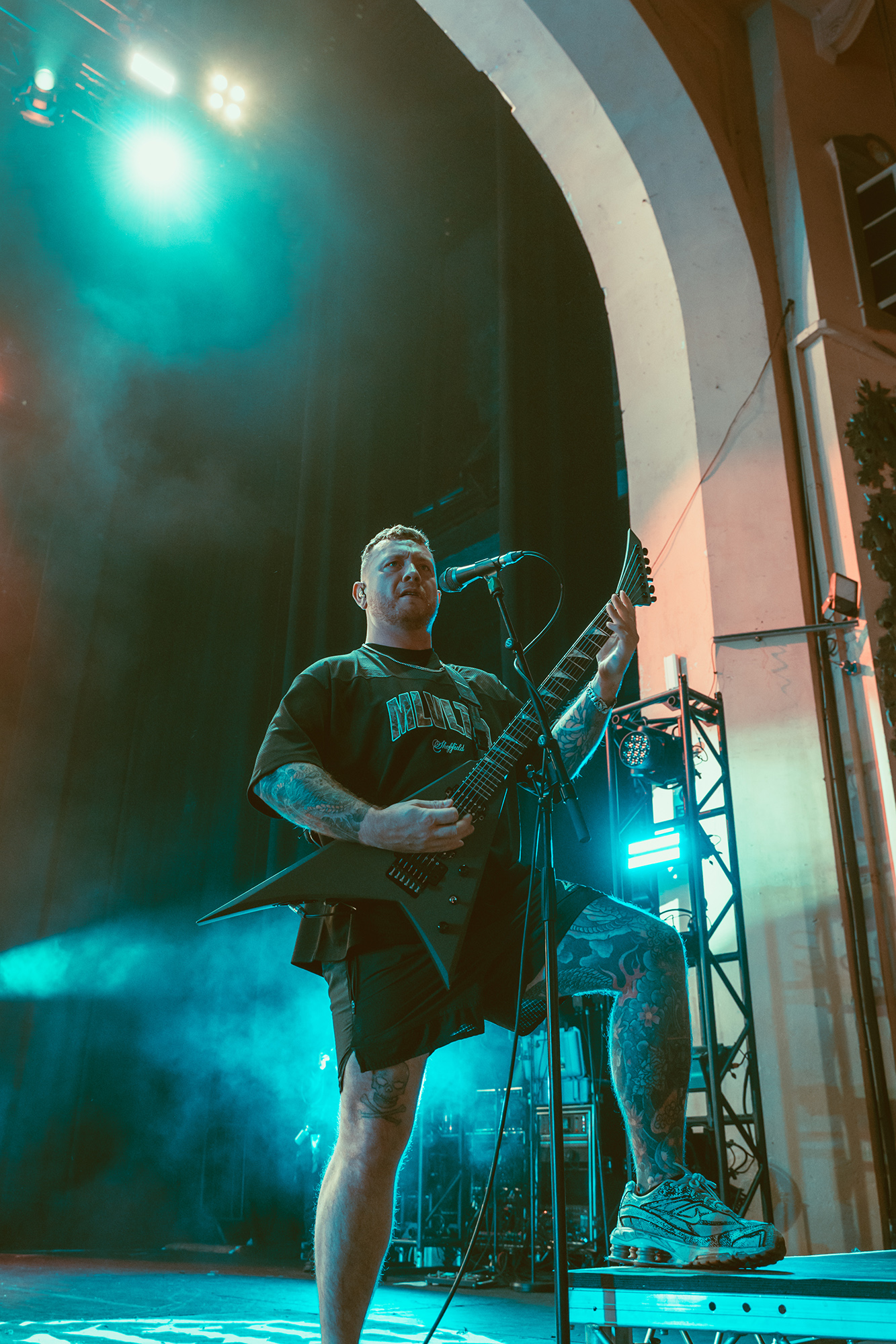 MALEVOLENCE are clearly revelling in their status as Brixton headliners, and frankly who else could get the infamous Brick Top to introduce them on his own home turf without it seeming ridiculous? Certainly thereās more than a few shades of over the top bombast but this comes from a band whoāve more than earned their stripes and this is a hard won victory. The floor is covered in MLVLTD mats, the back of the stage adorned by a giant drum riser that also features space for the other band members to get up and riff on – which they make the most of. After such an attention-grabbing beginning, the only thing left for them to do is what they do best, hulking groove metal with a hardcore spine that turns the floor into more mosh pits than you can shake a stick at.Ā